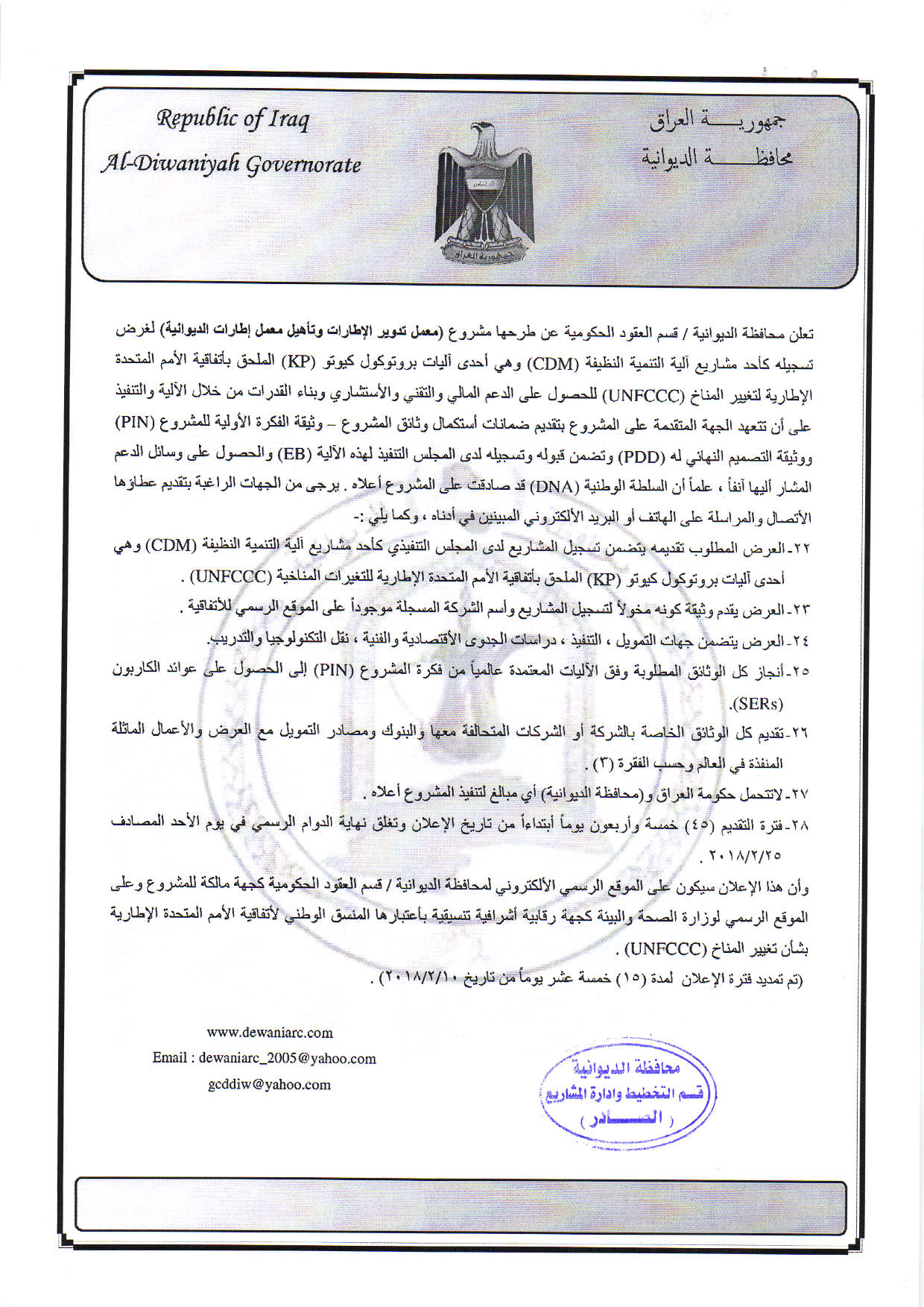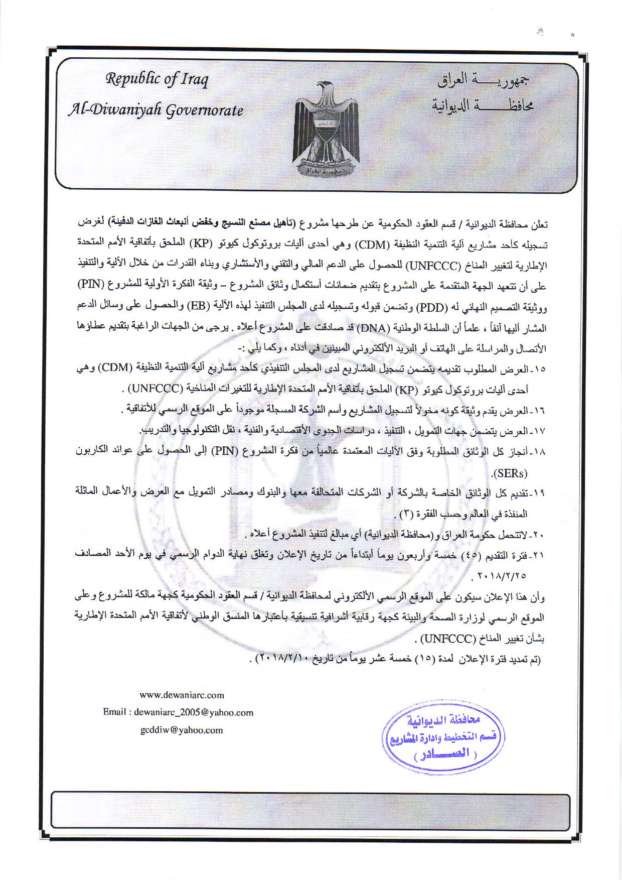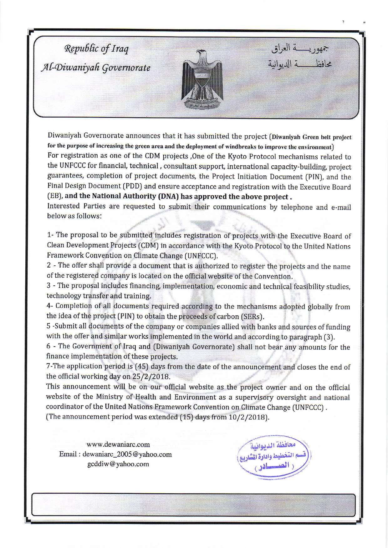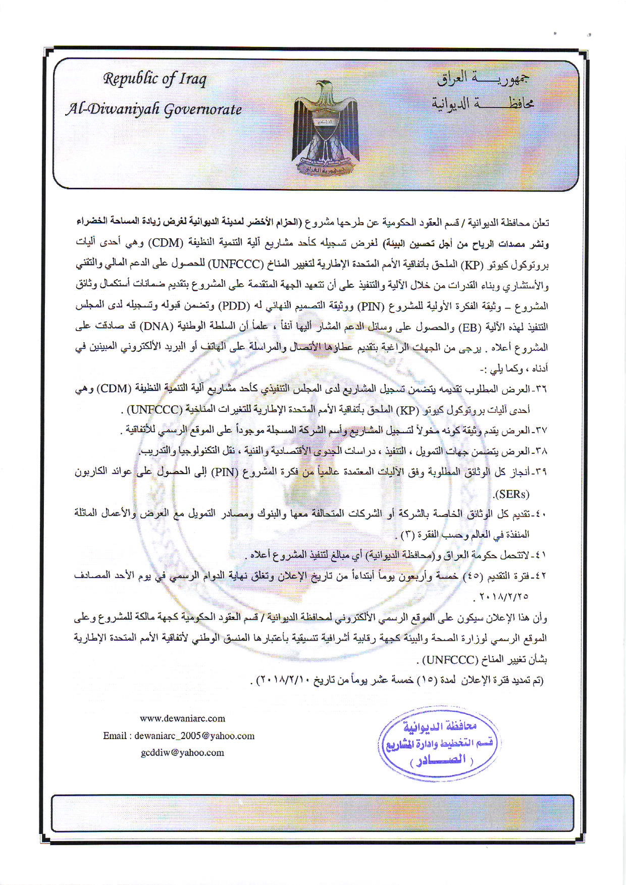 الأخضر لمدينة الديوانية لغرض زيادة المساحة الخضراء ونشر مصدات