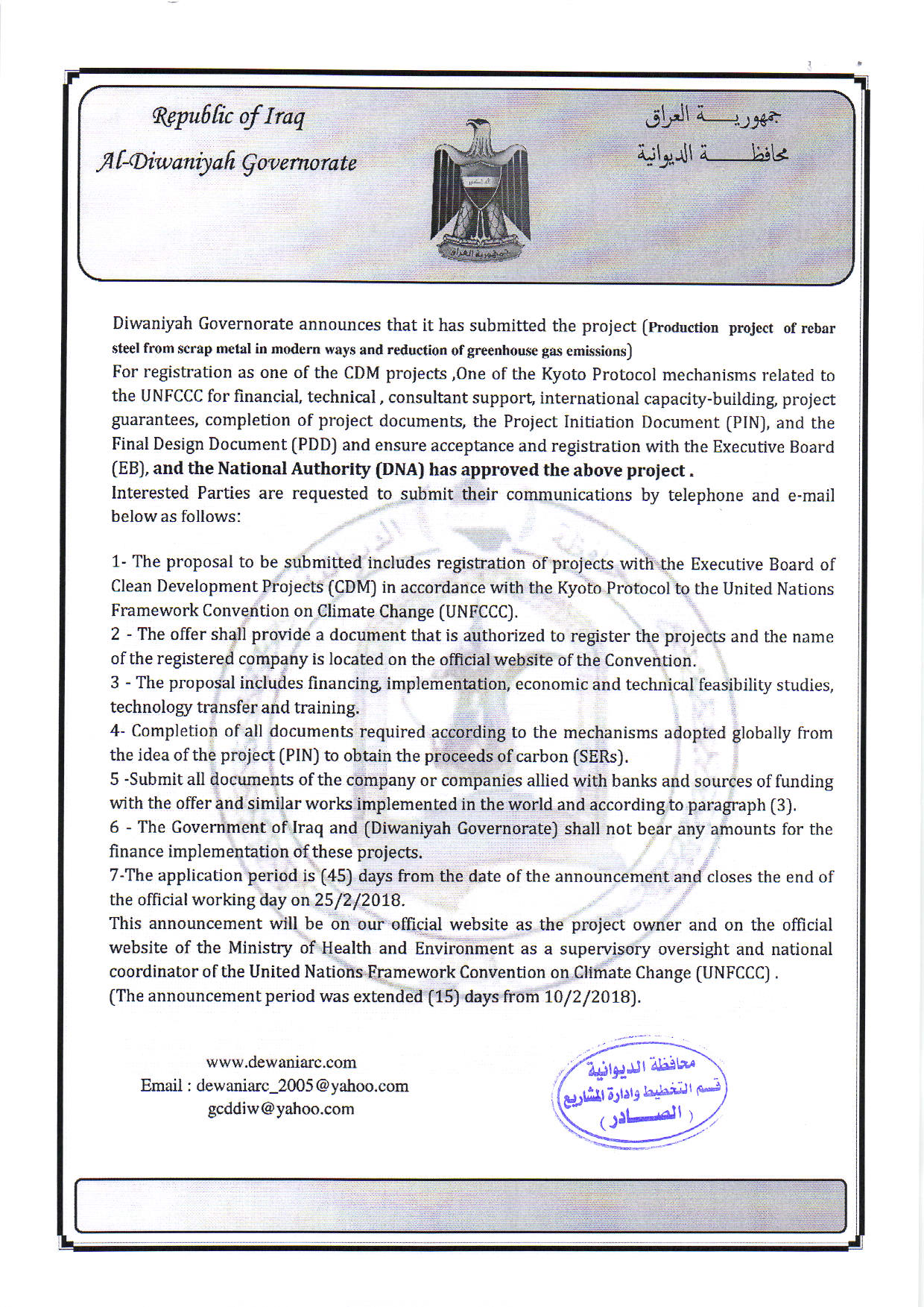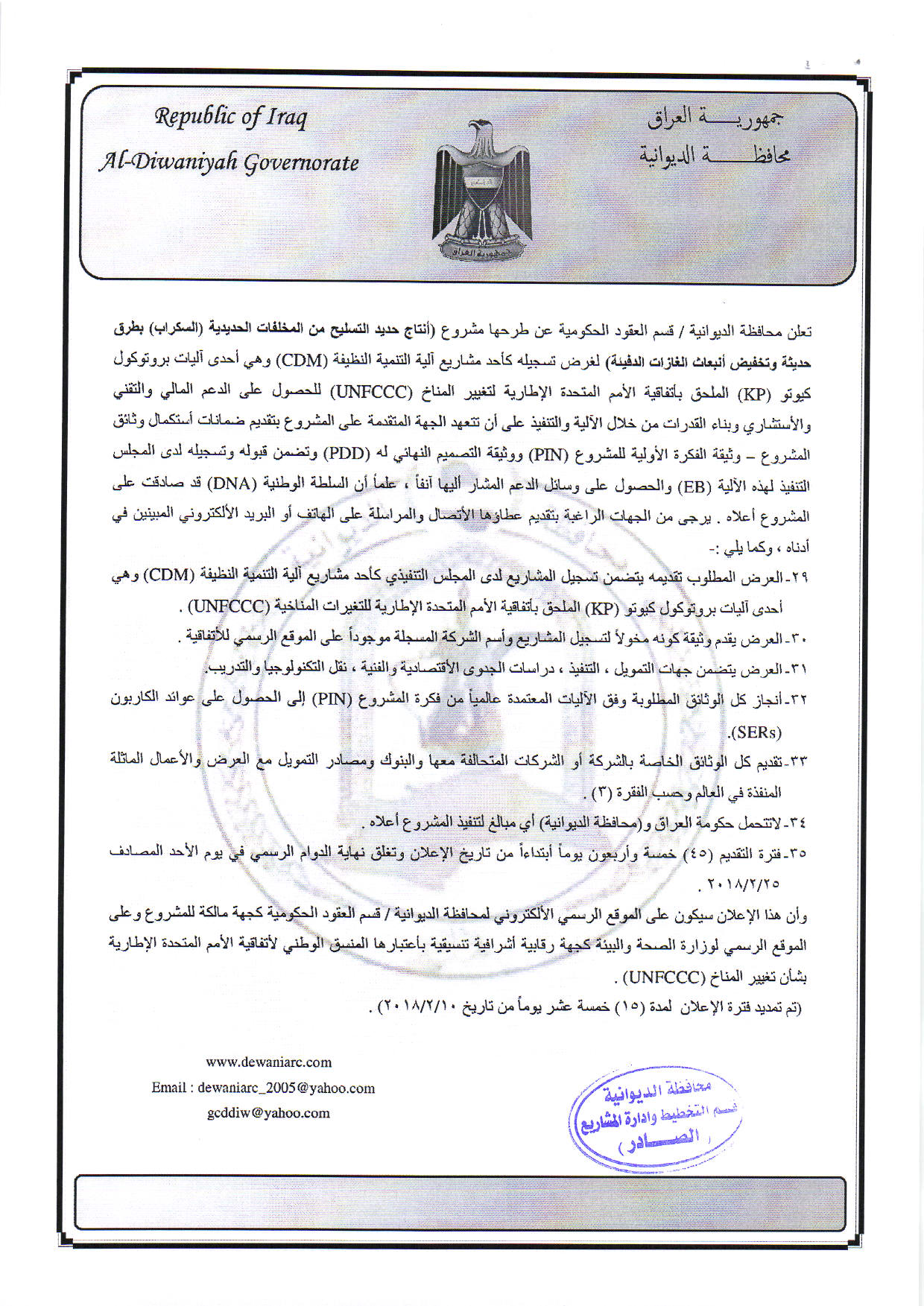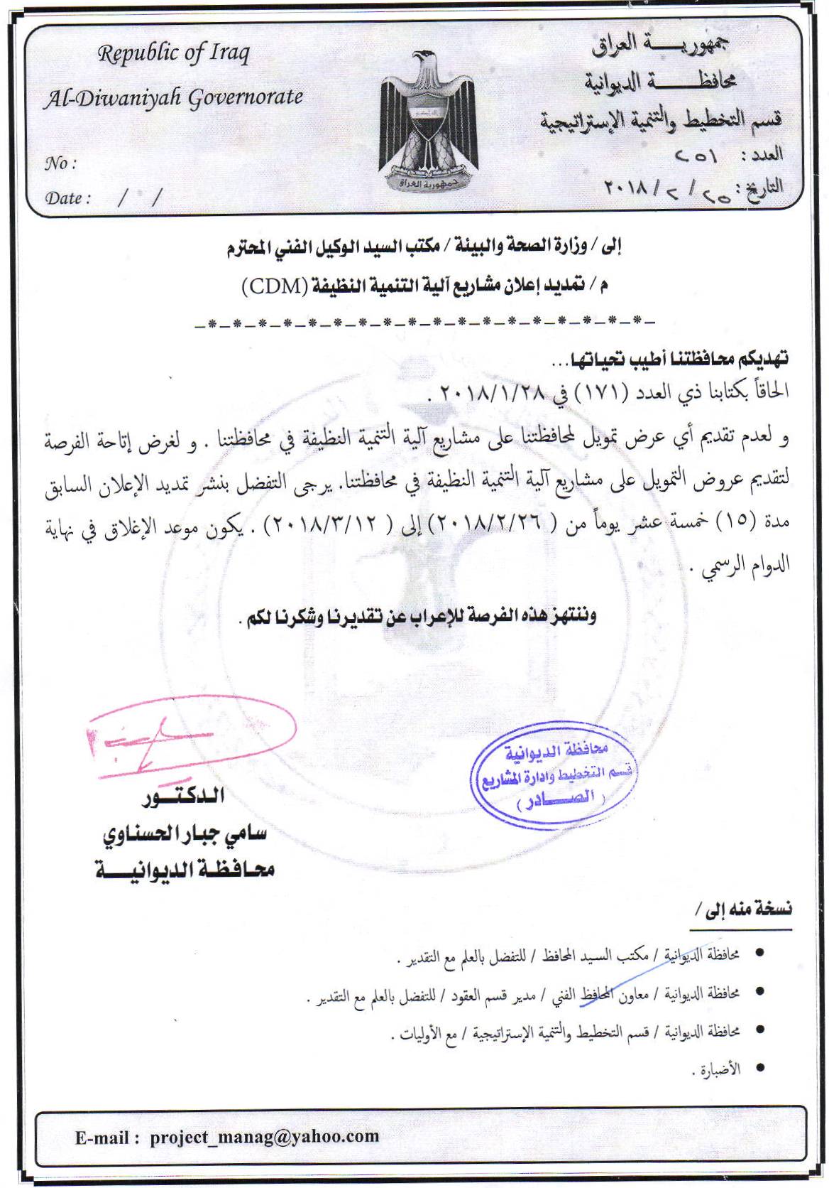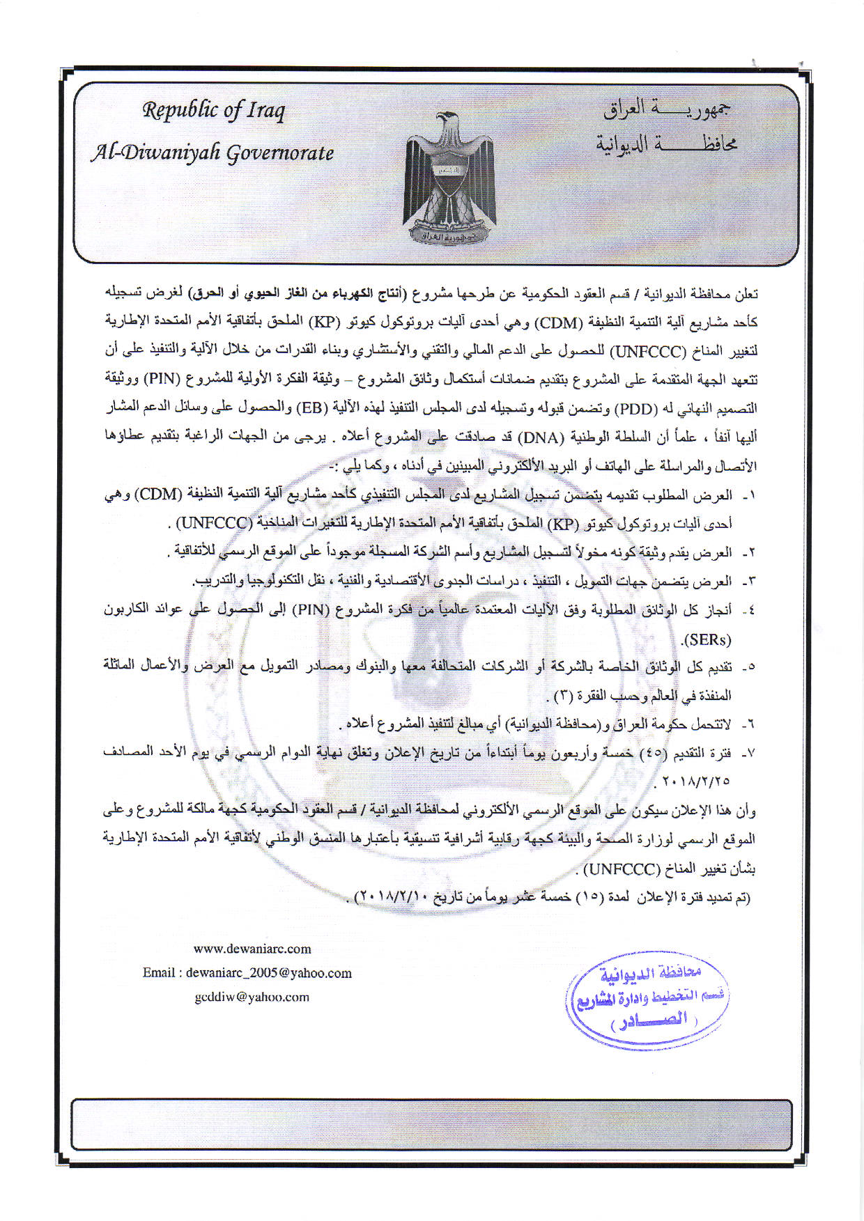 الأخضر لمدينة الديوانية لغرض زيادة المساحة الخضراء ونشر مصدات