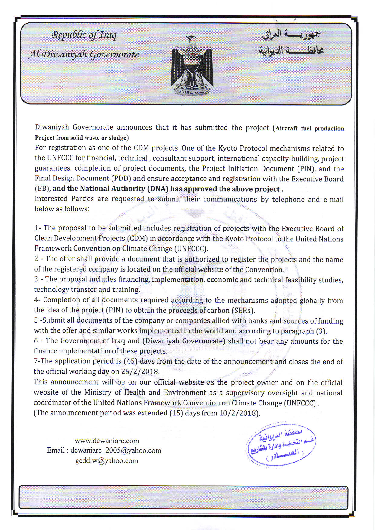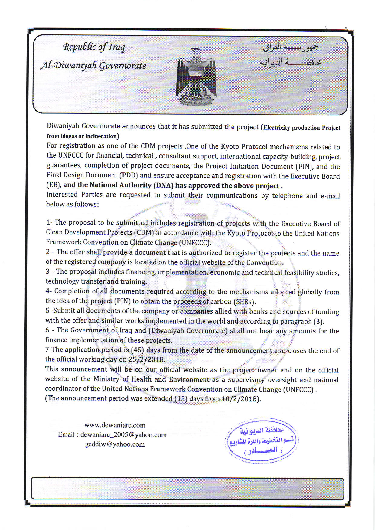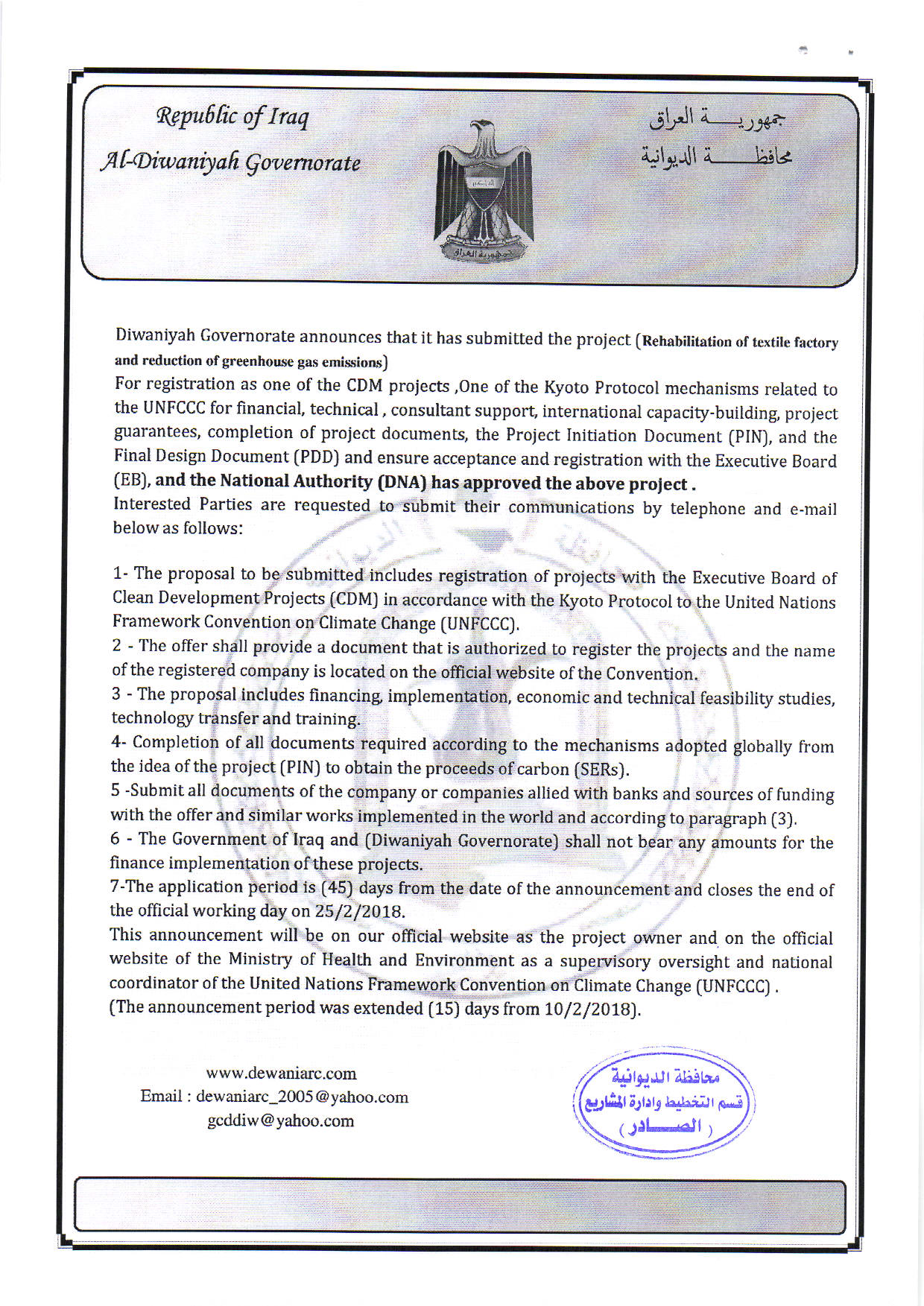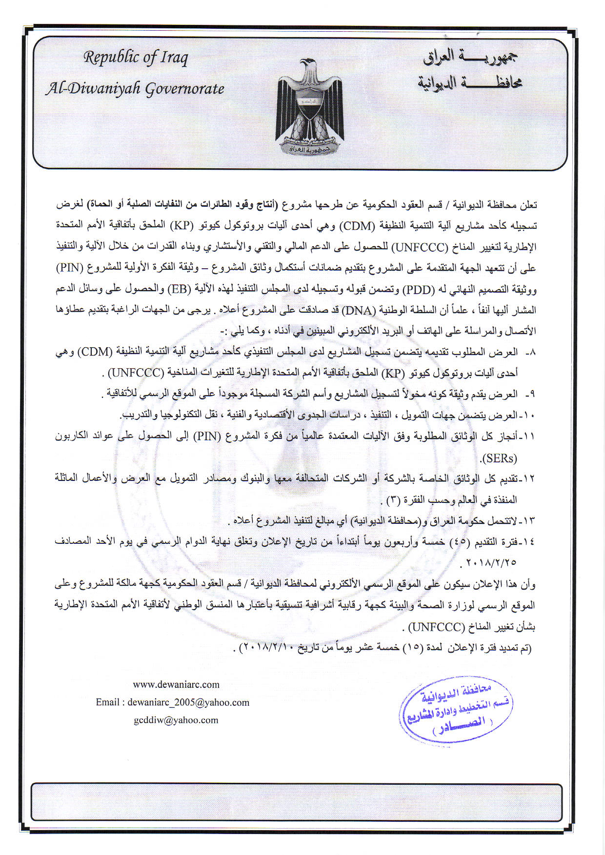 الأخضر لمدينة الديوانية لغرض زيادة المساحة الخضراء ونشر مصدات