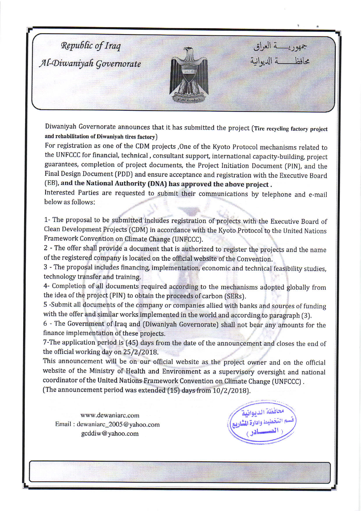 تدوير الإطارات وتأهيل معمل إطارات الديوانية