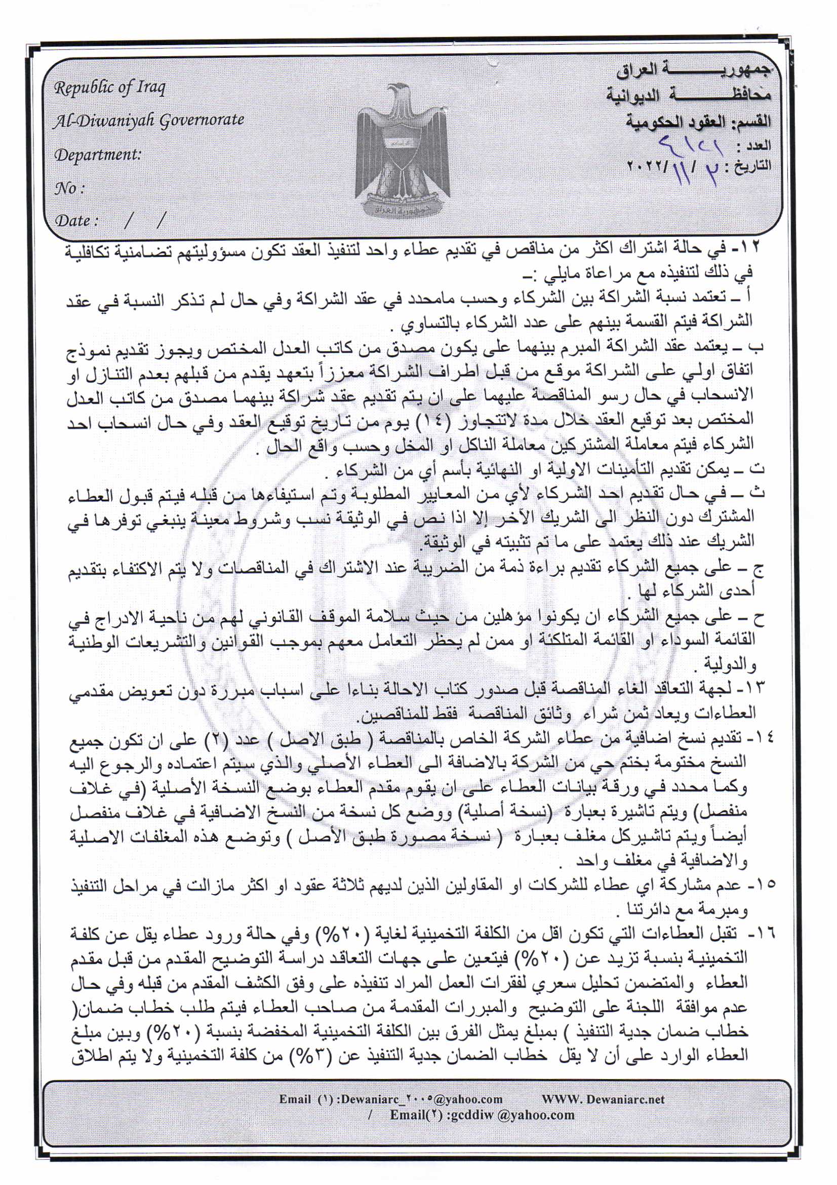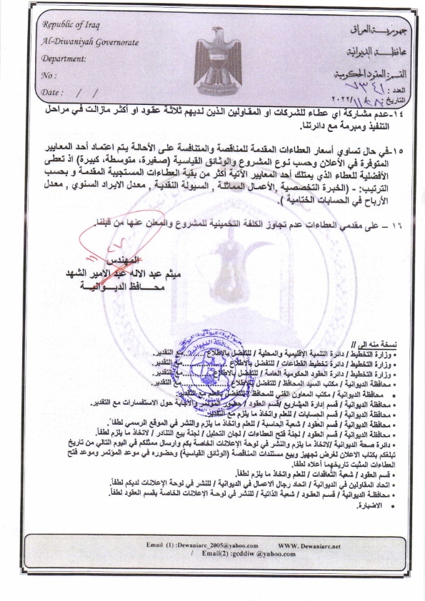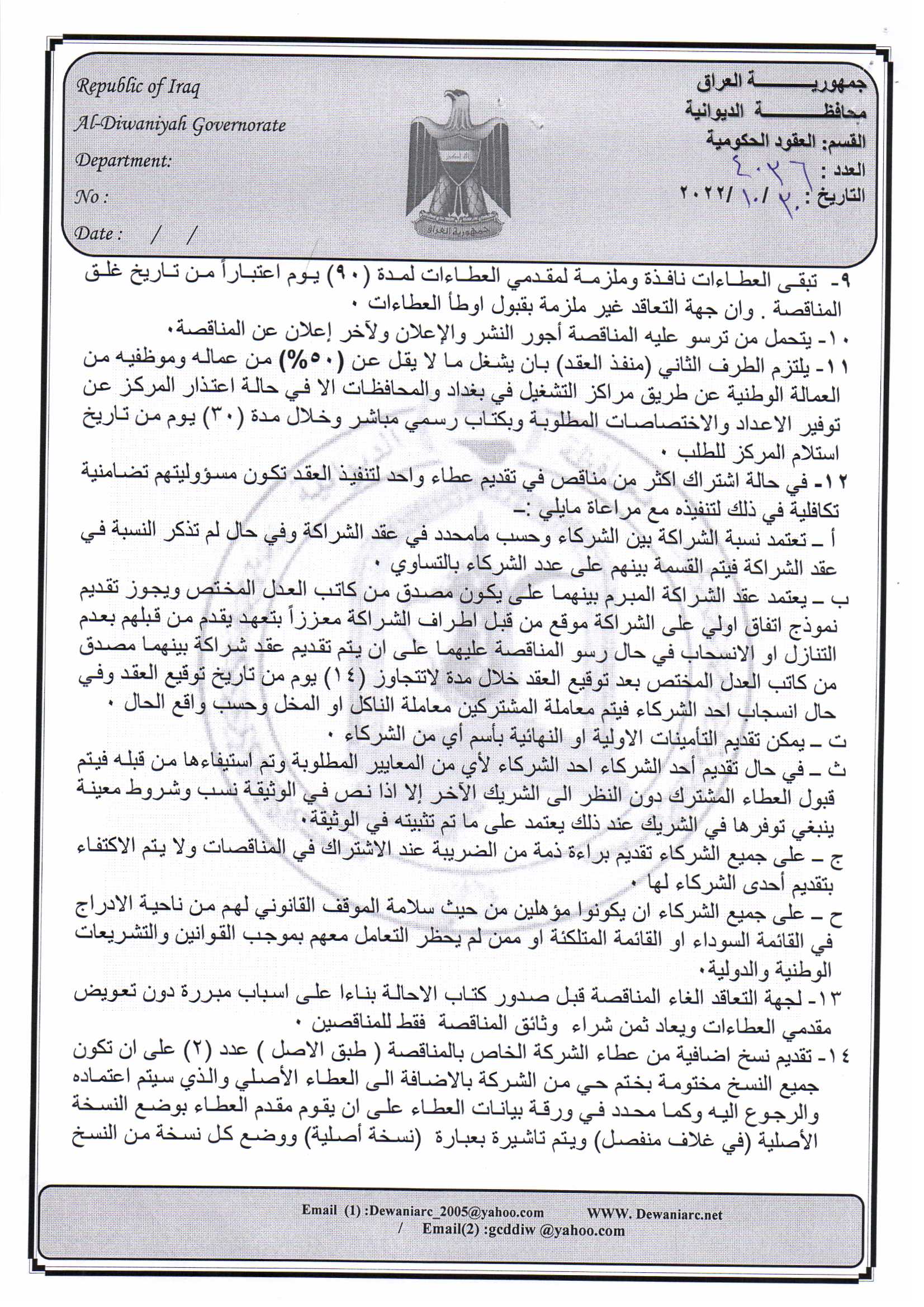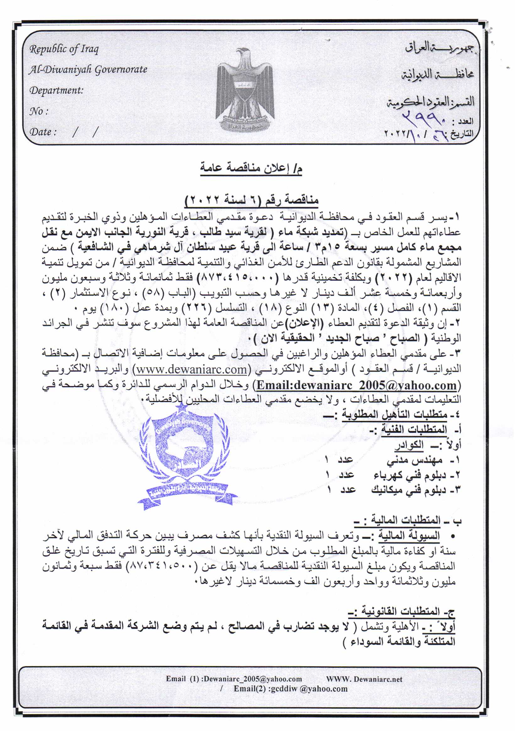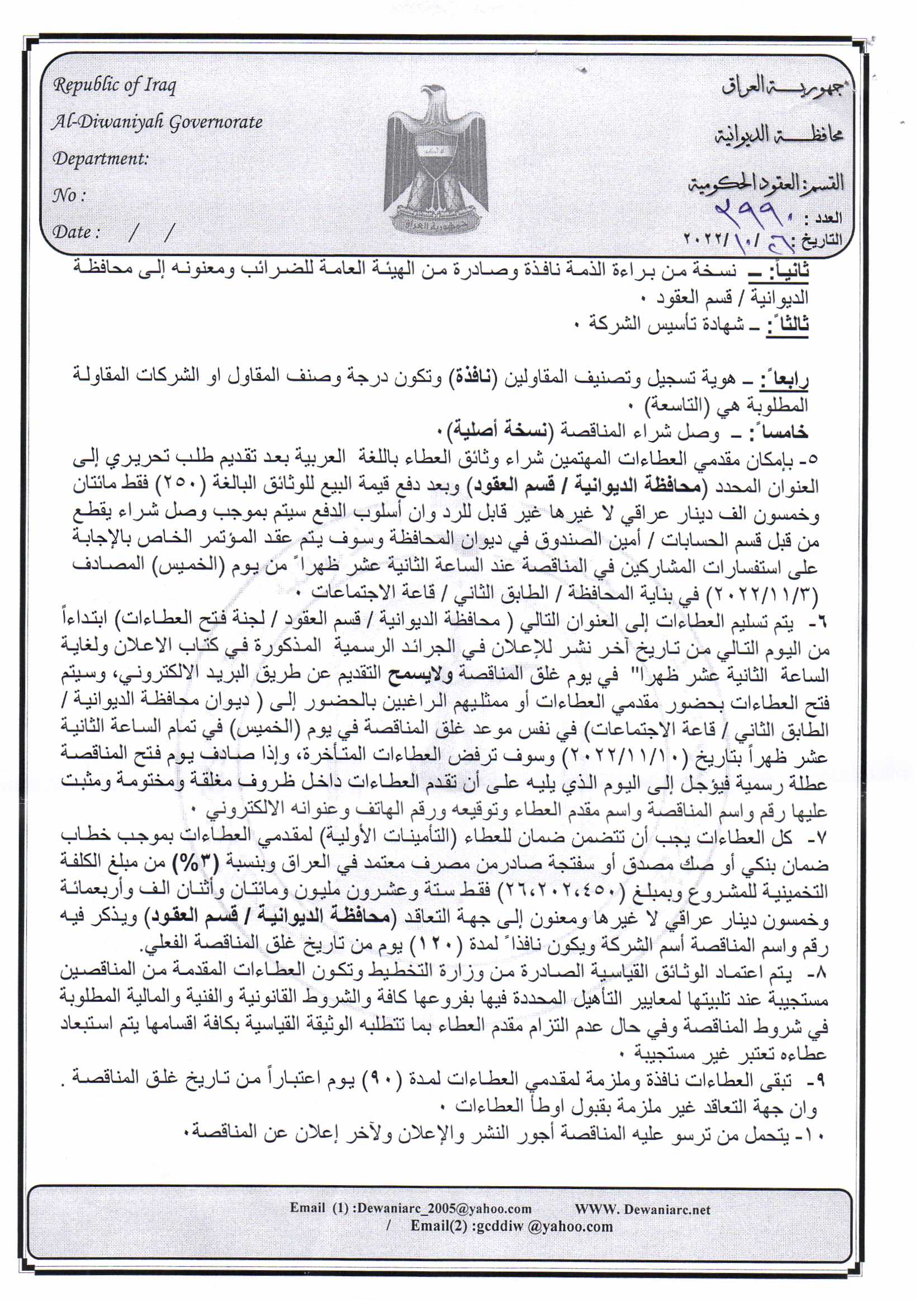 ﴿ إعلان مناقصة (26) لسنة 2022