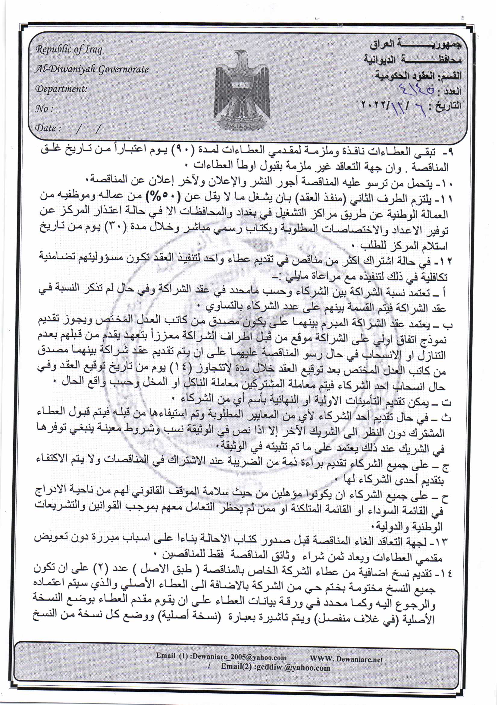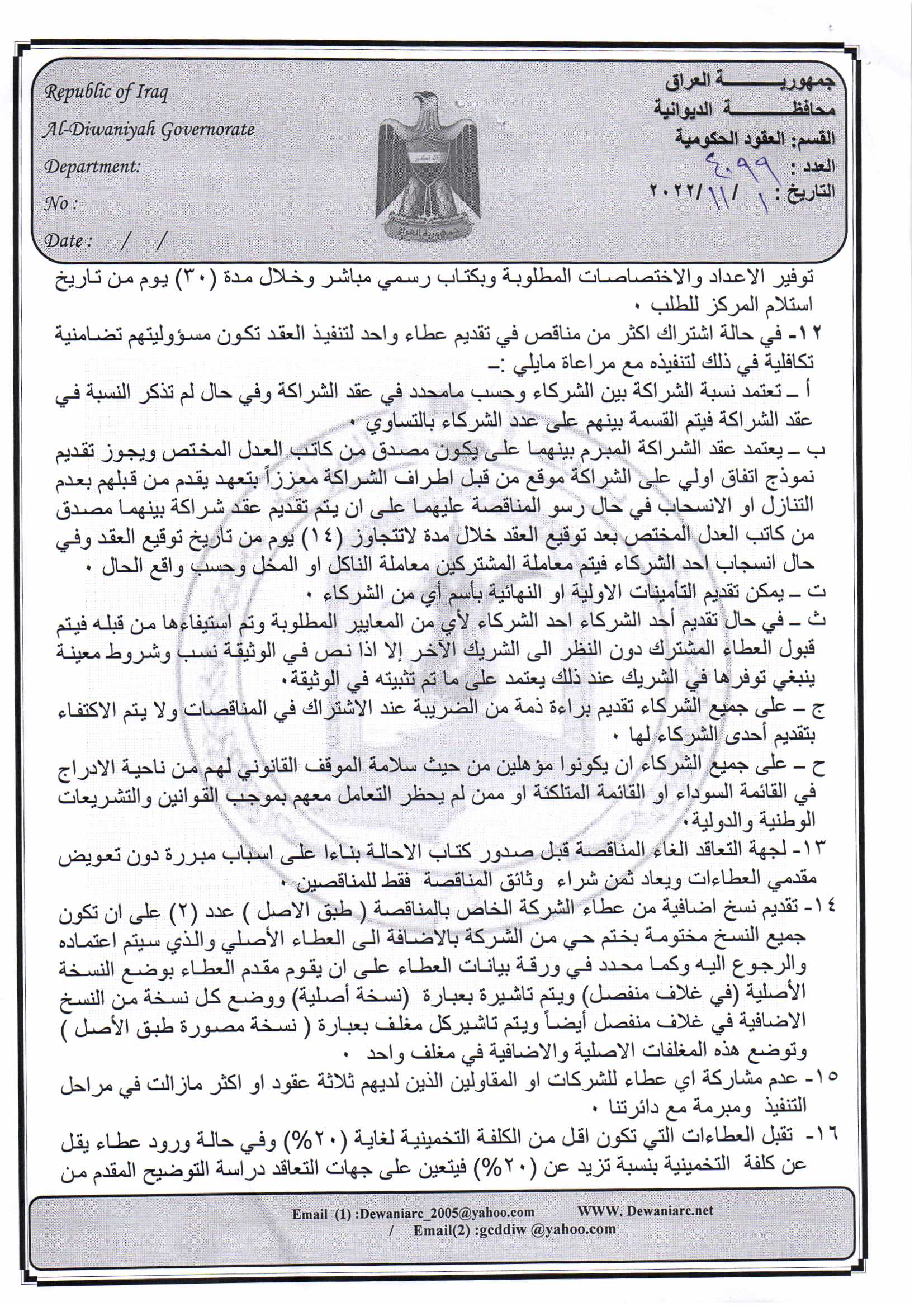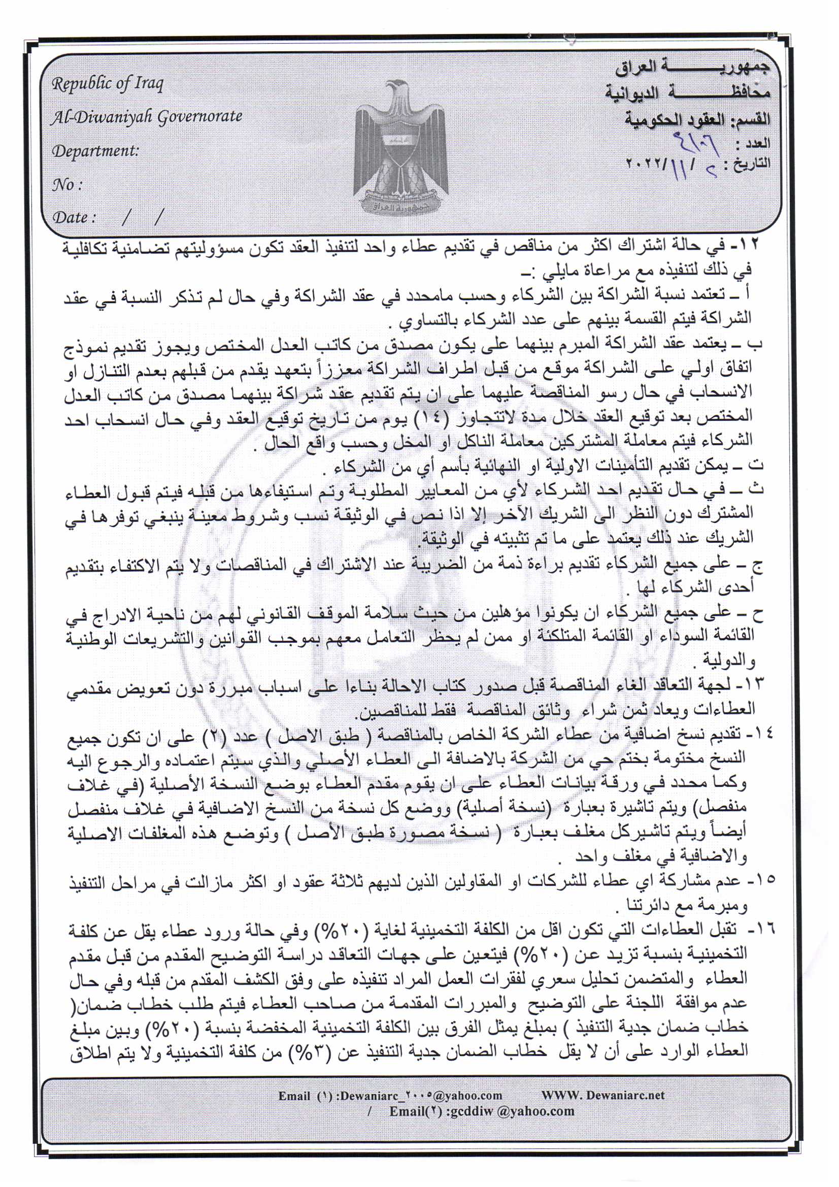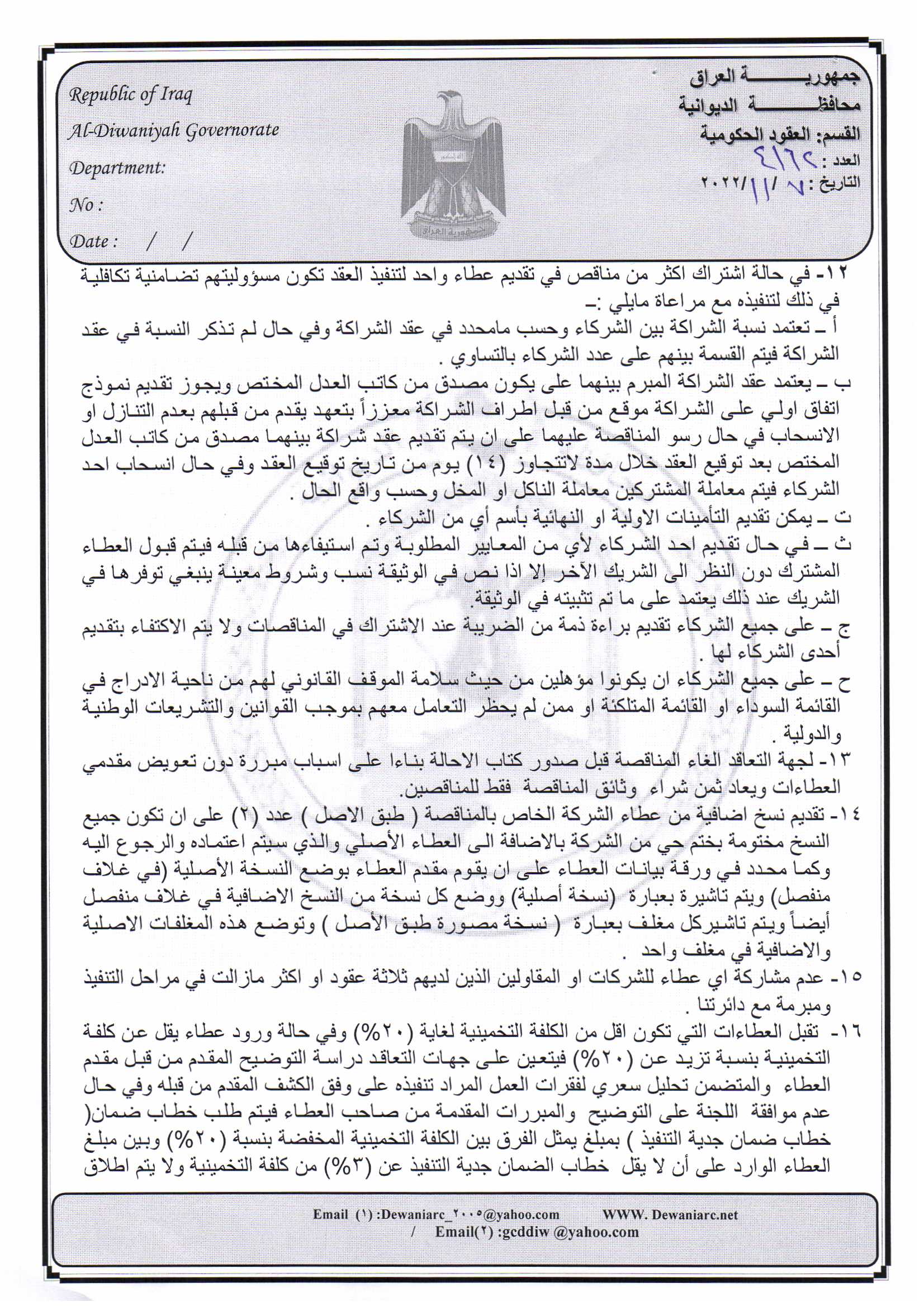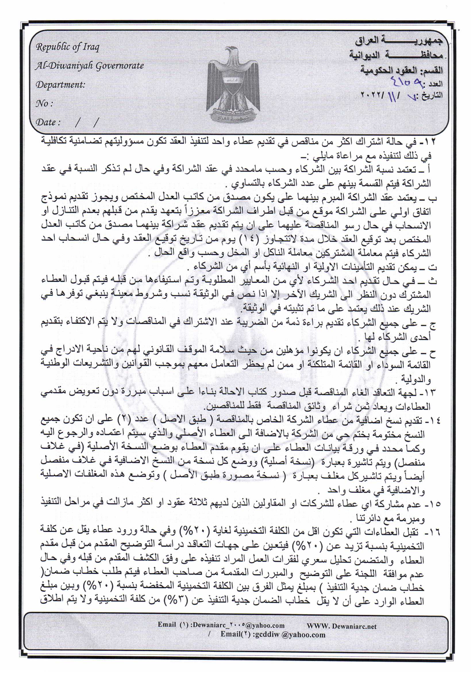 ﴿ إعلان مناقصة (26) لسنة 2022