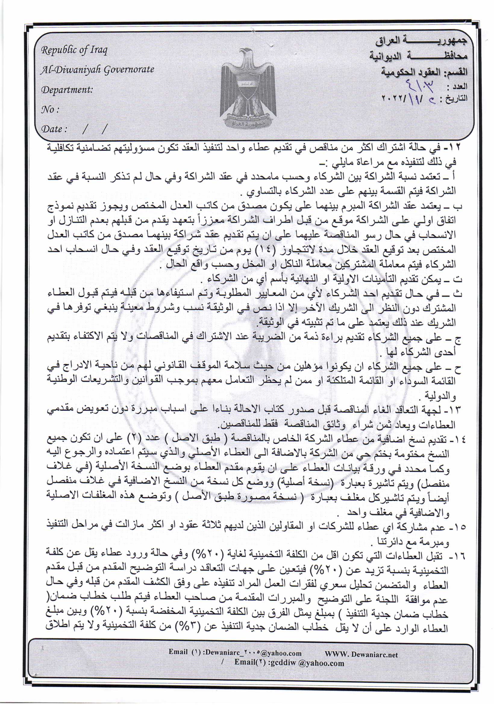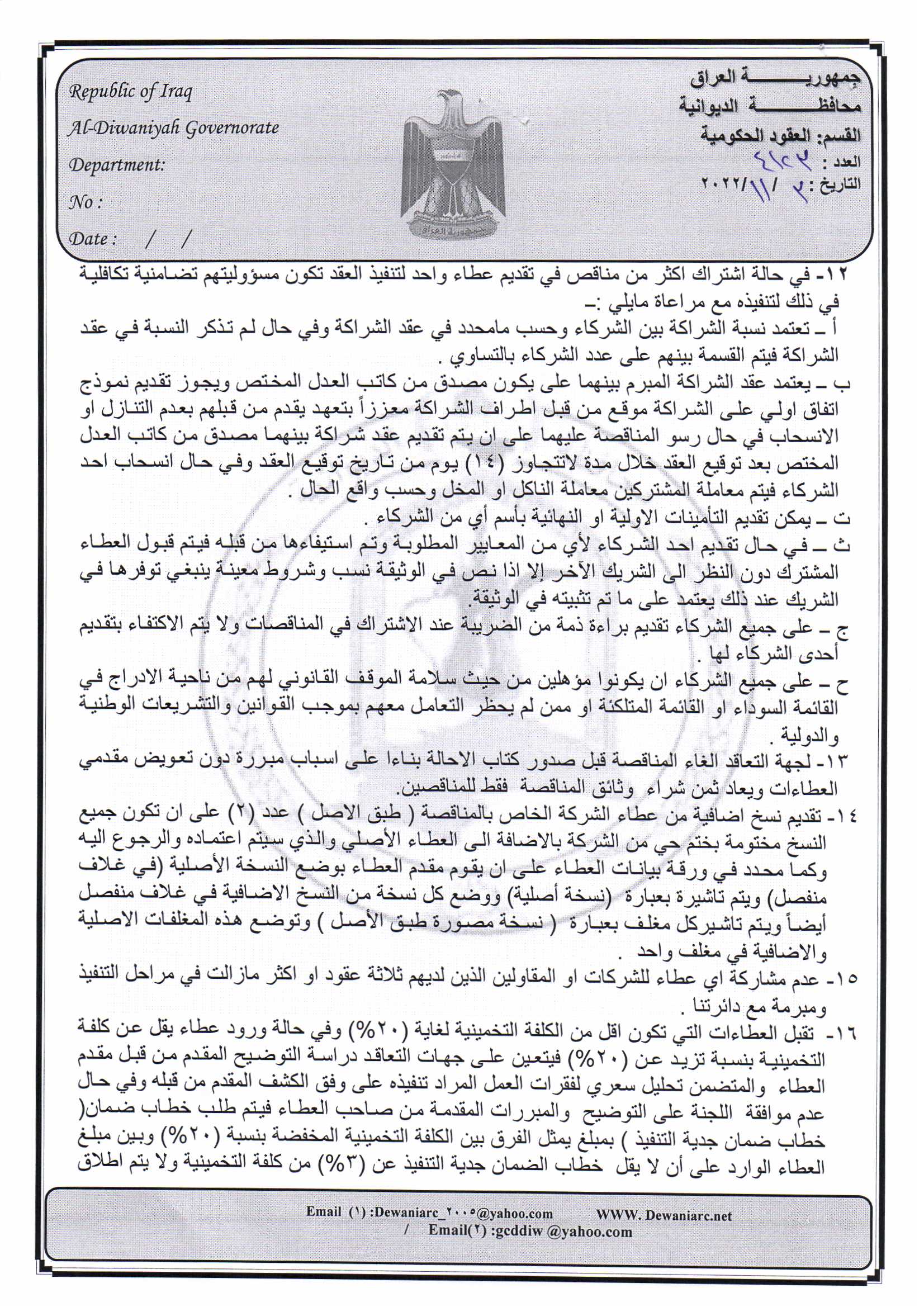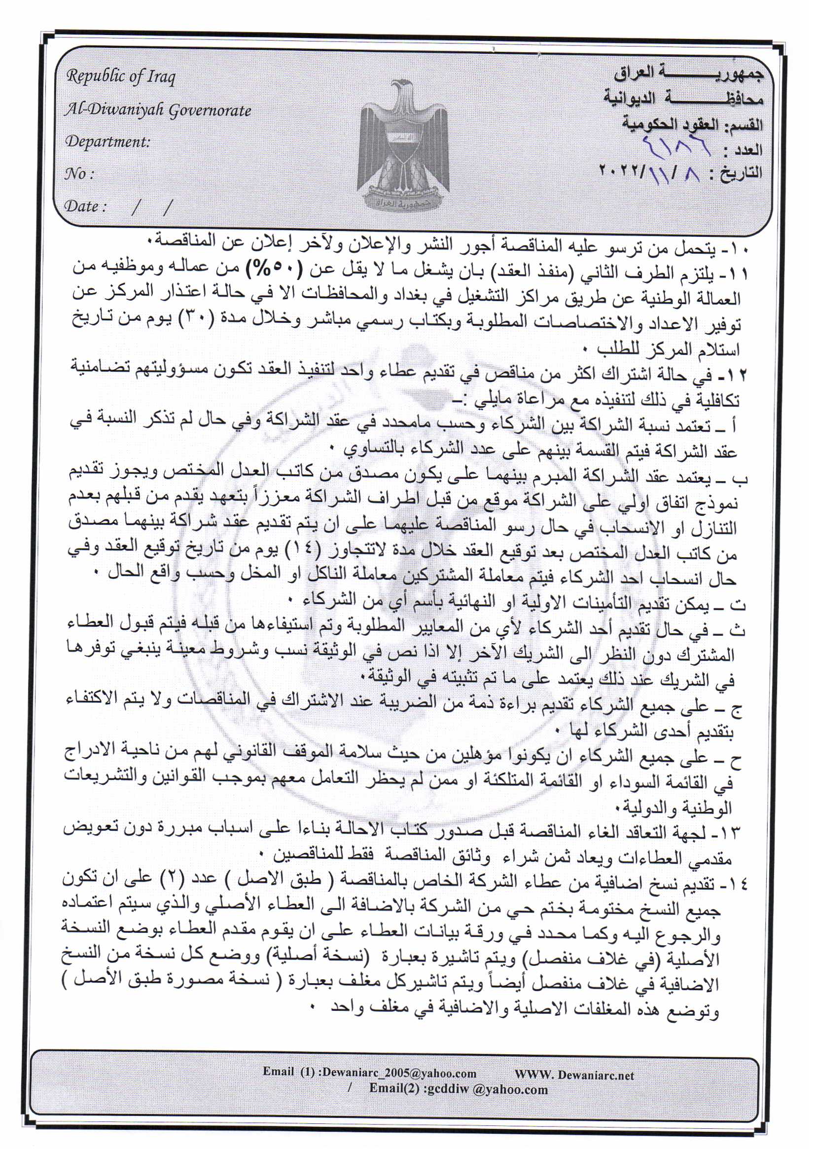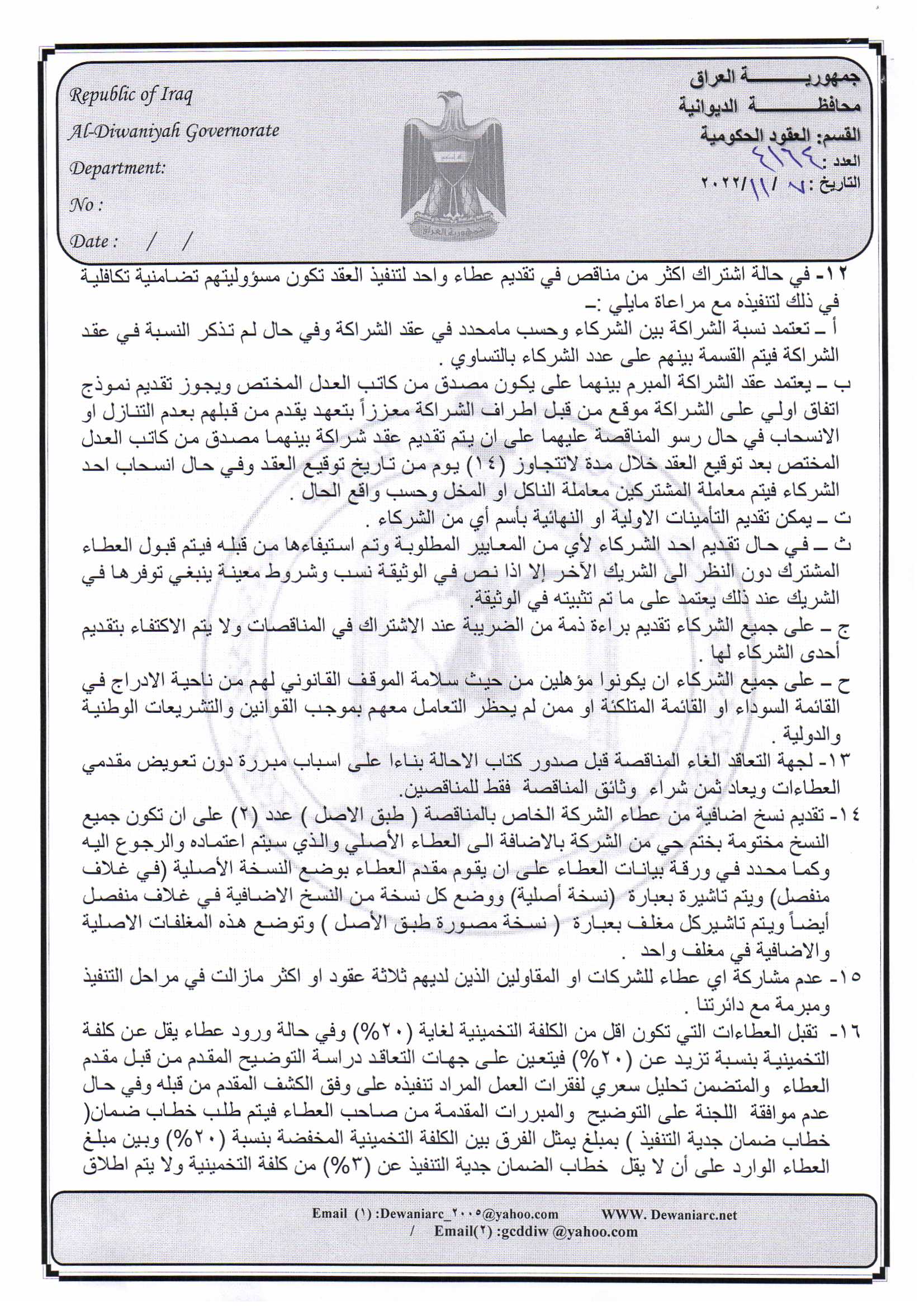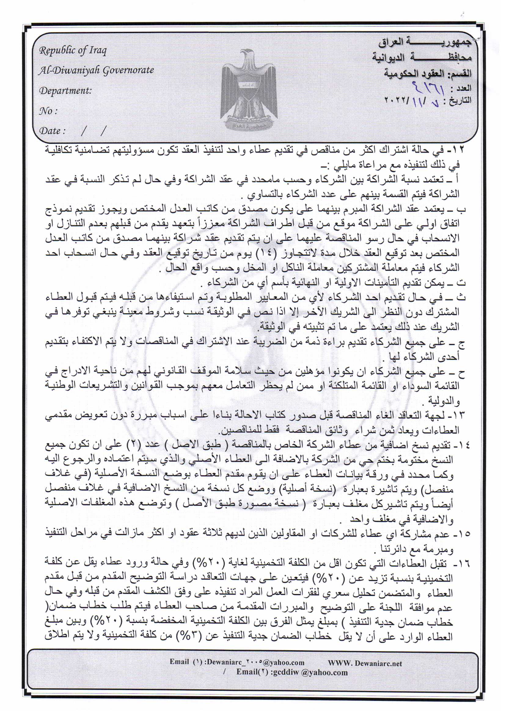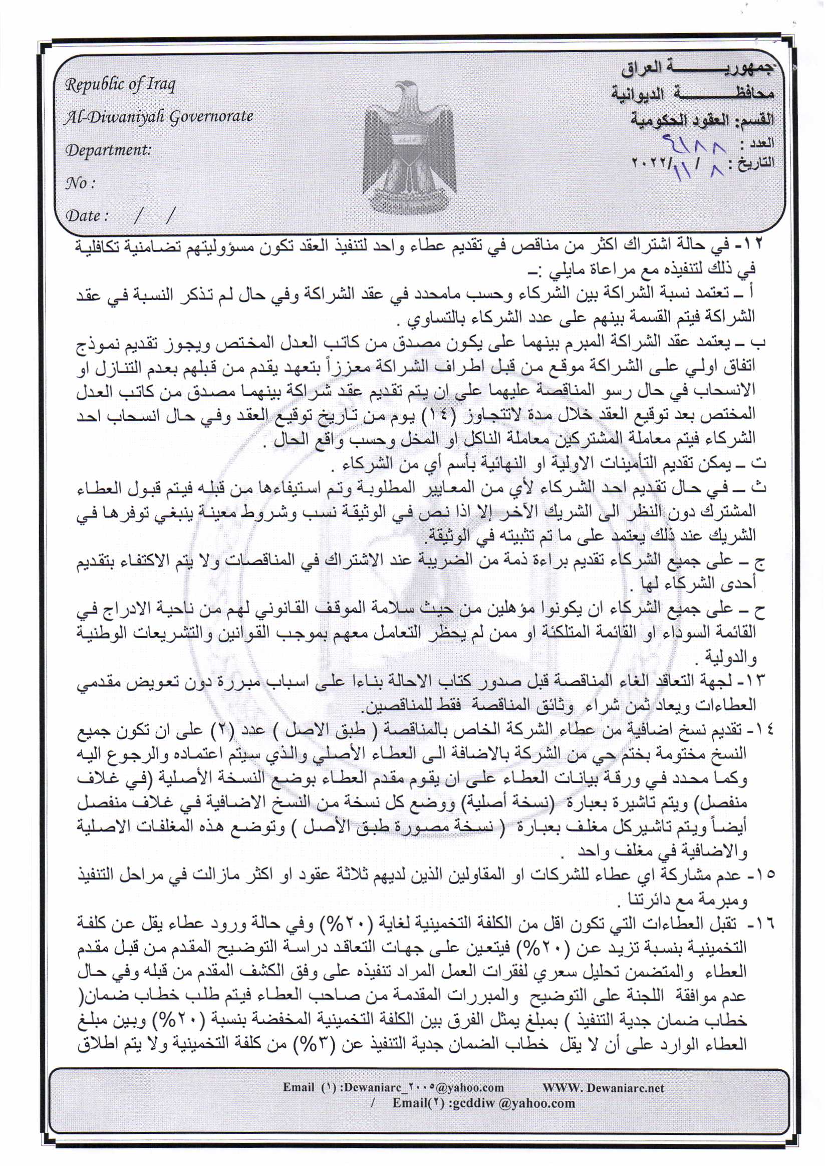 ﴿ إعلان مناقصة (26) لسنة 2022