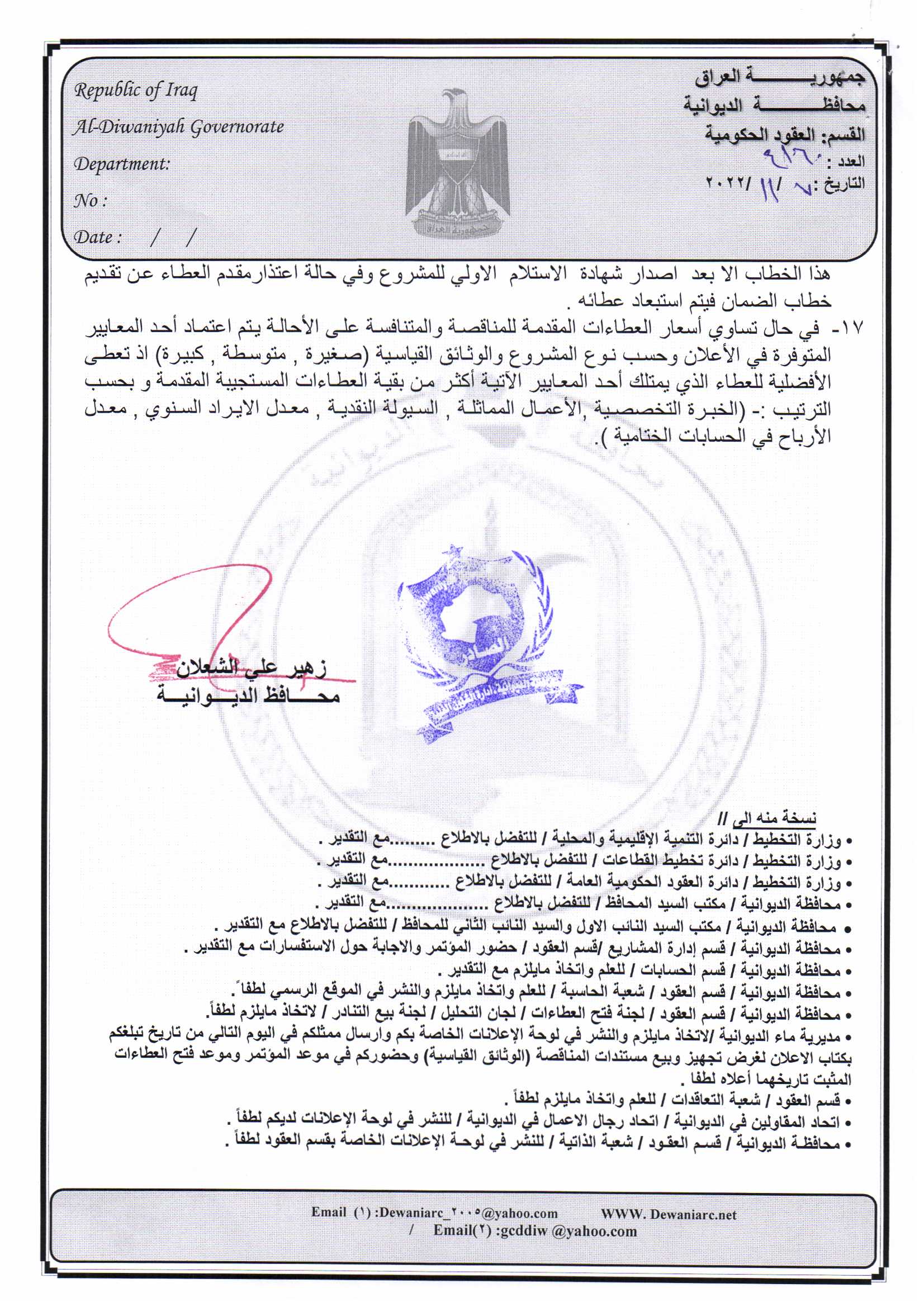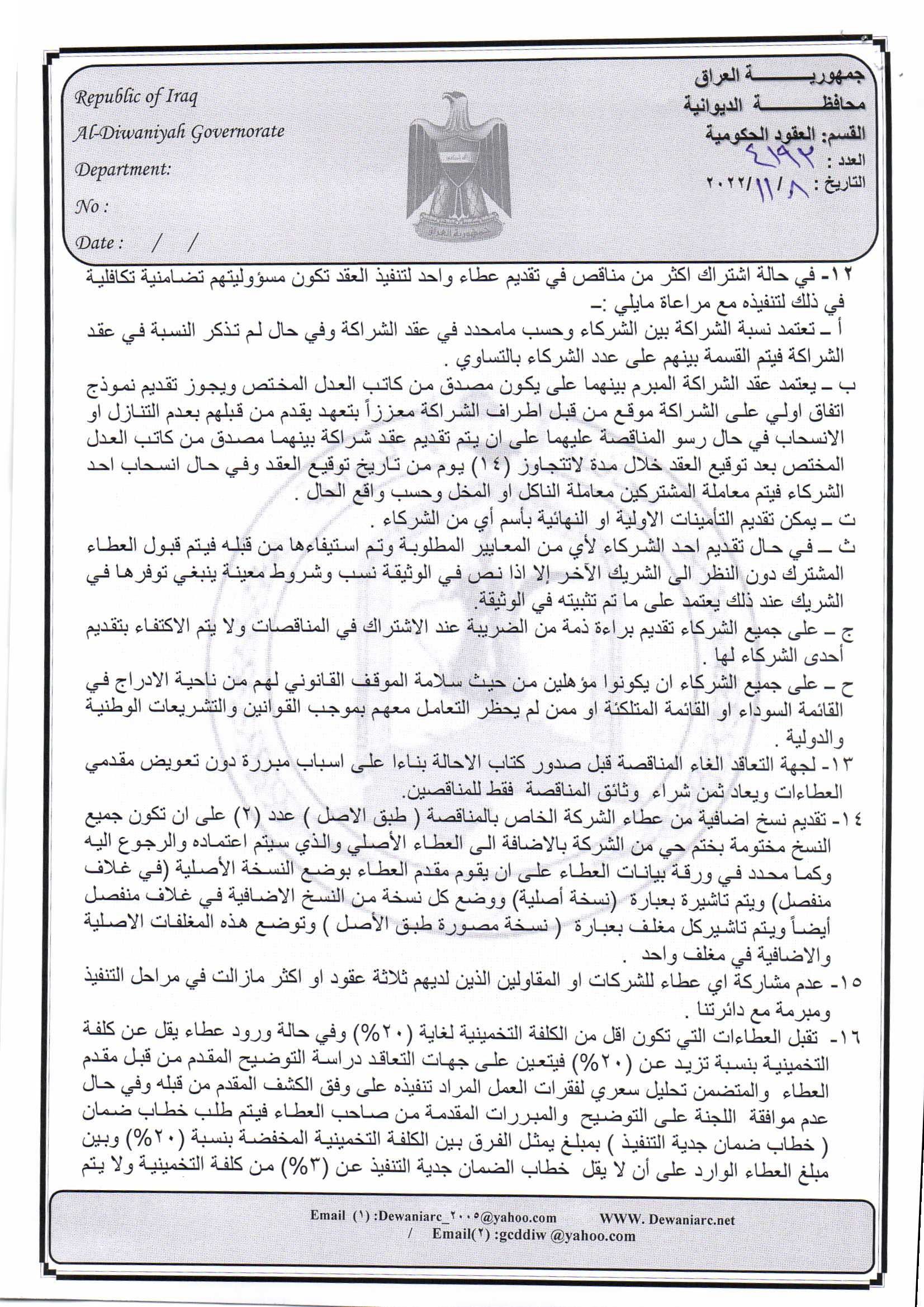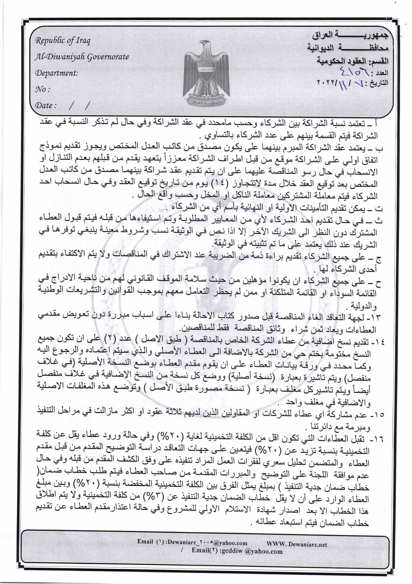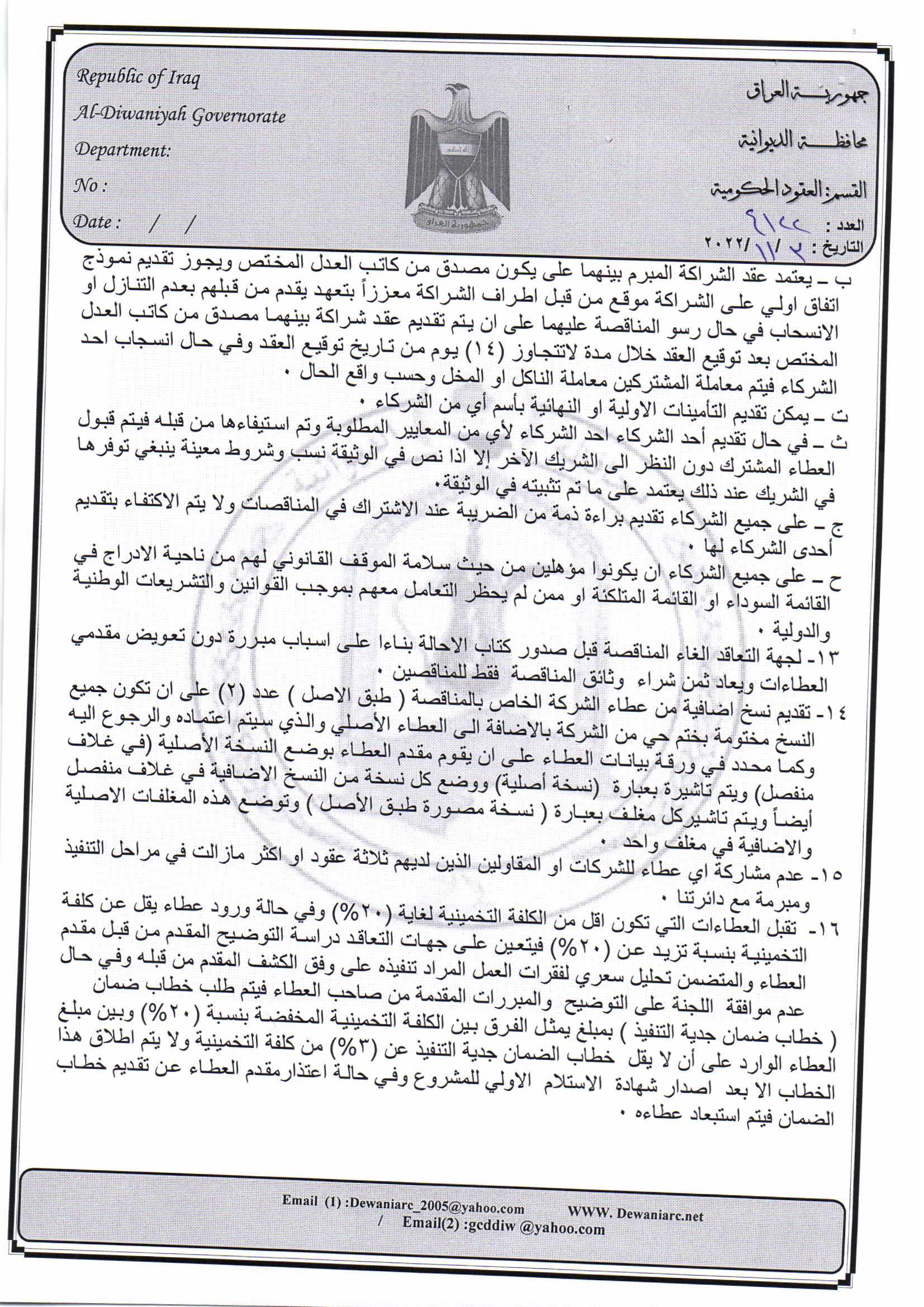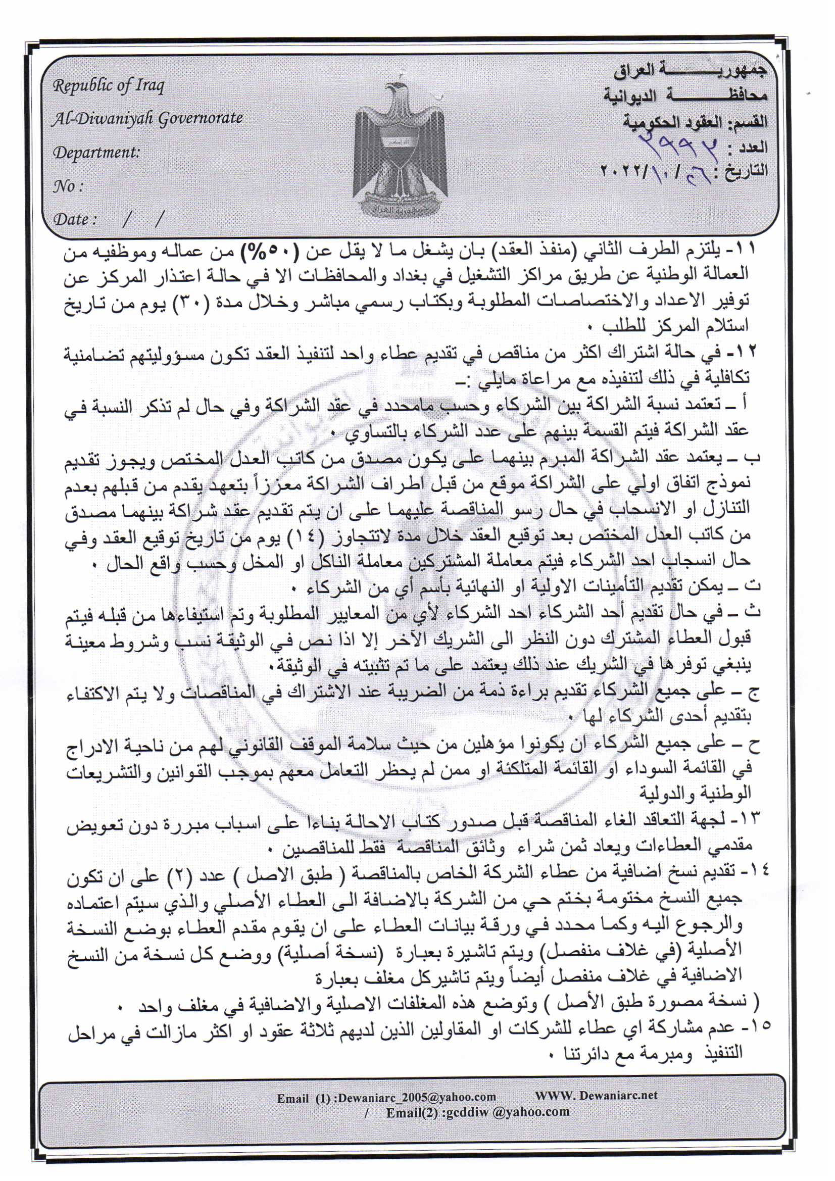 ﴿ إعلان مناقصة (26) لسنة 2022