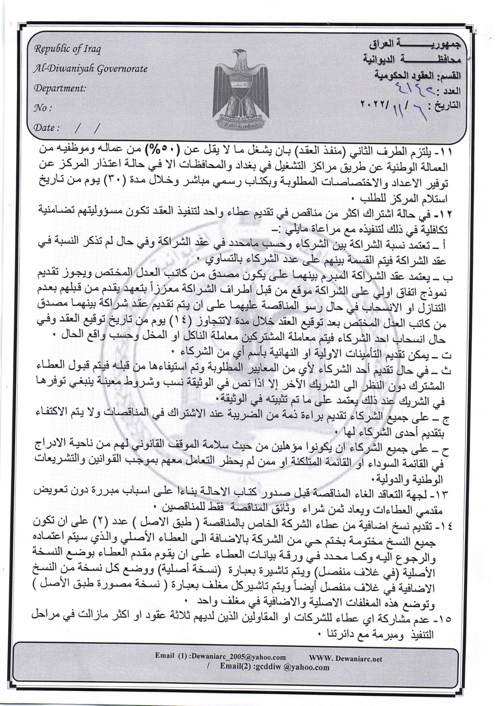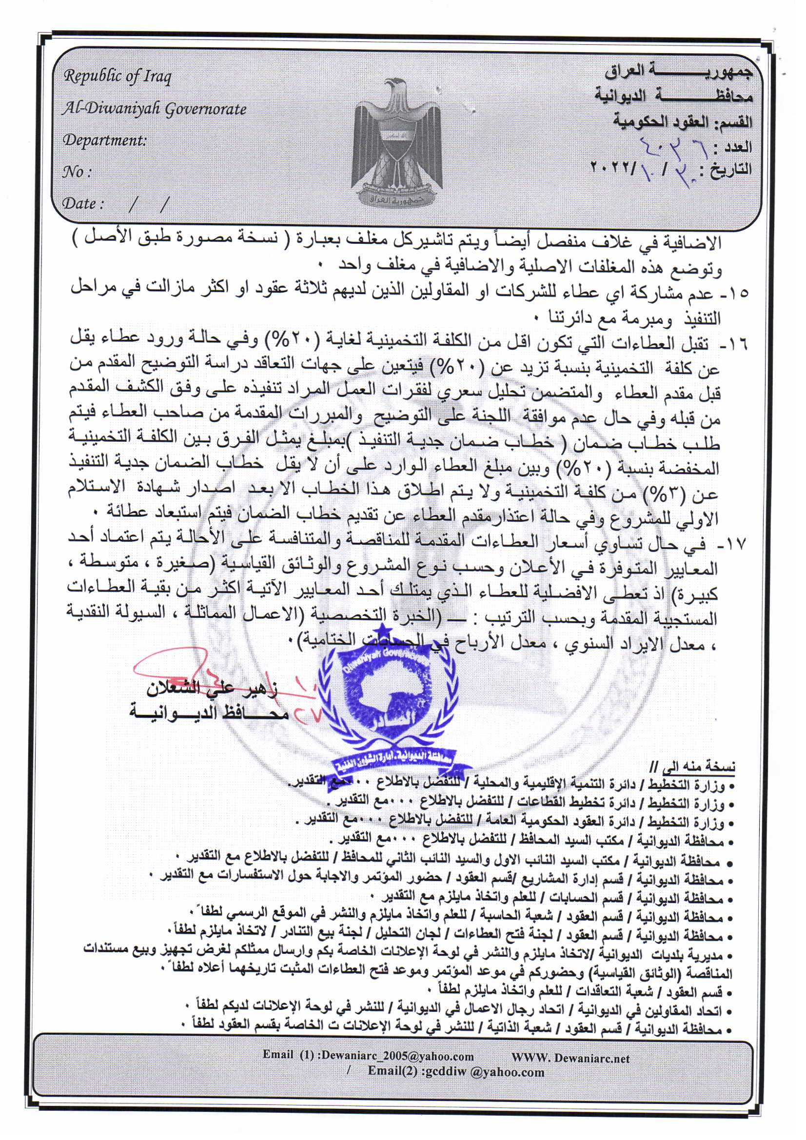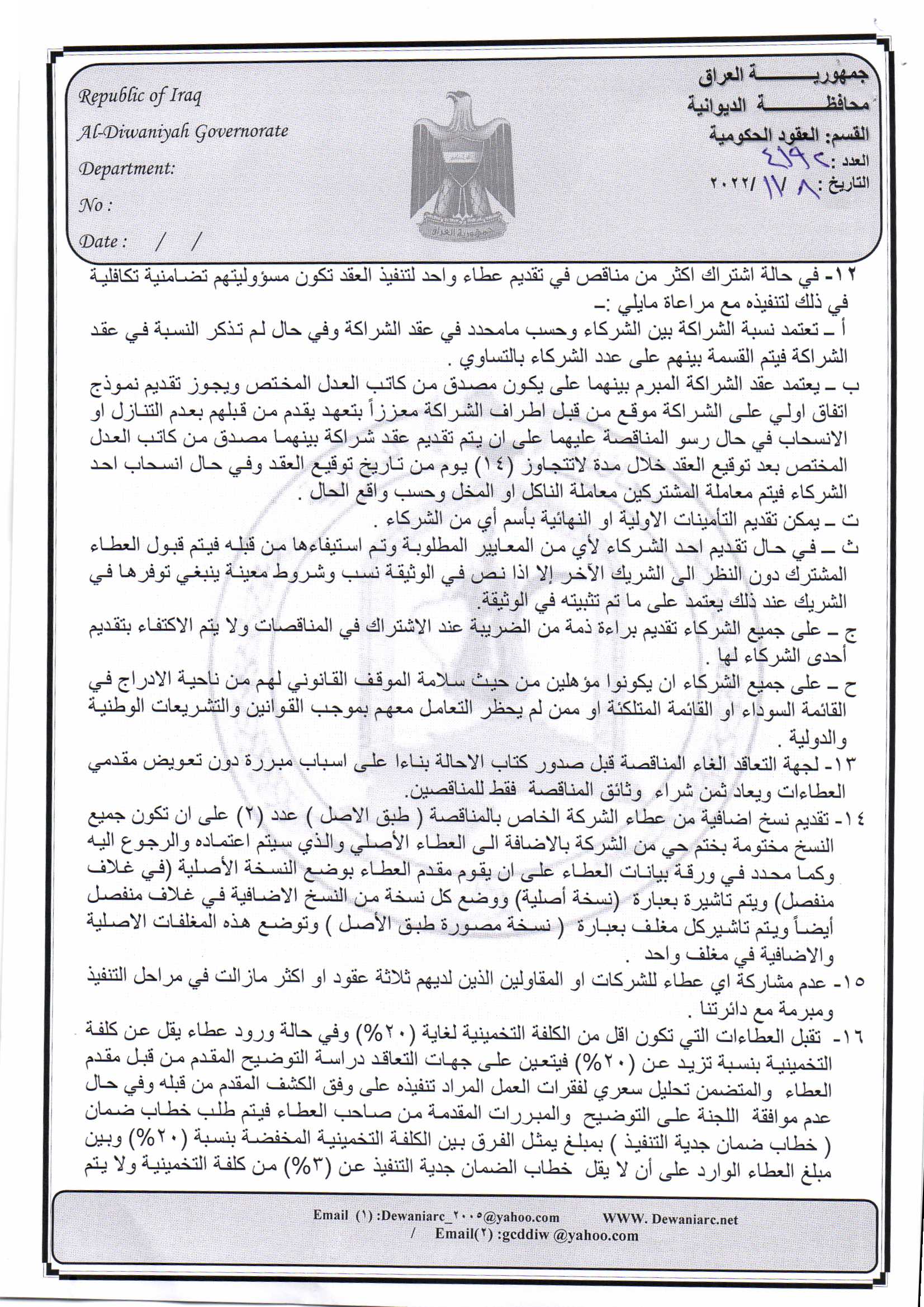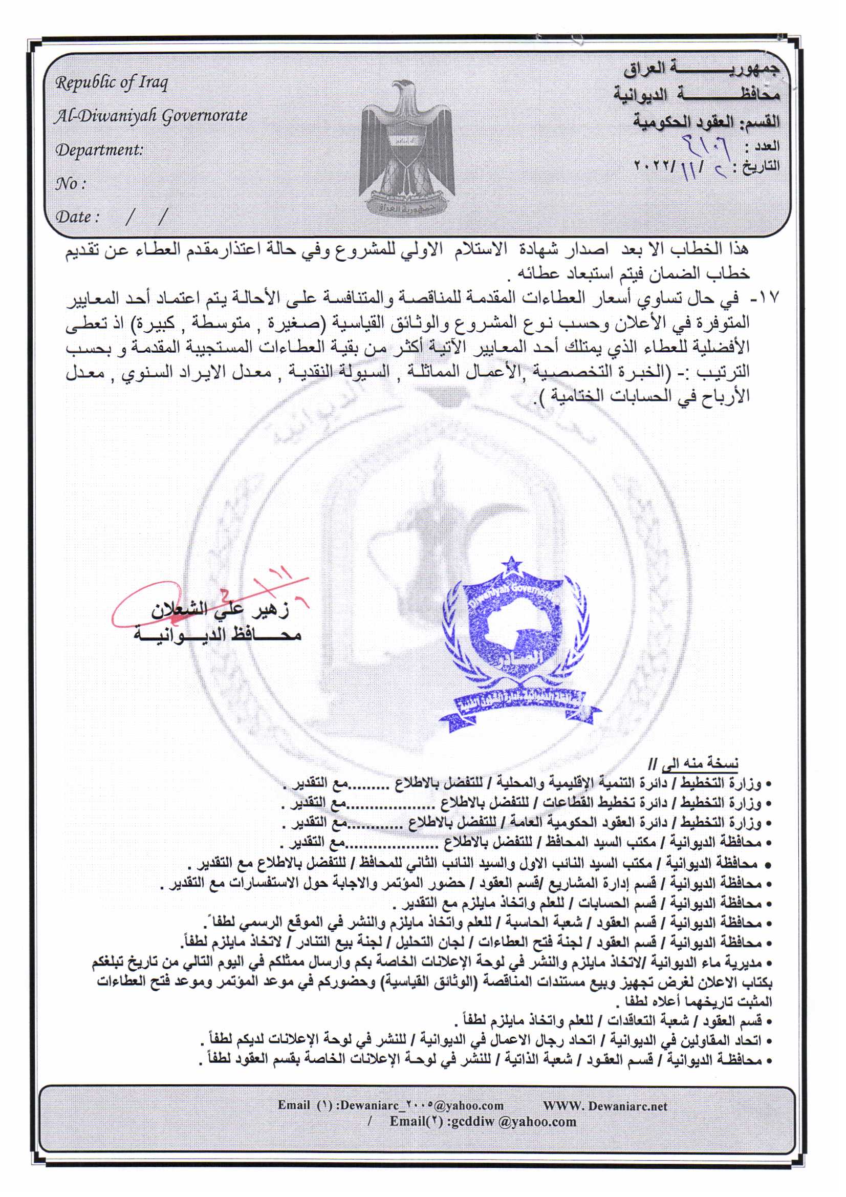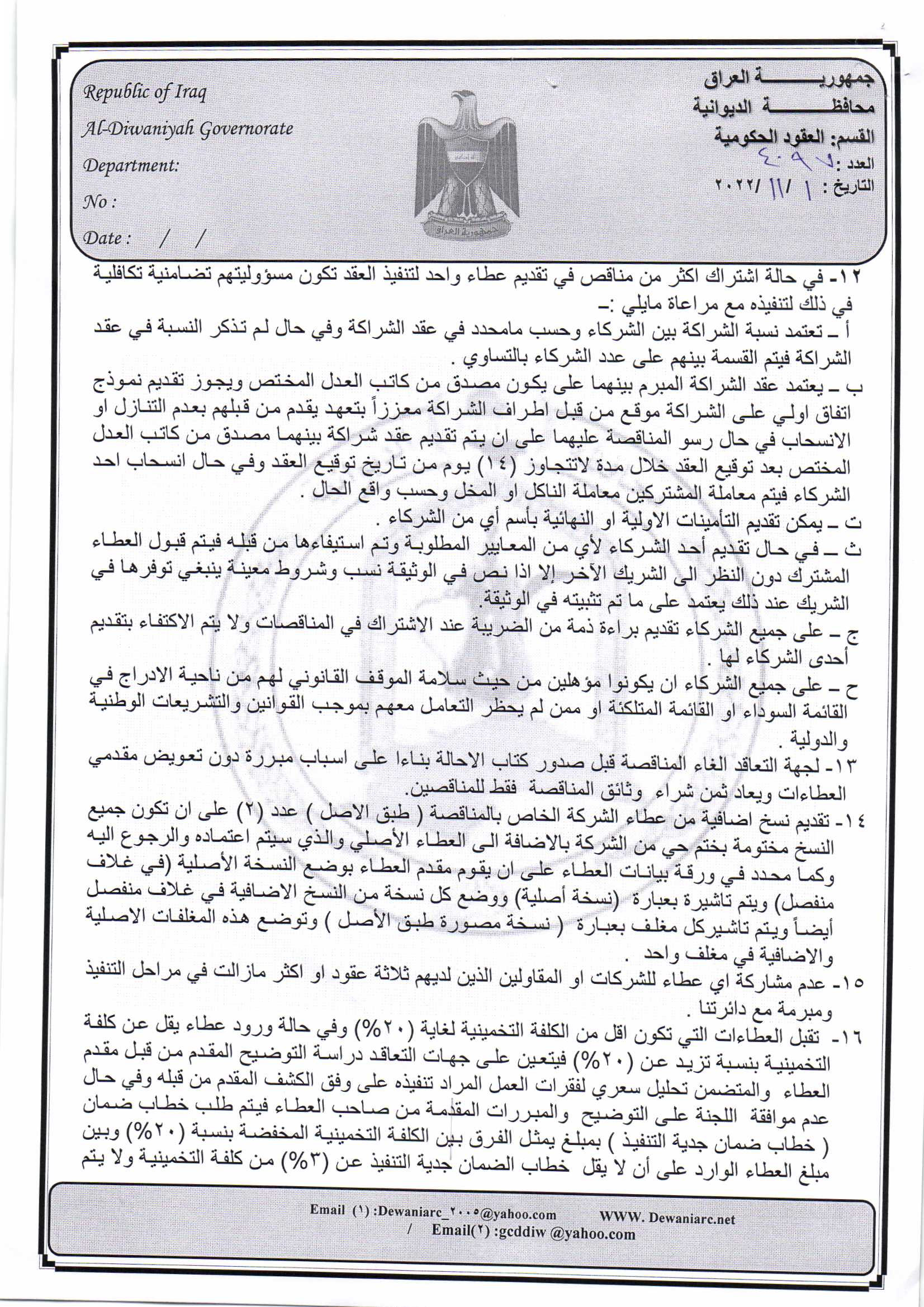﴿ إعلان مناقصة (26) لسنة 2022