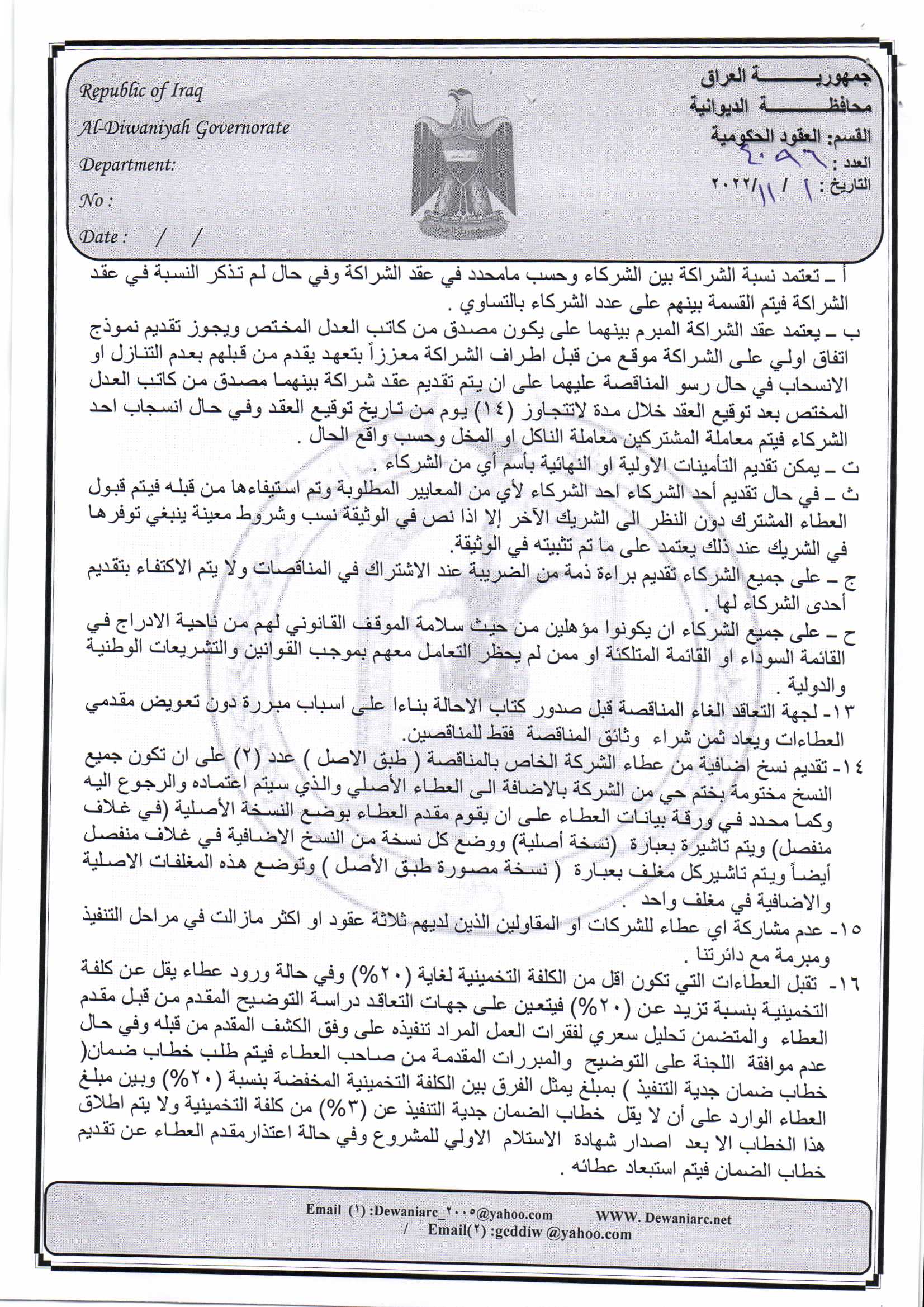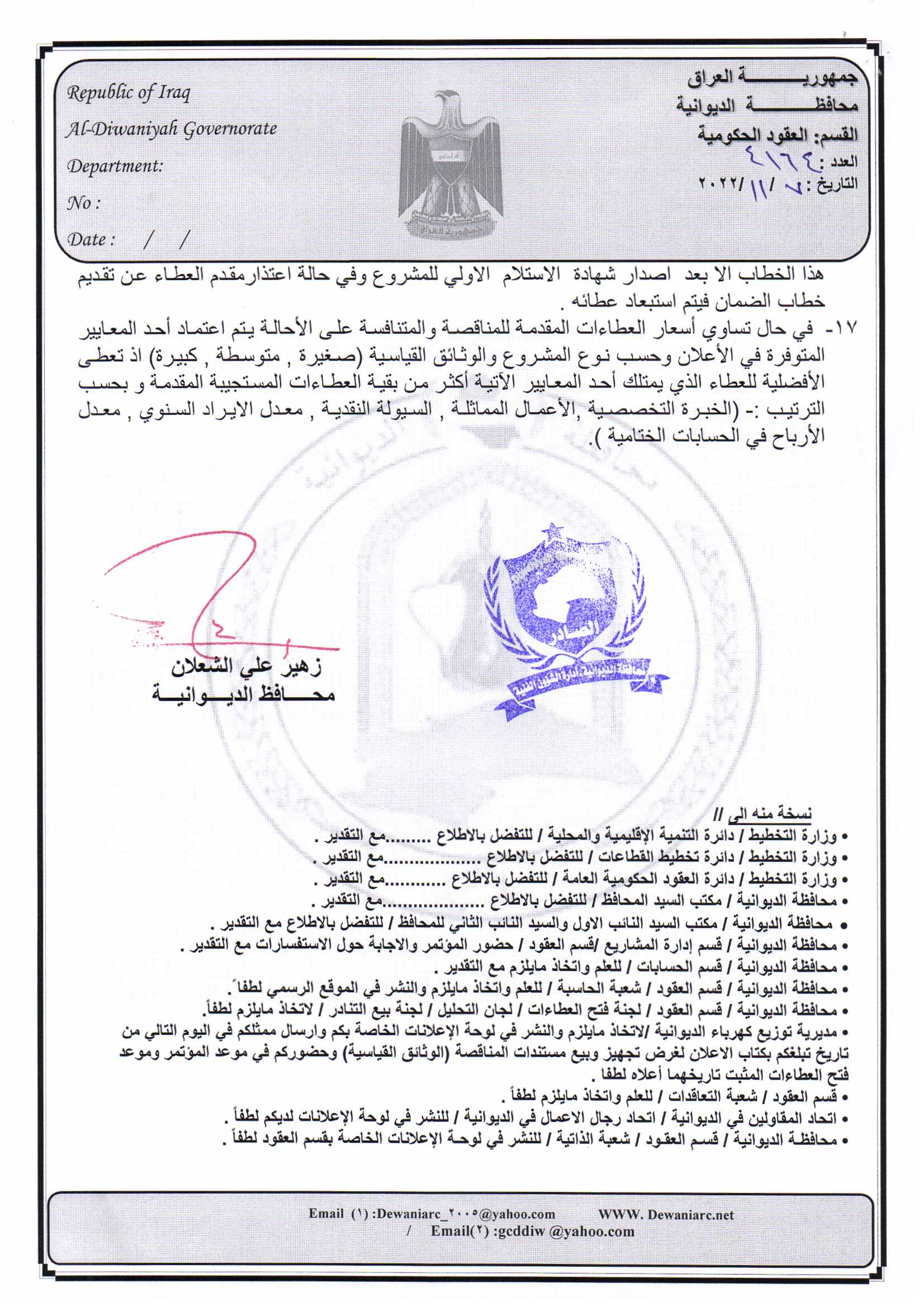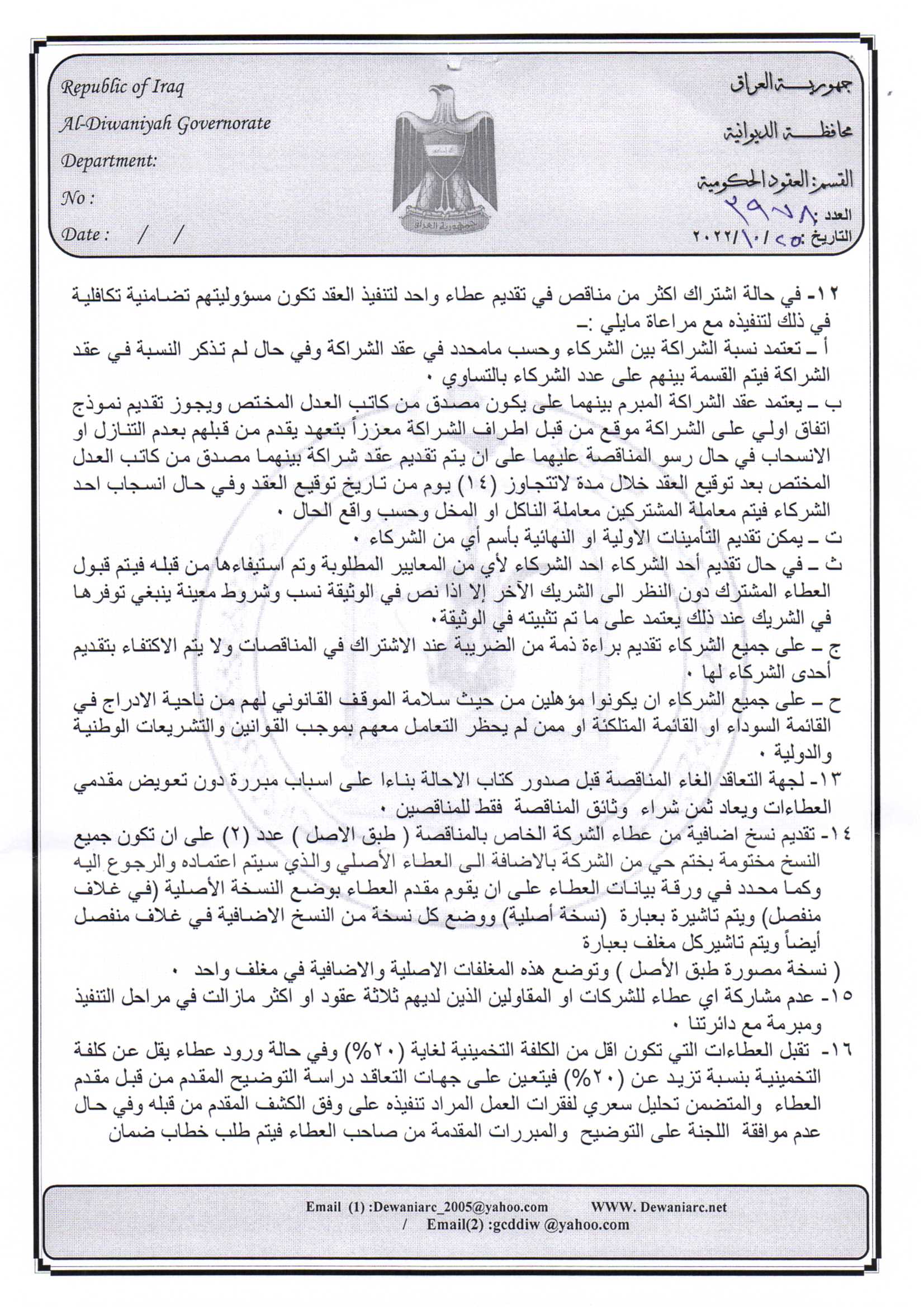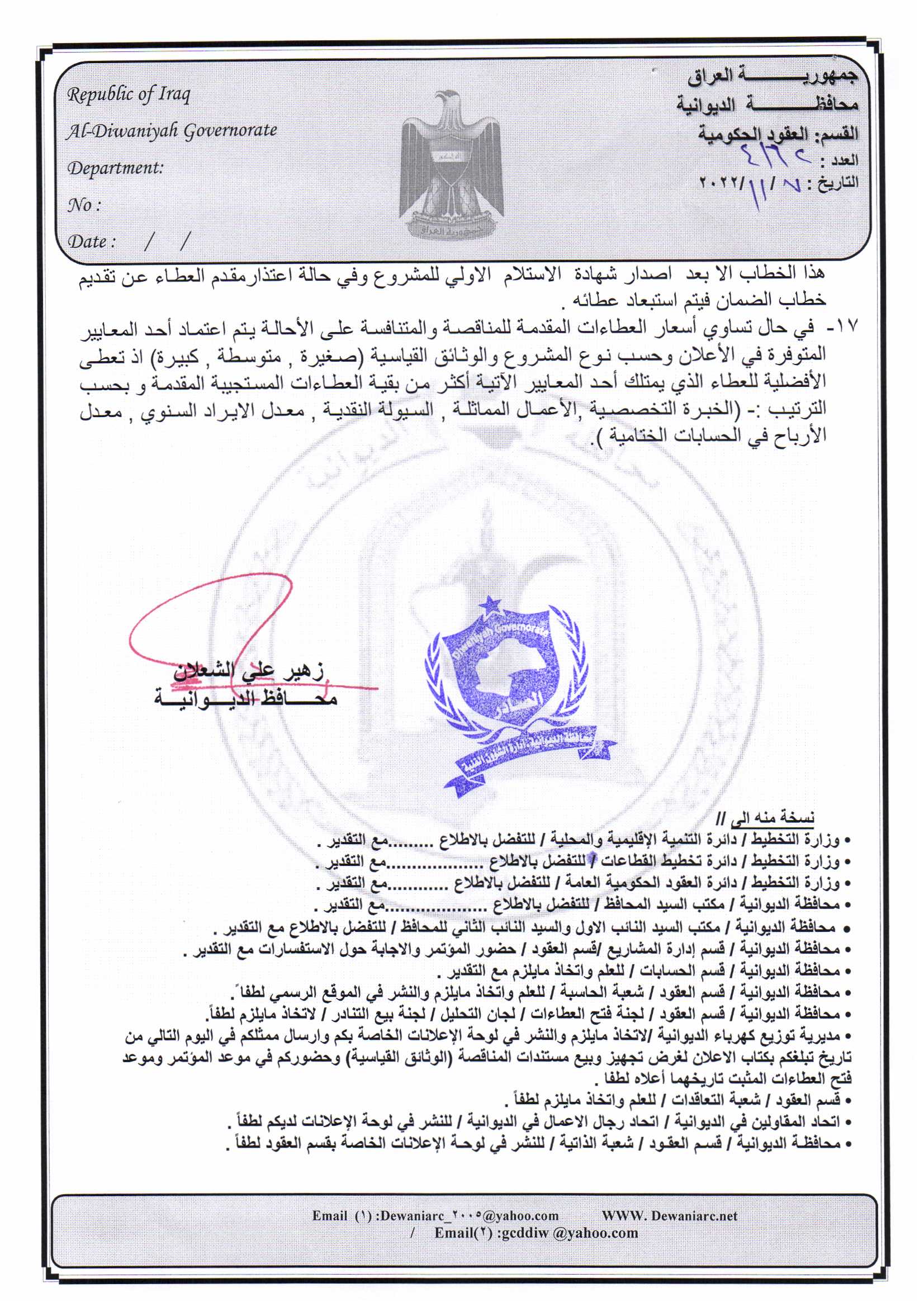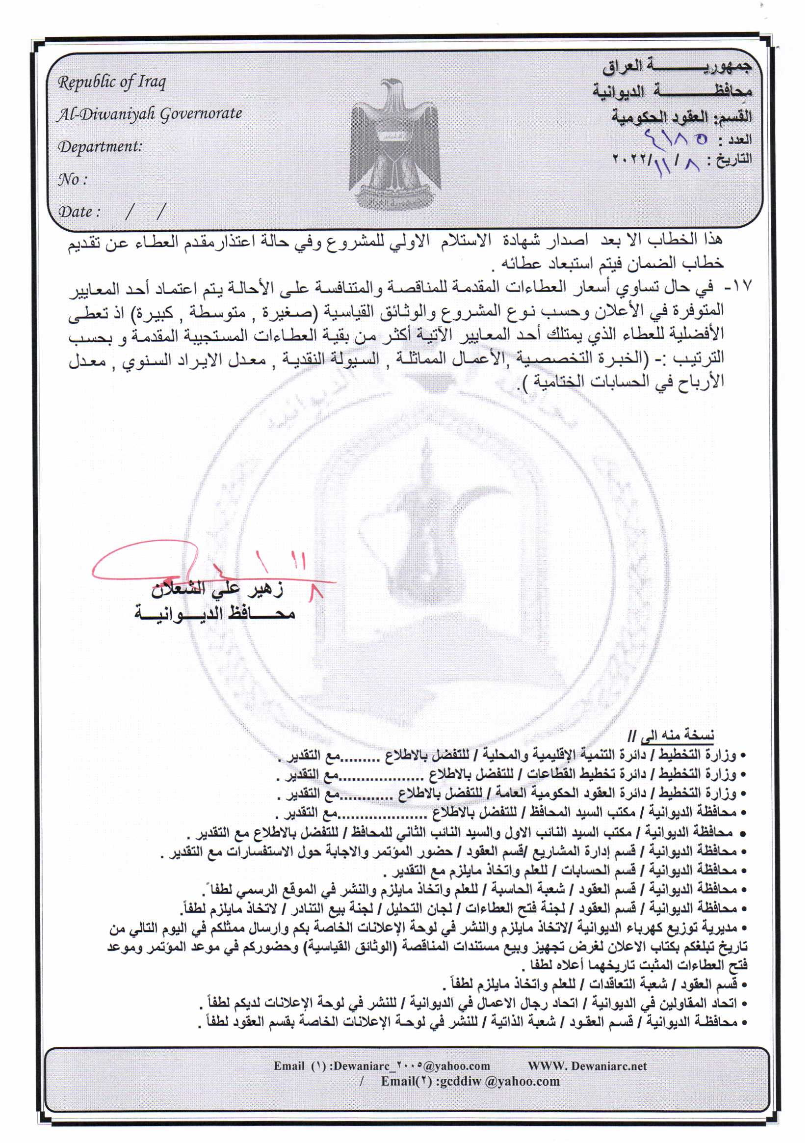 ﴿ إعلان مناقصة (26) لسنة 2022
