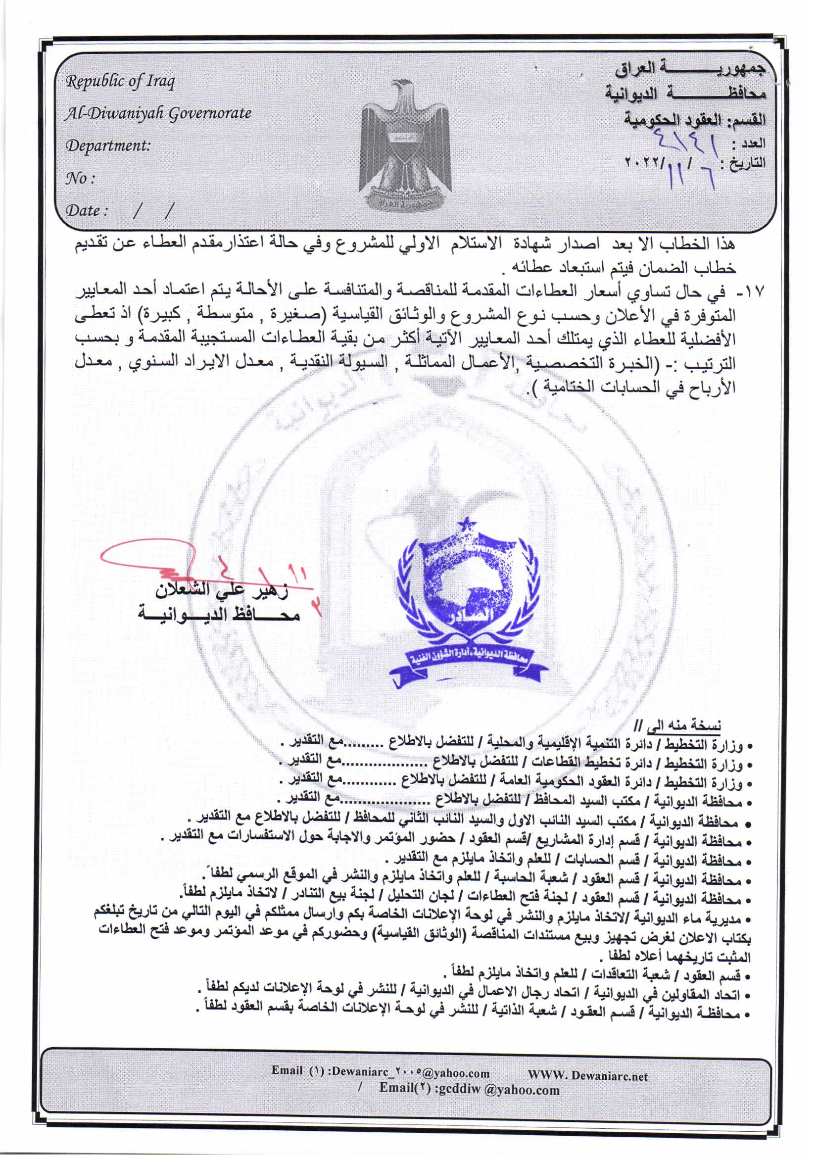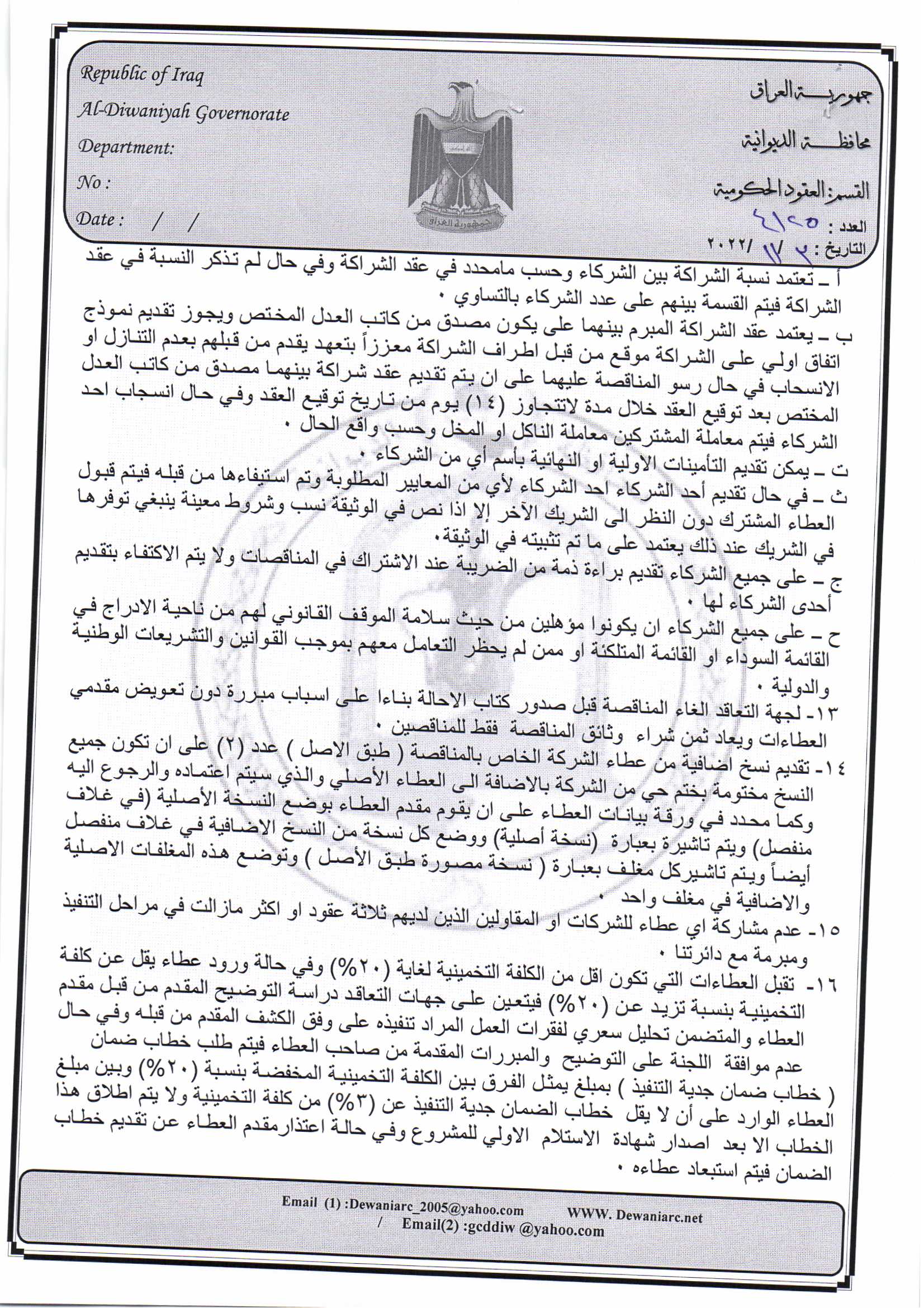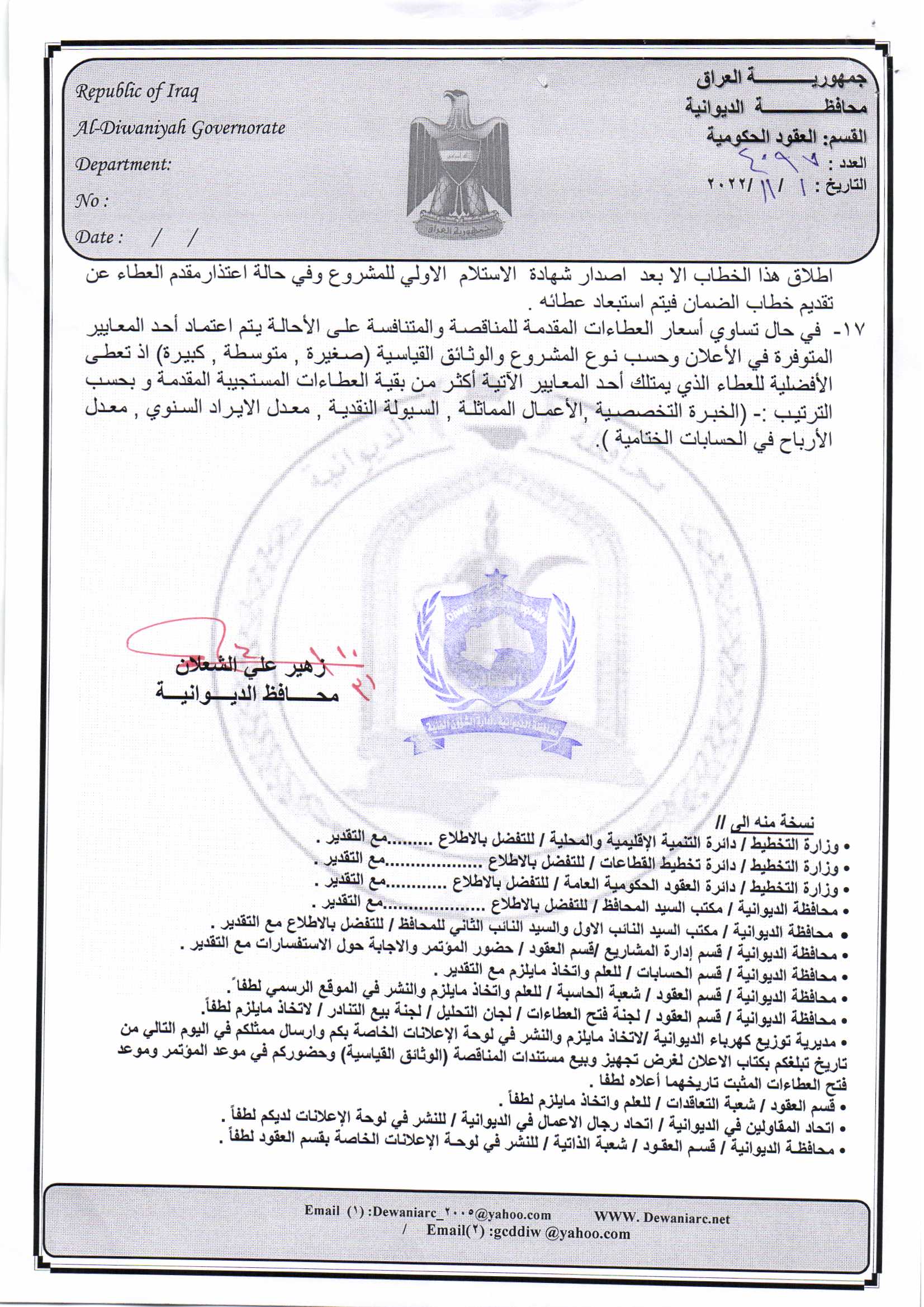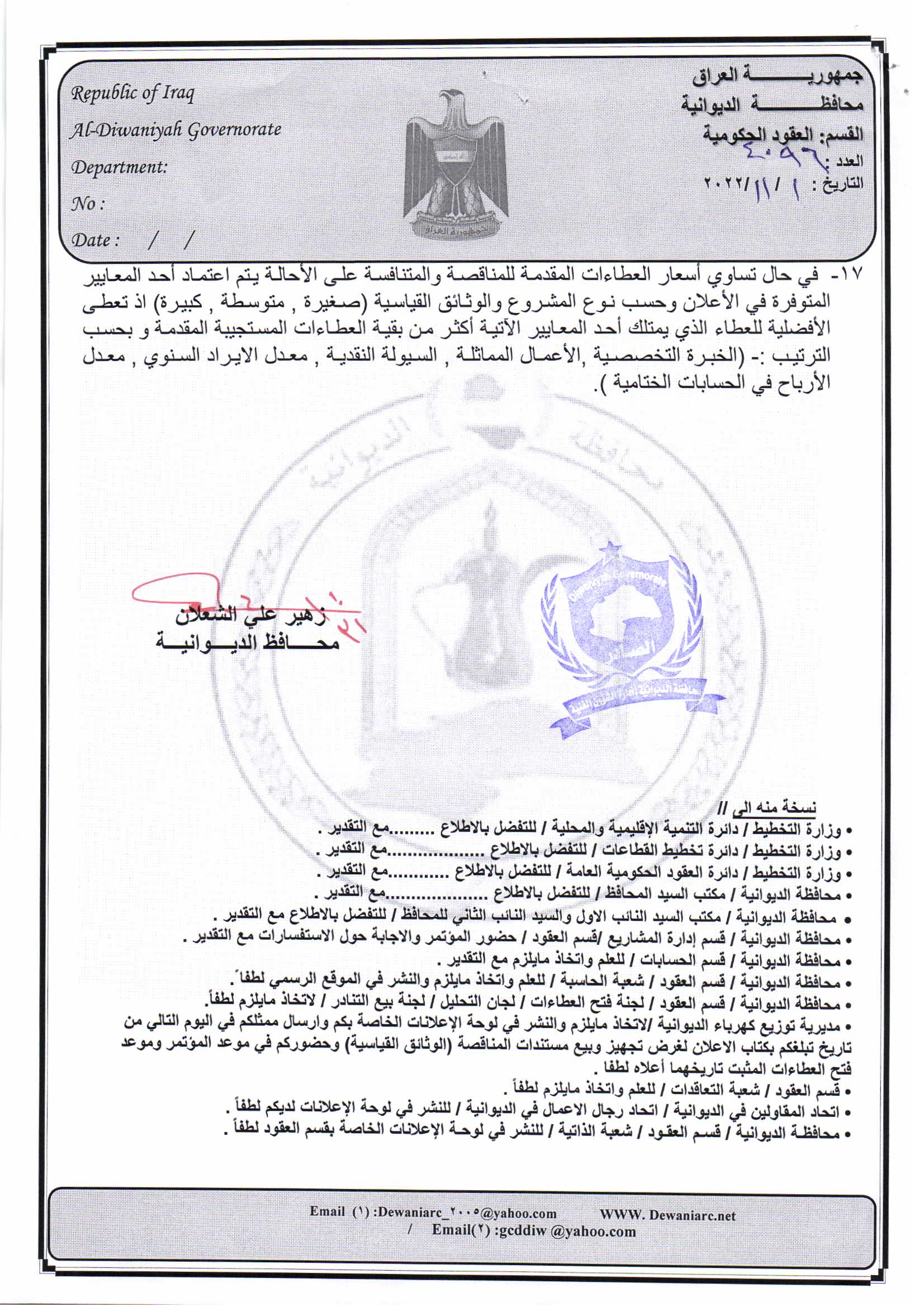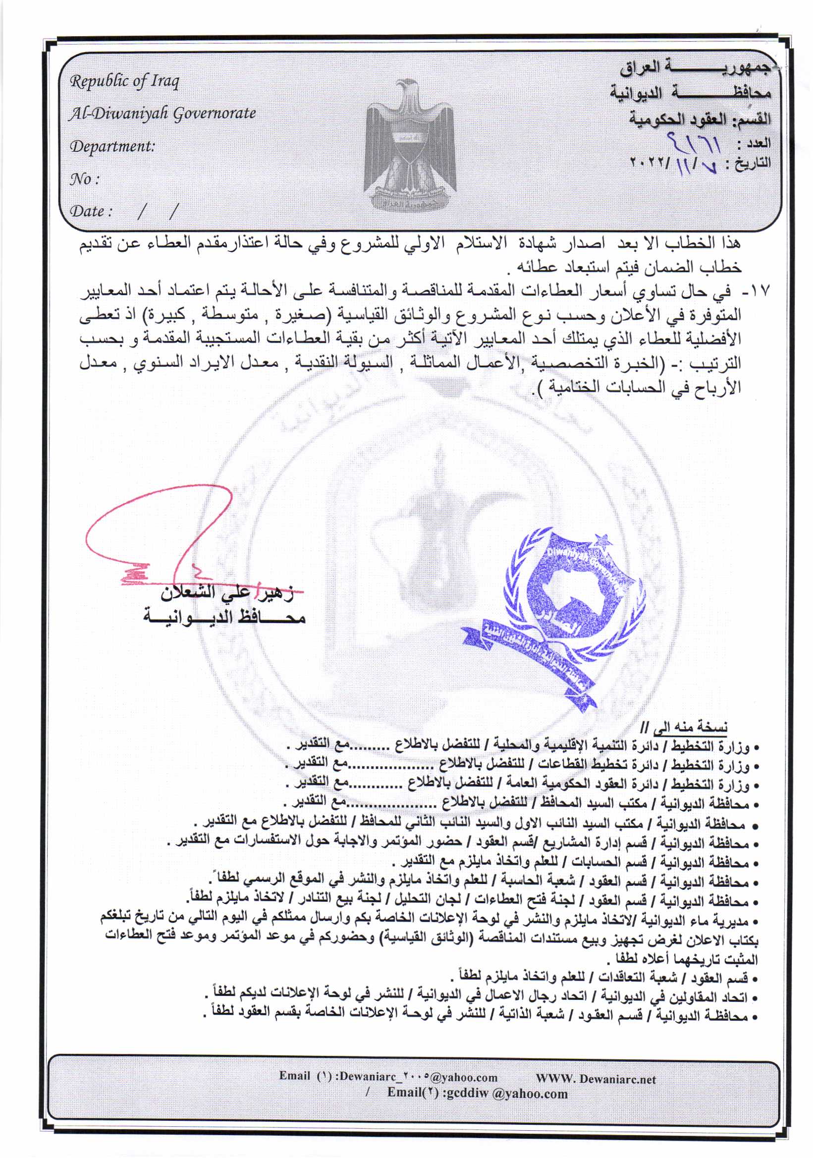 ﴿ إعلان مناقصة (26) لسنة 2022