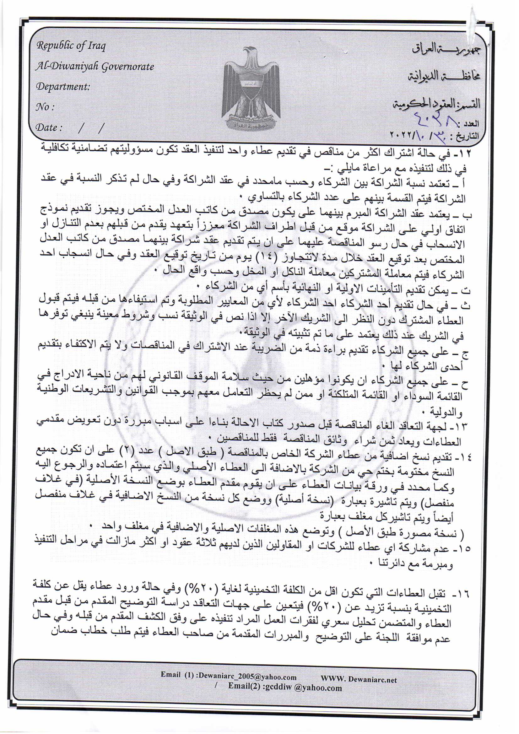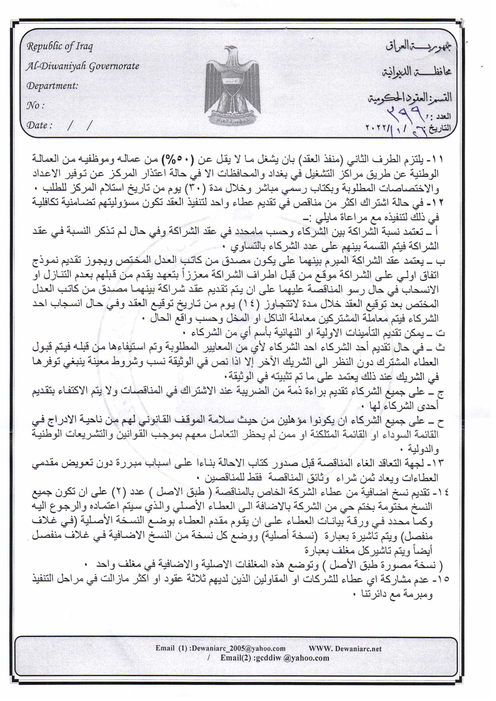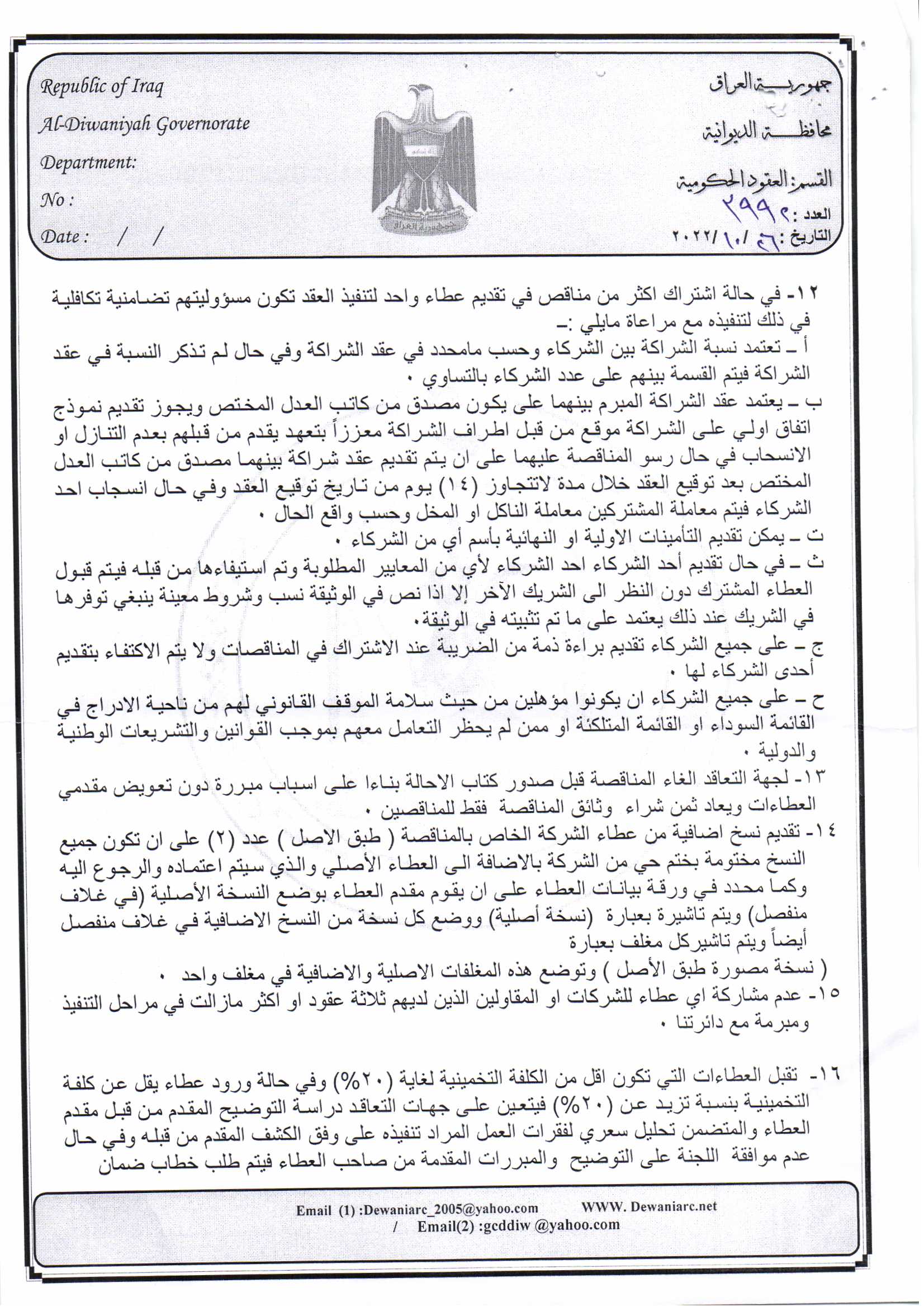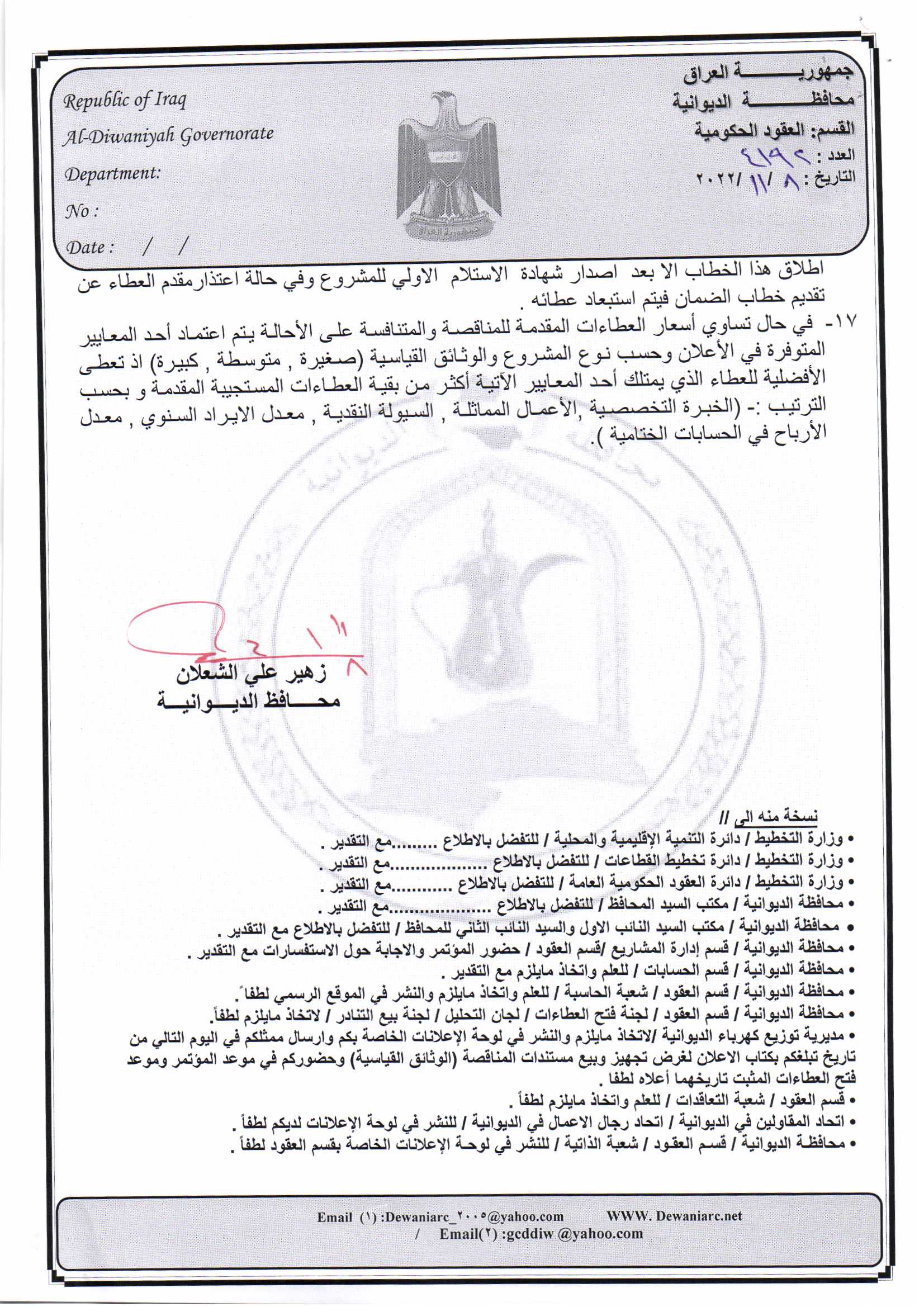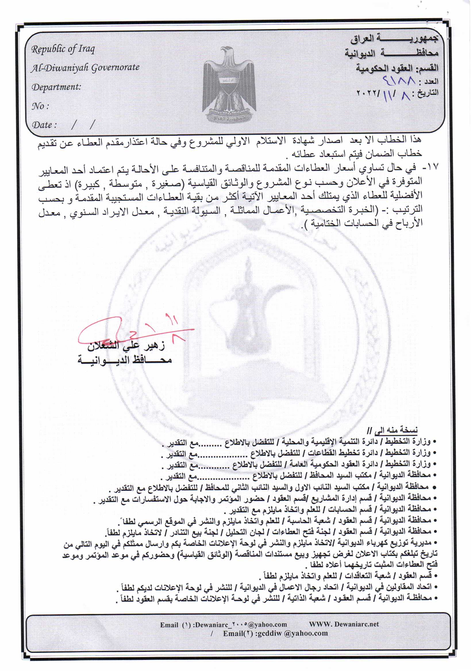 ﴿ إعلان مناقصة (26) لسنة 2022