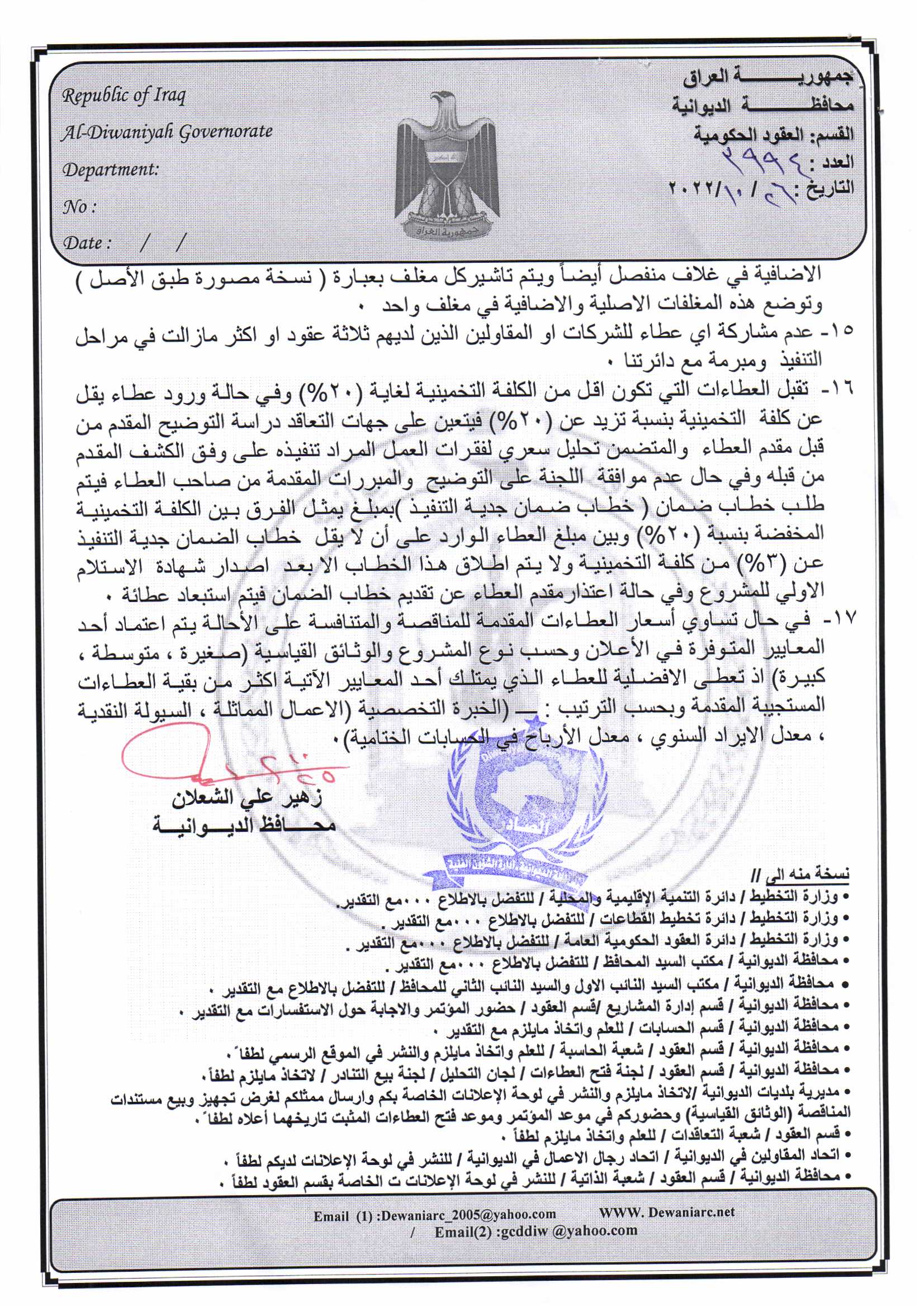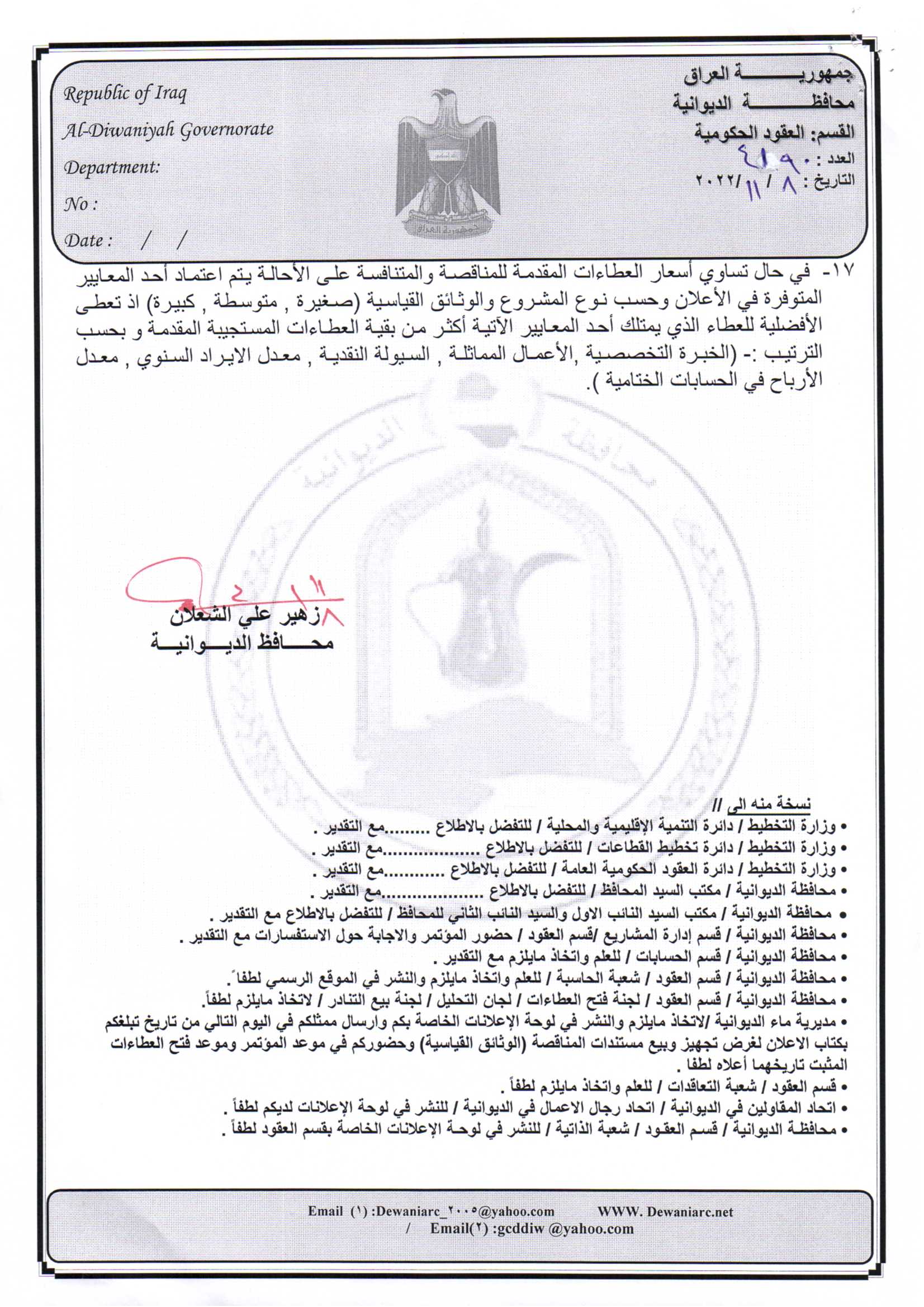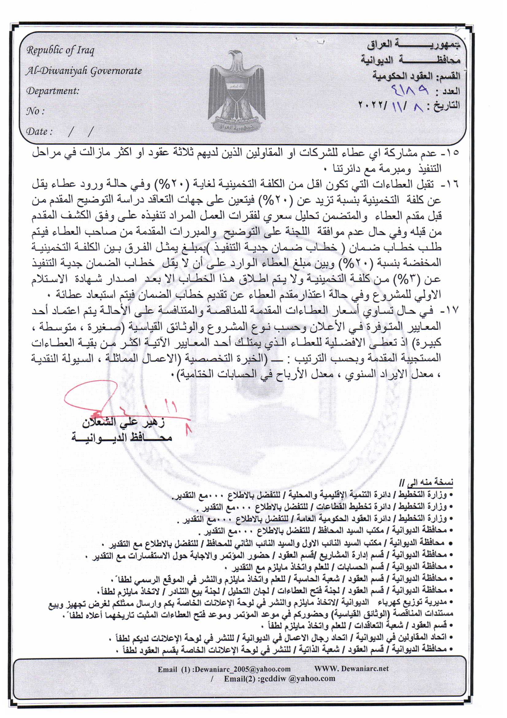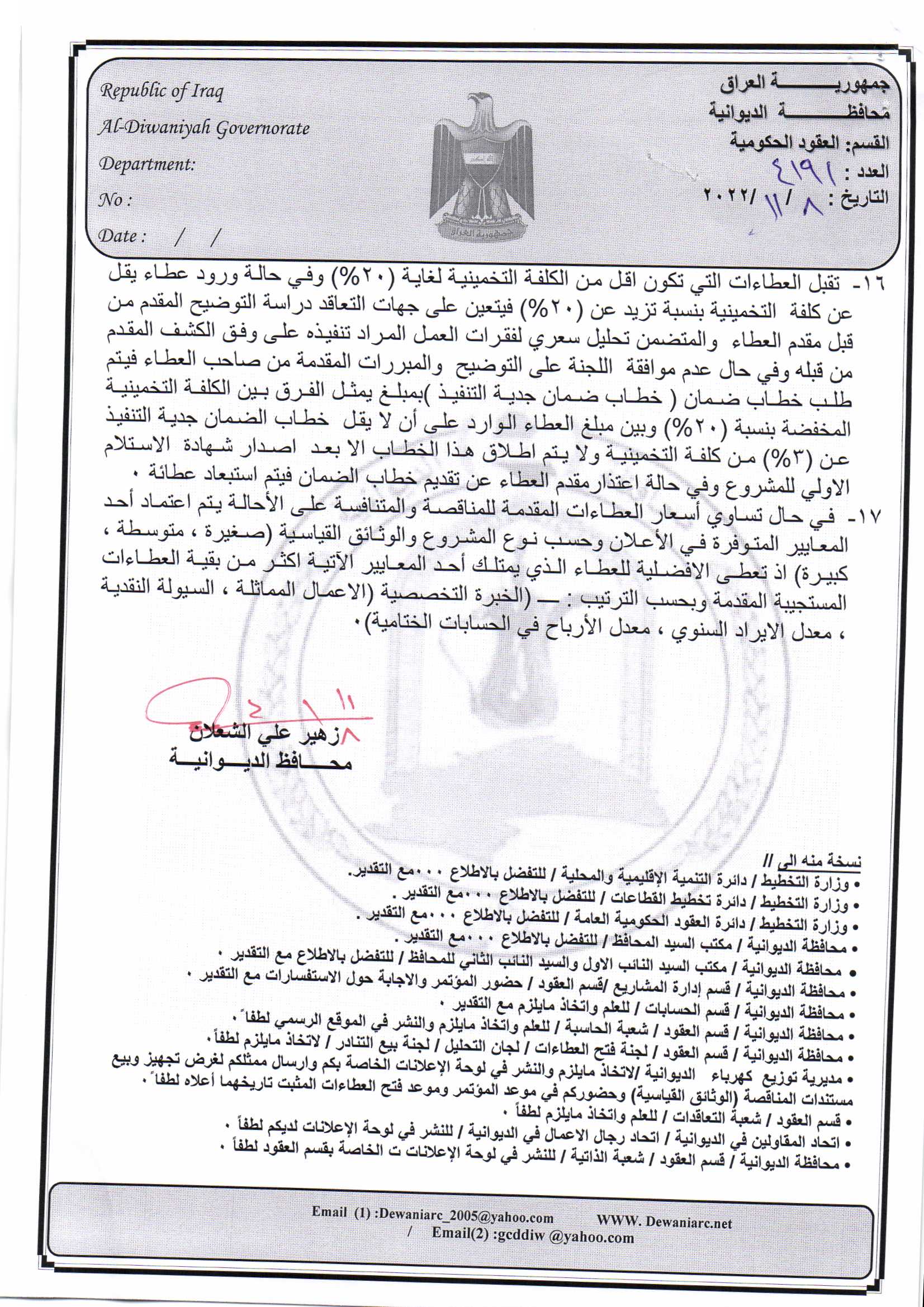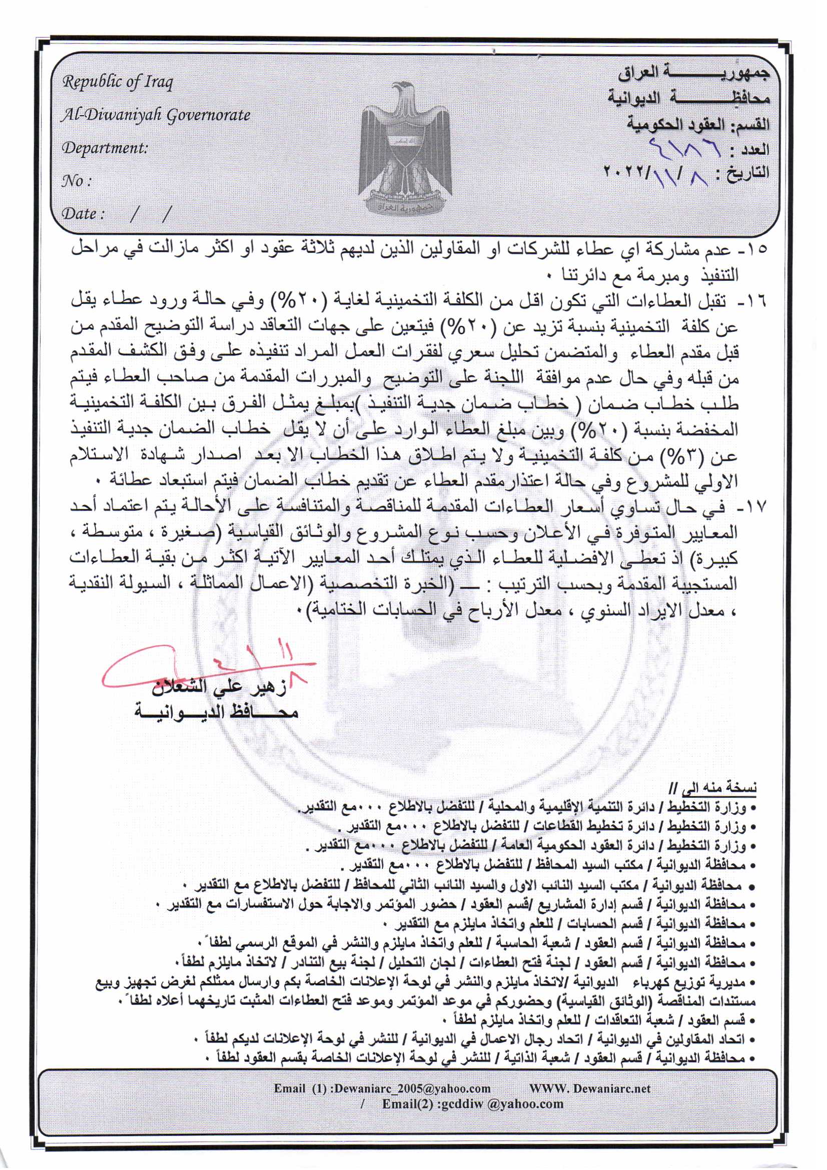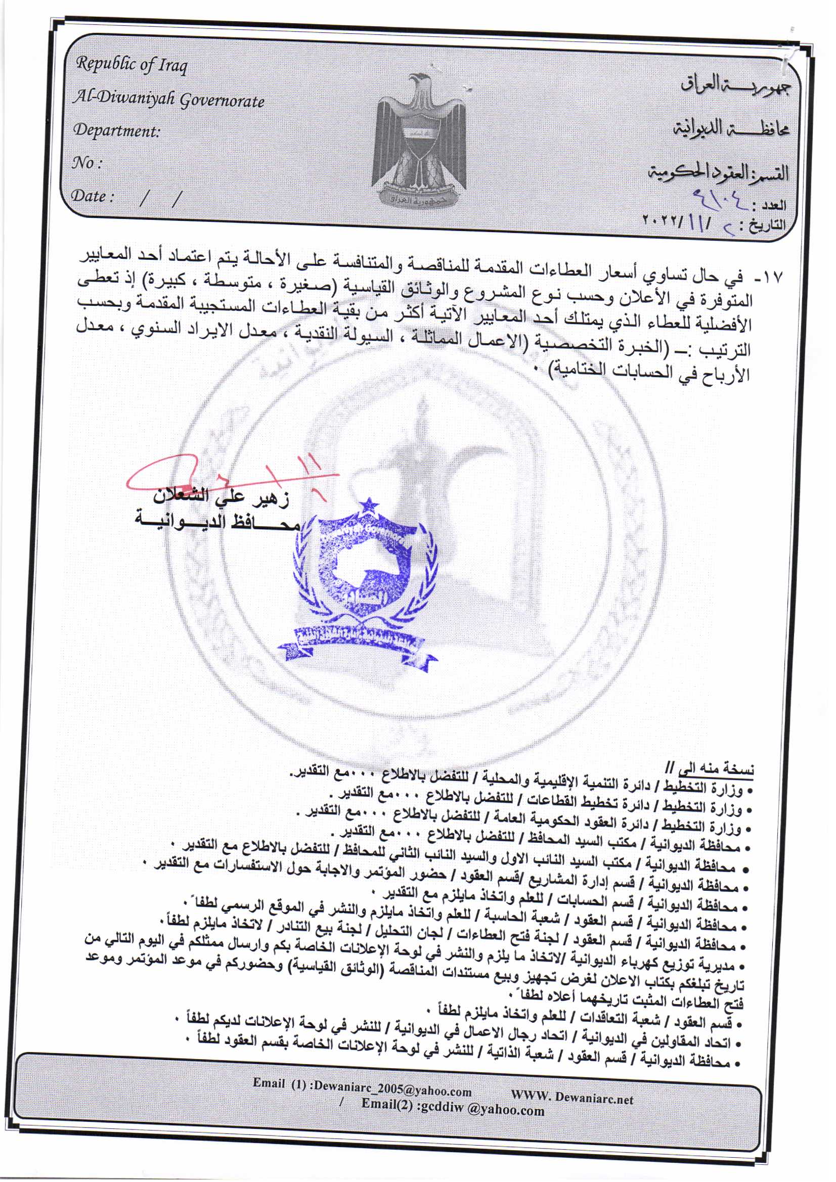﴿ إعلان مناقصة (26) لسنة 2022