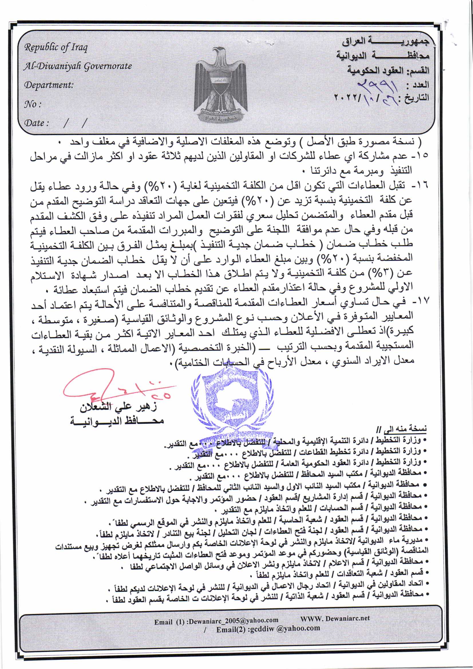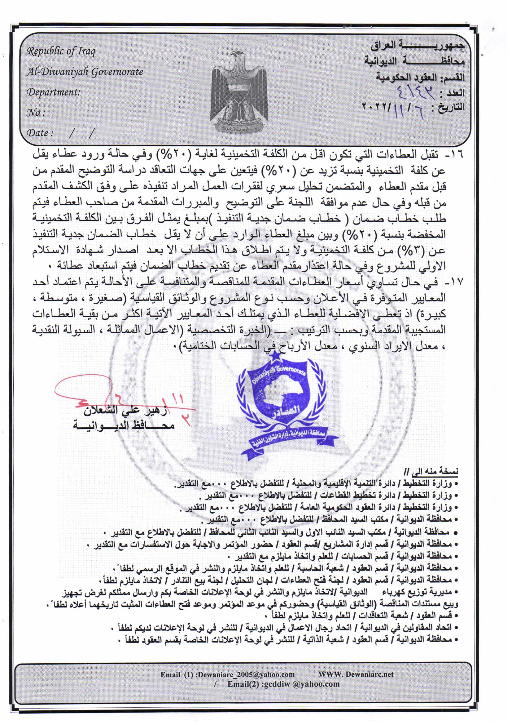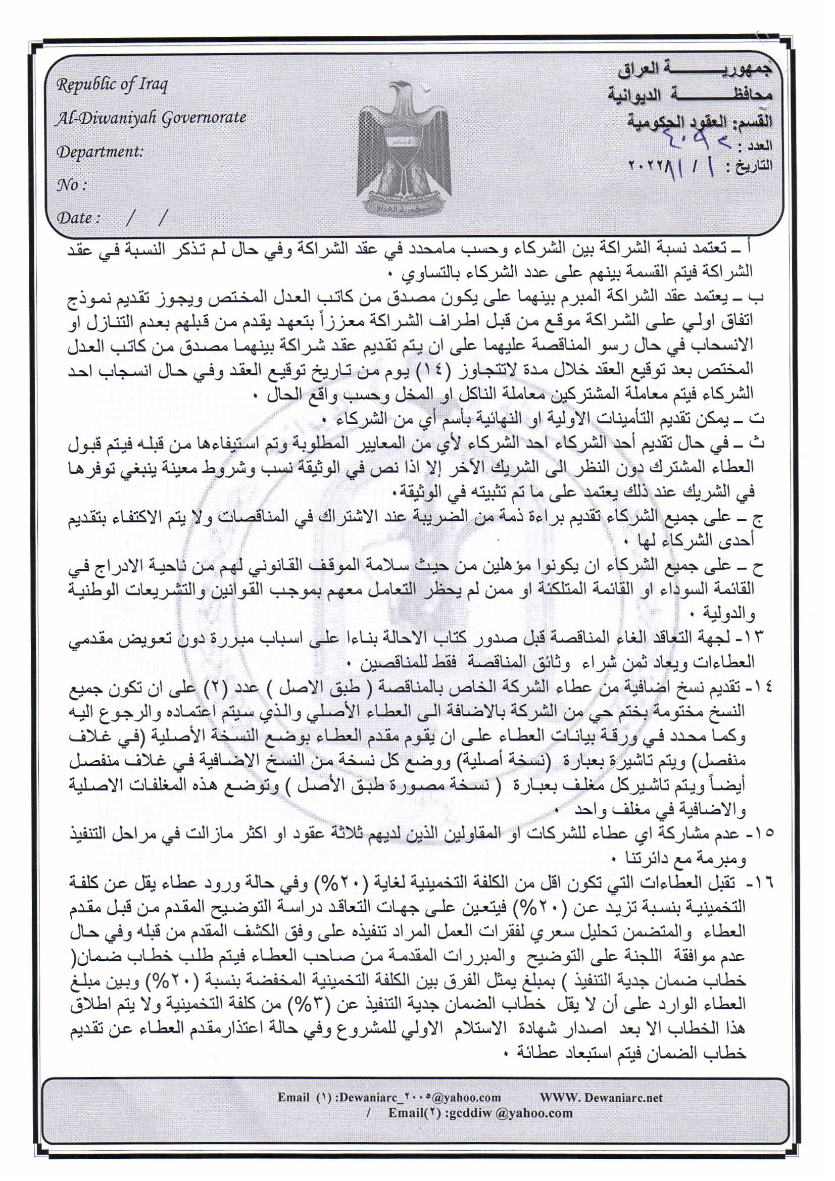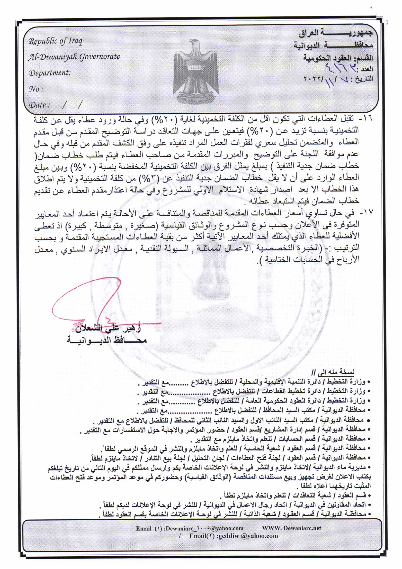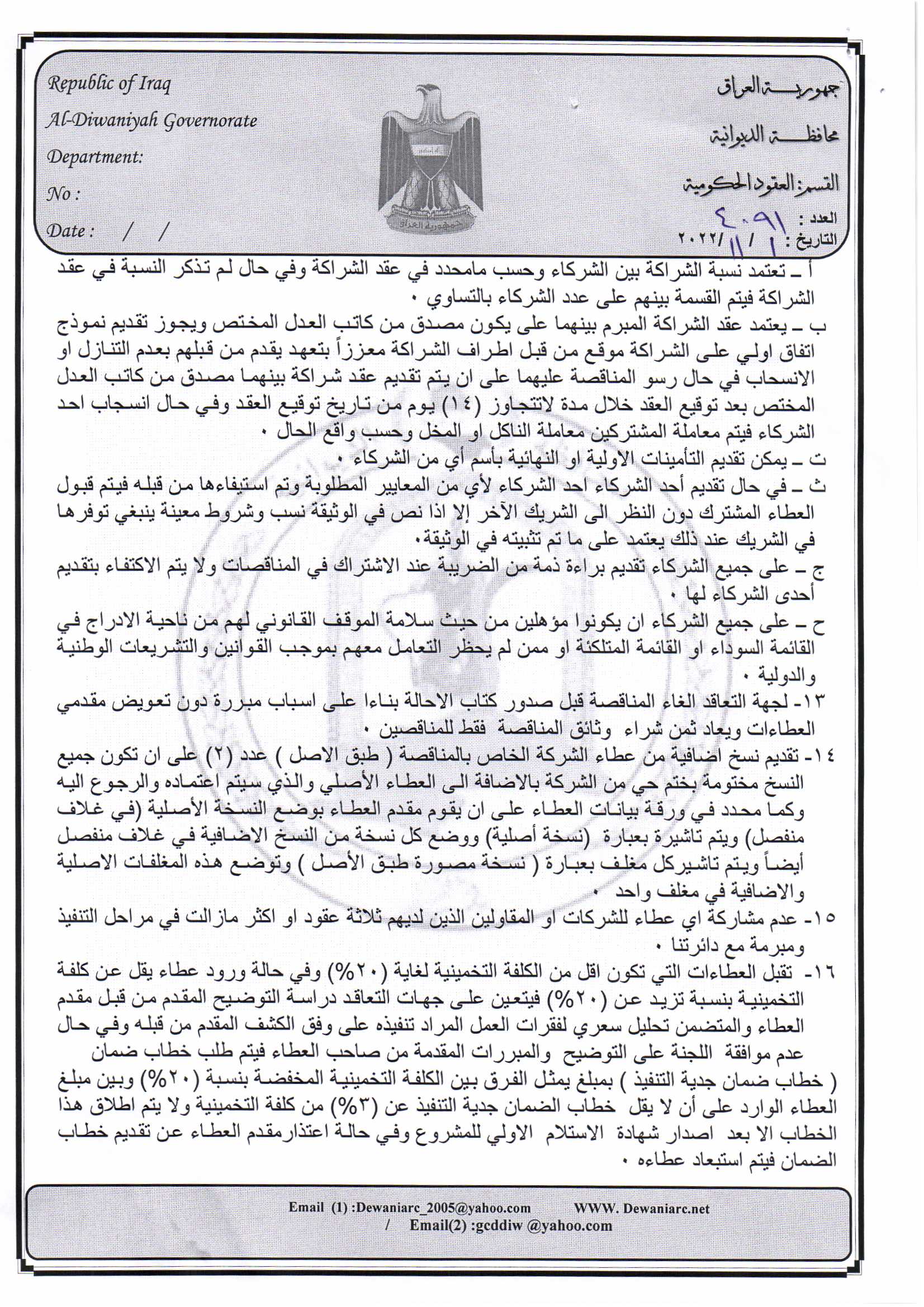 ﴿ إعلان مناقصة (26) لسنة 2022
