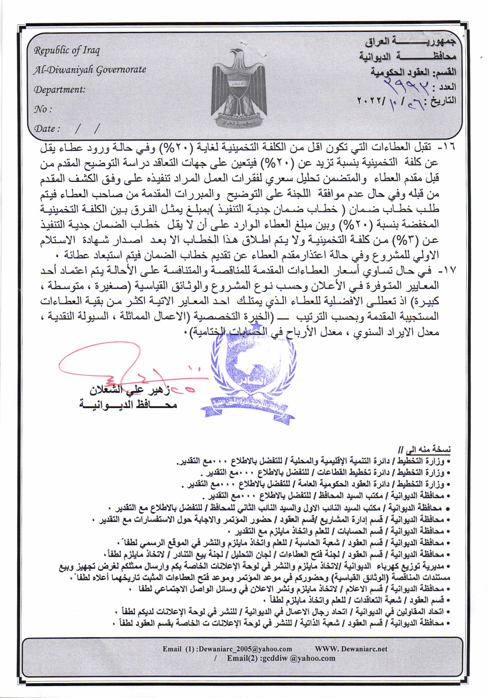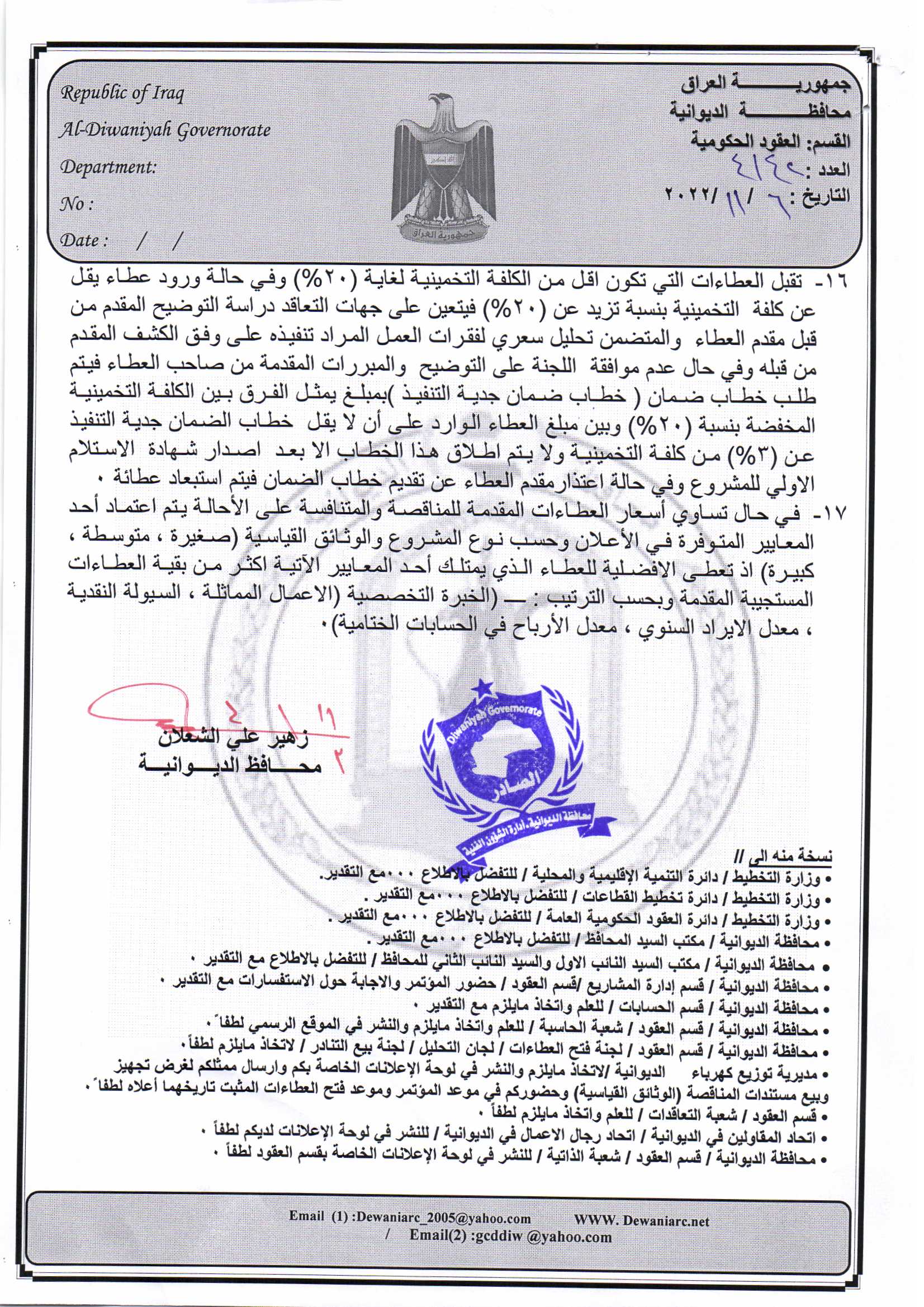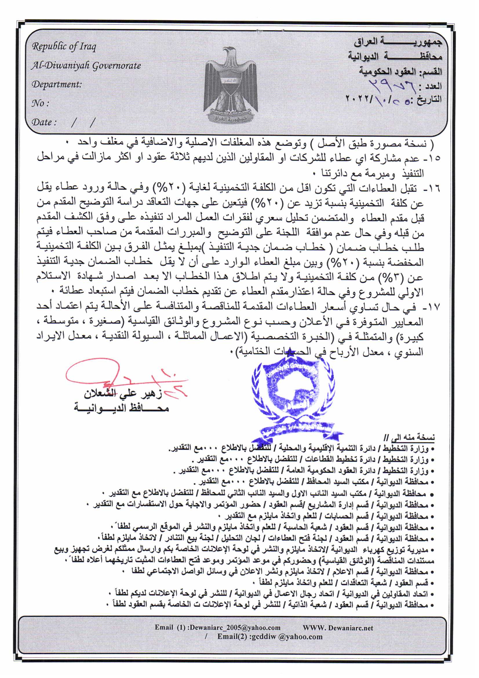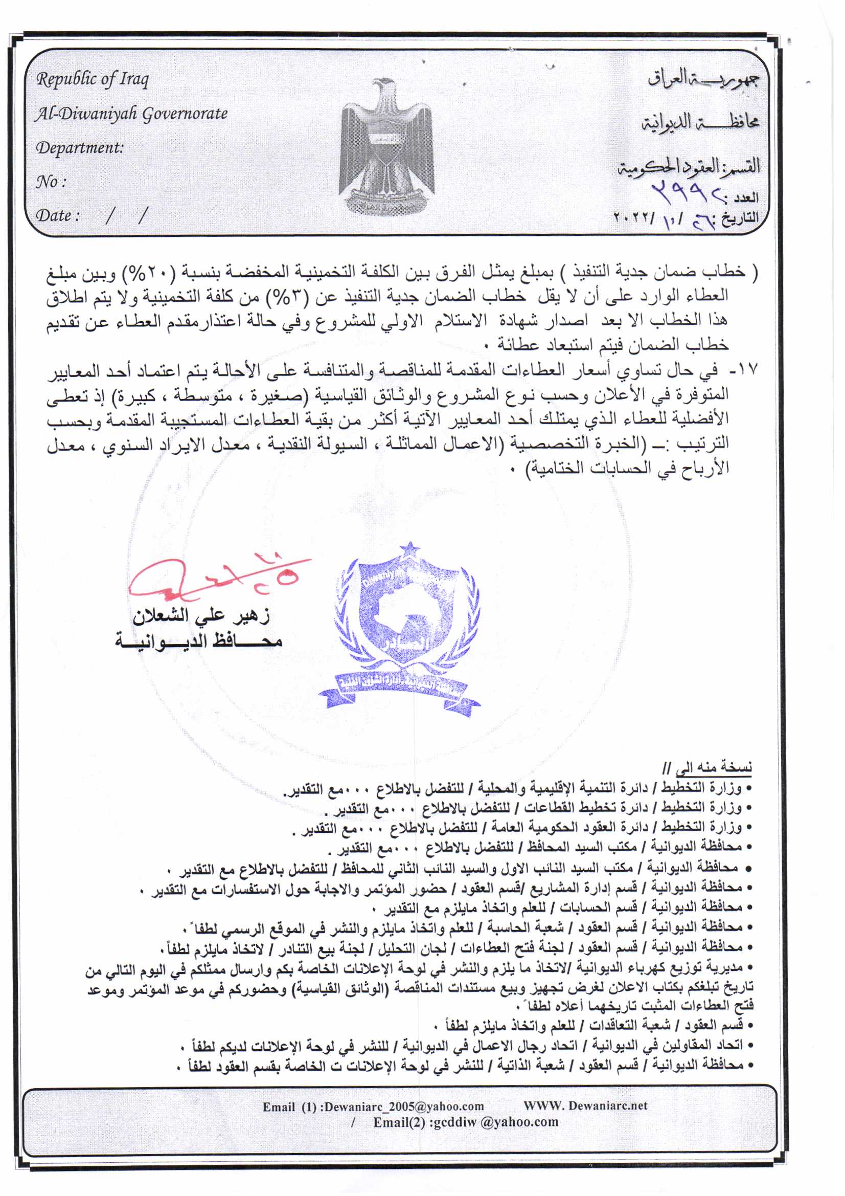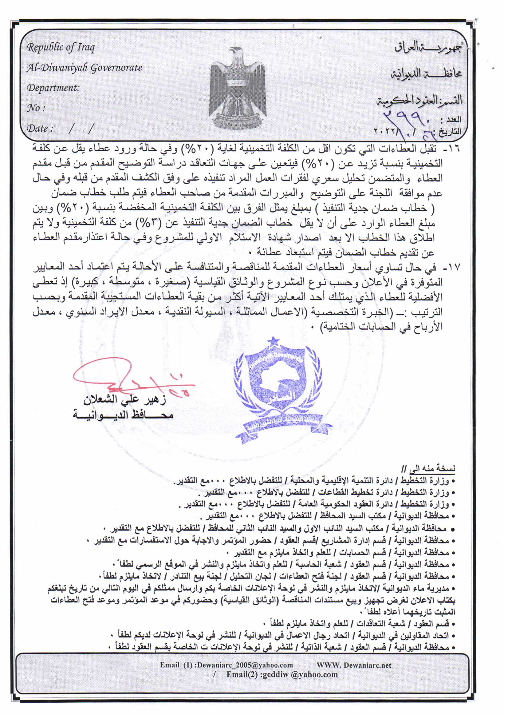 ﴿ إعلان مناقصة (26) لسنة 2022