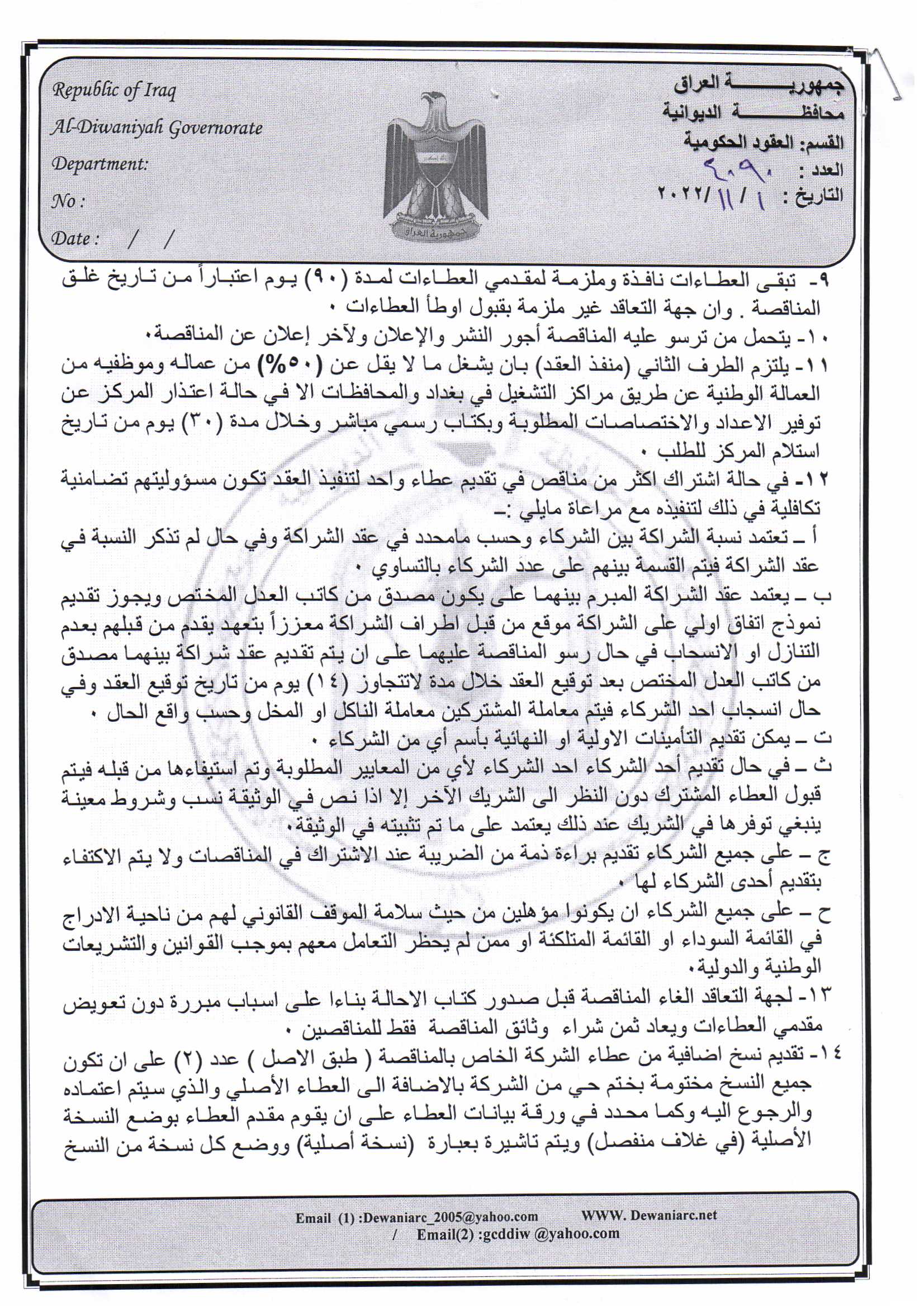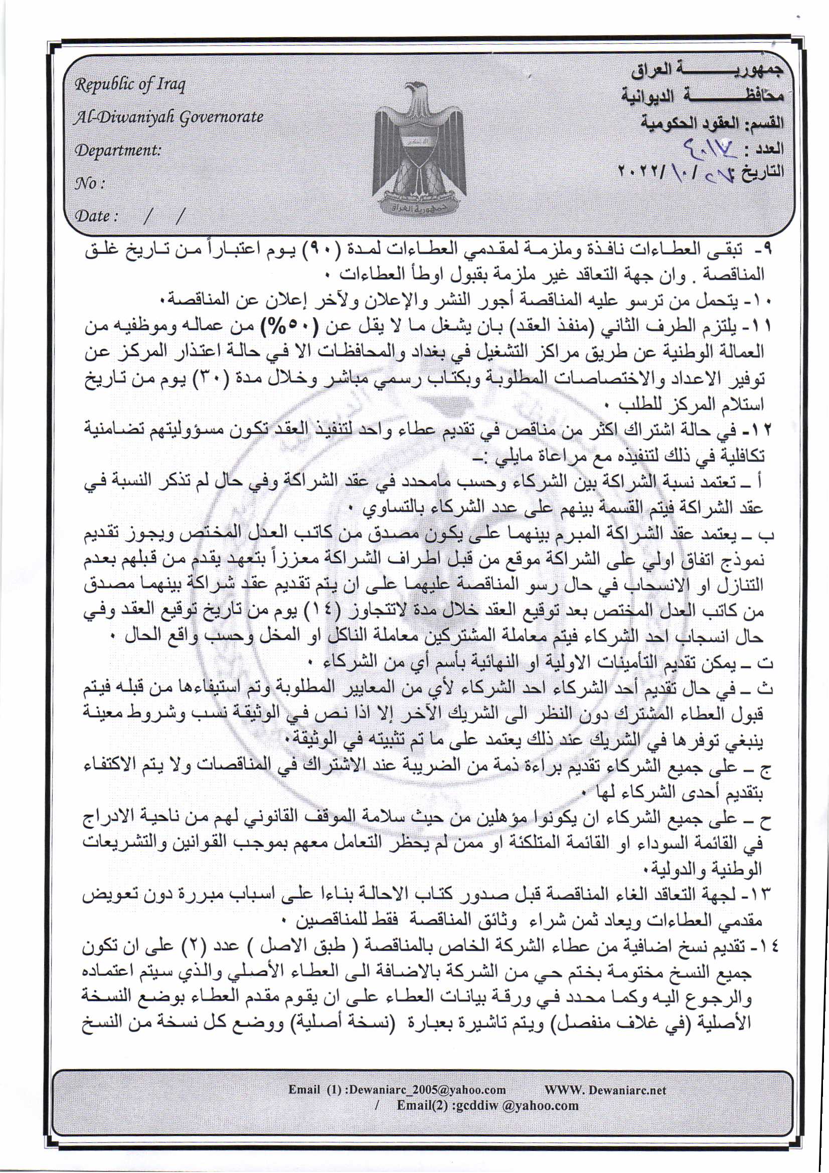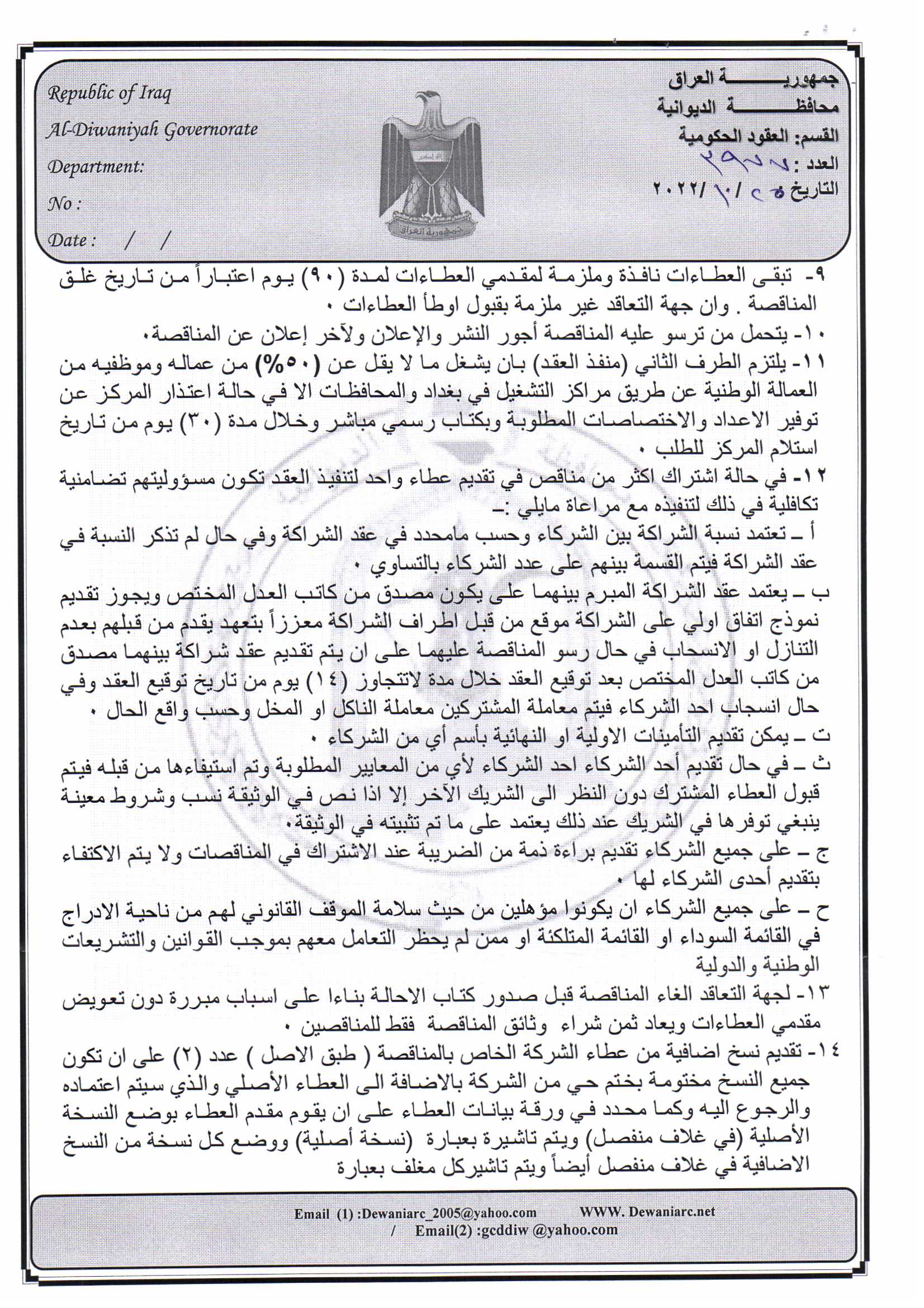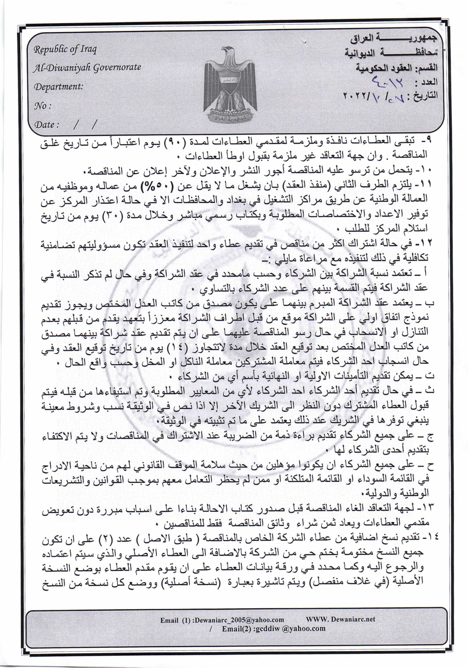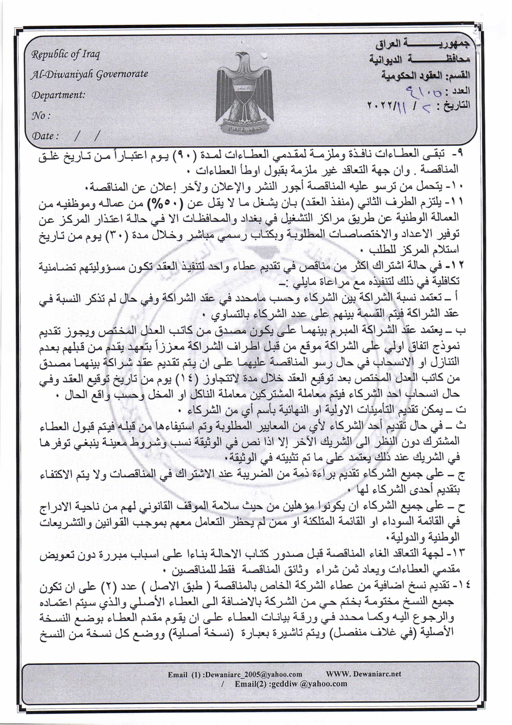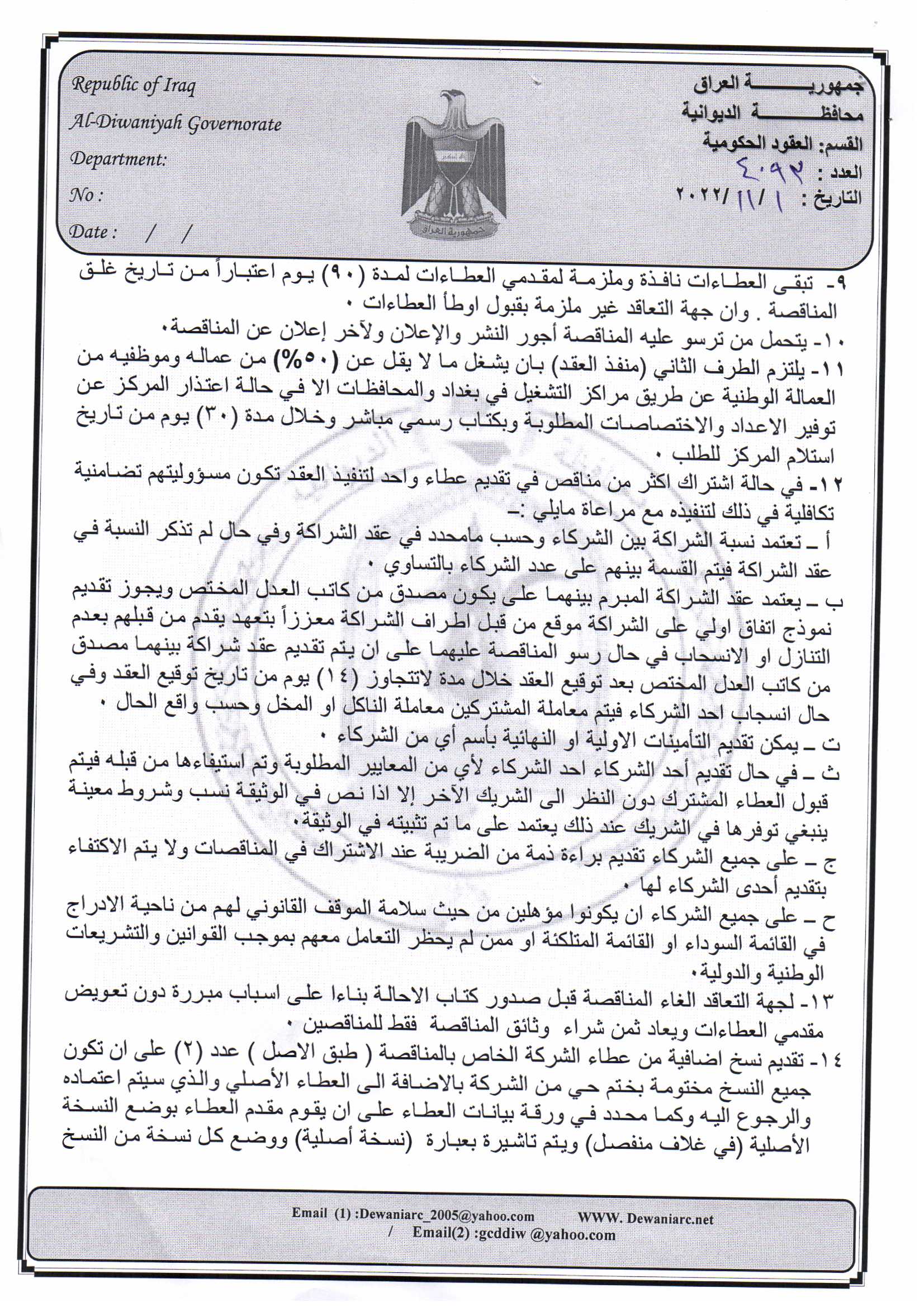﴿ إعلان مناقصة (9) لسنة 2022