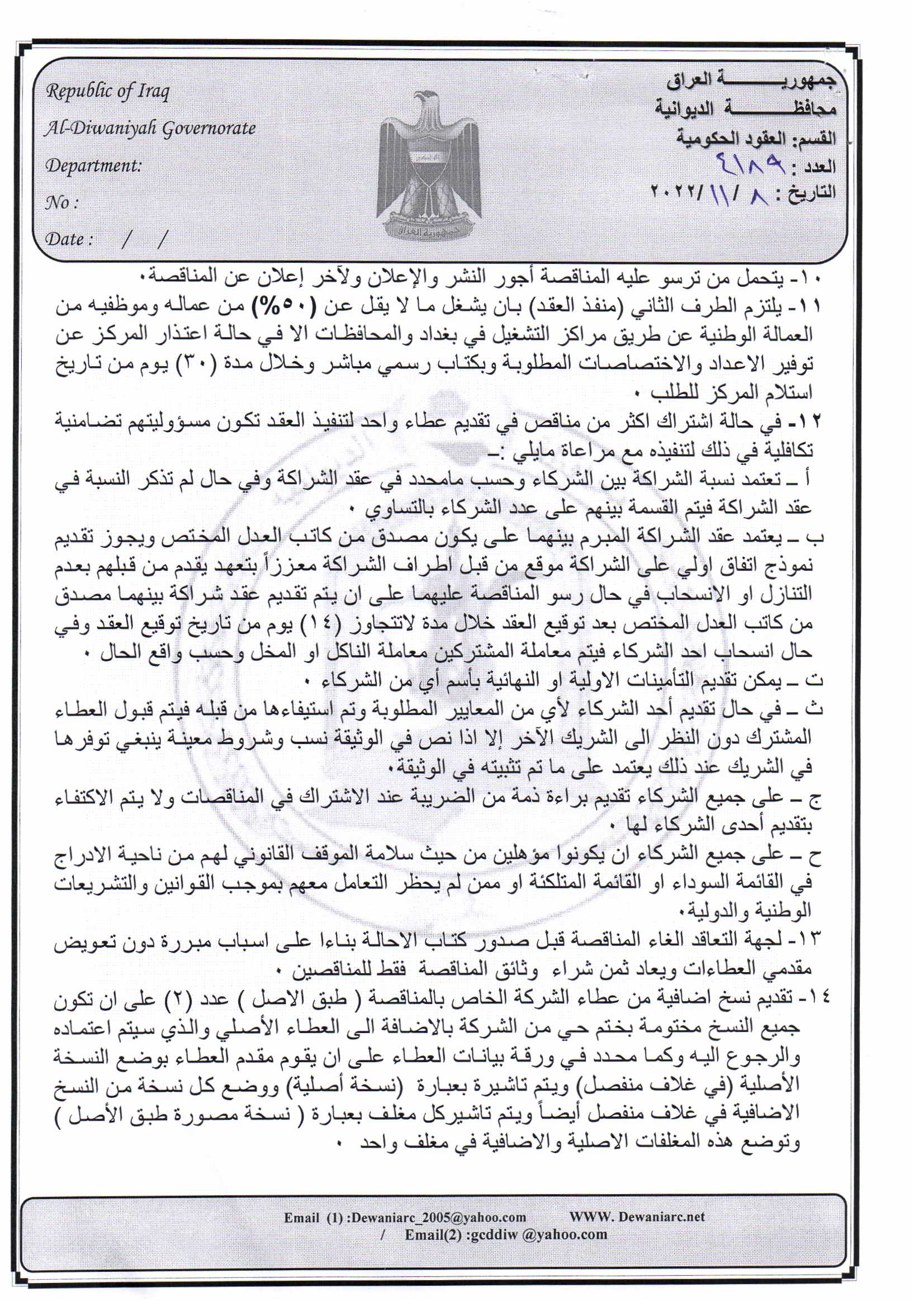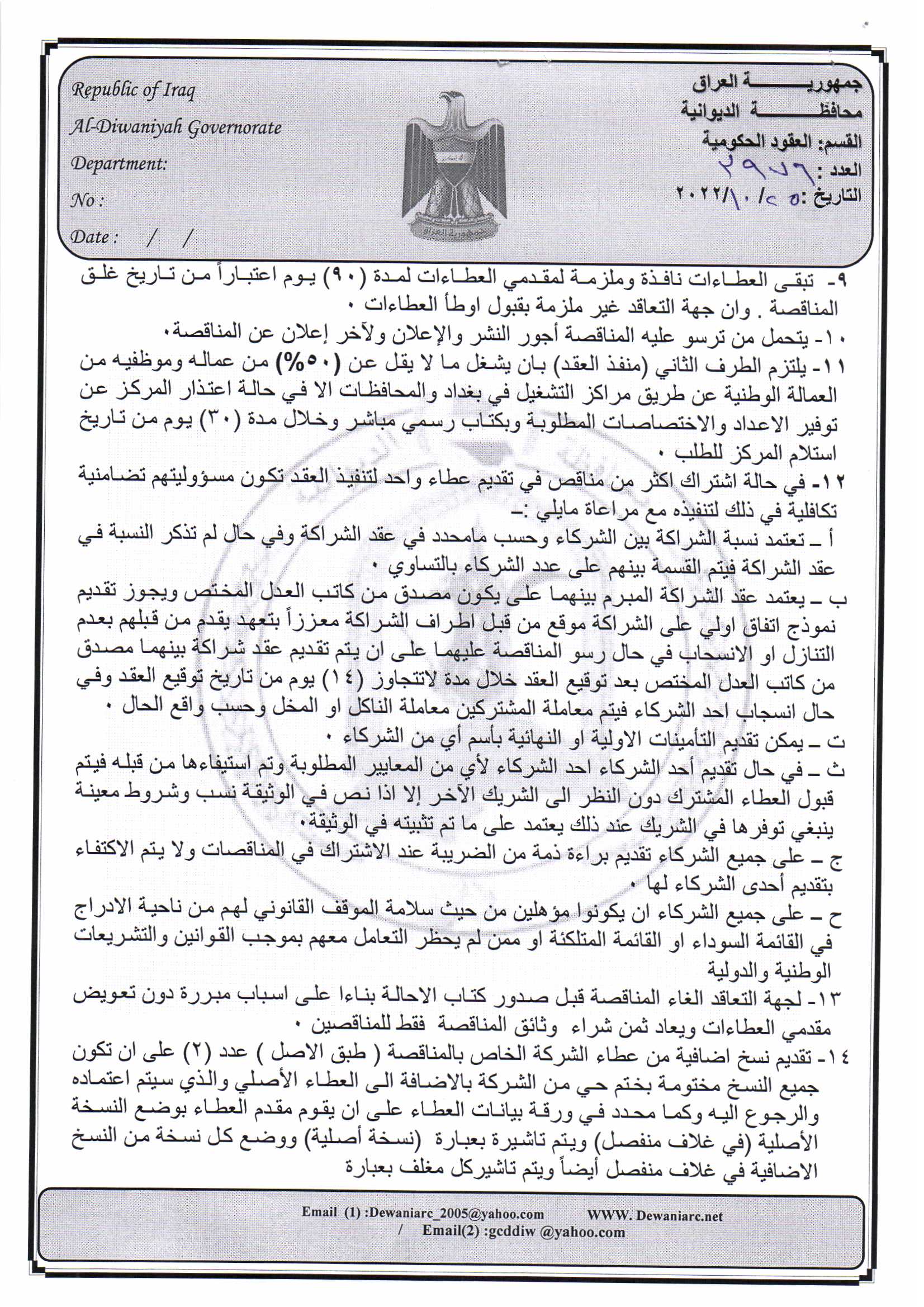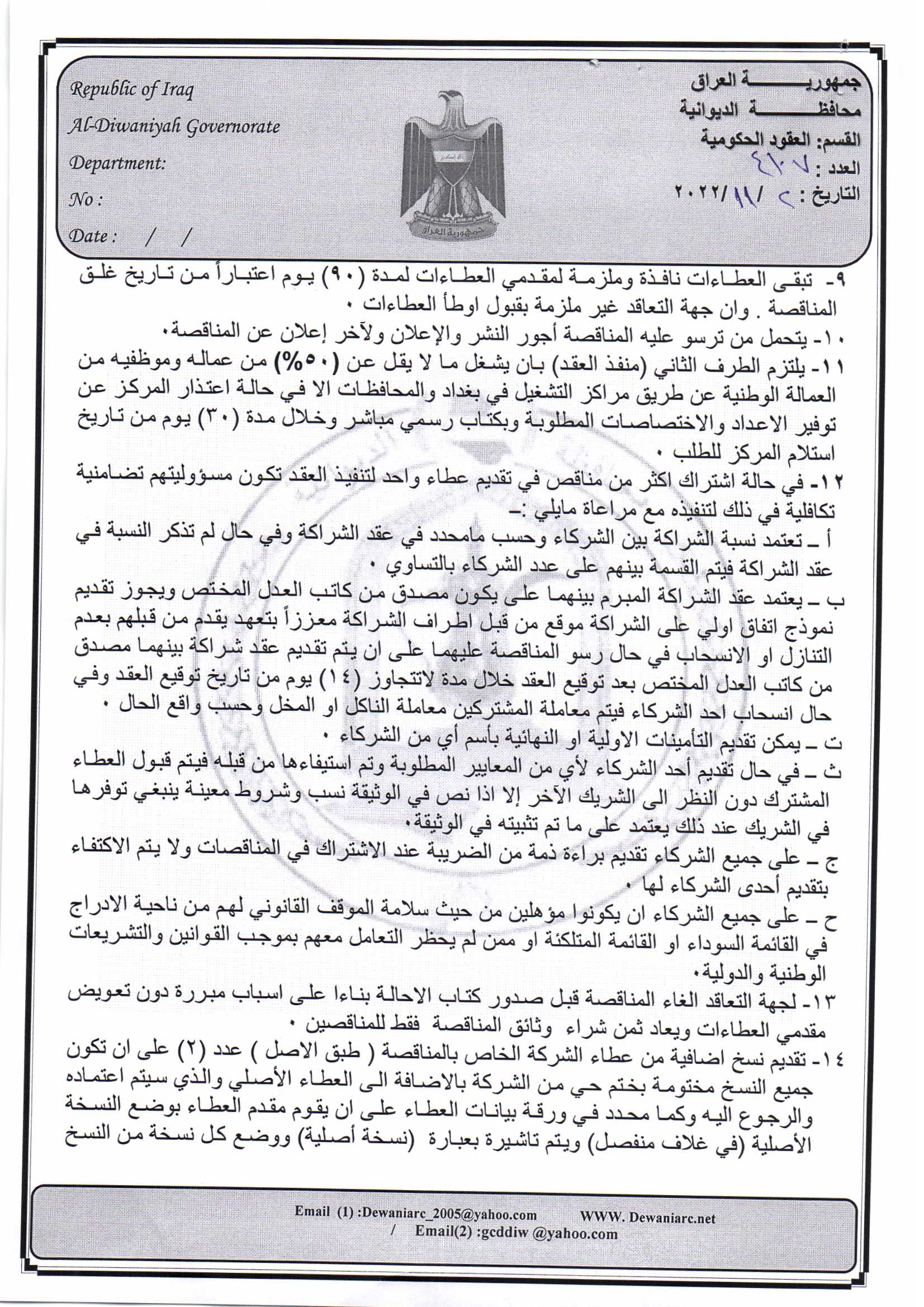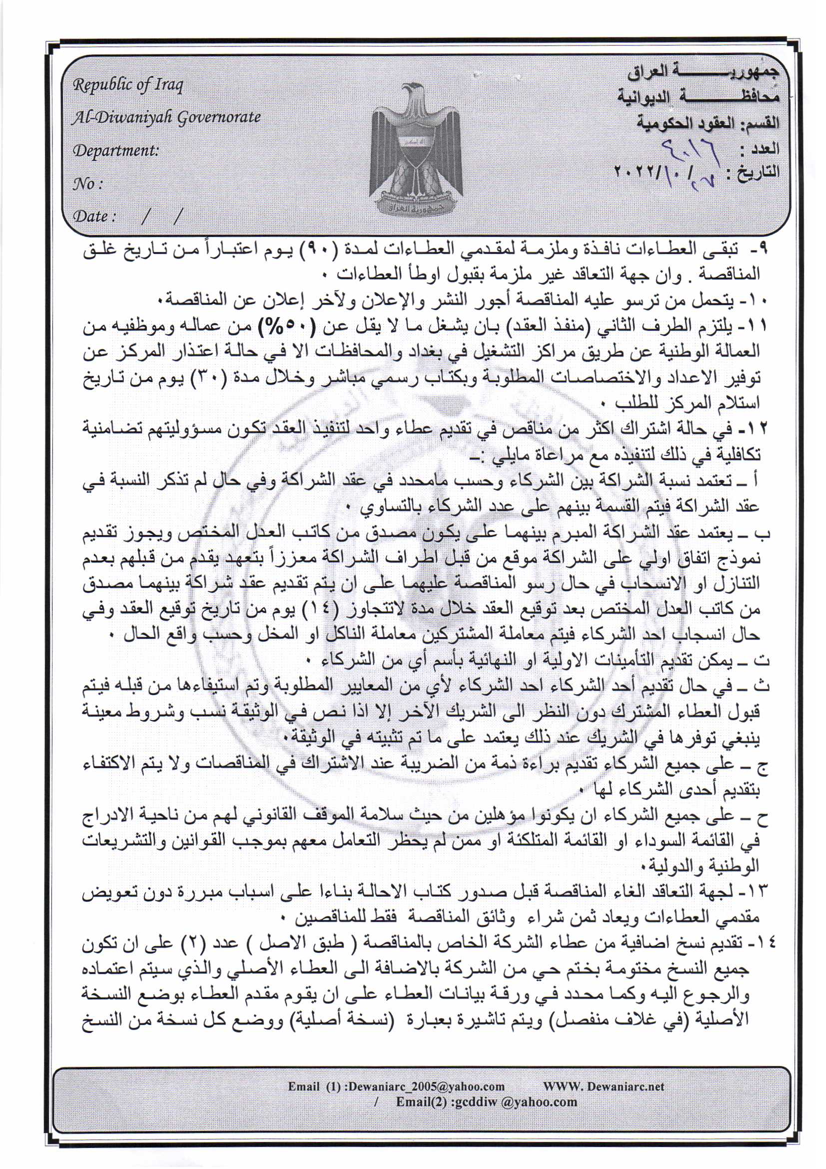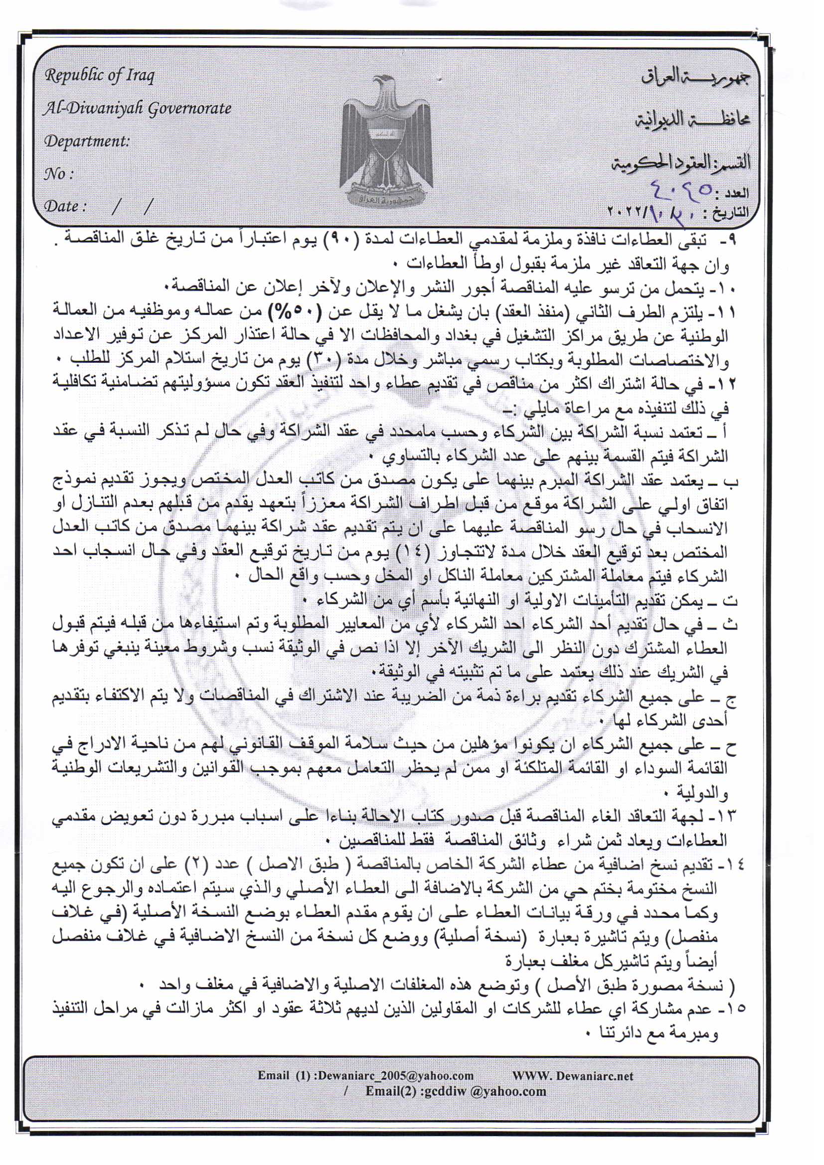 ﴿ إعلان مناقصة (9) لسنة 2022