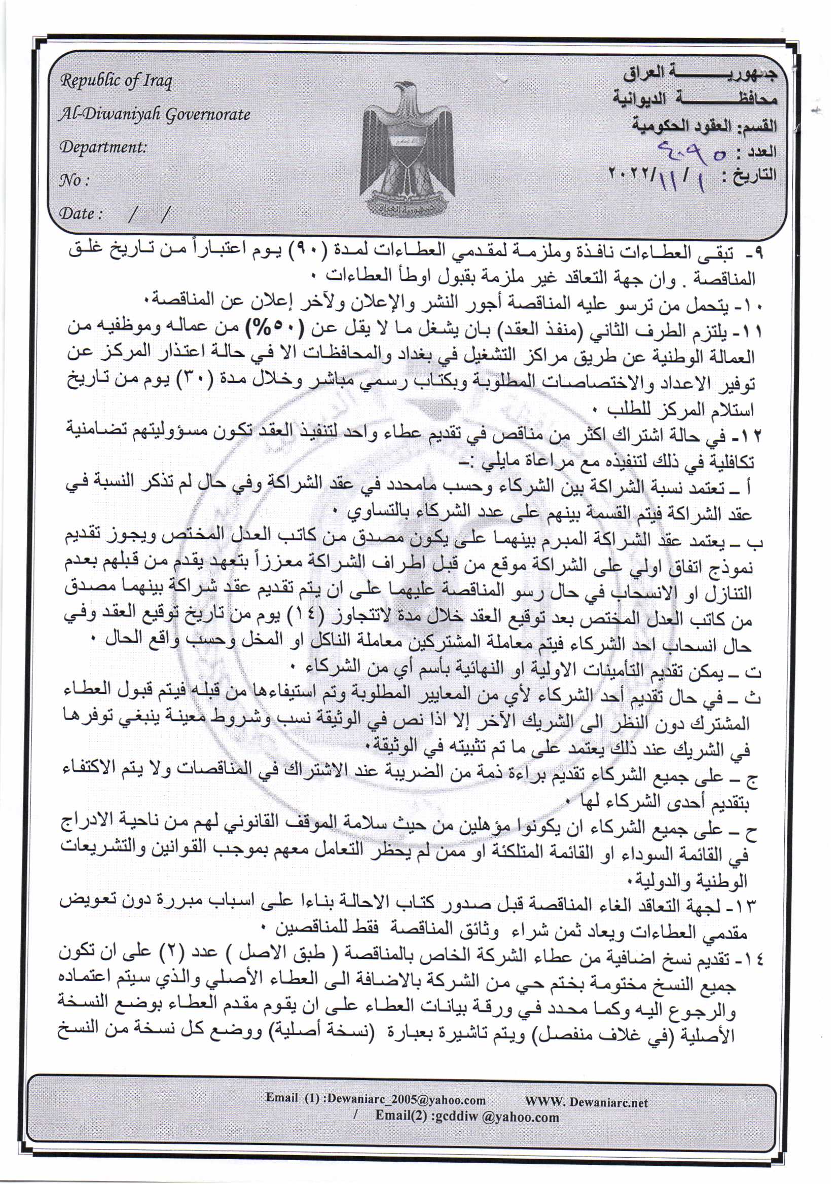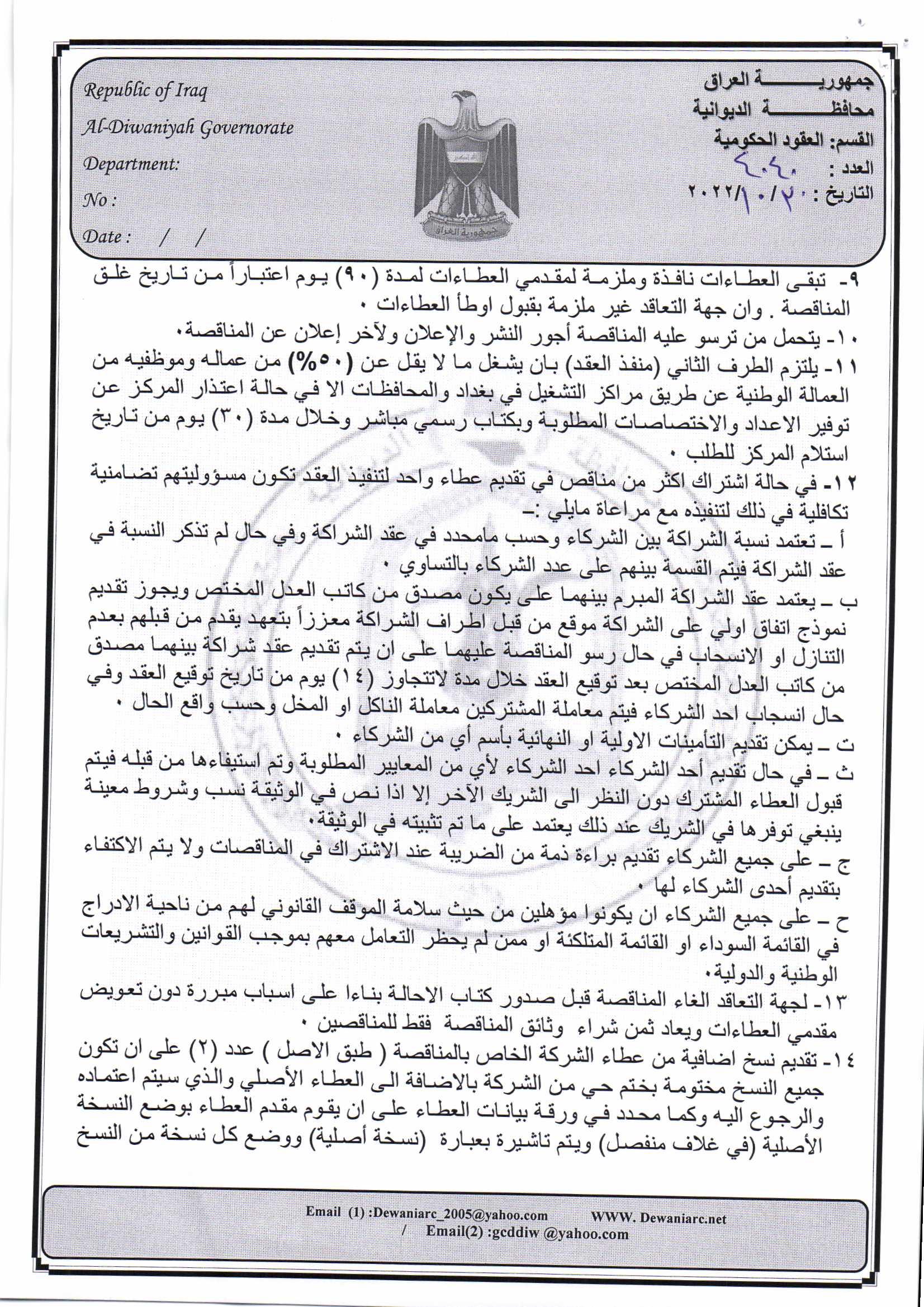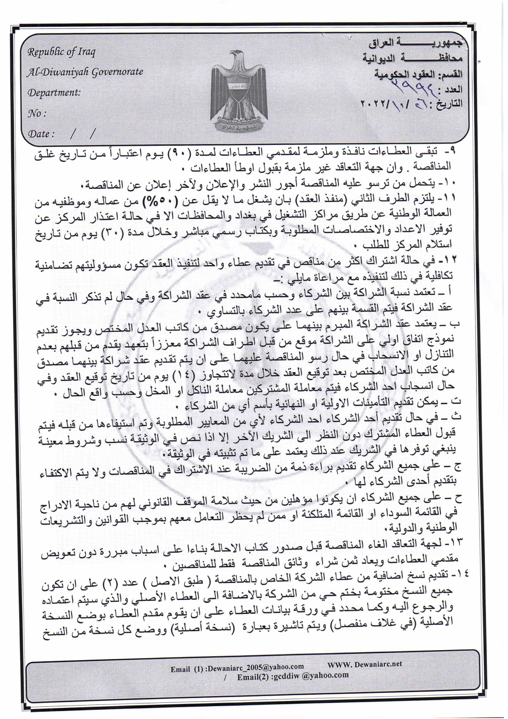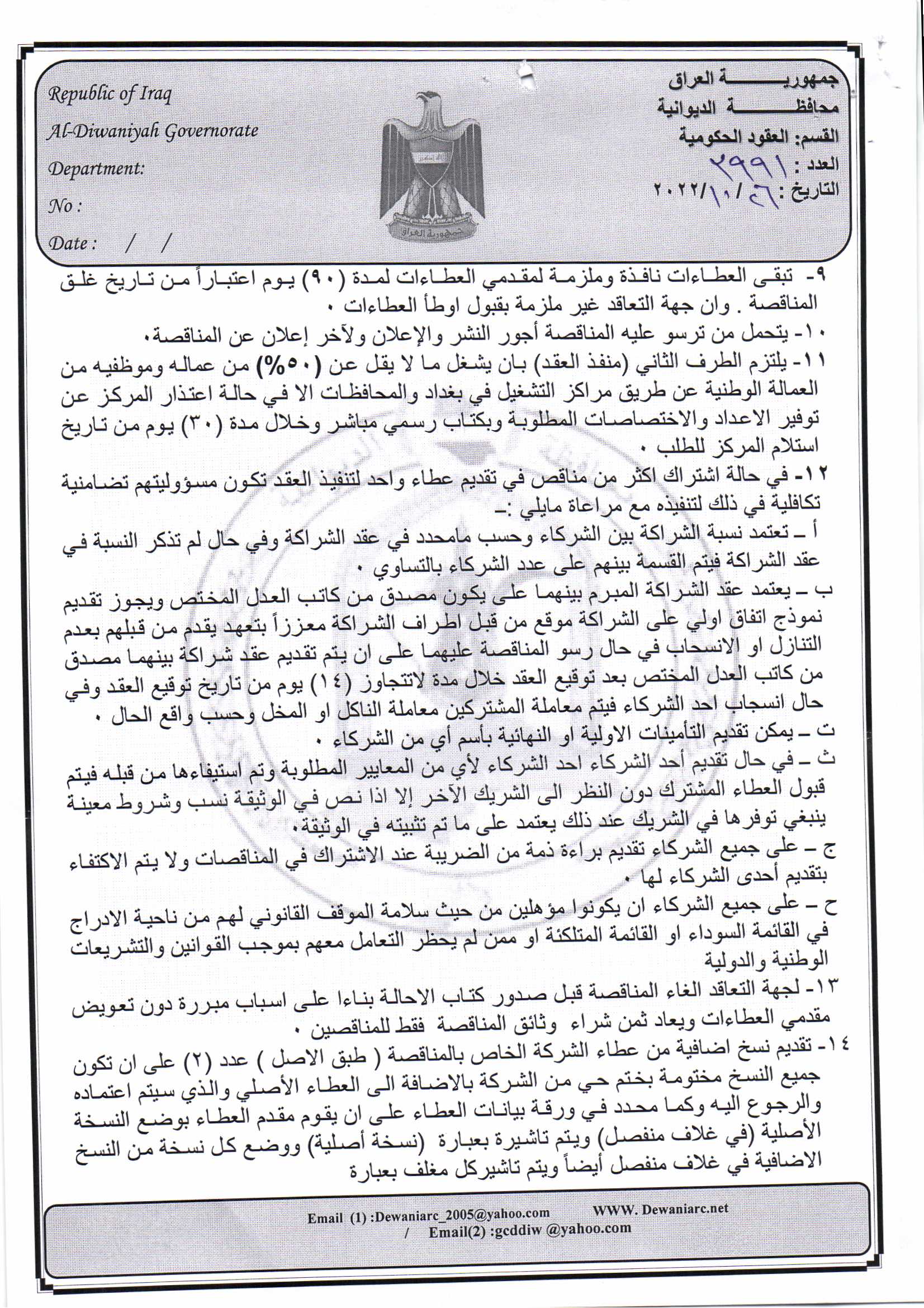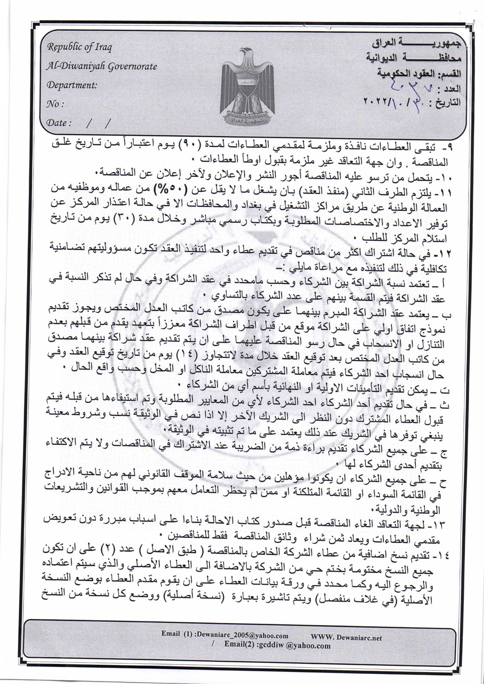 ﴿ إعلان مناقصة (9) لسنة 2022