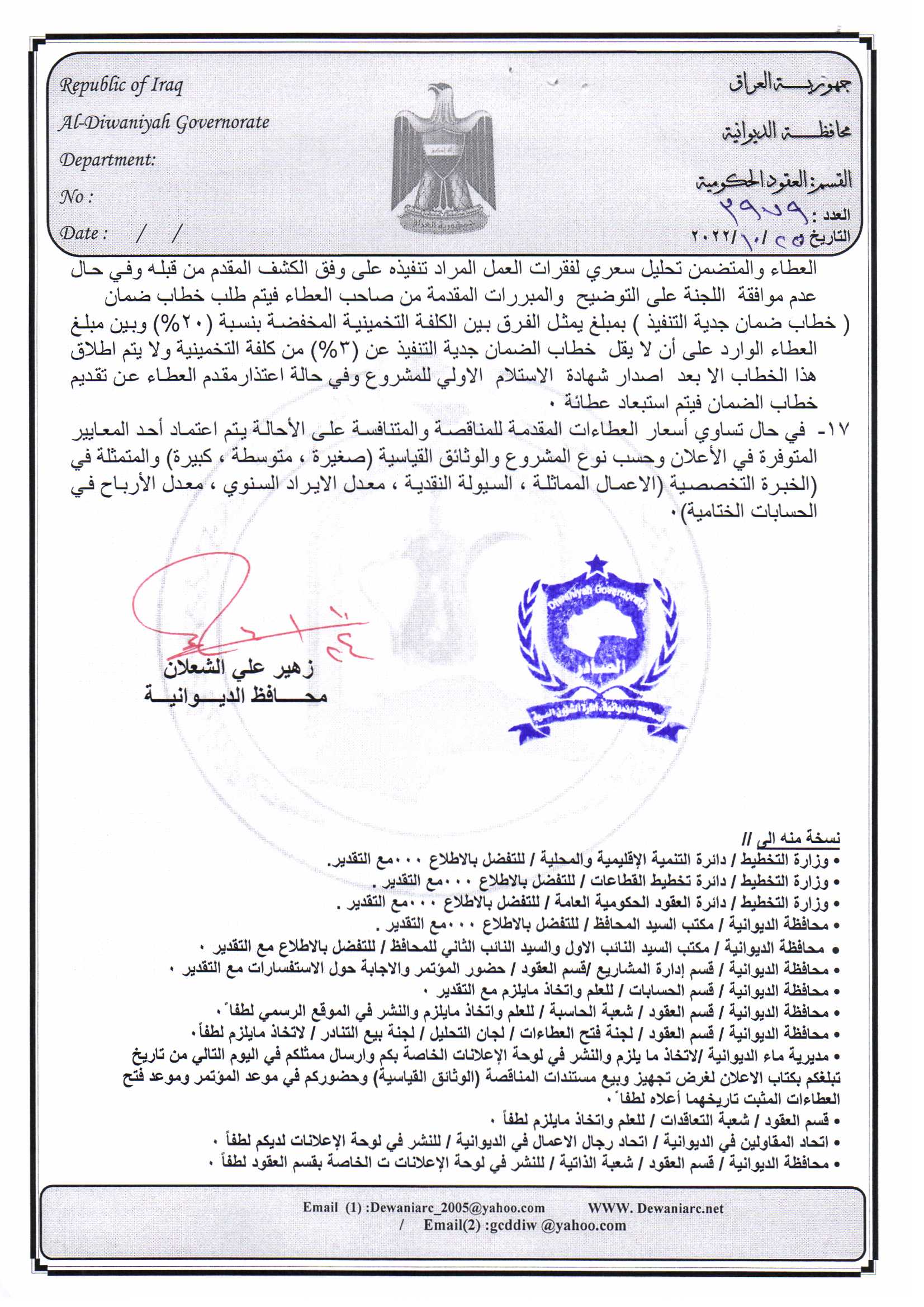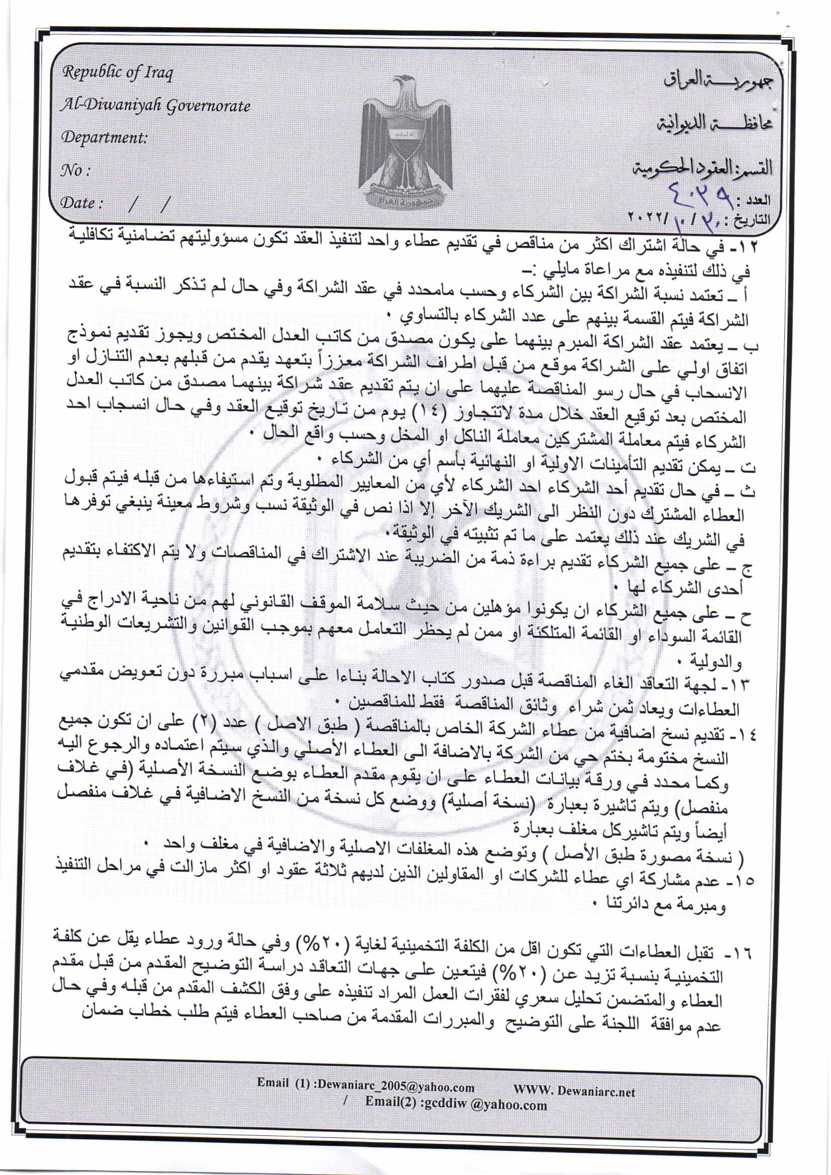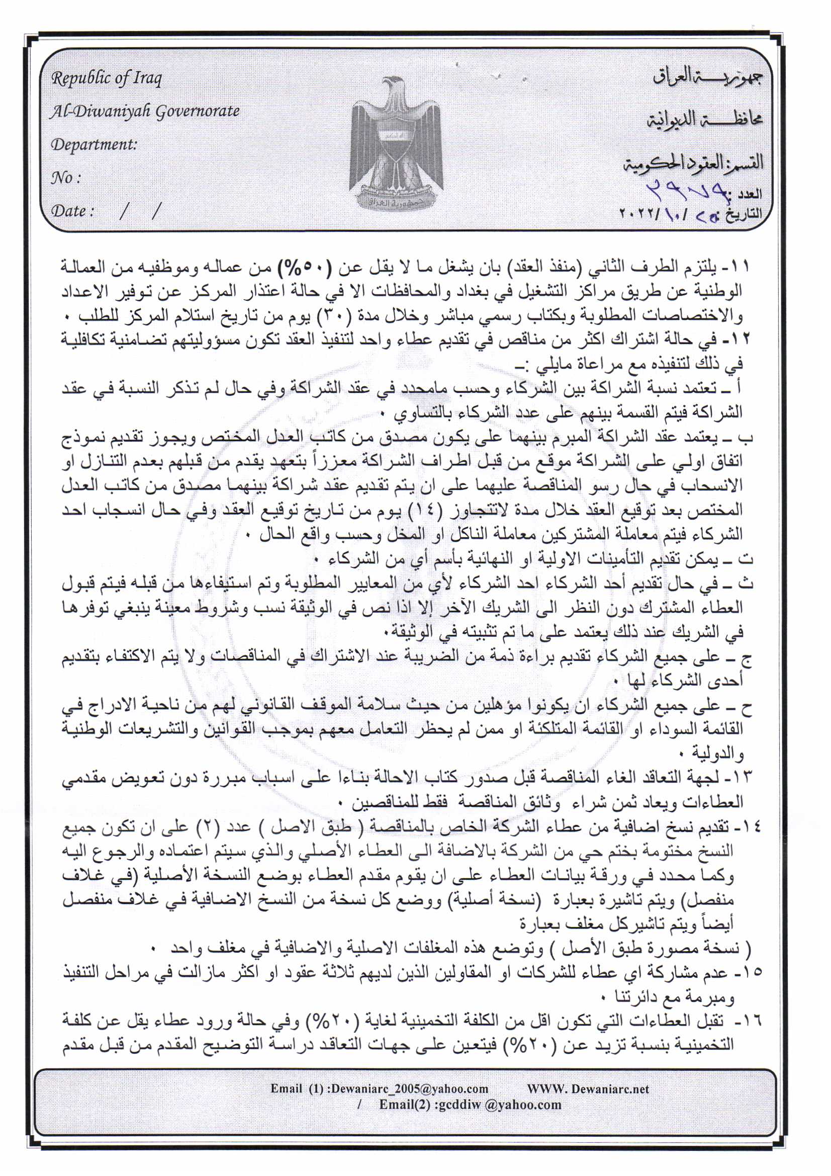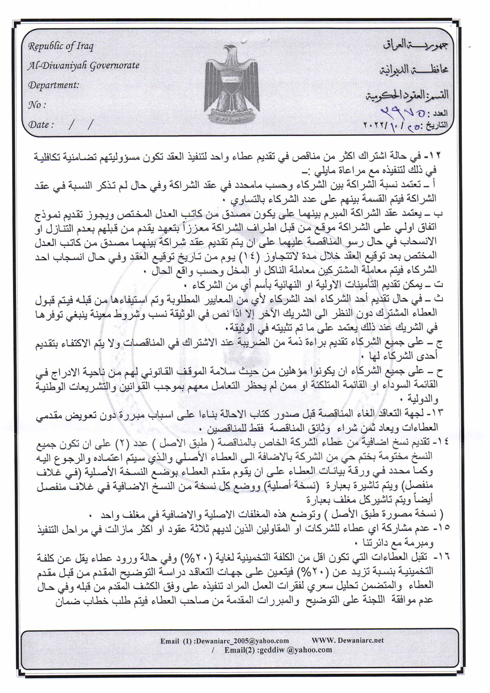 ﴿ إعلان مناقصة (29) لسنة 2022