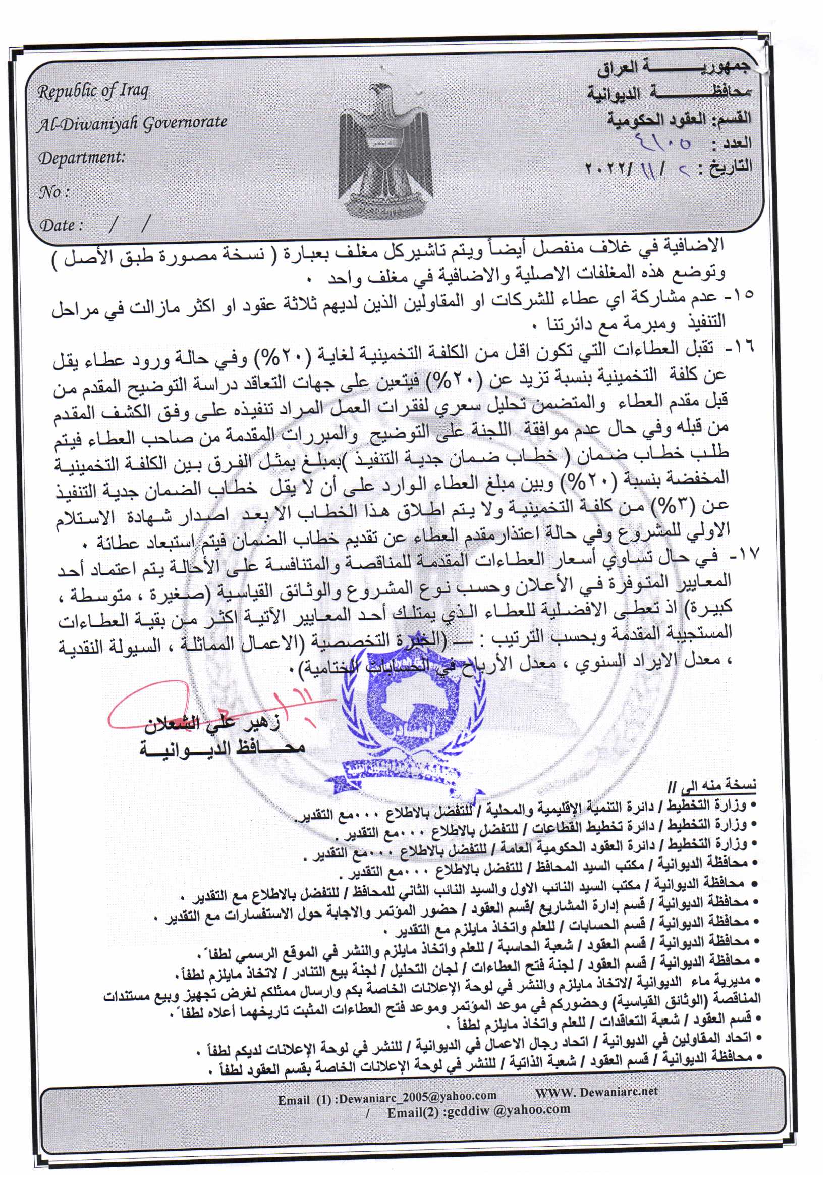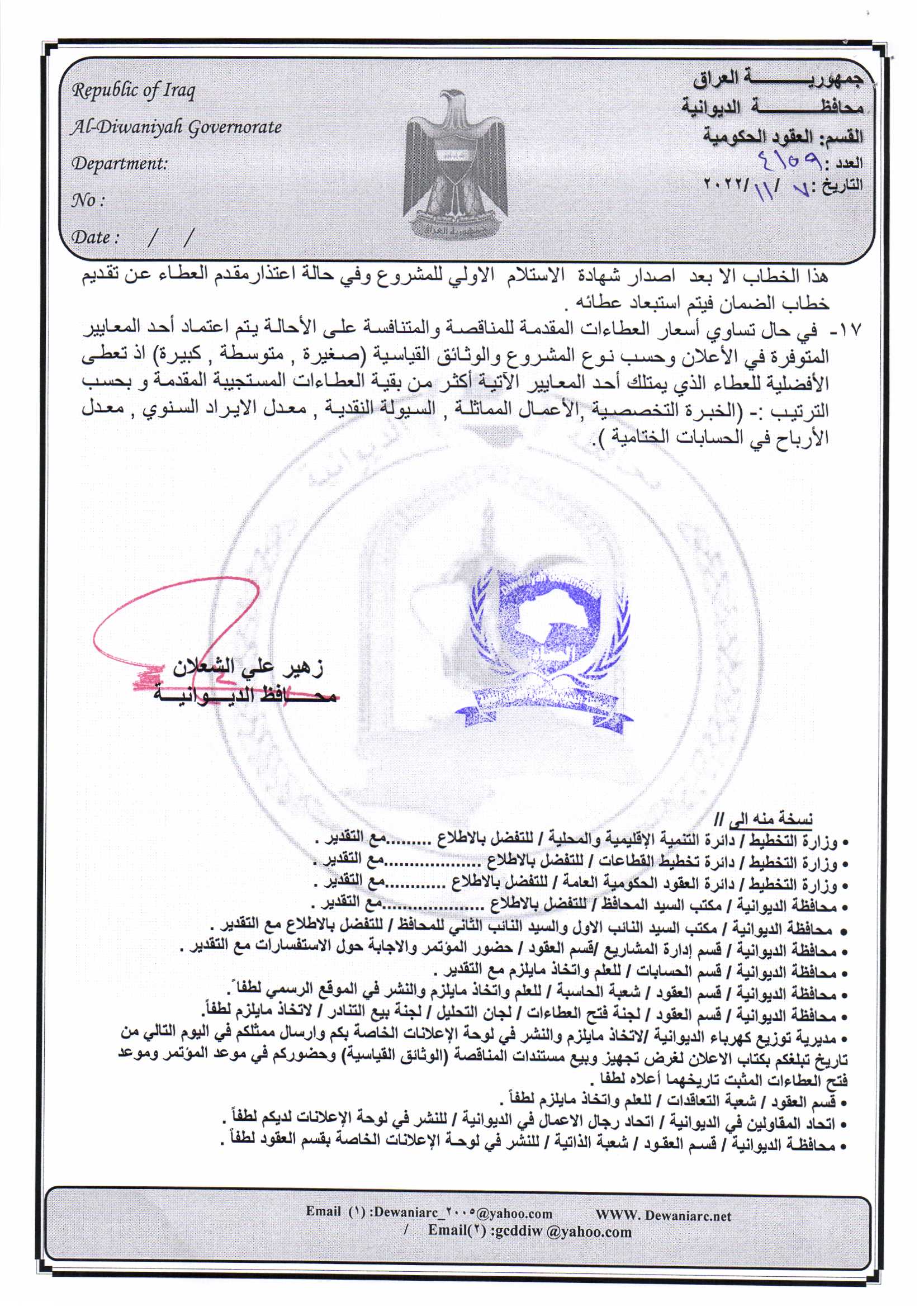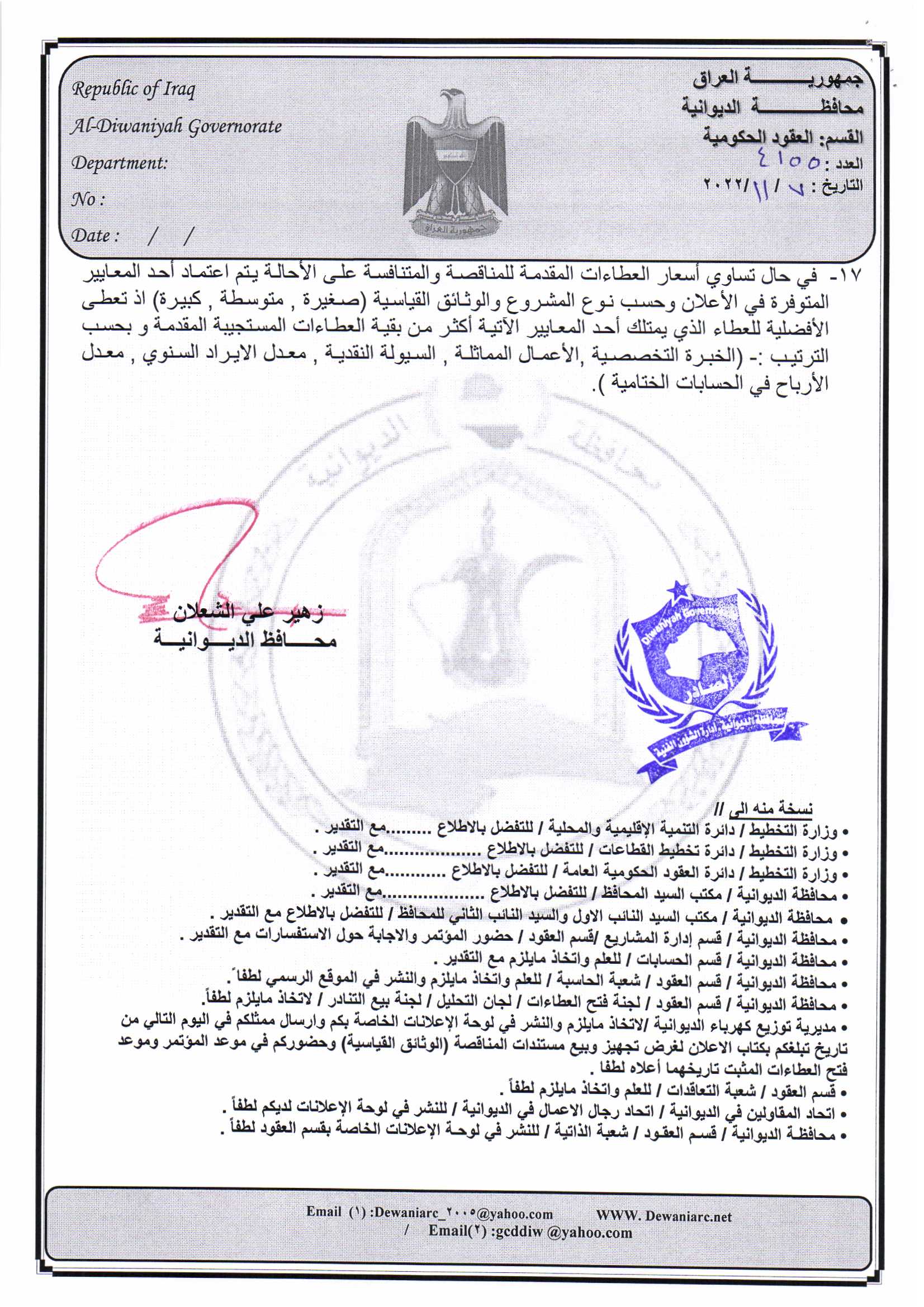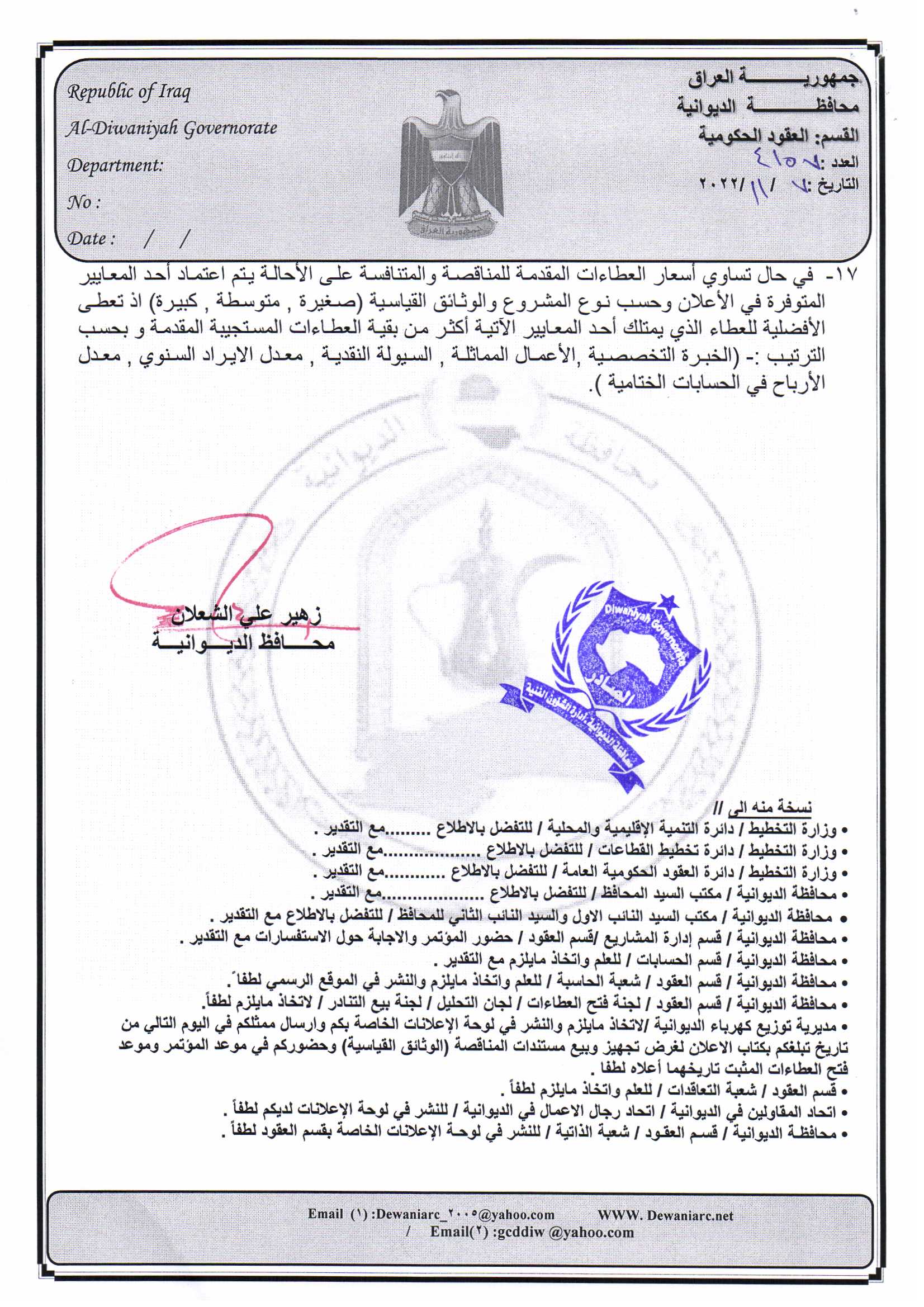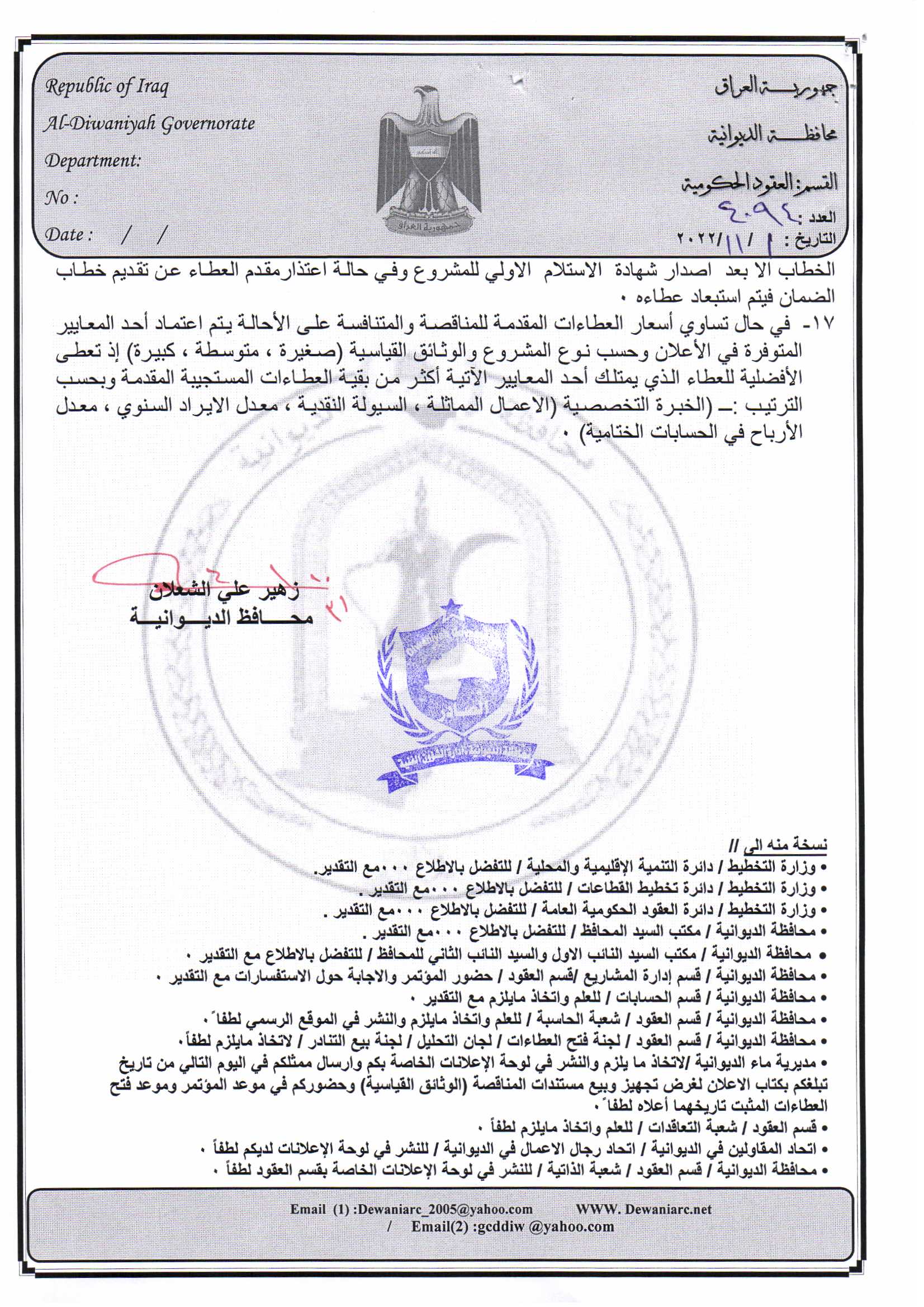 ﴿ إعلان مناقصة (53) لسنة 2022