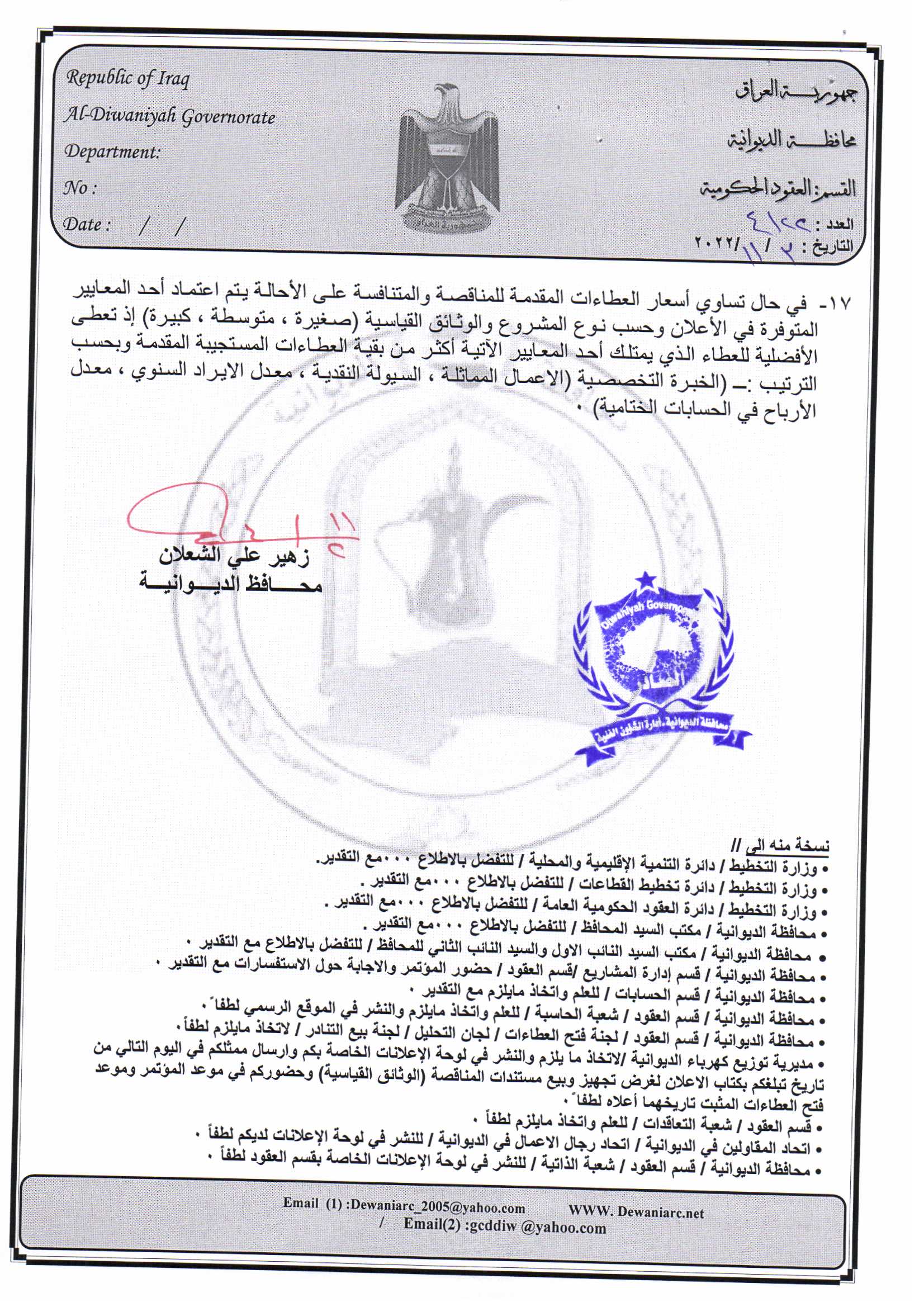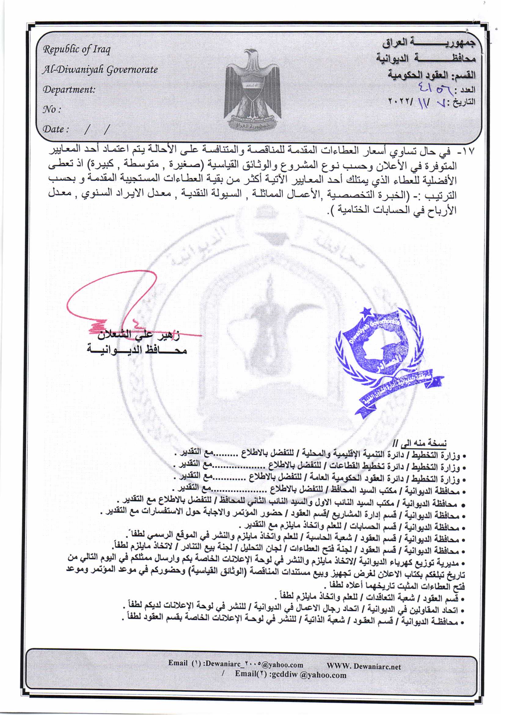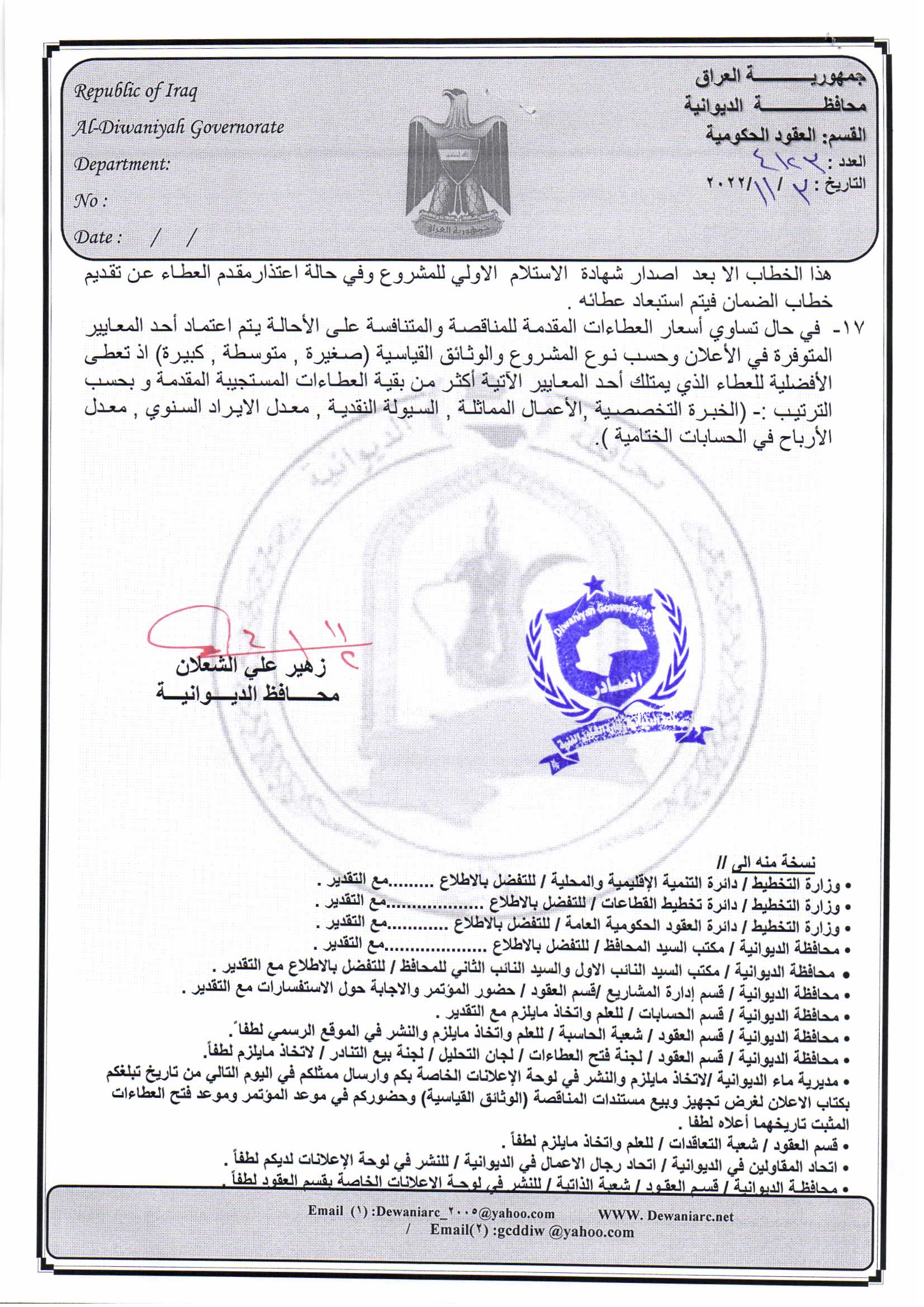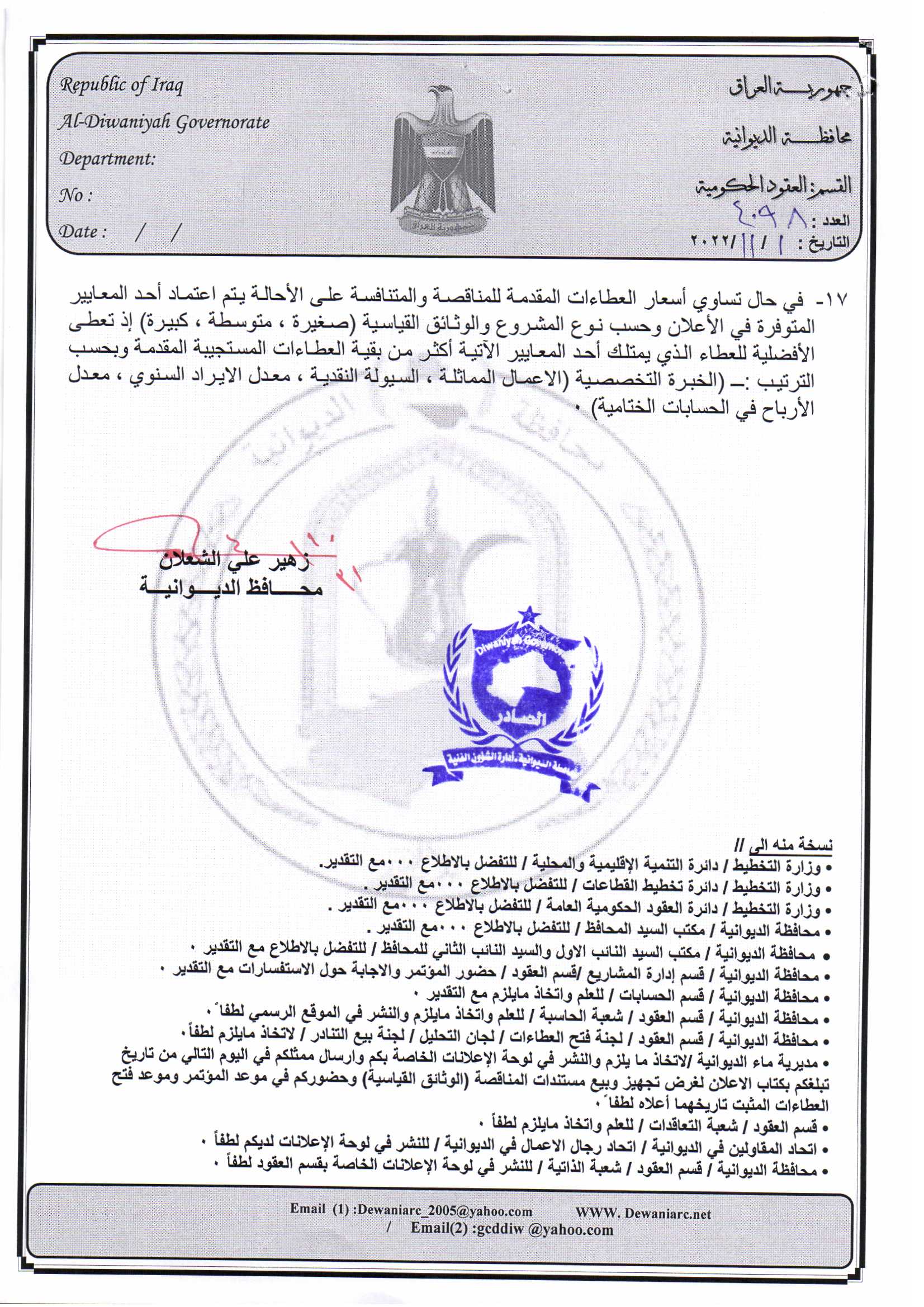 ﴿ إعلان مناقصة (53) لسنة 2022