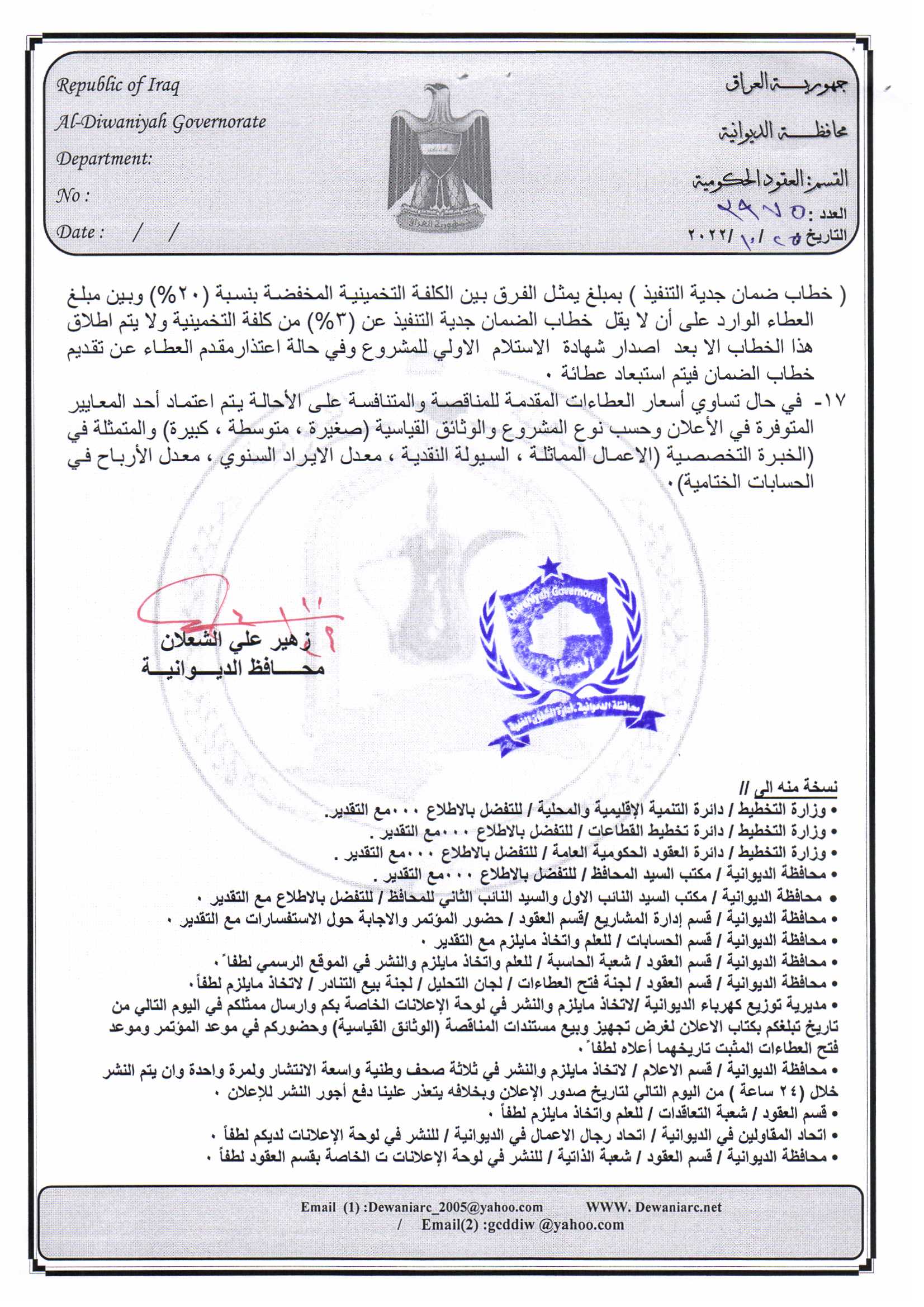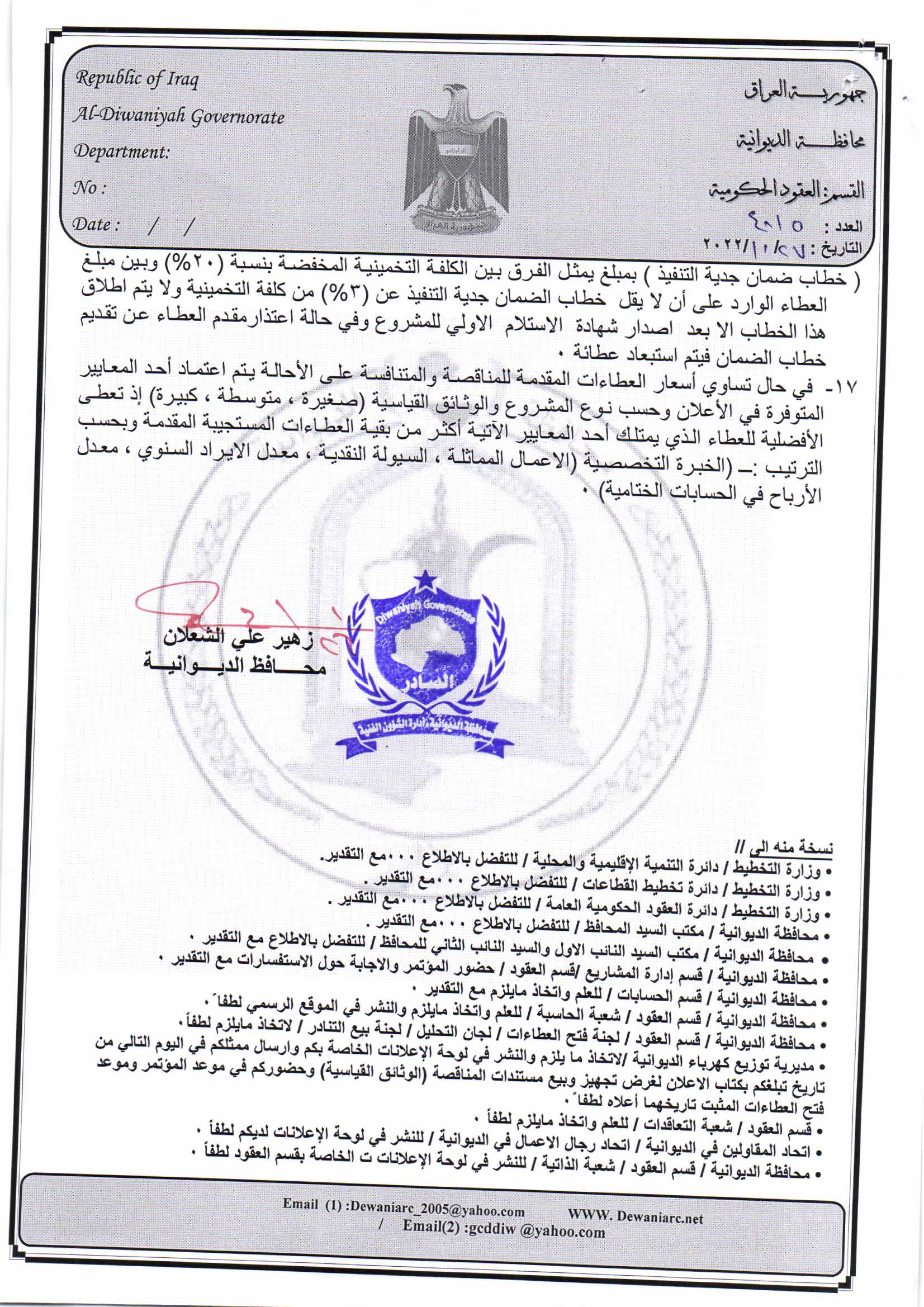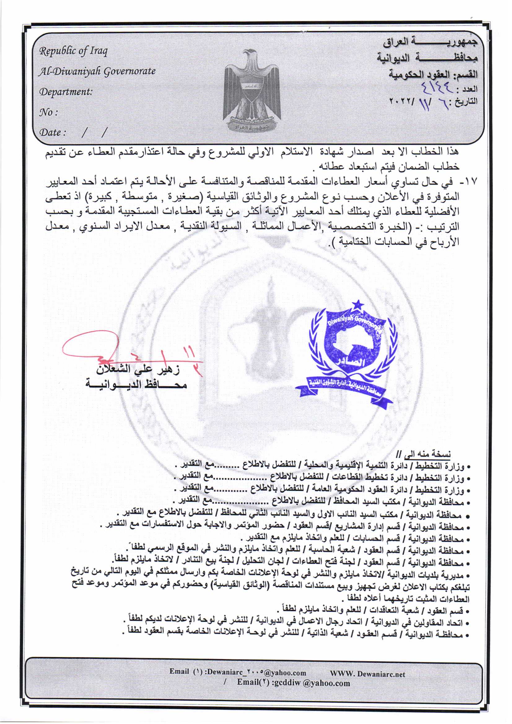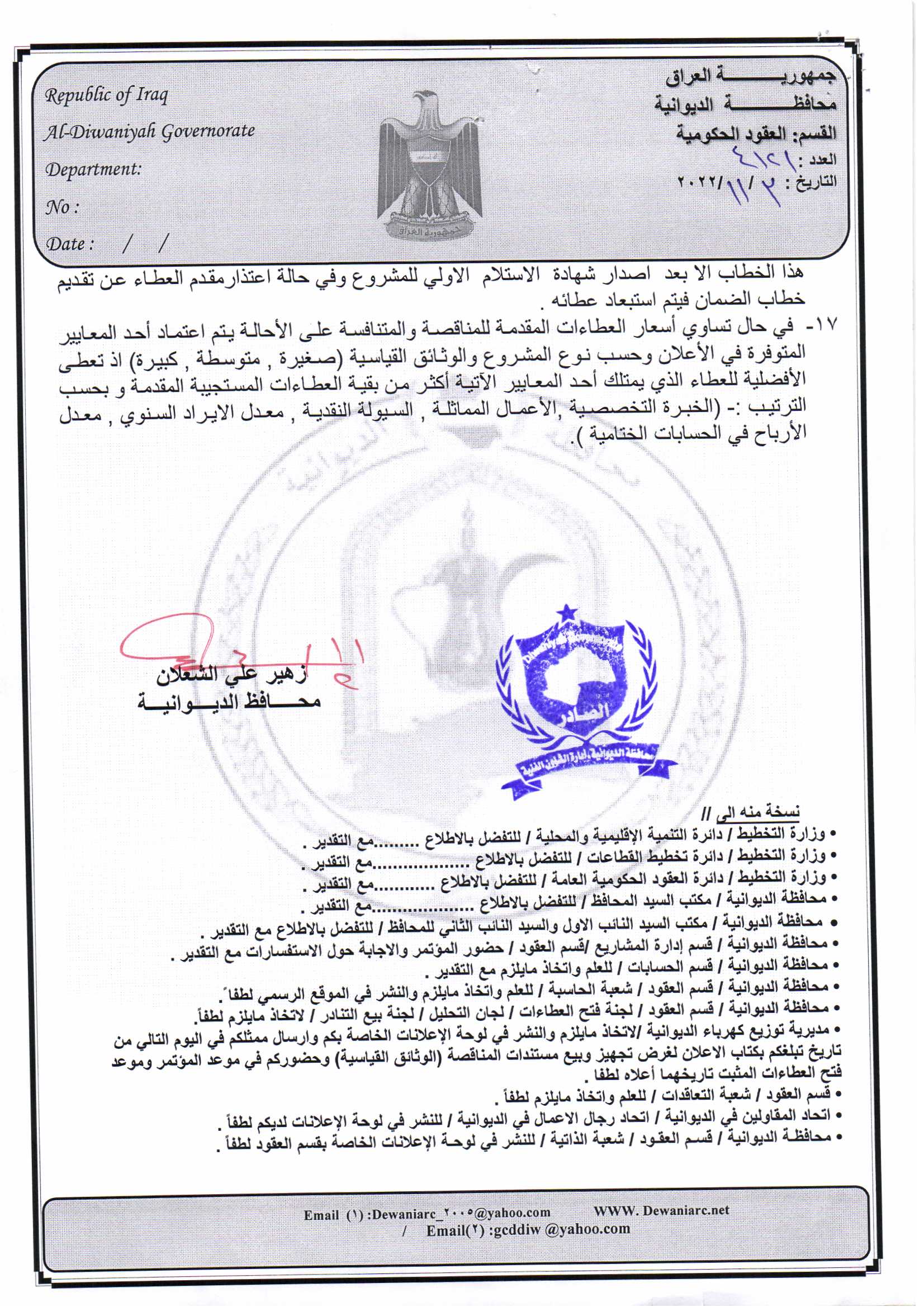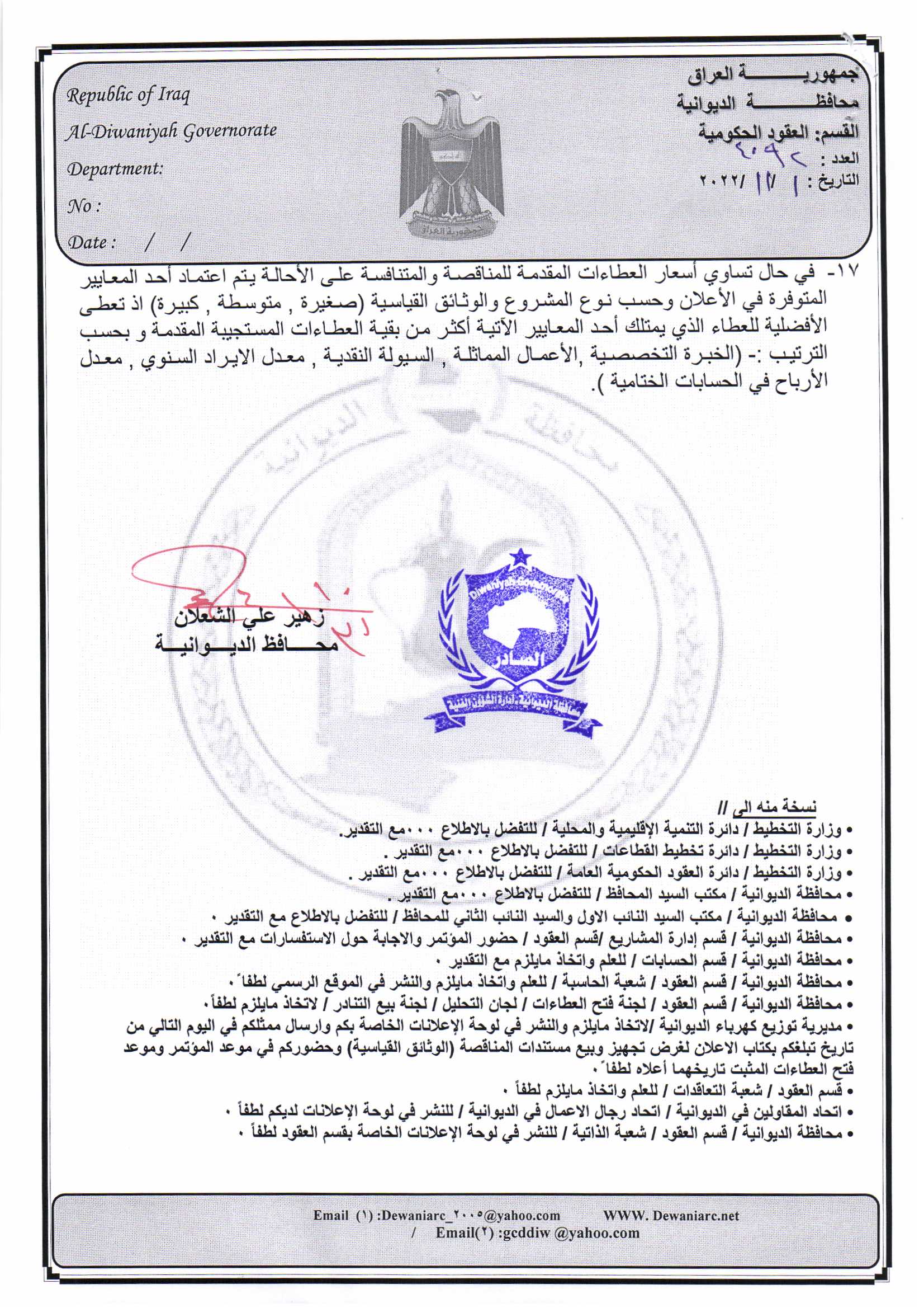 ﴿ إعلان مناقصة (53) لسنة 2022