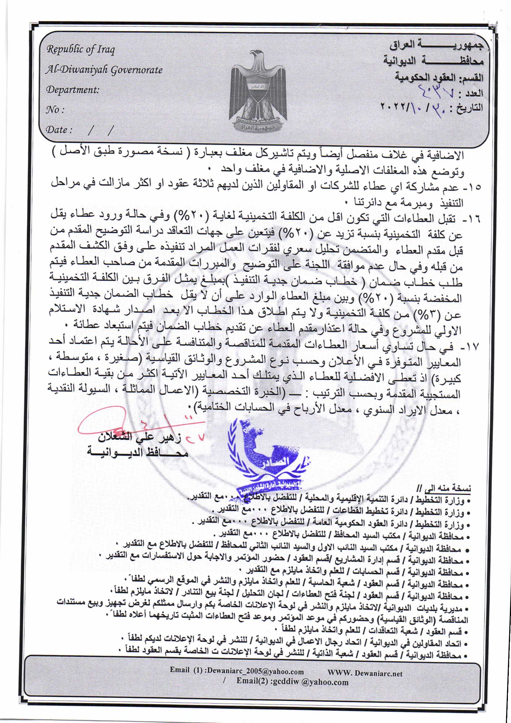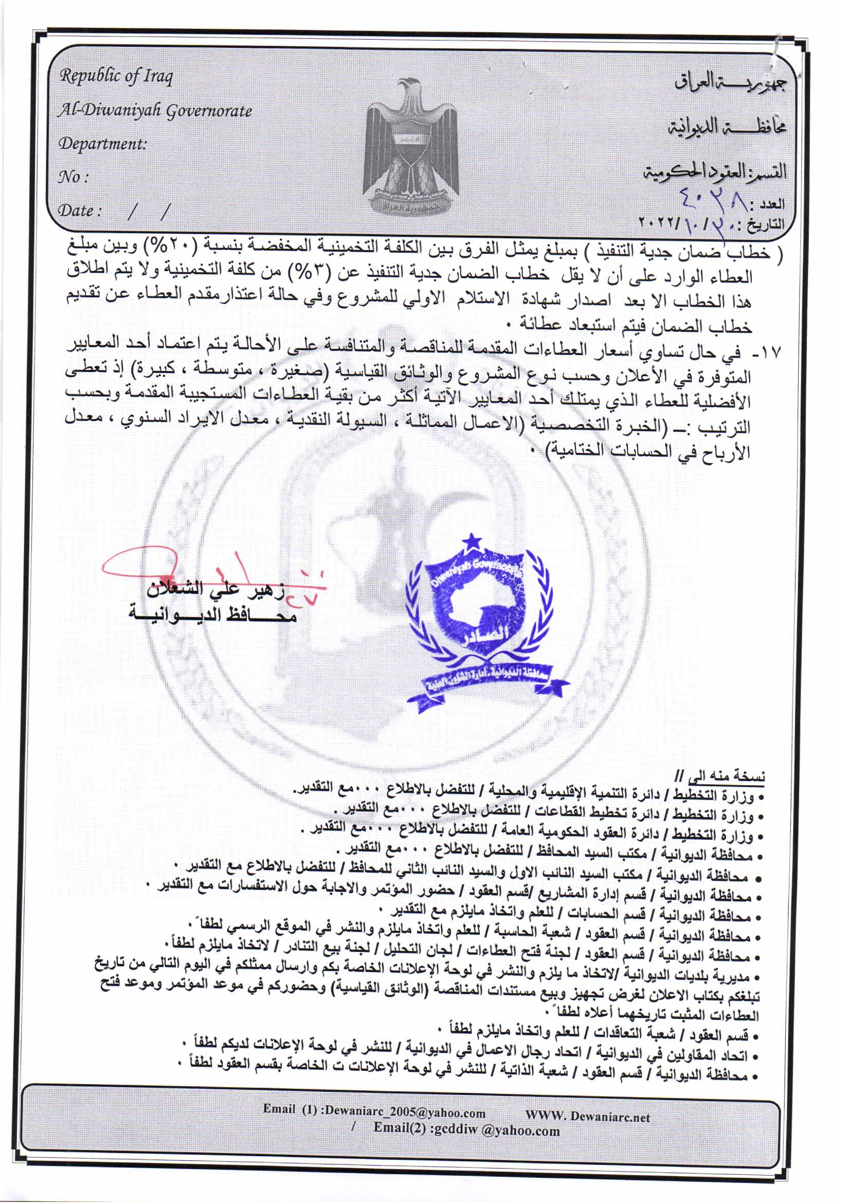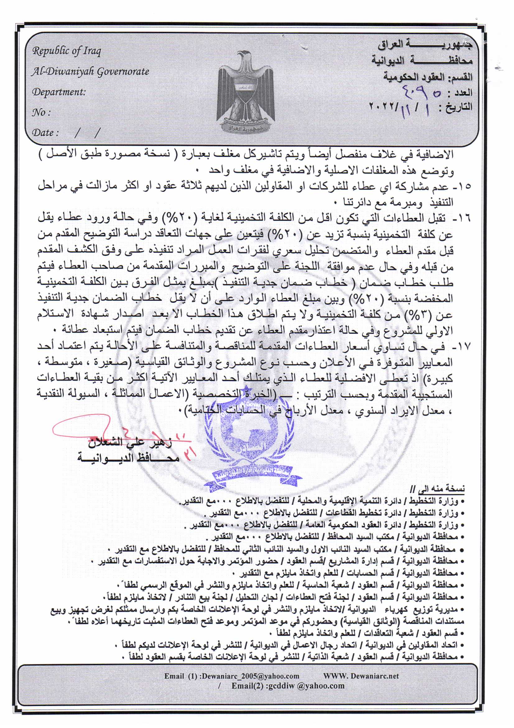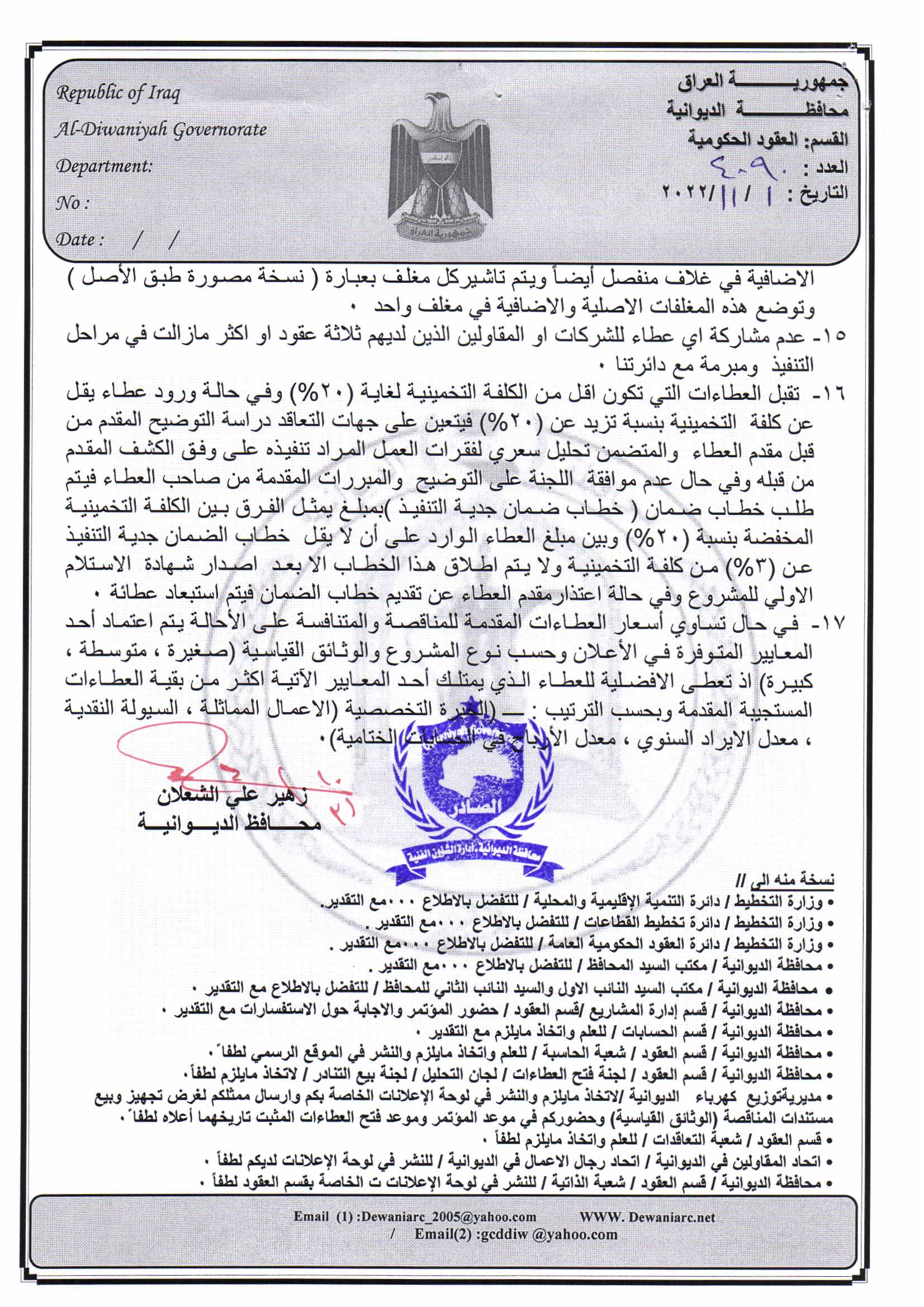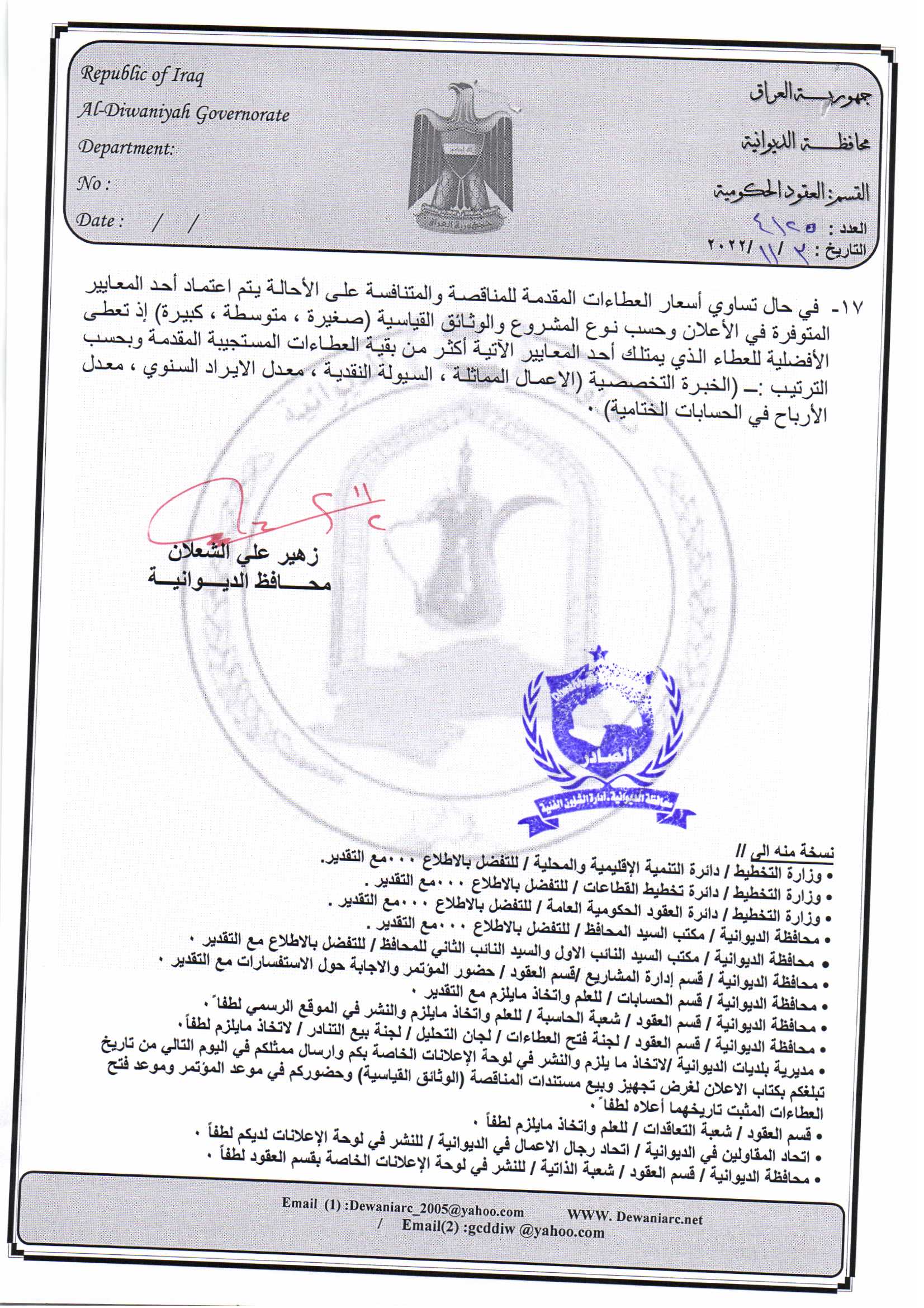 ﴿ إعلان مناقصة (53) لسنة 2022