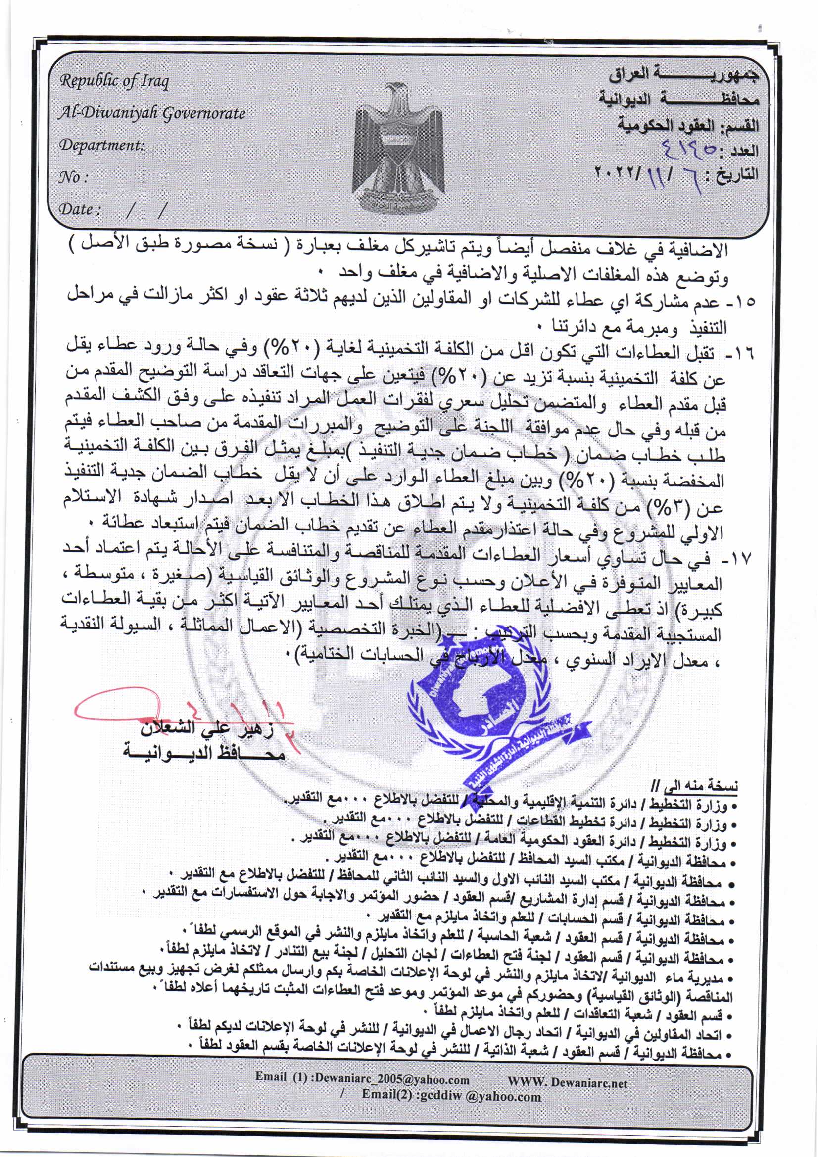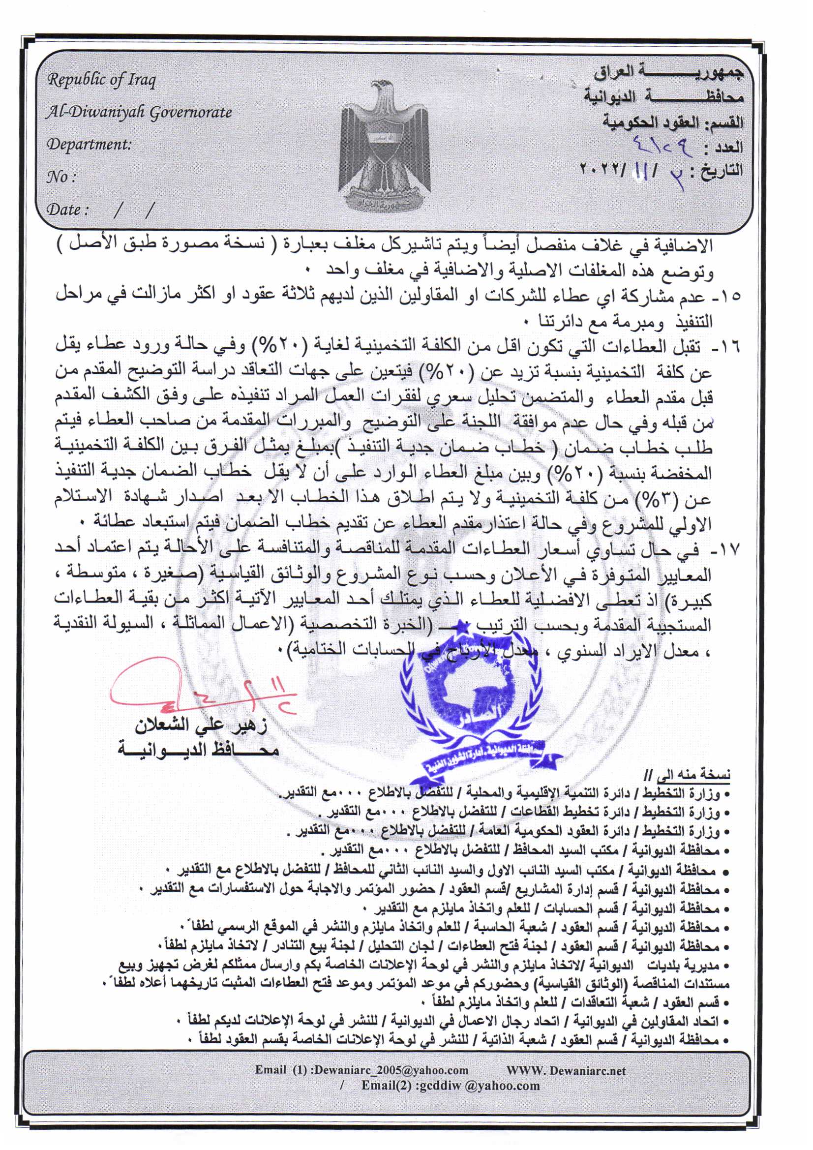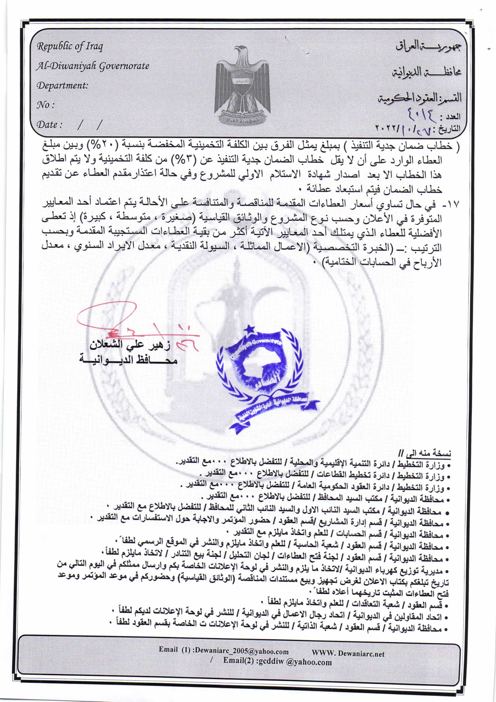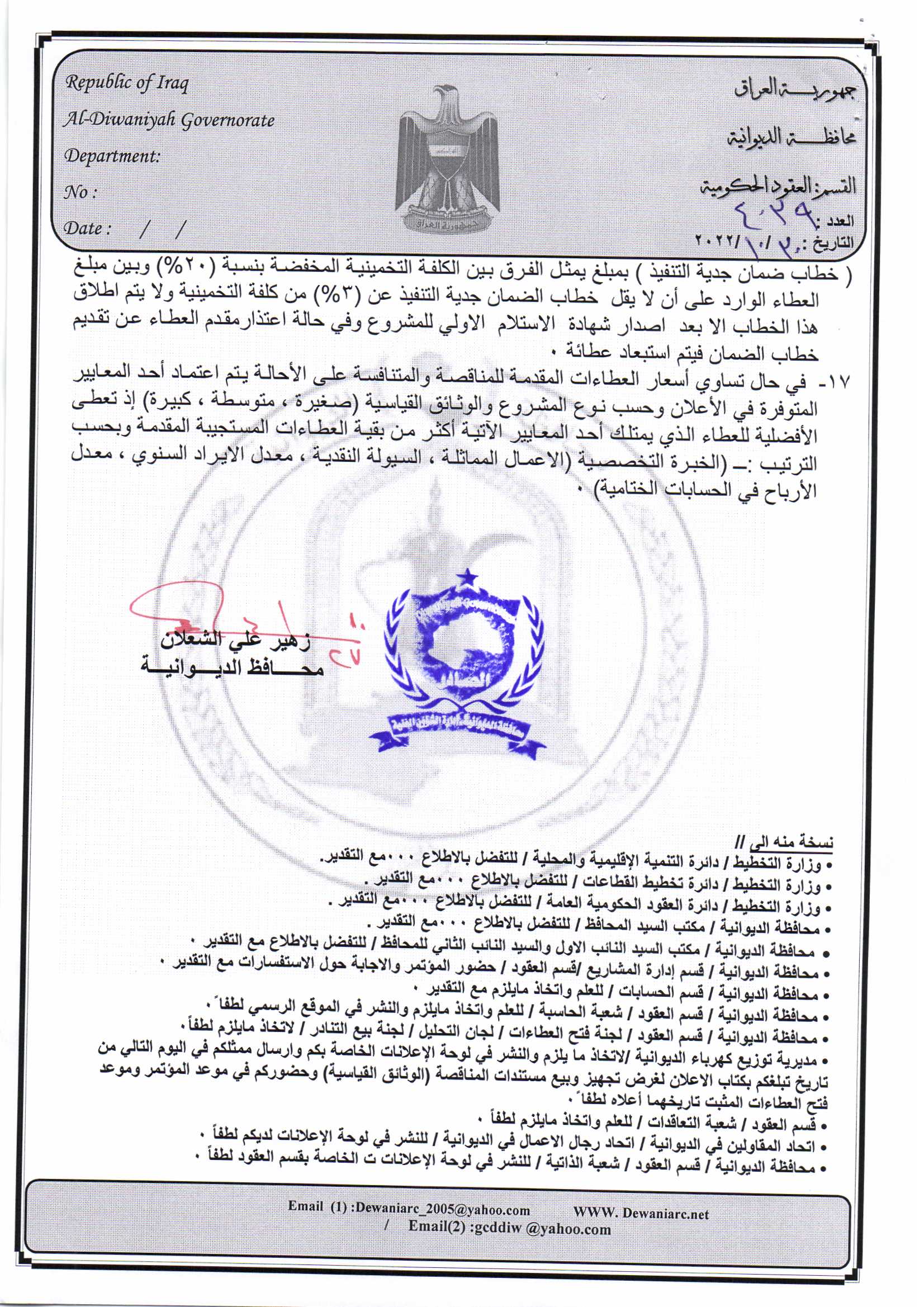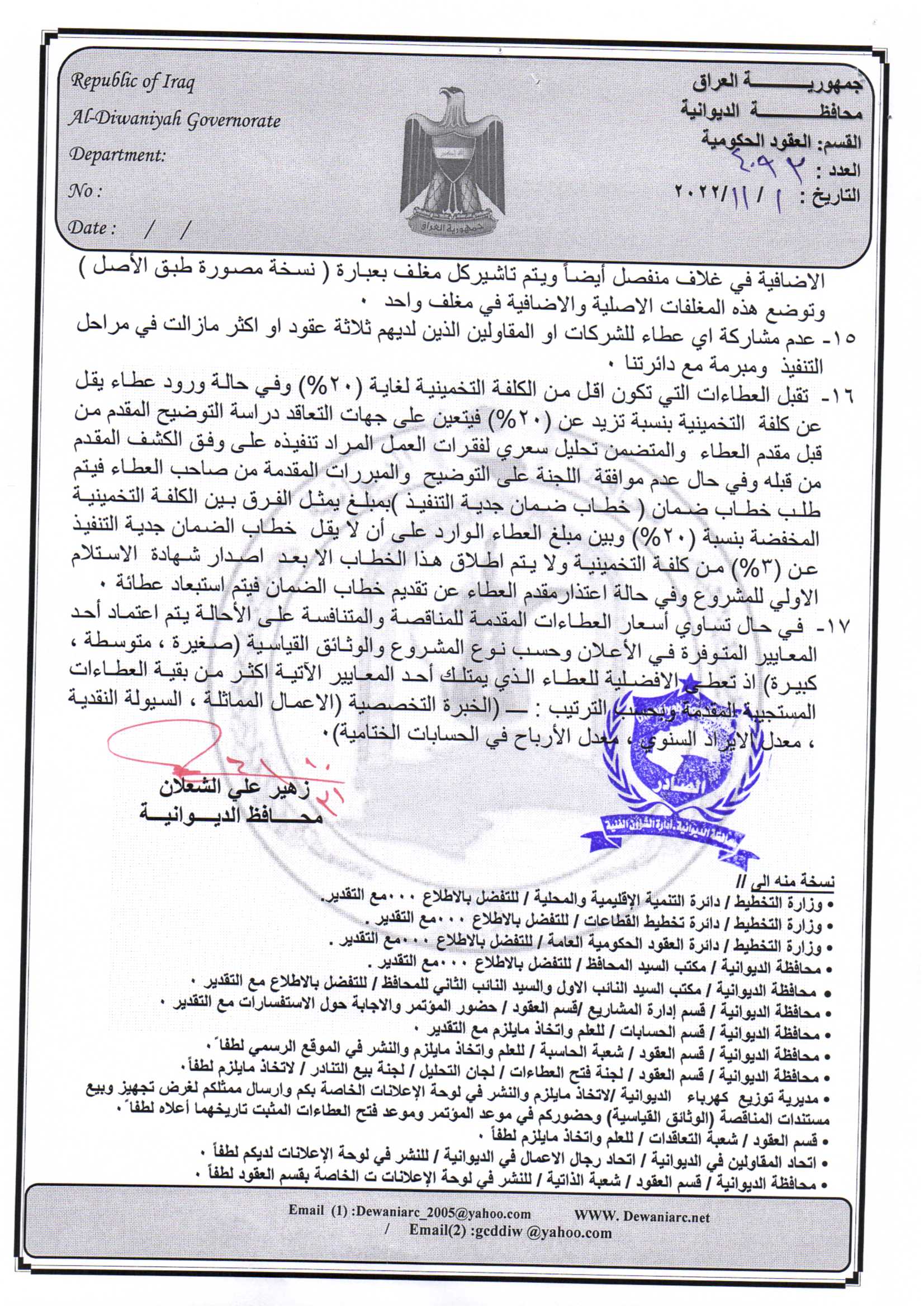 ﴿ إعلان مناقصة (53) لسنة 2022