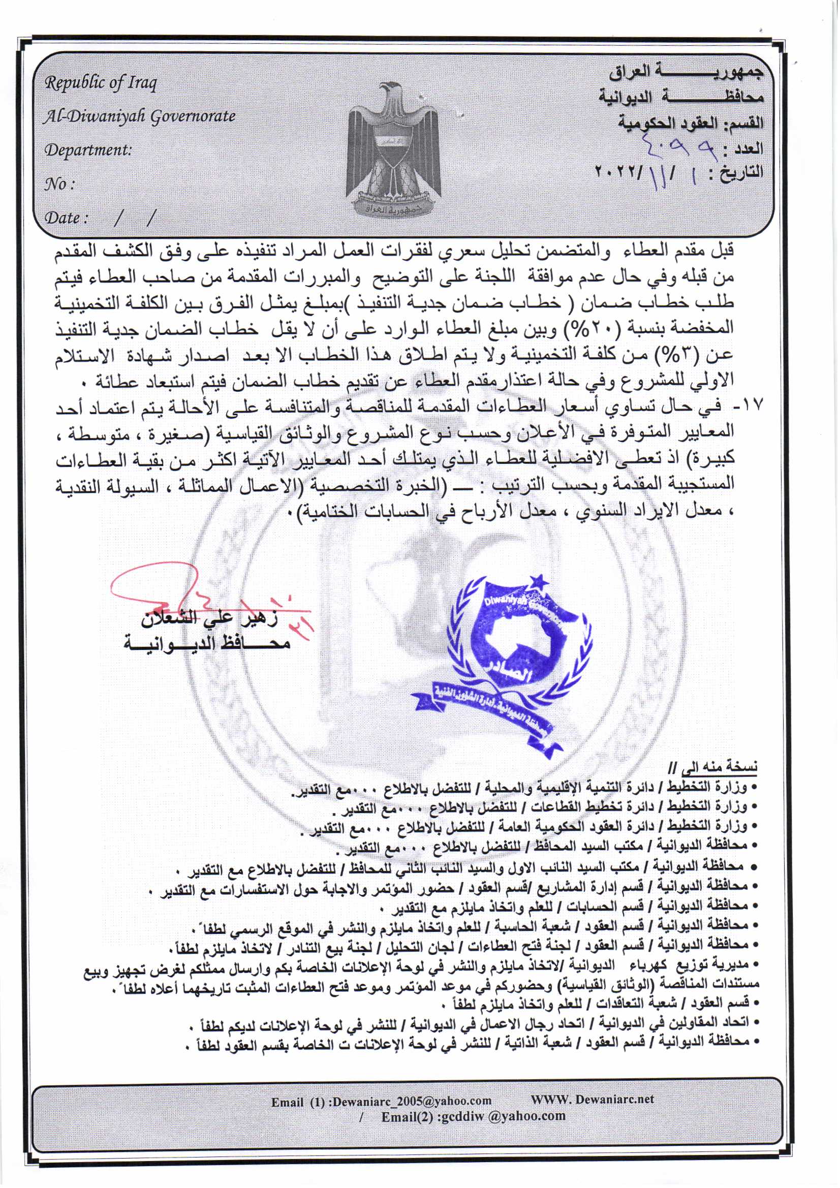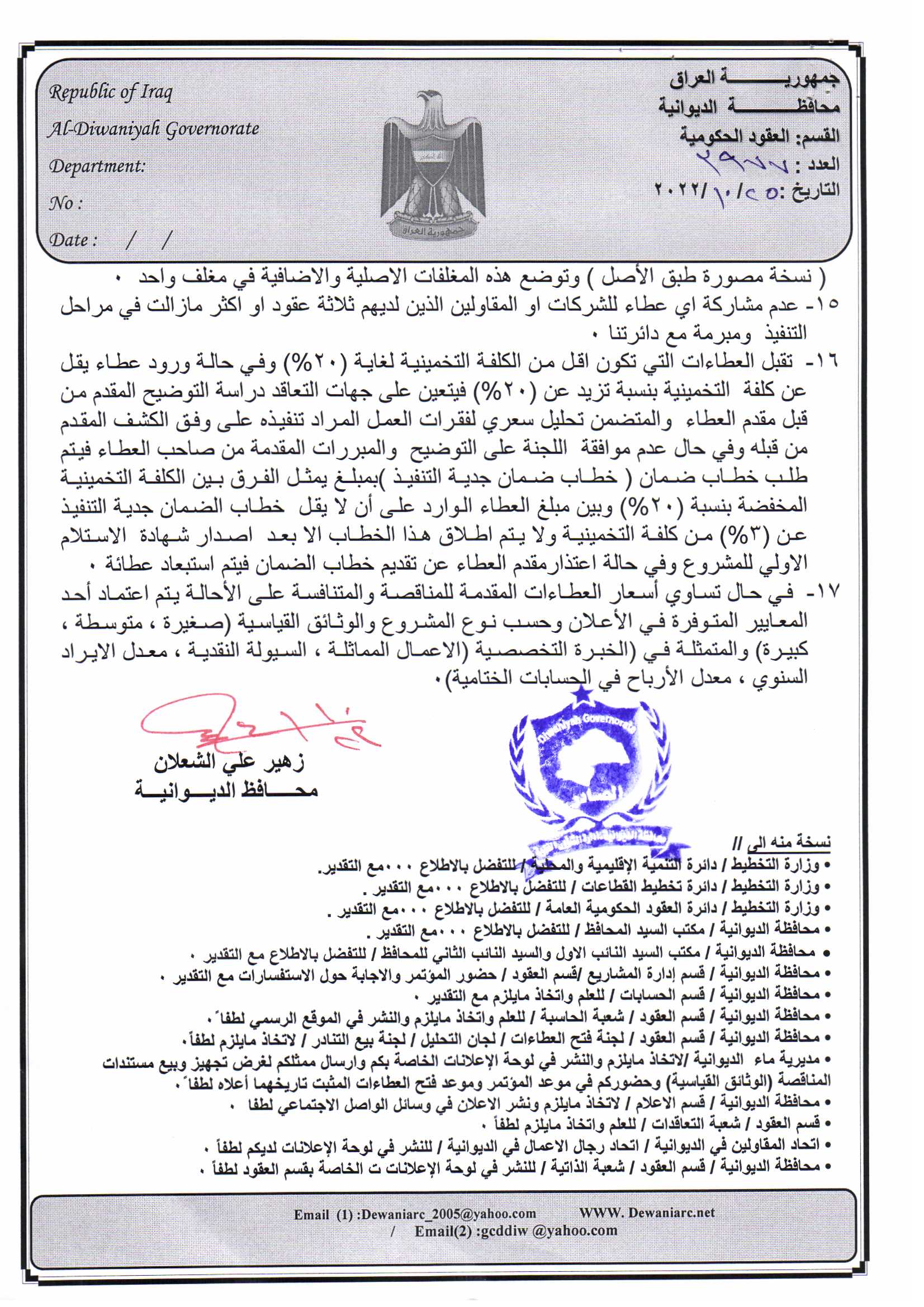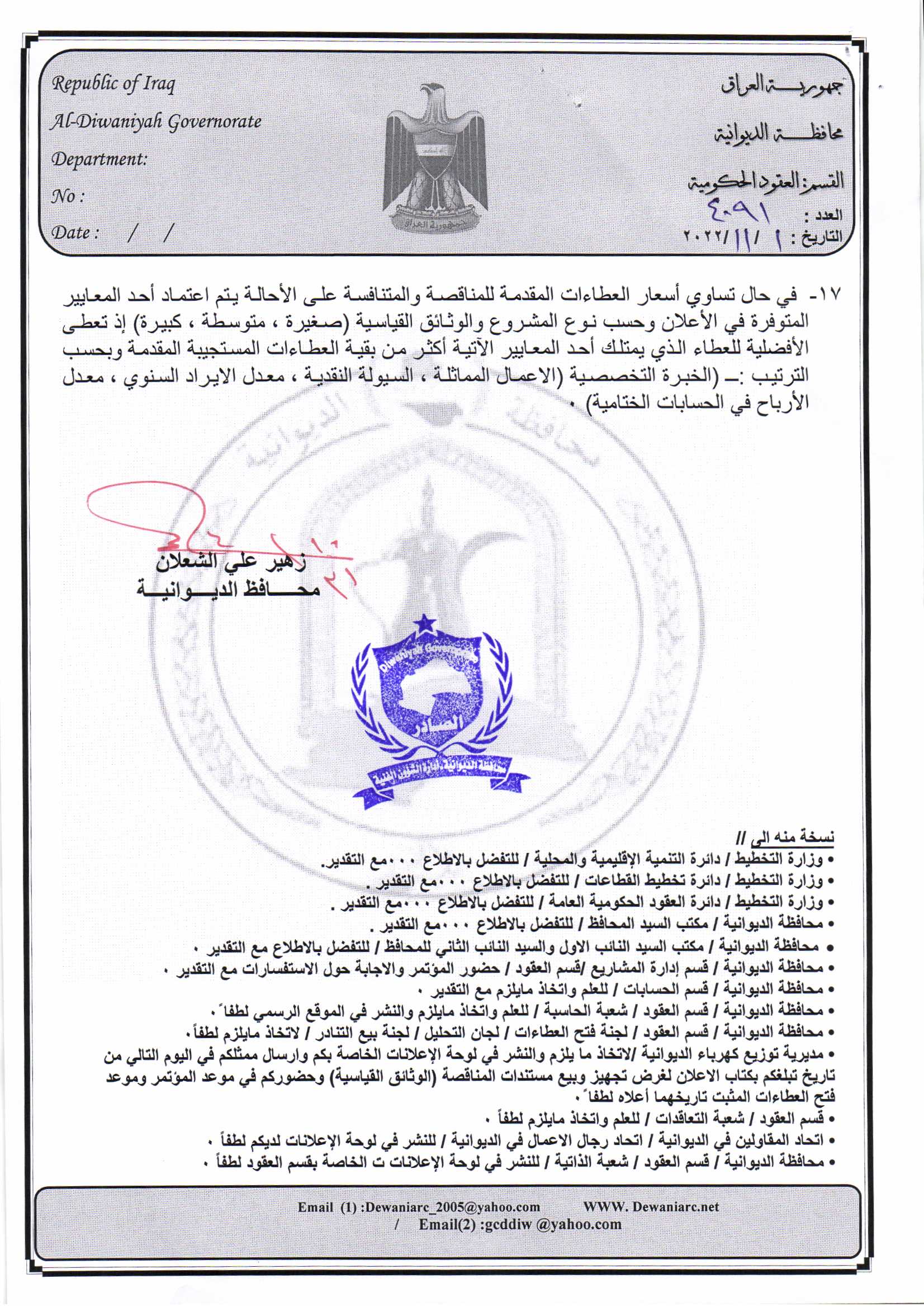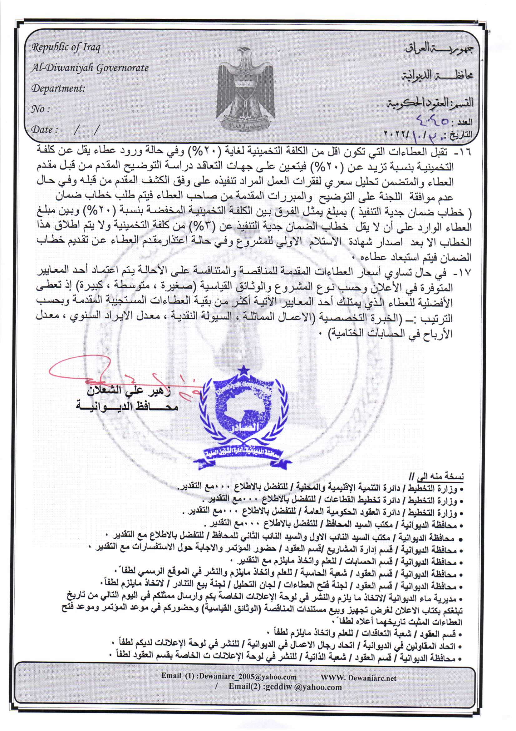 ﴿ إعلان مناقصة (53) لسنة 2022