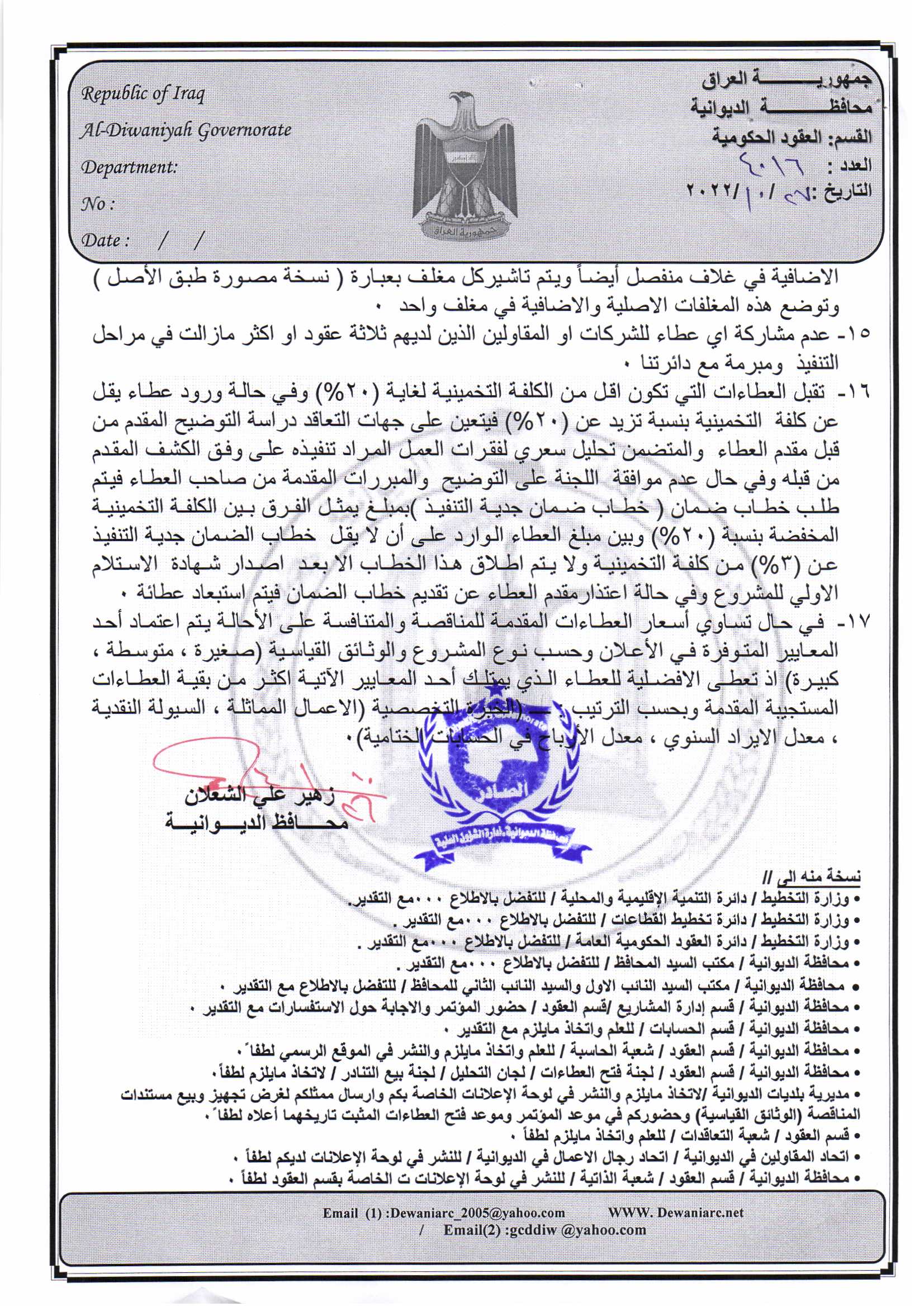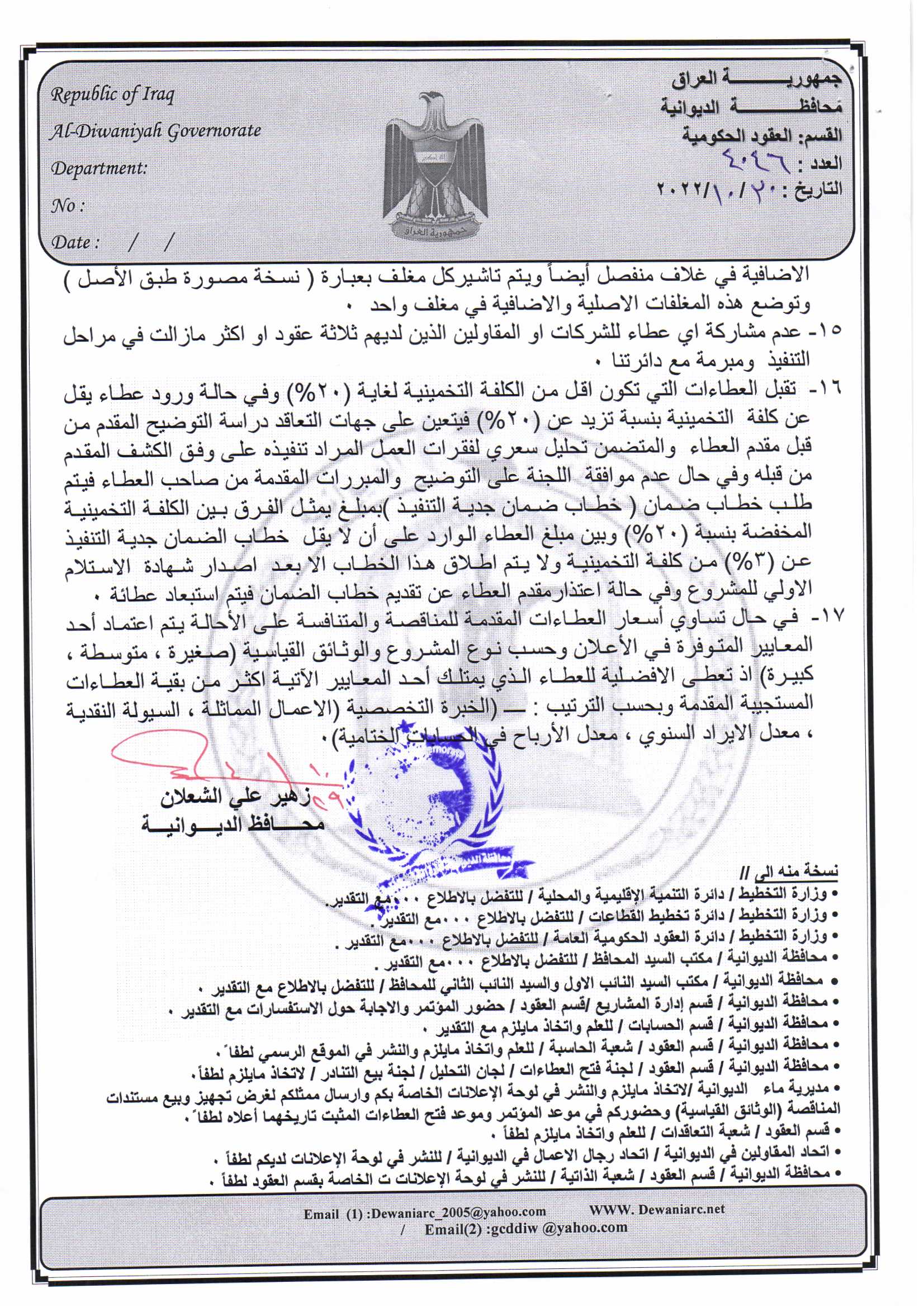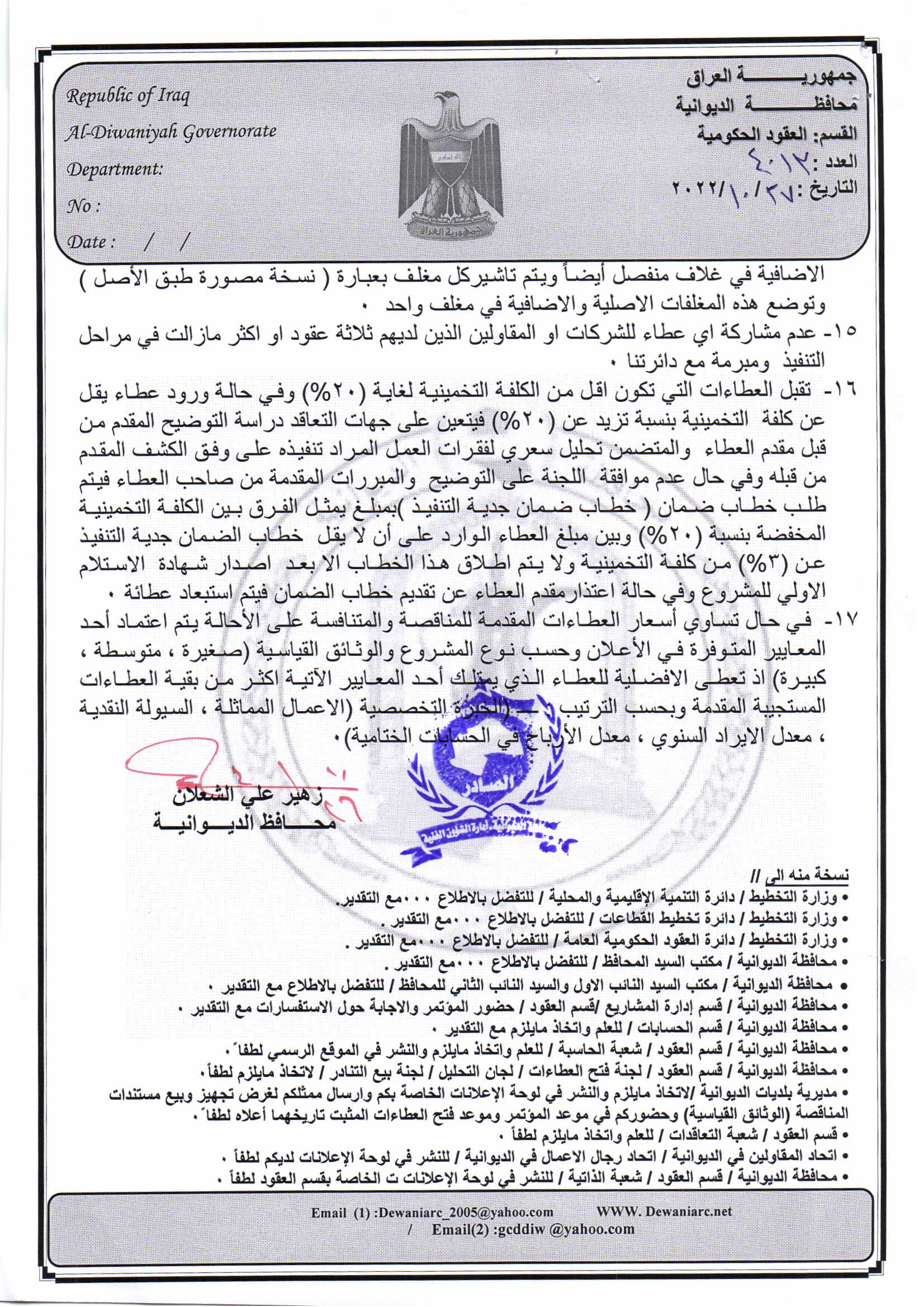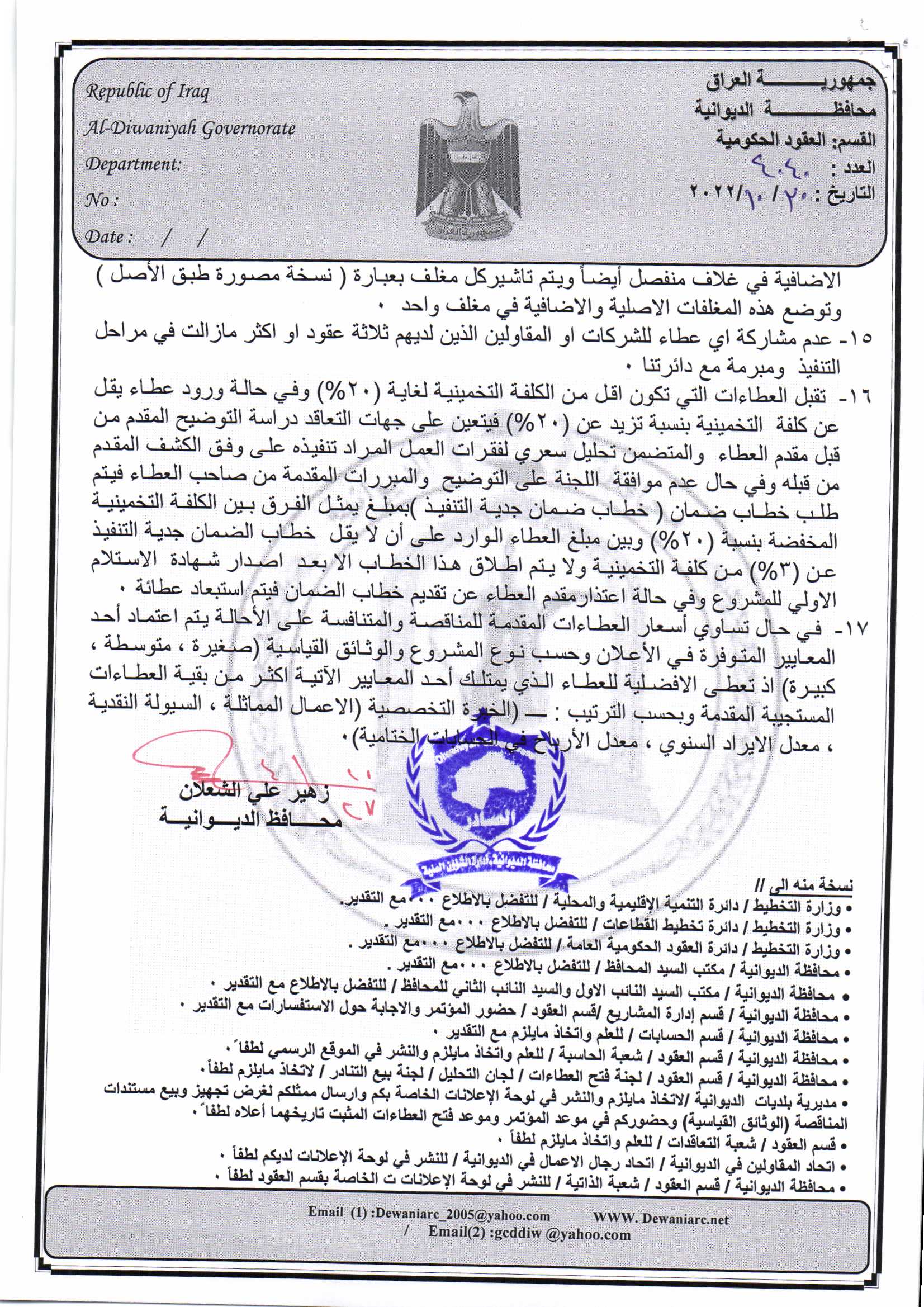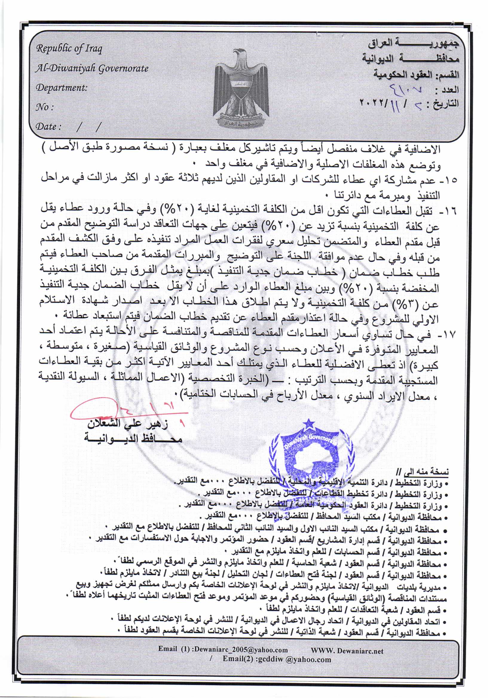 ﴿ إعلان مناقصة (53) لسنة 2022