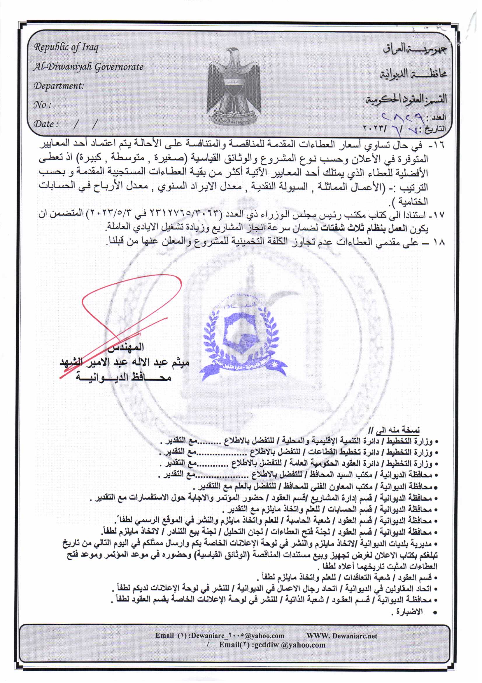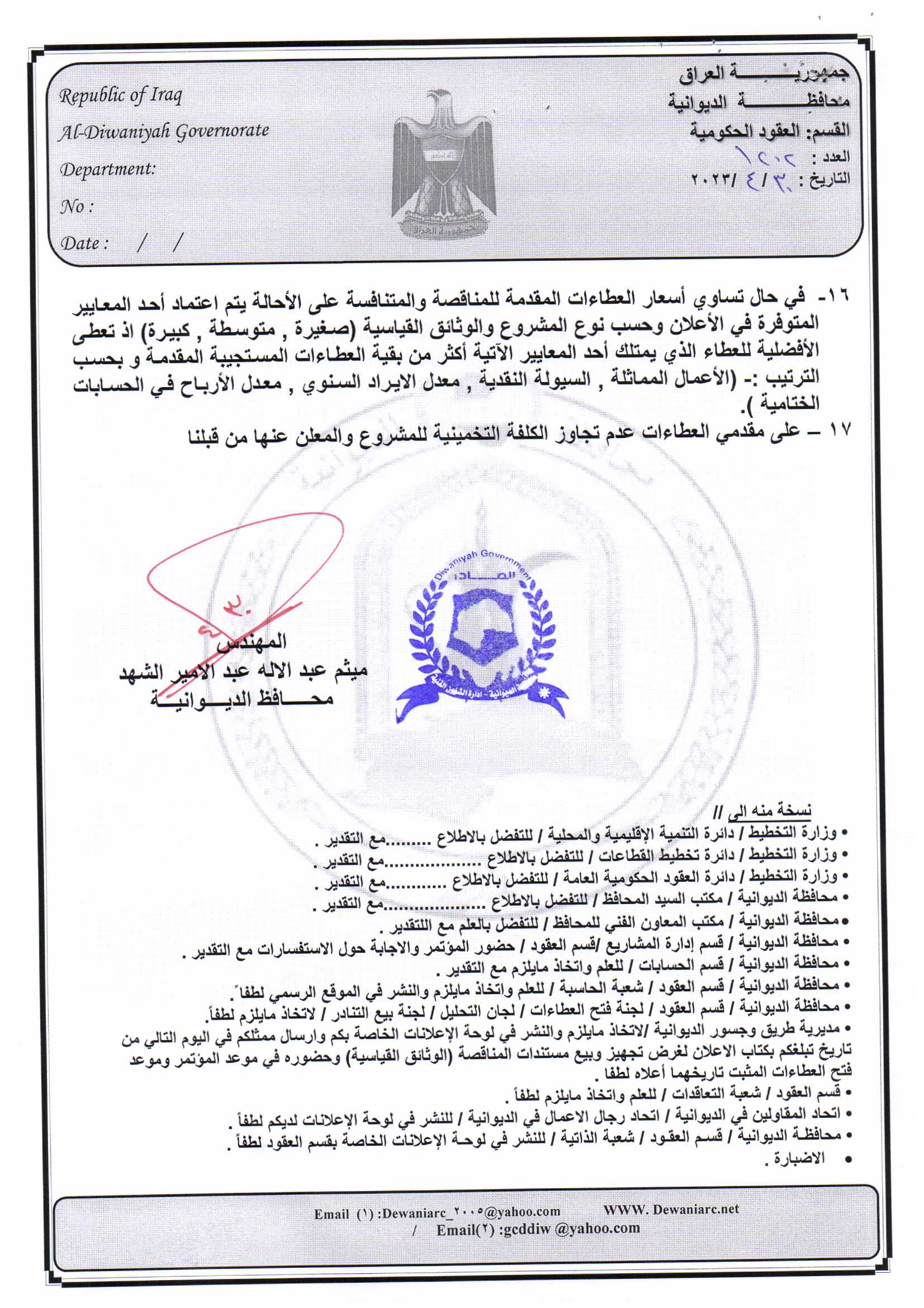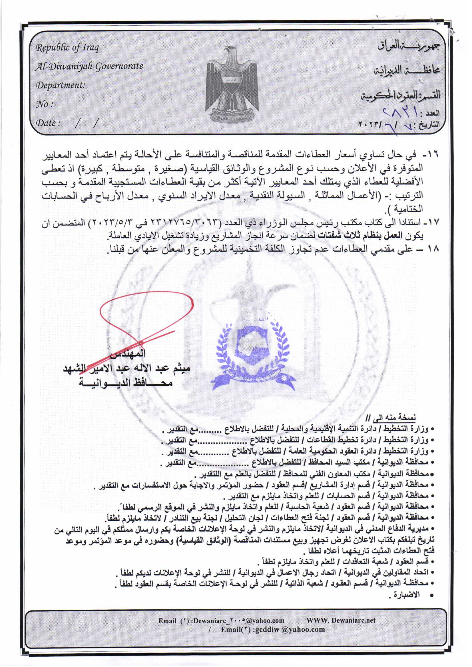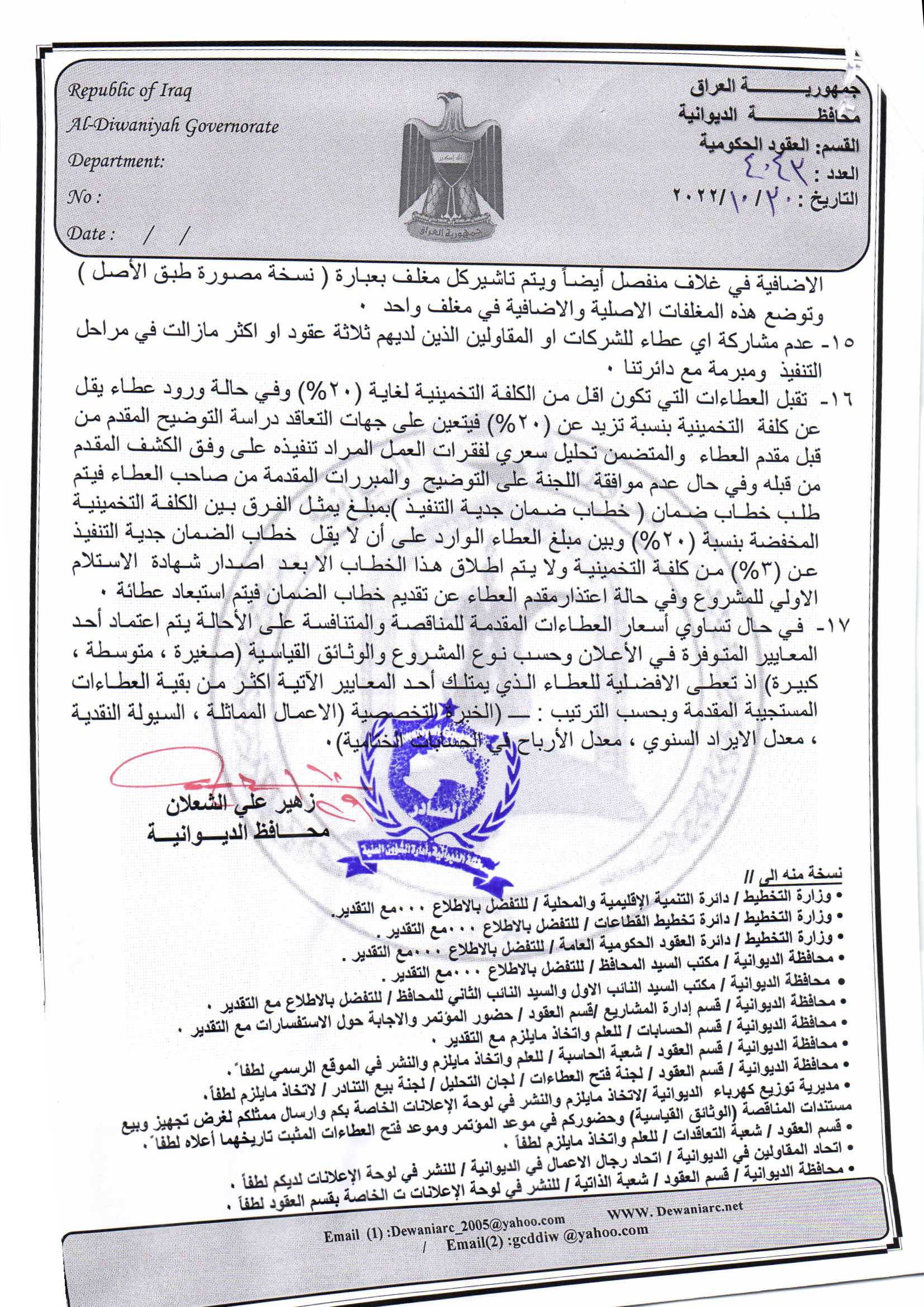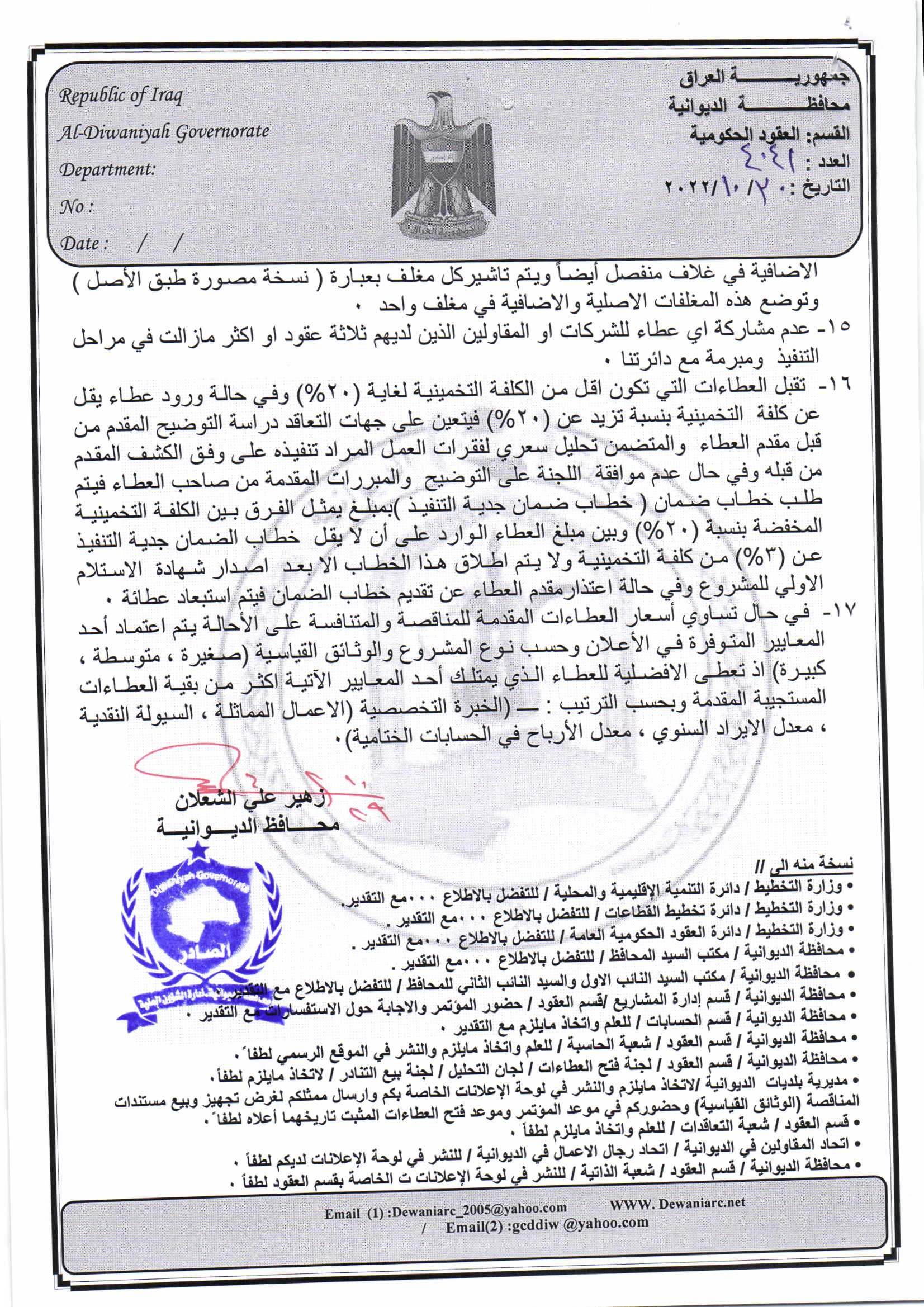 ﴿ إعلان مناقصة (53) لسنة 2022