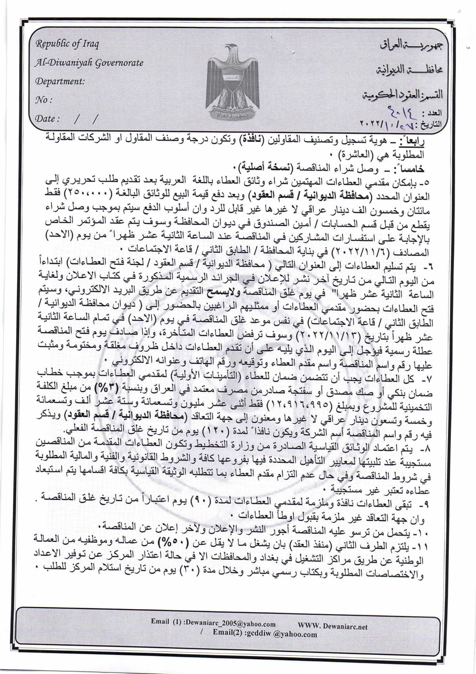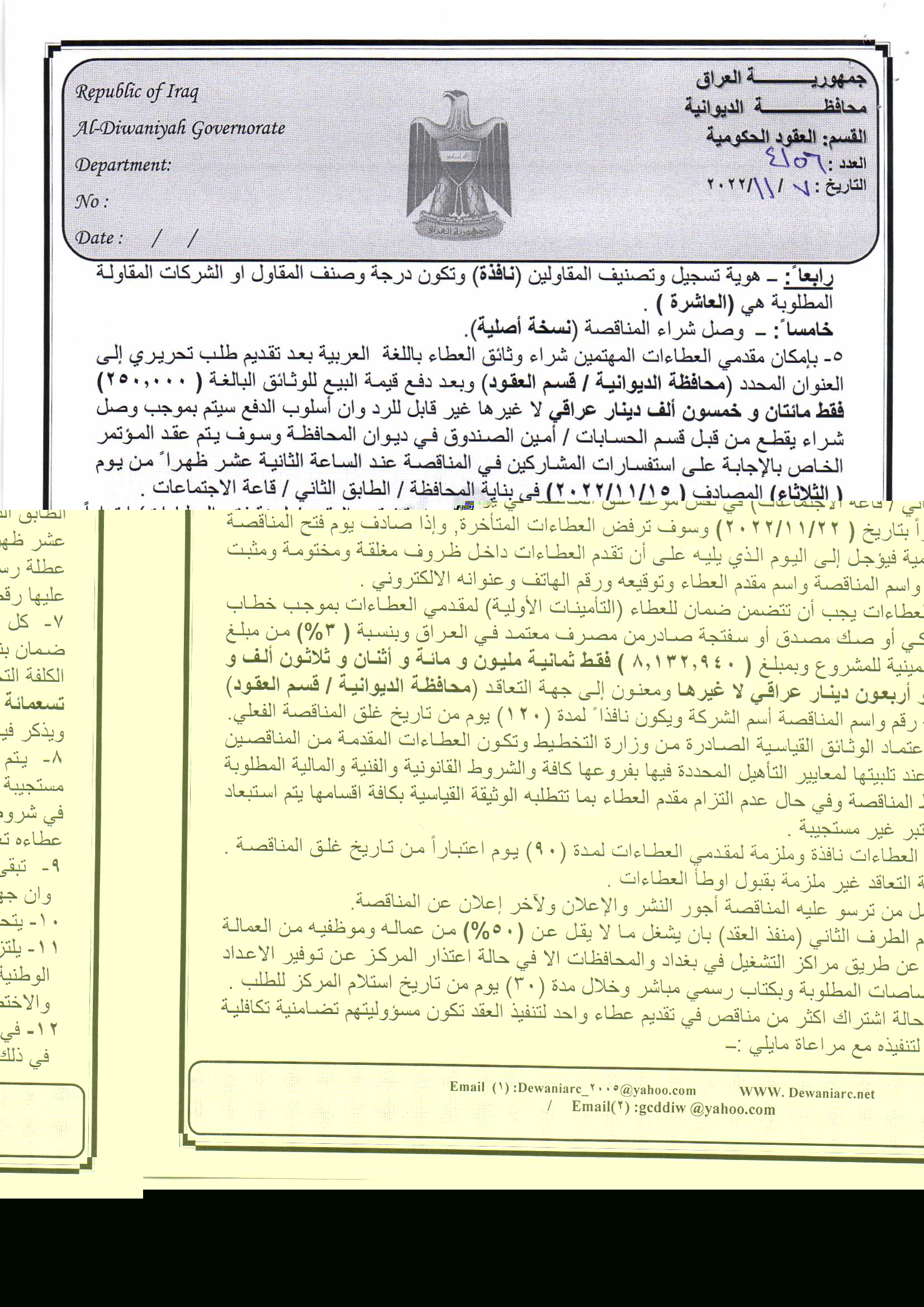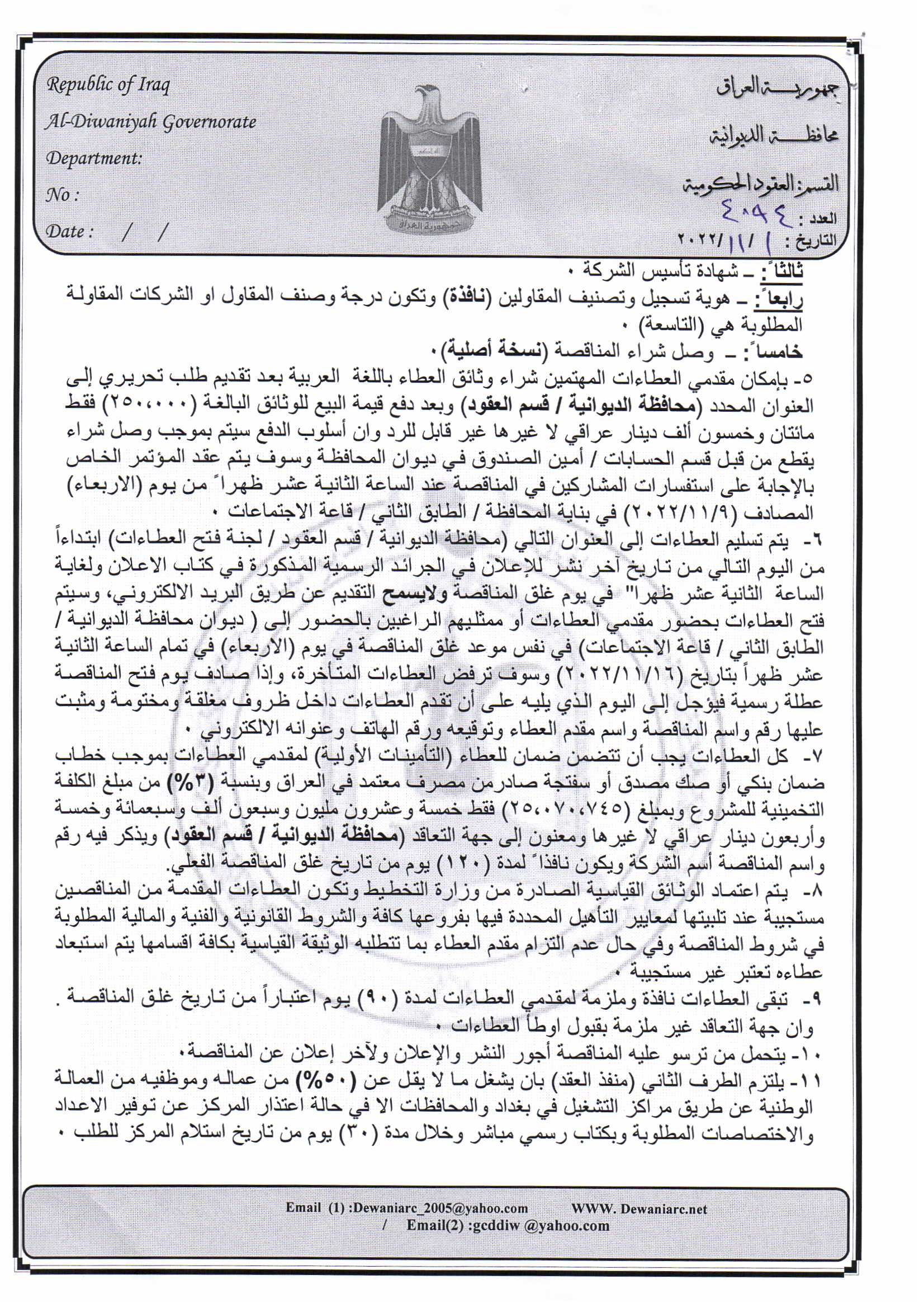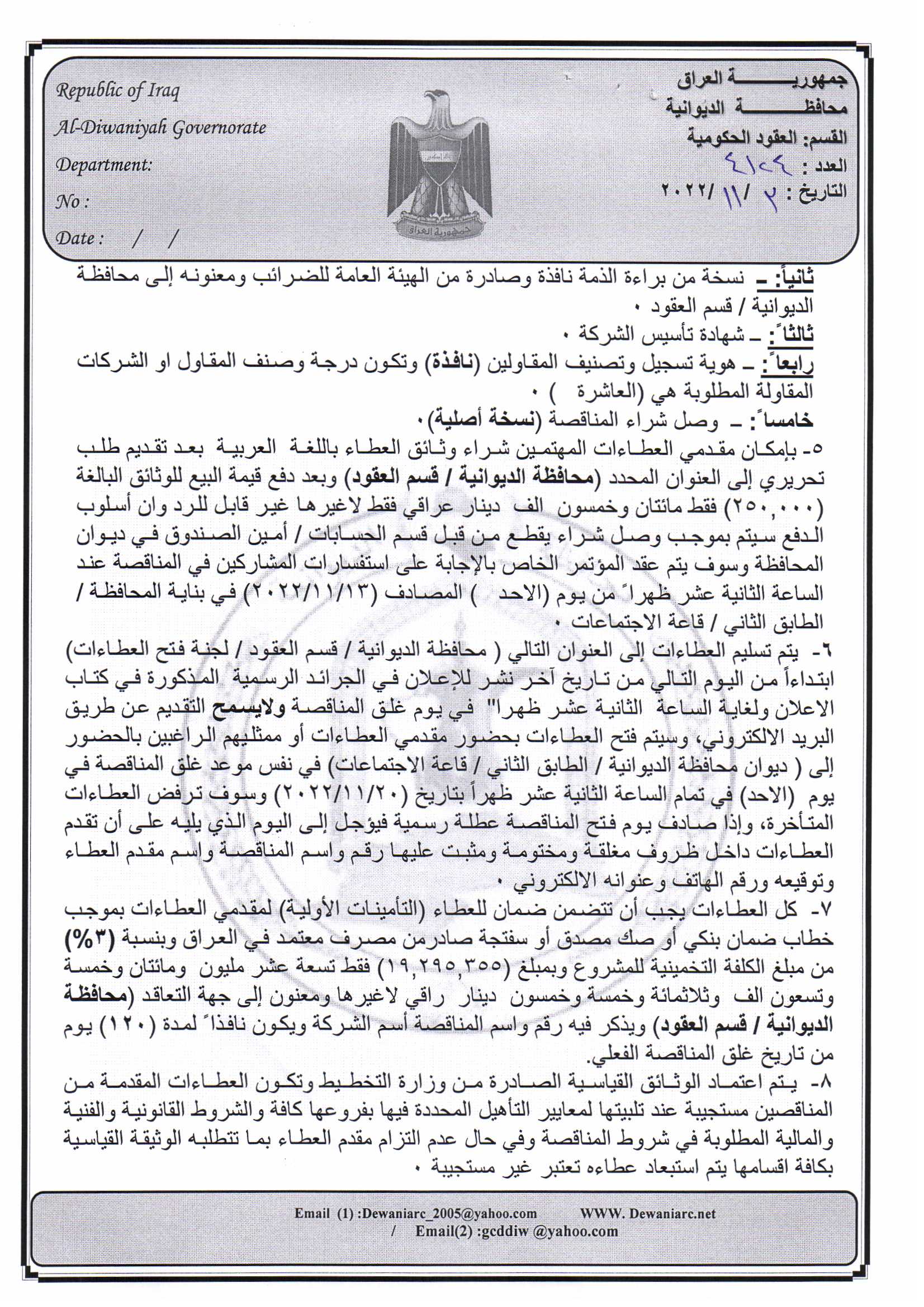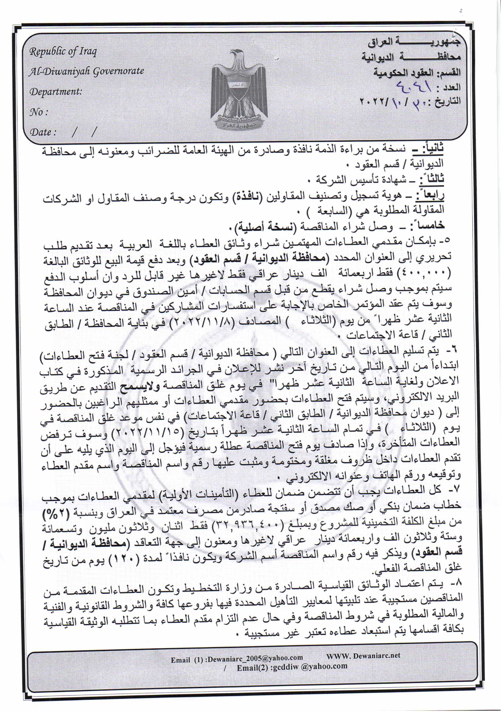 ﴿ إعلان مناقصة (44) لسنة 2022