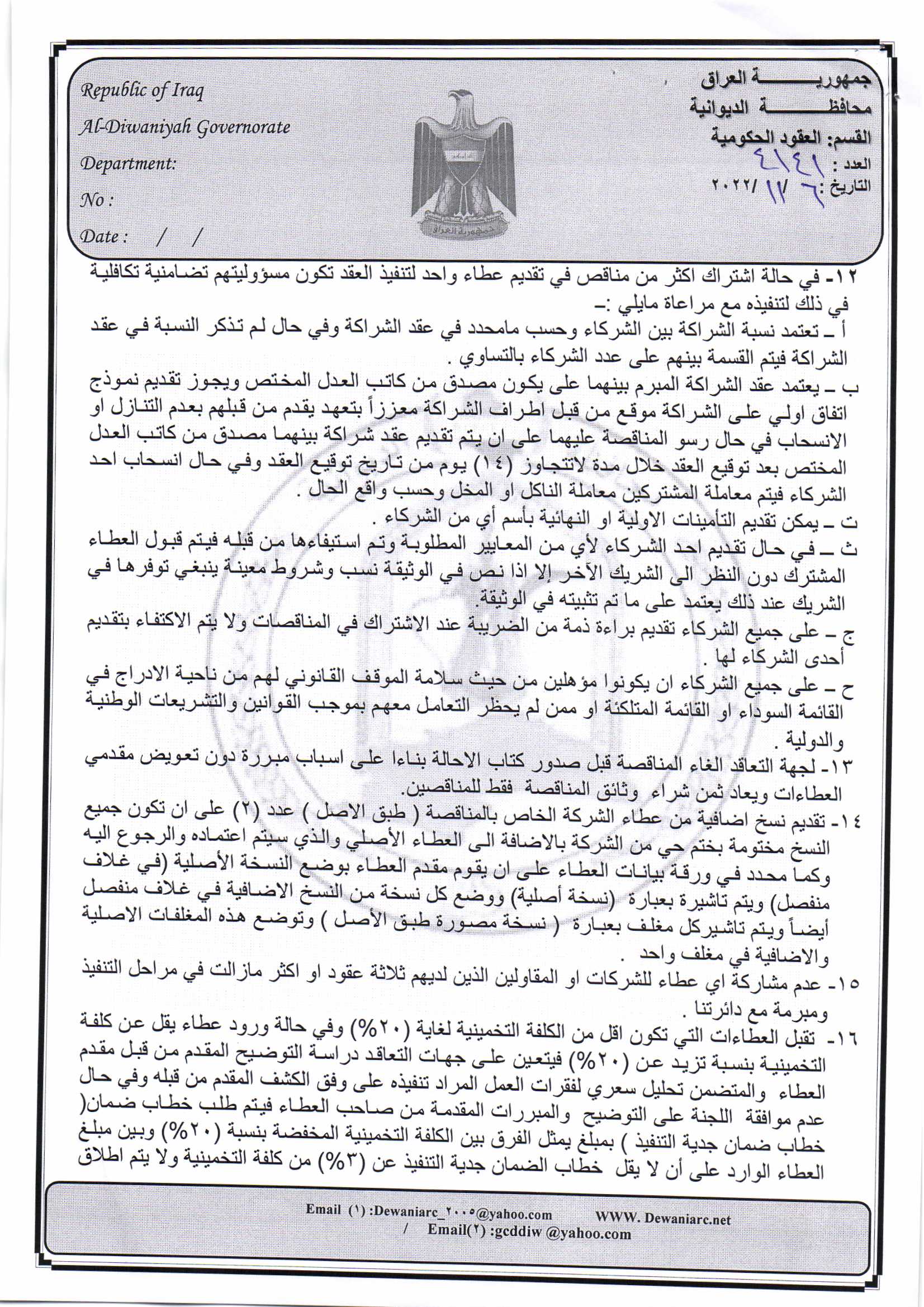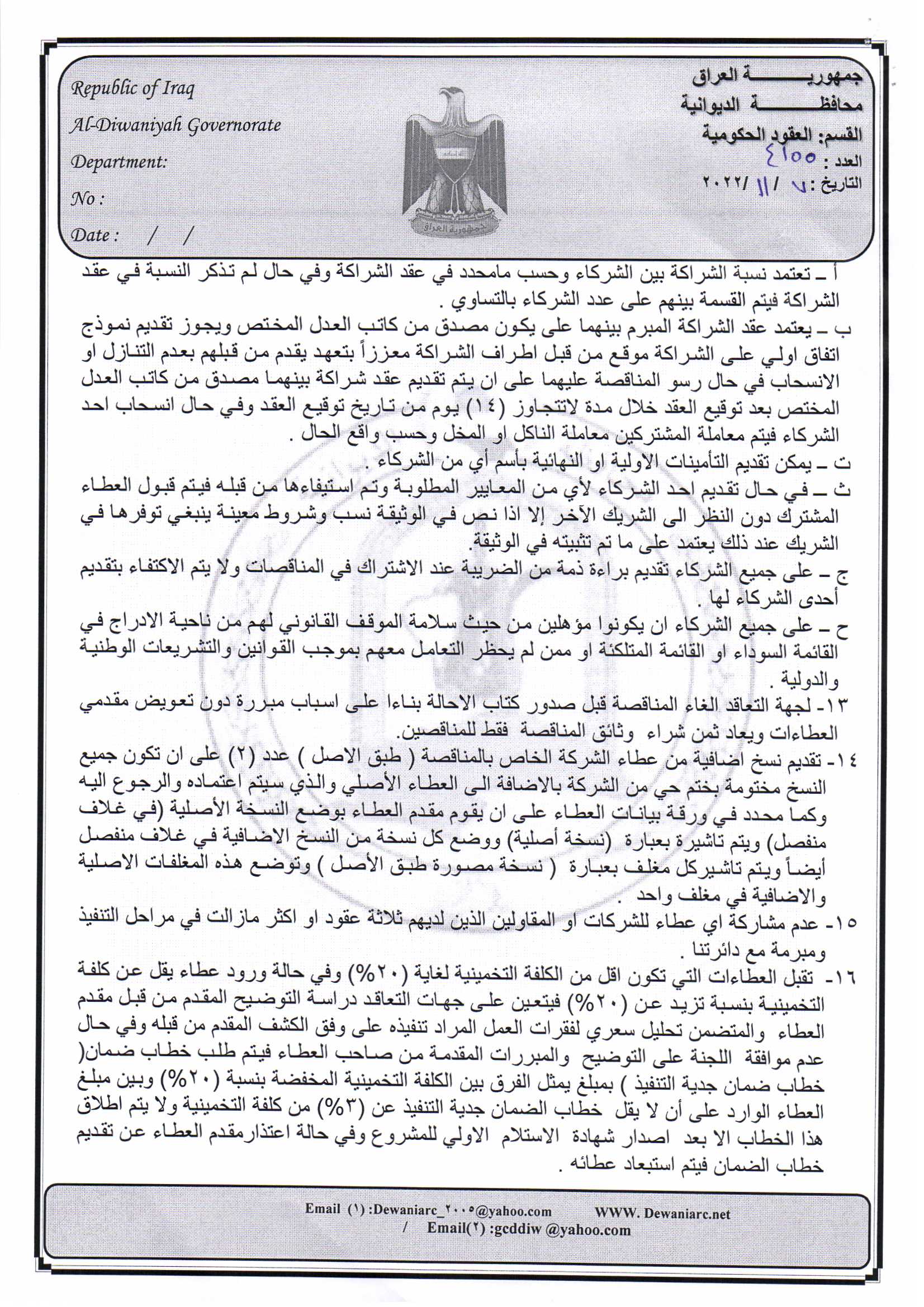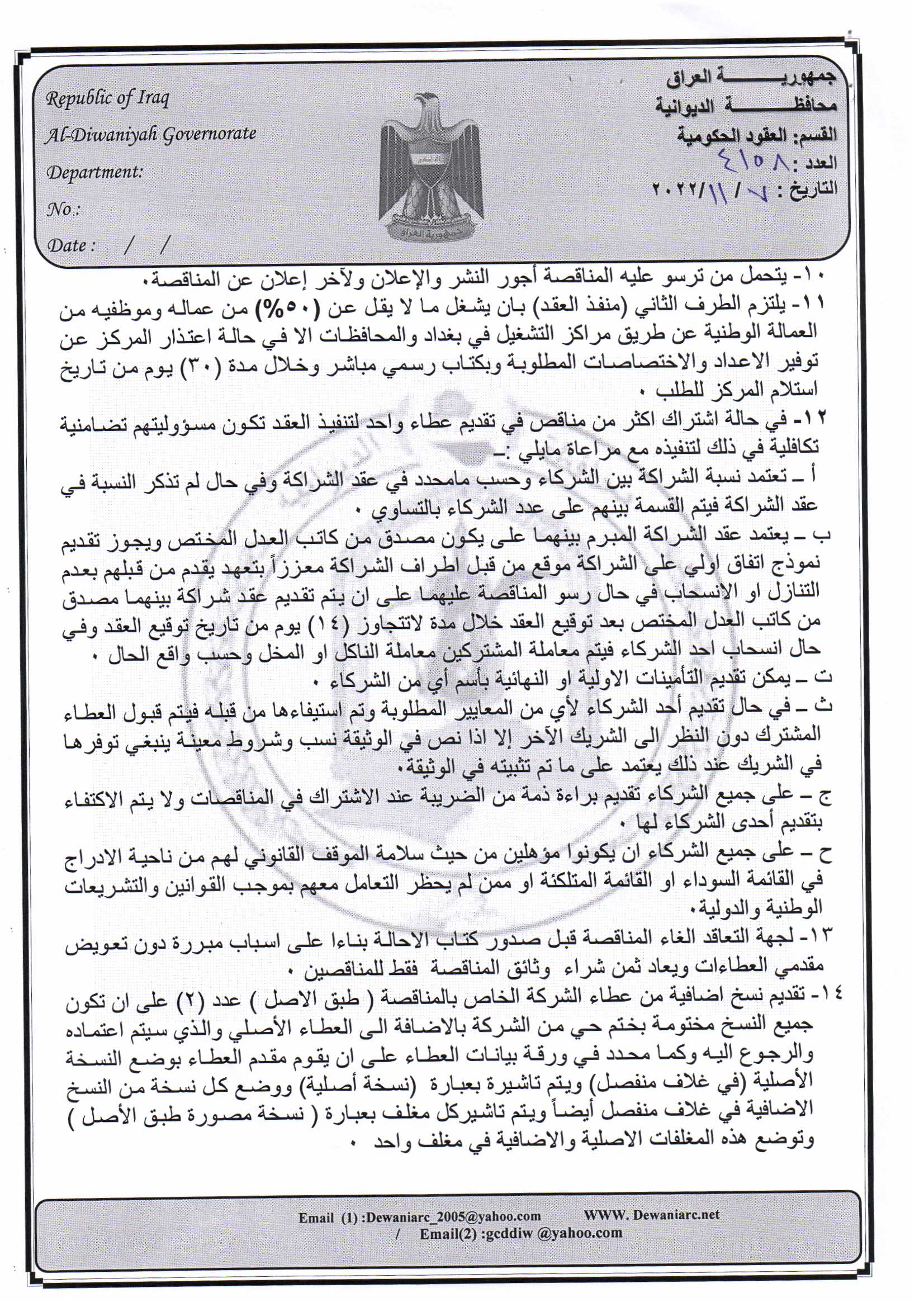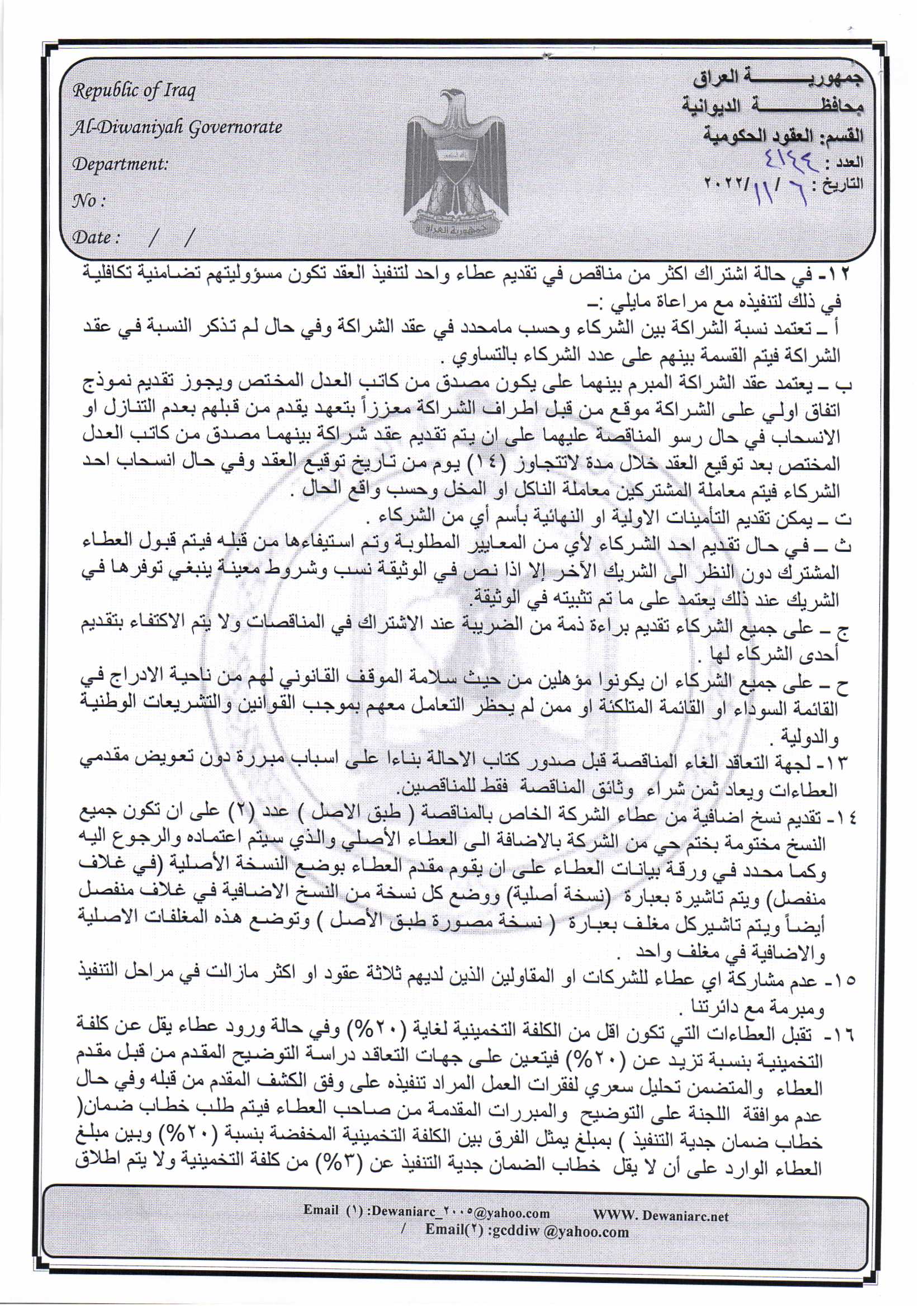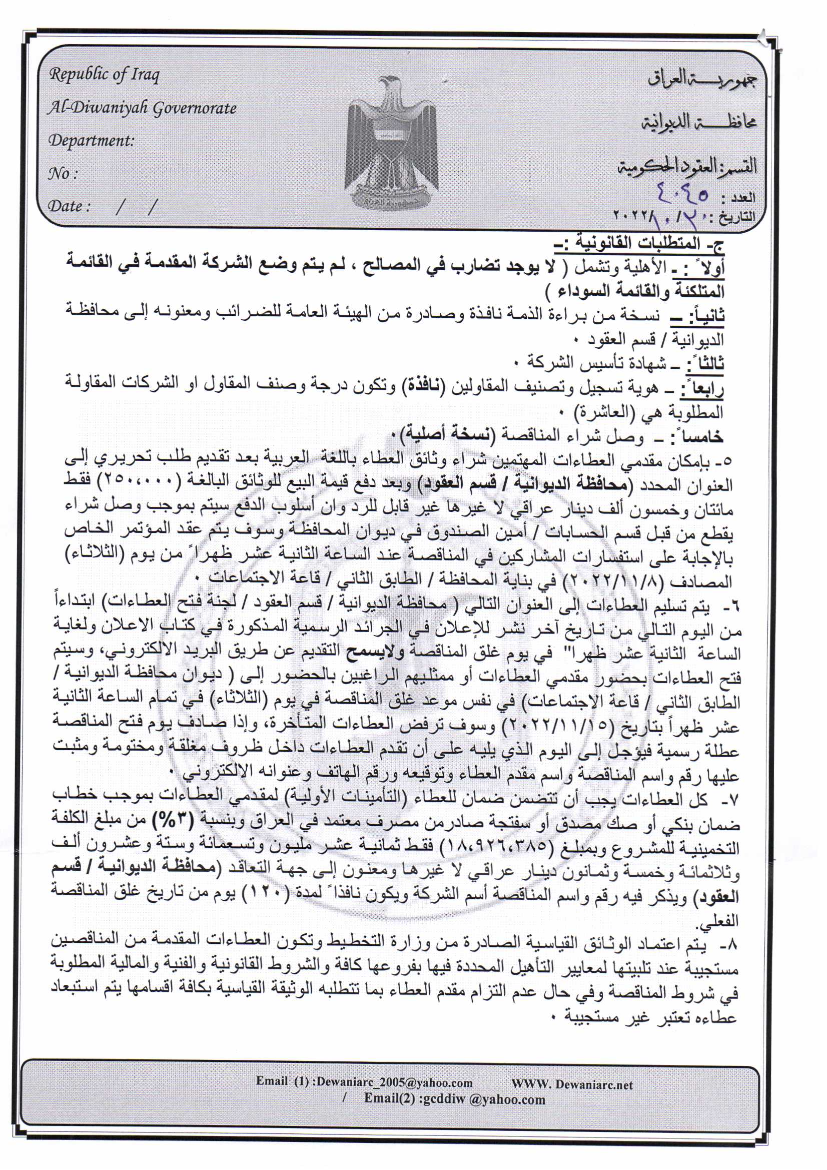 ﴿ إعلان مناقصة (44) لسنة 2022