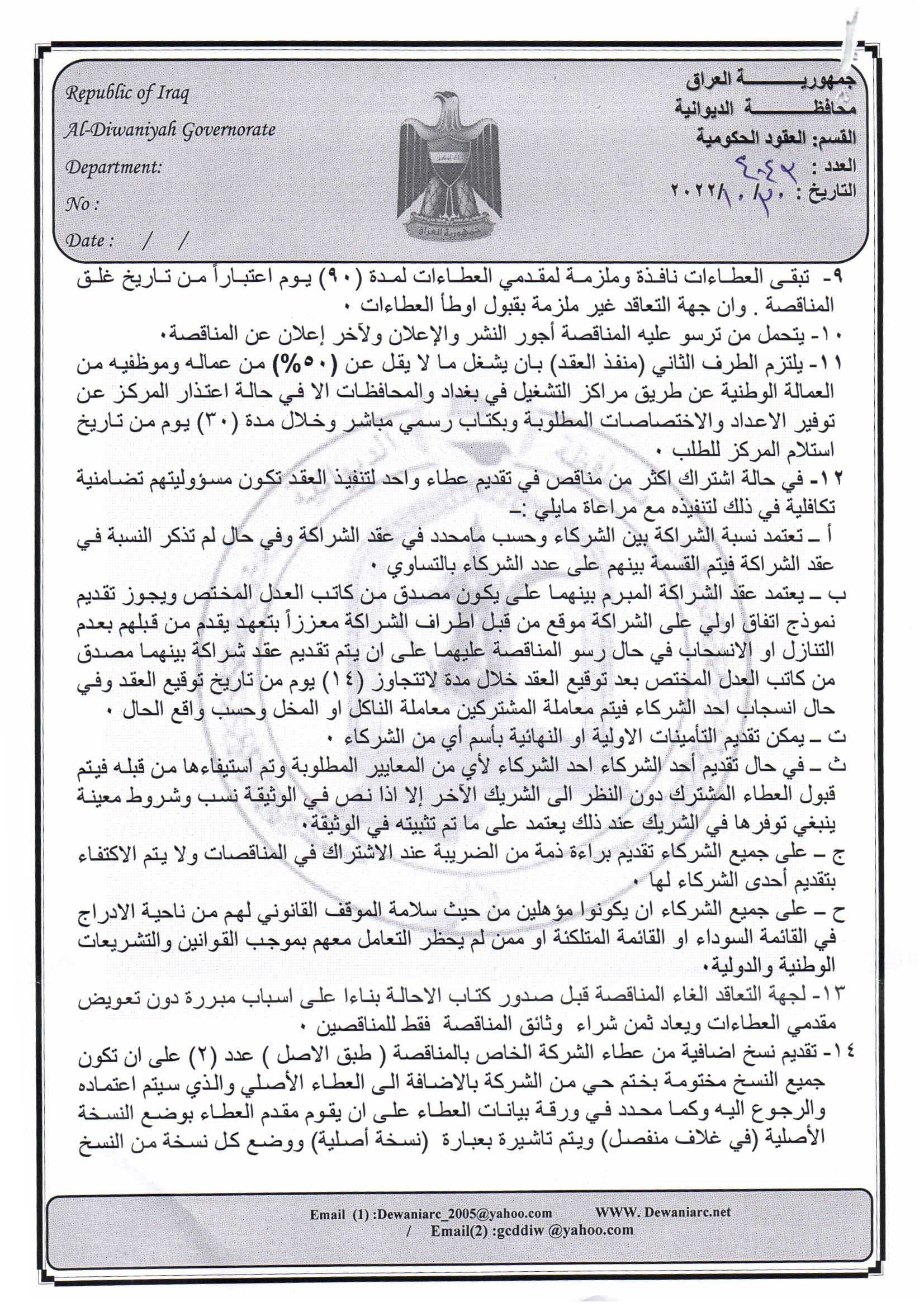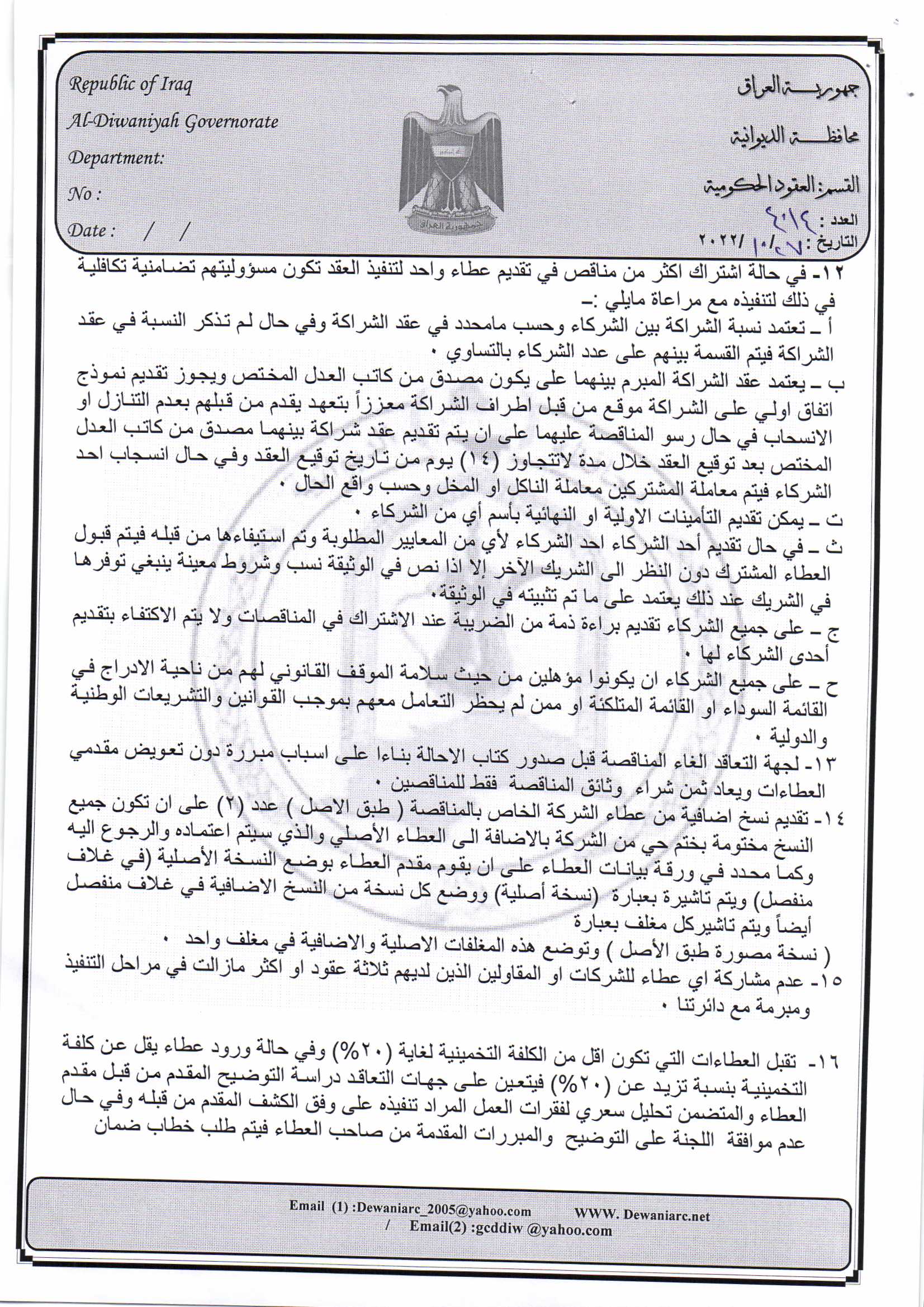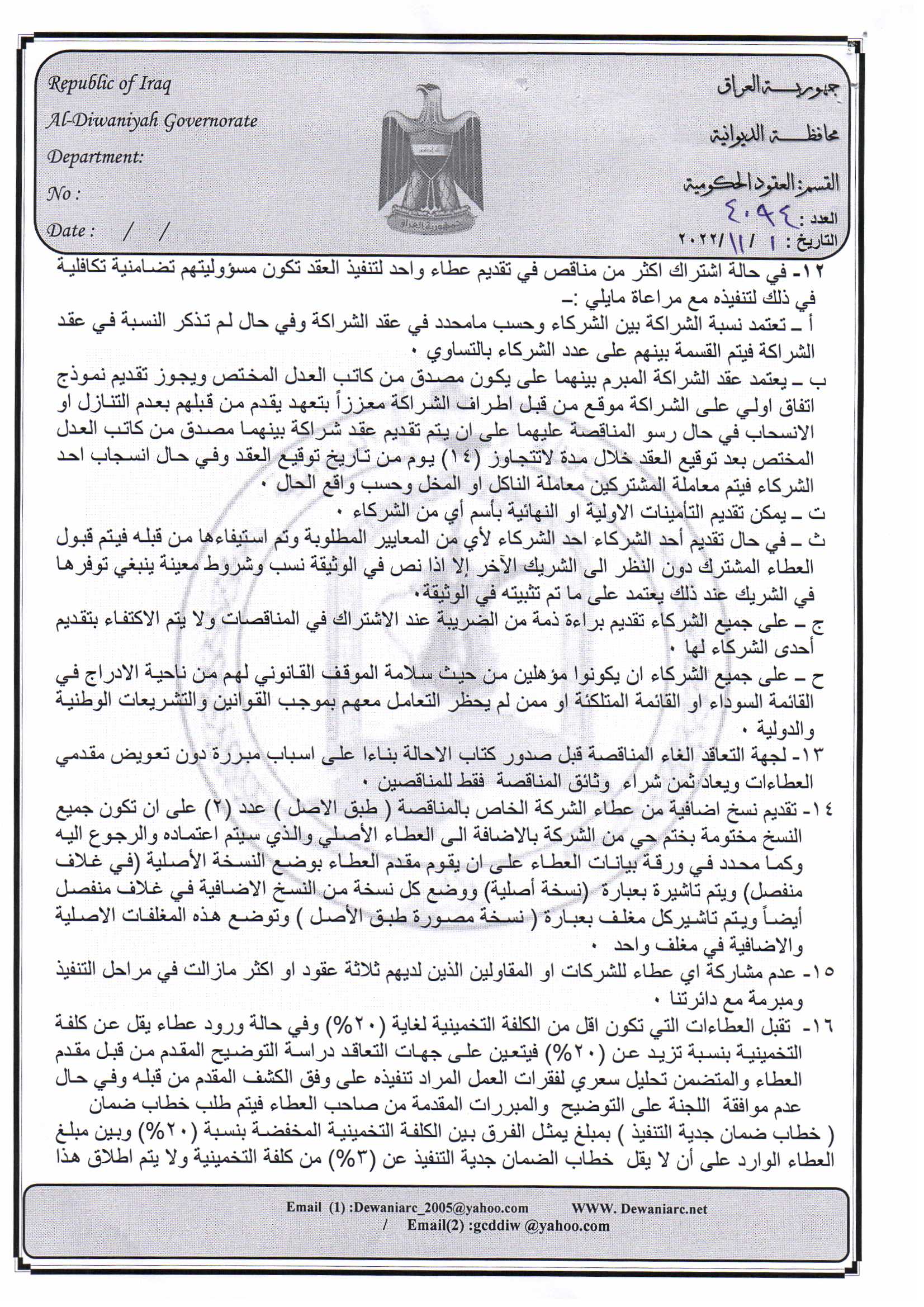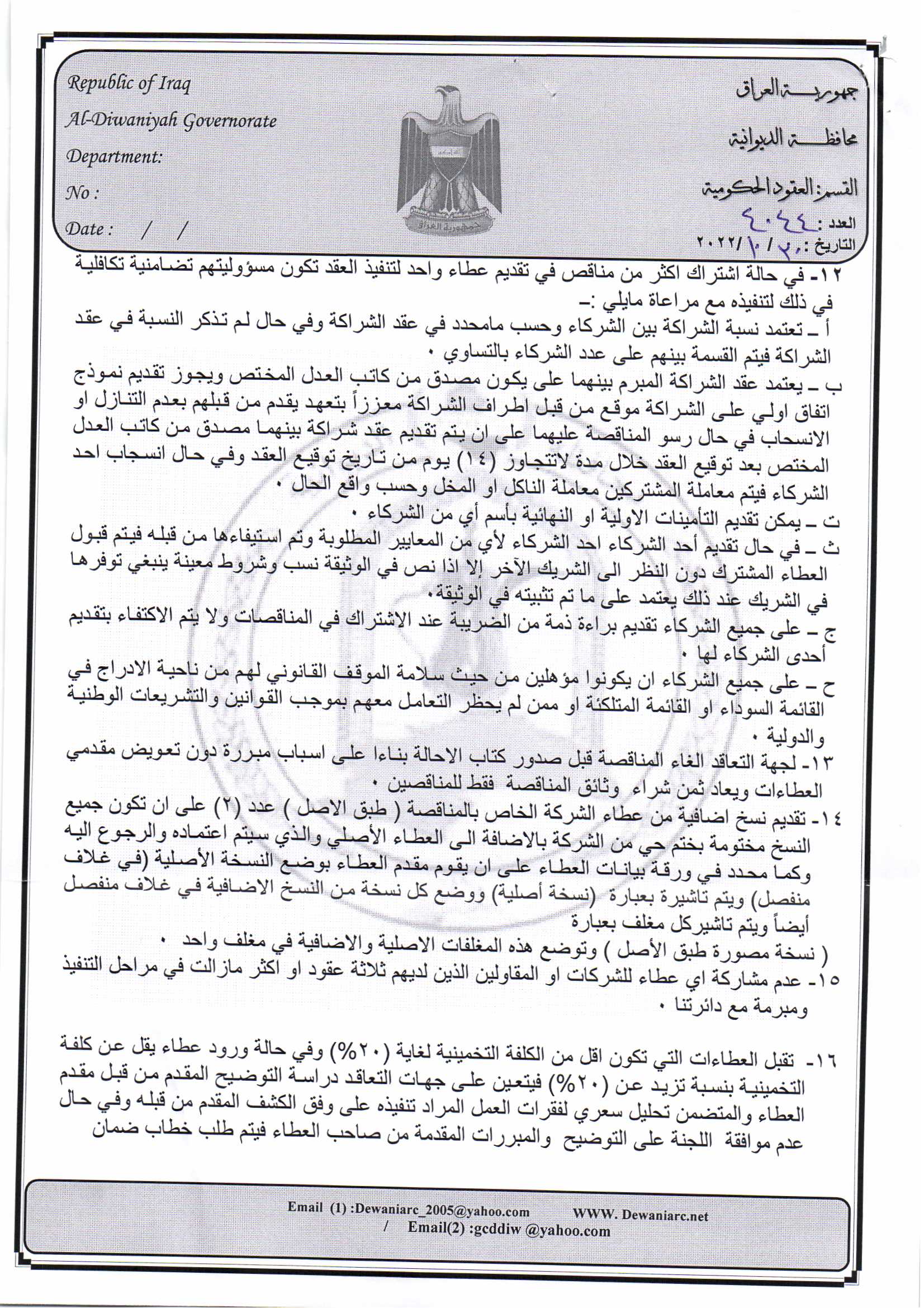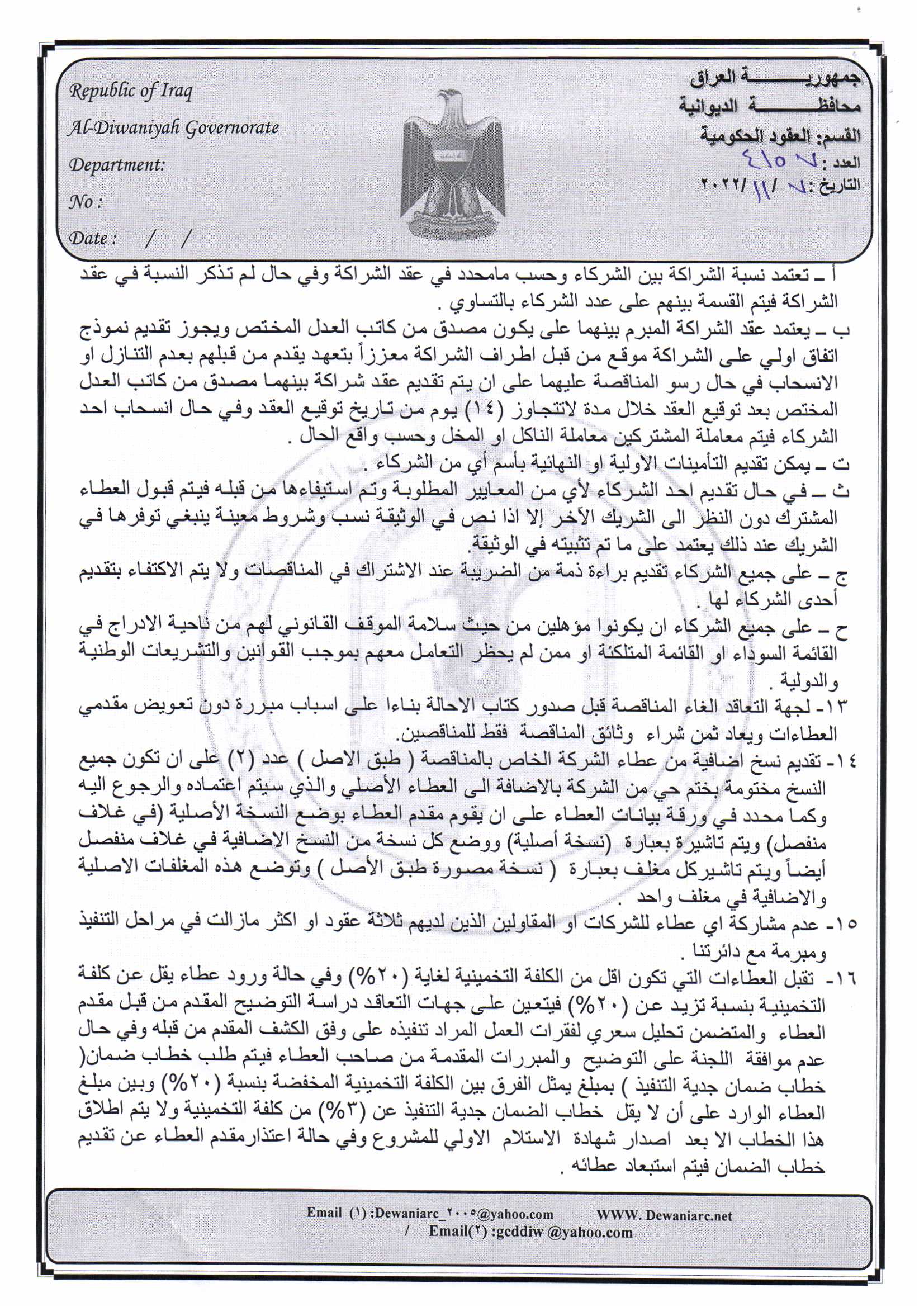 ﴿ إعلان مناقصة (44) لسنة 2022