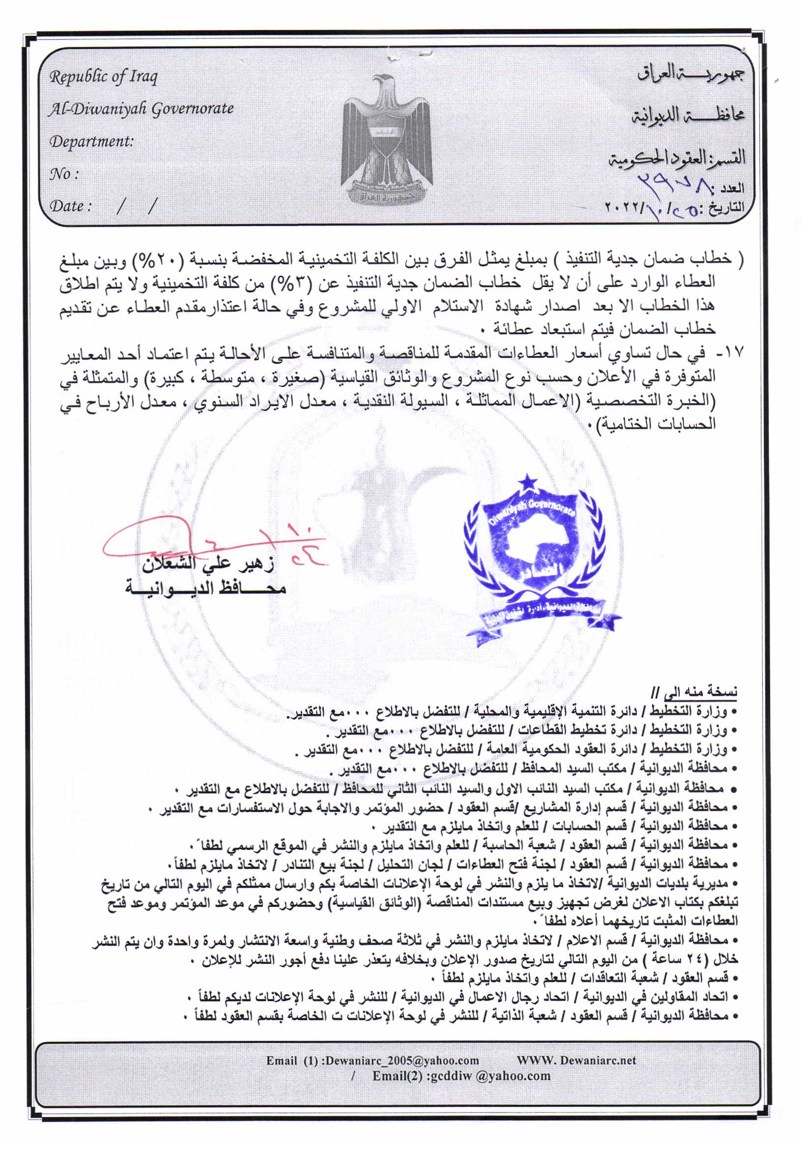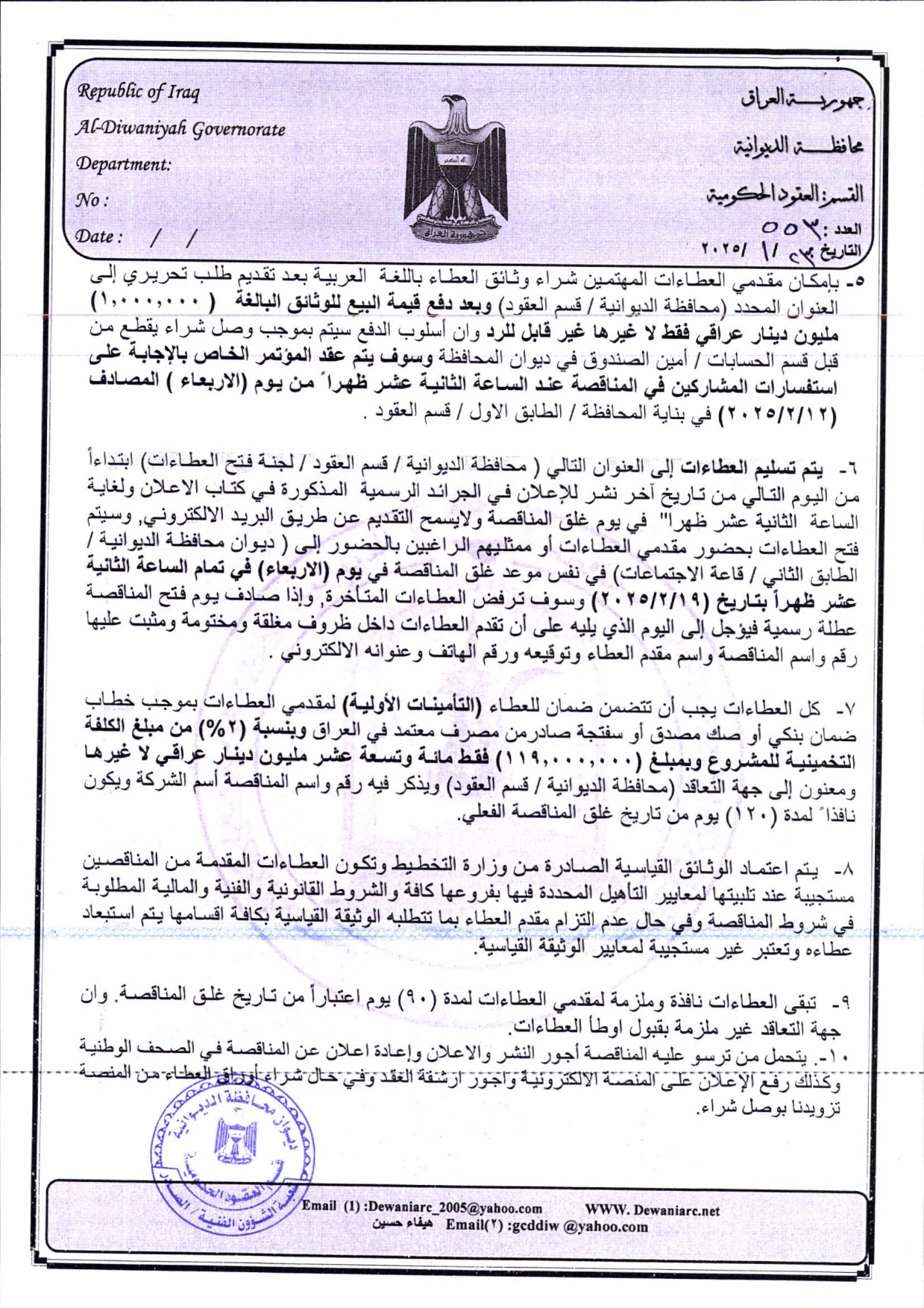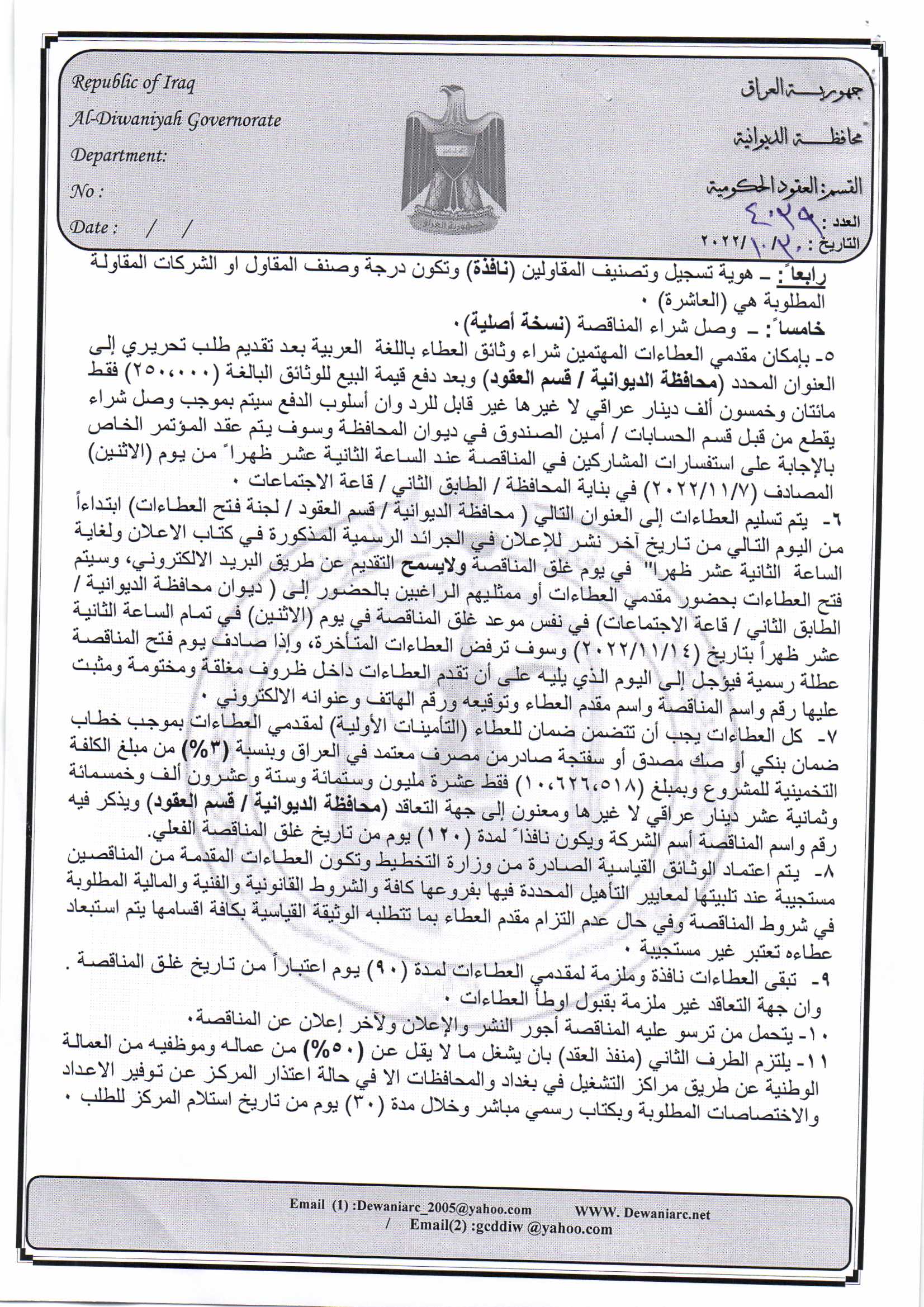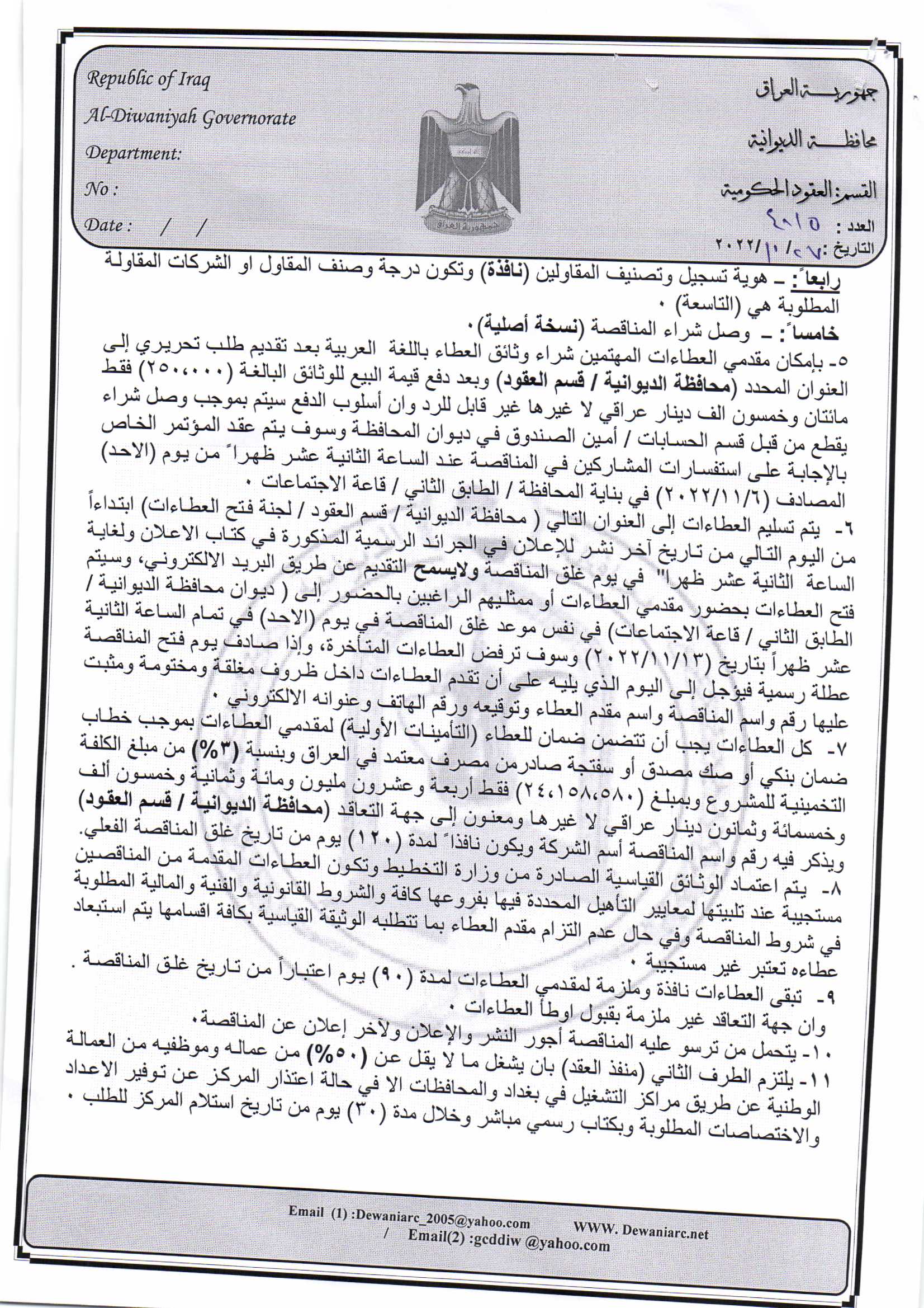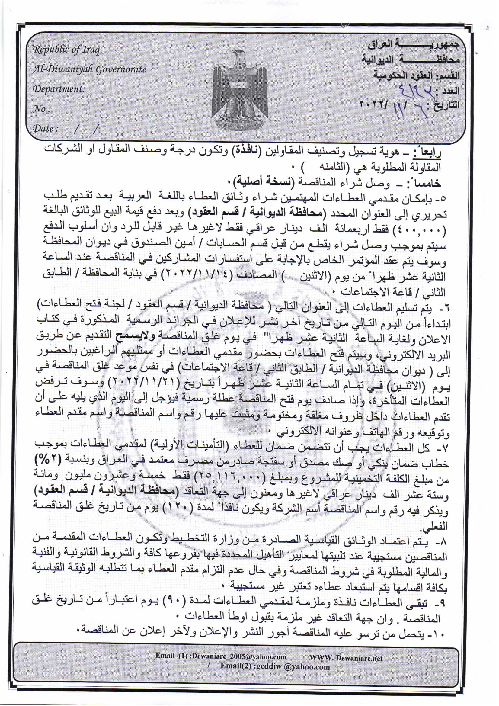 ﴿ إعلان مناقصة (25) لسنة 2022