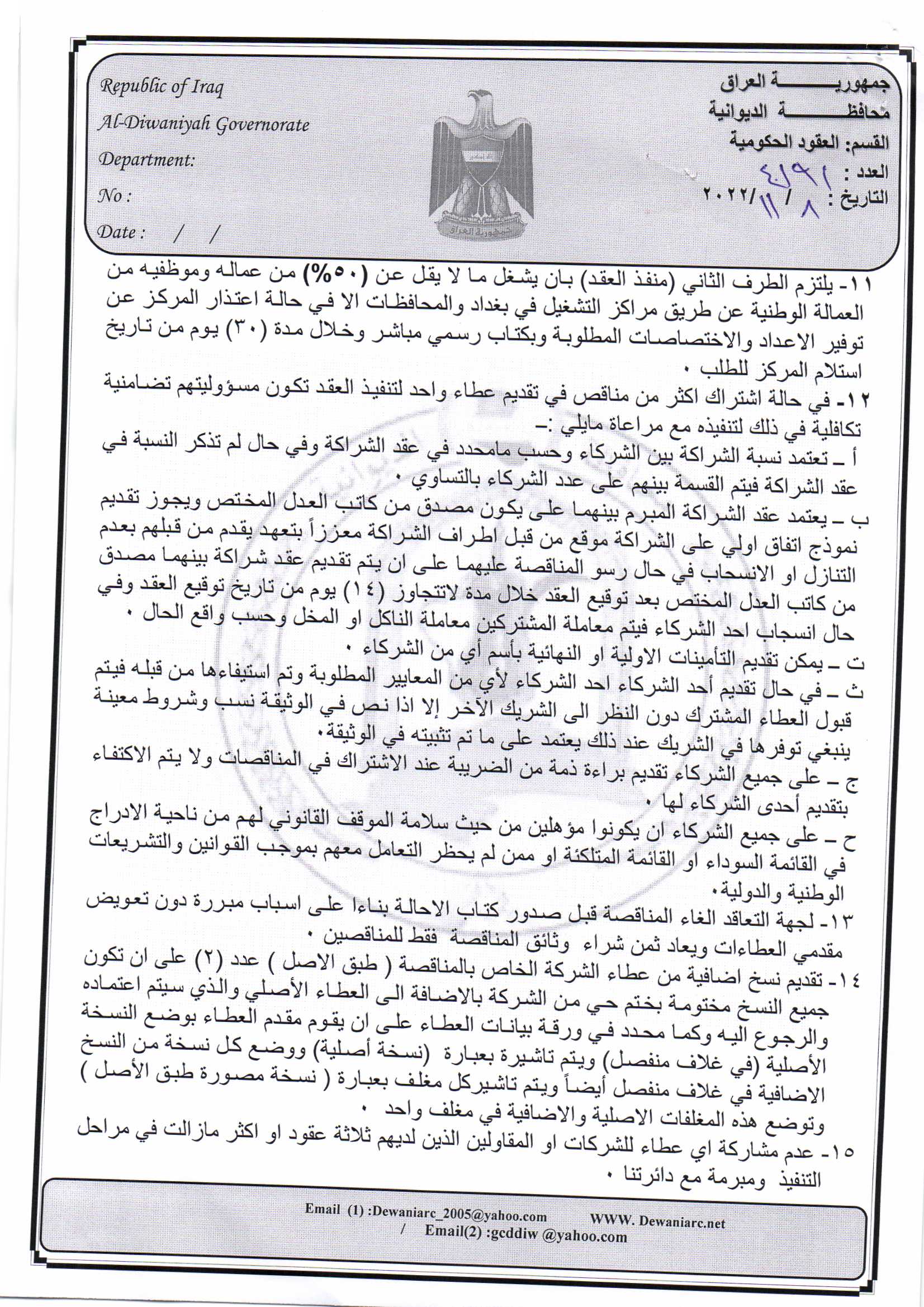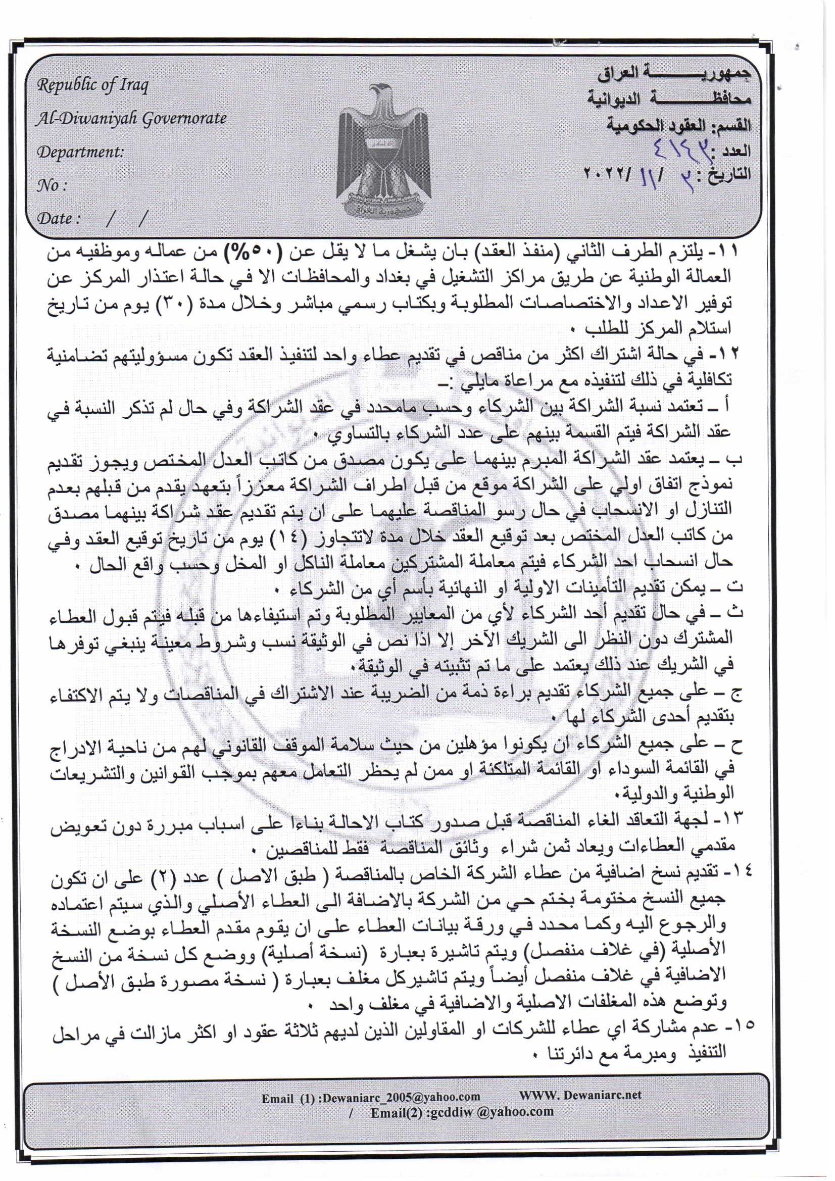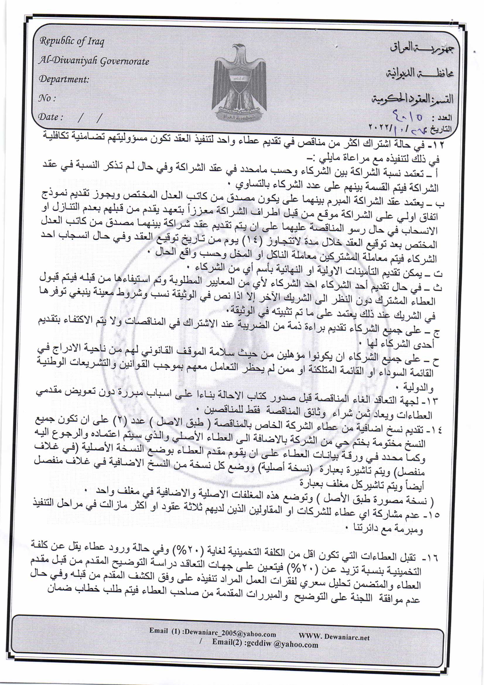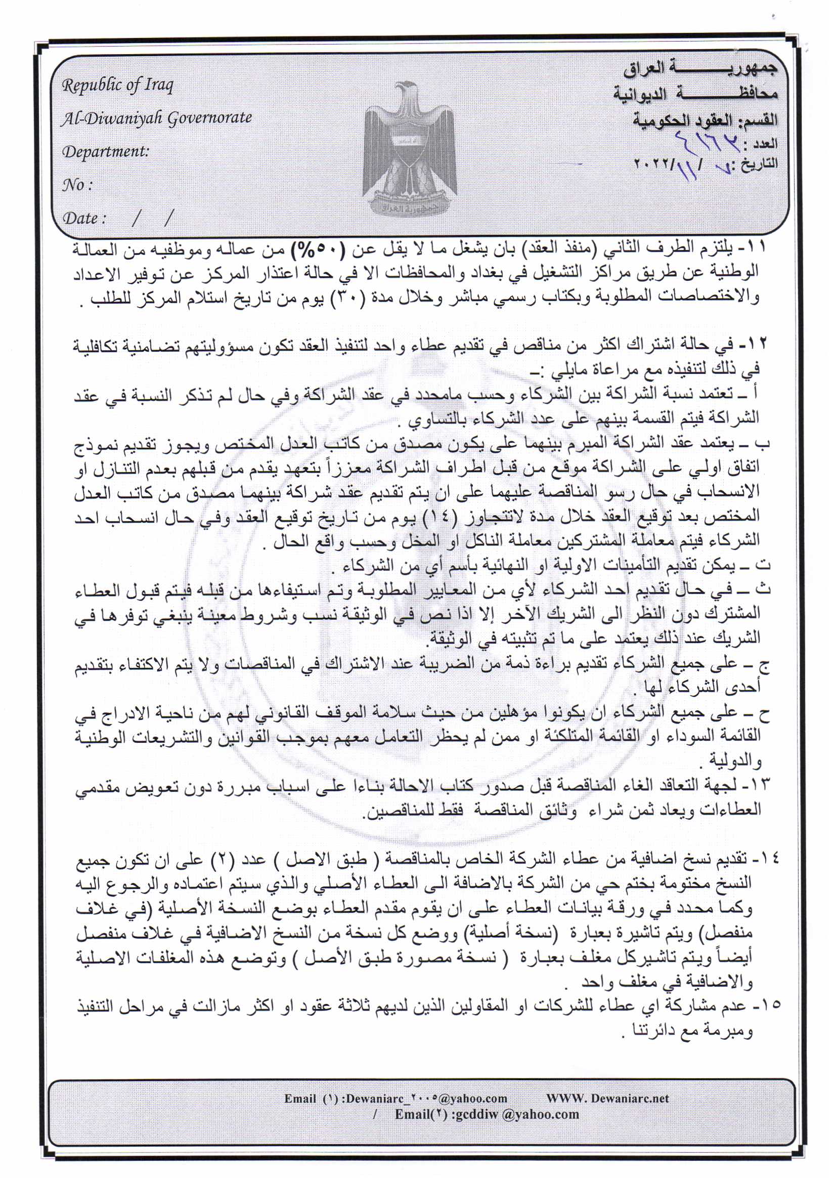 ﴿ إعلان مناقصة (15) لسنة 2022