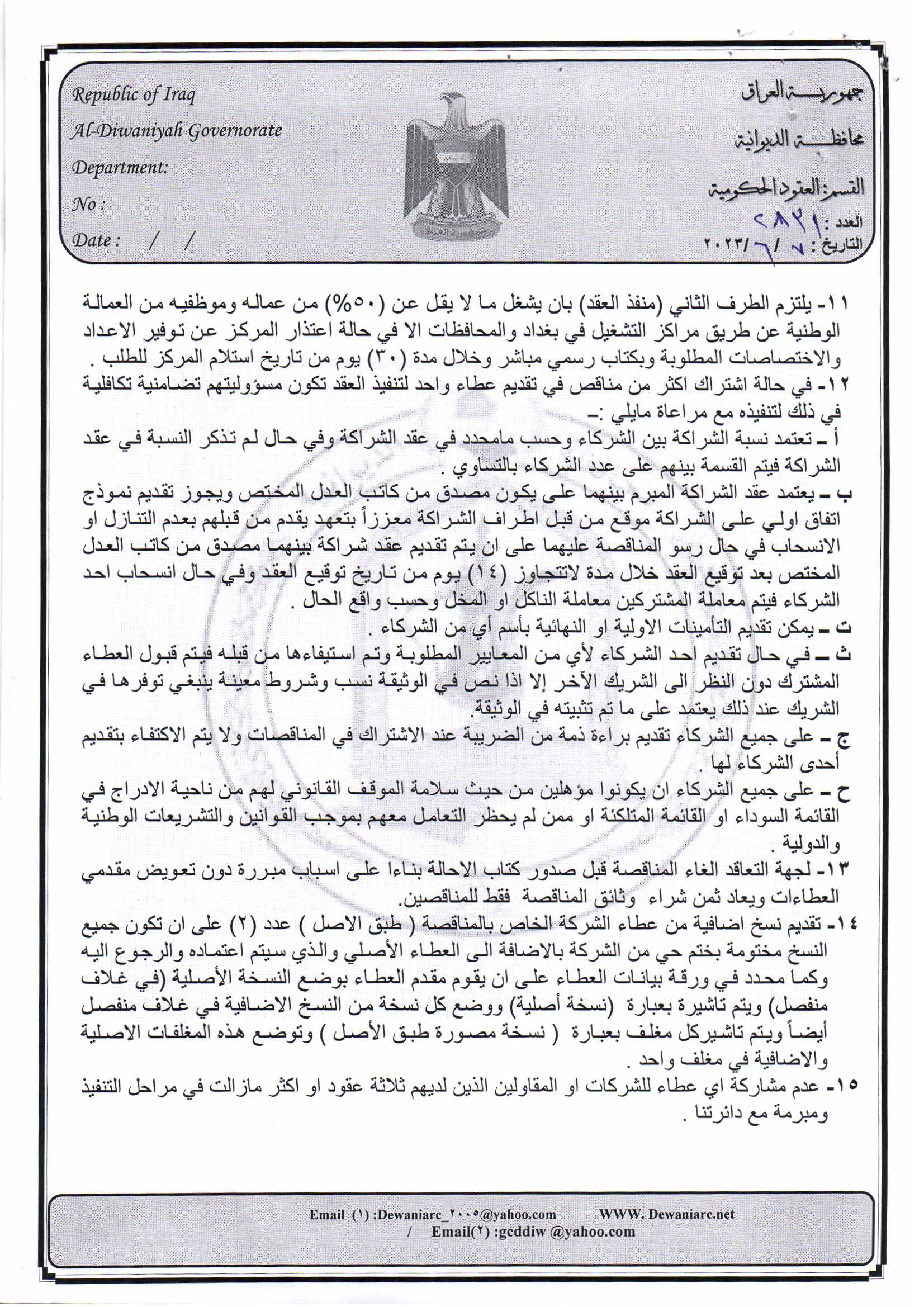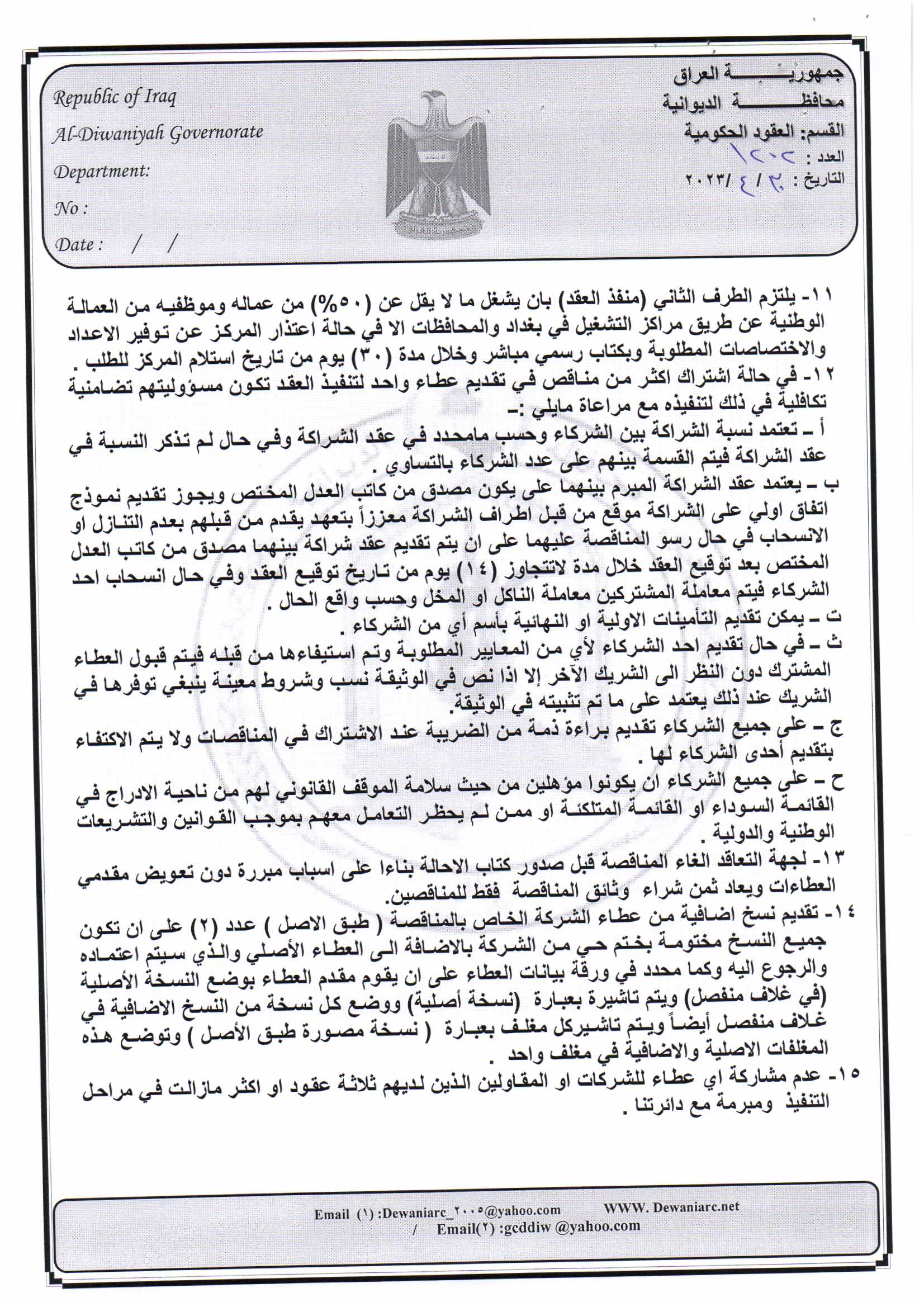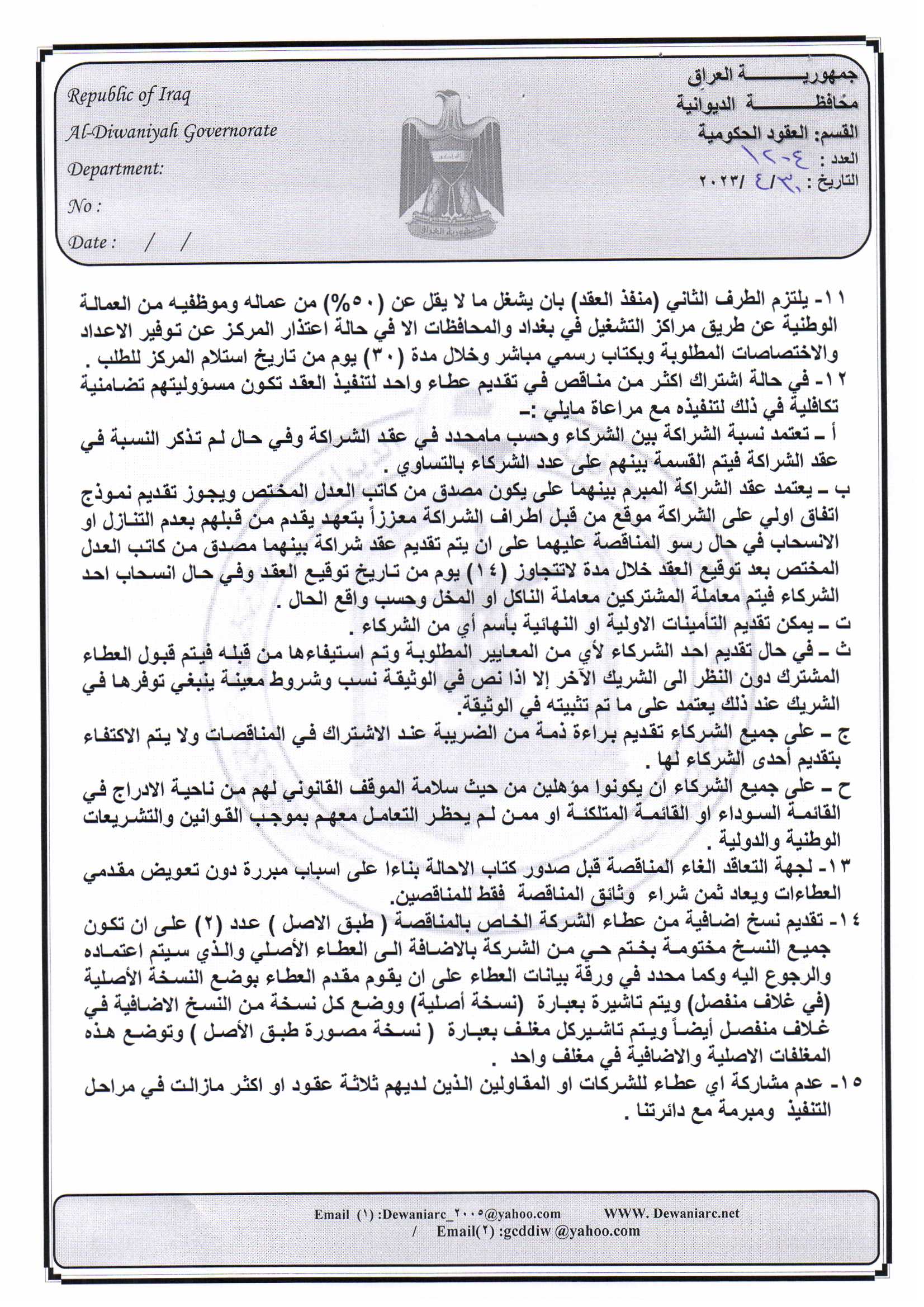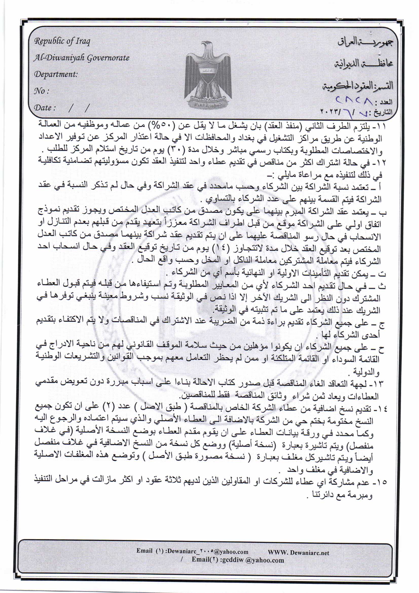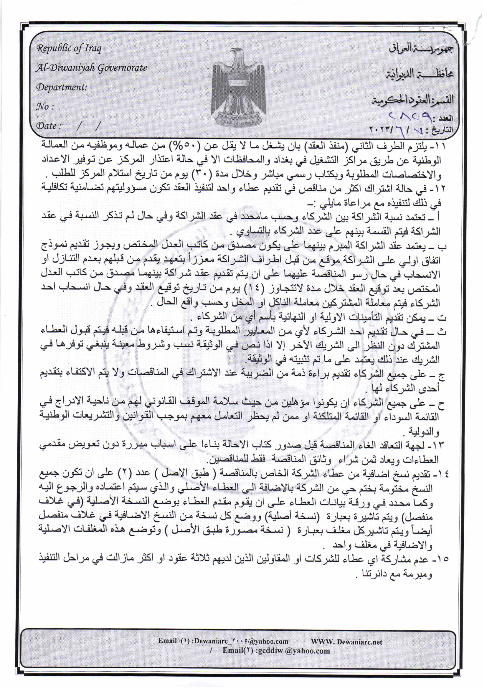 ﴿ إعلان مناقصة (15) لسنة 2022