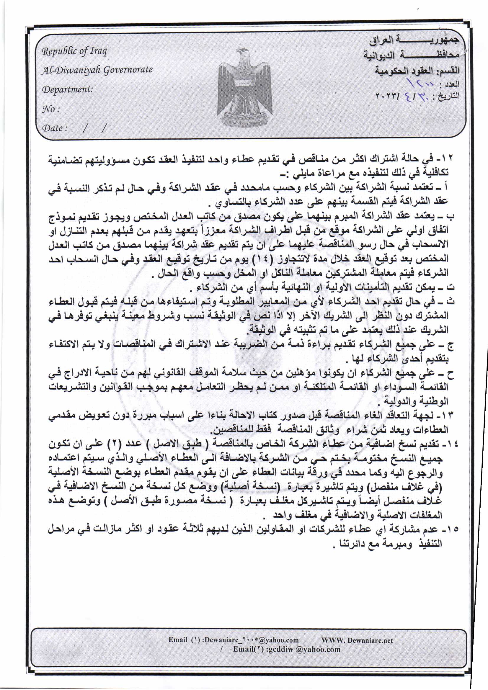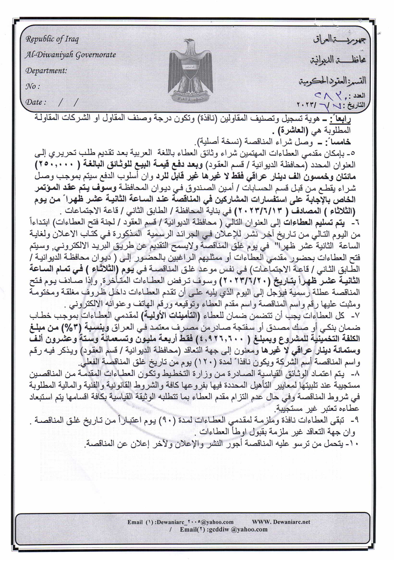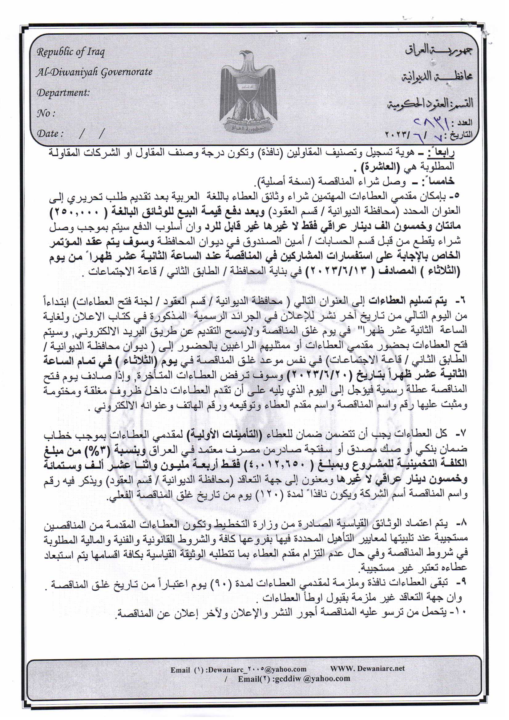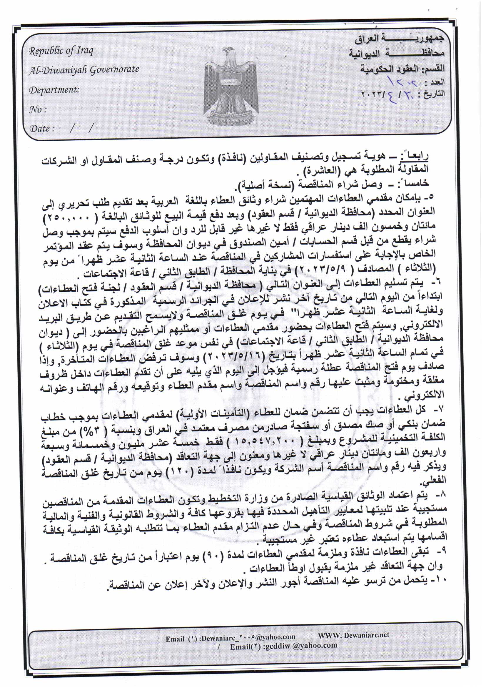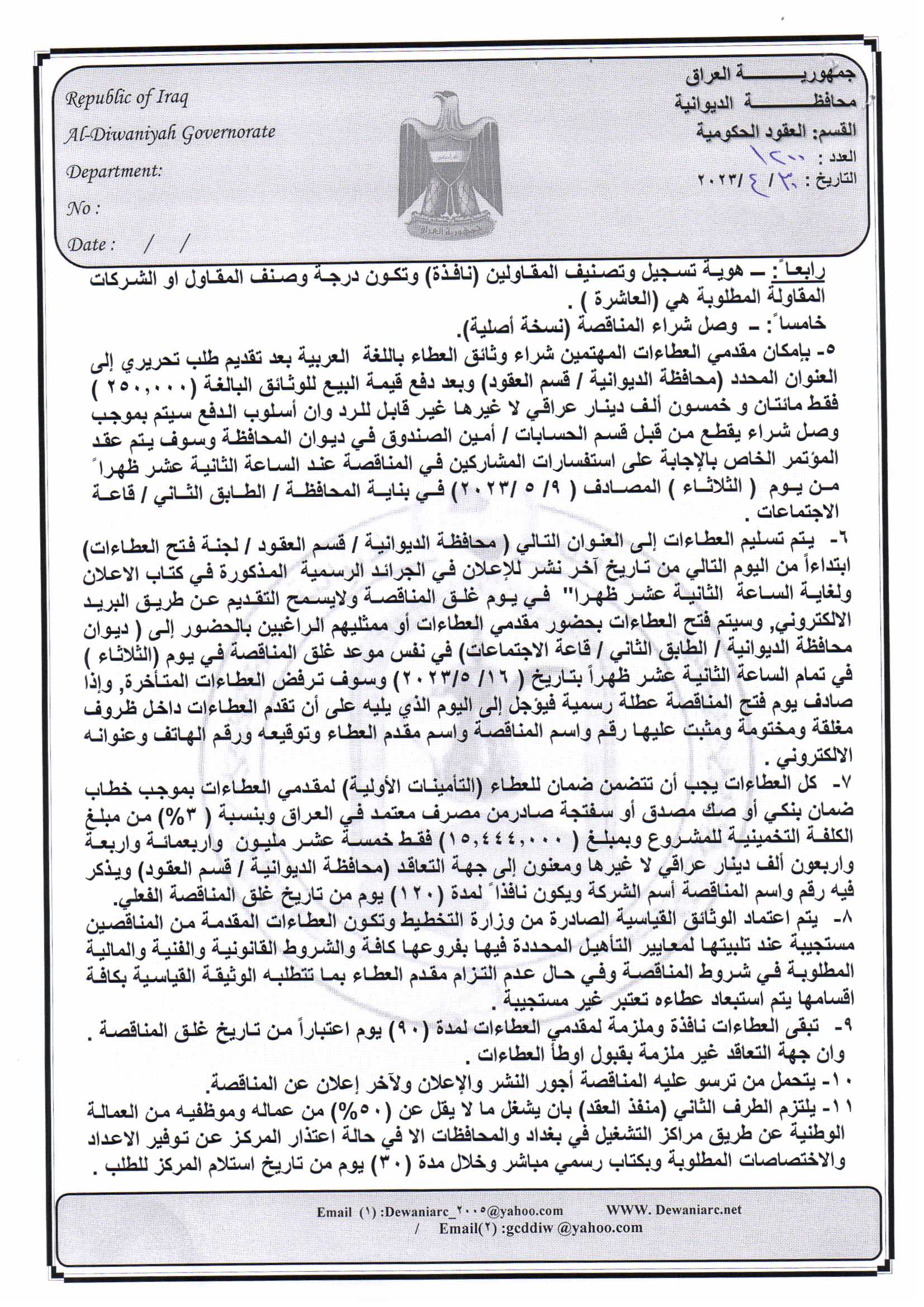 ﴿ إعلان مناقصة (23) لسنة 2022