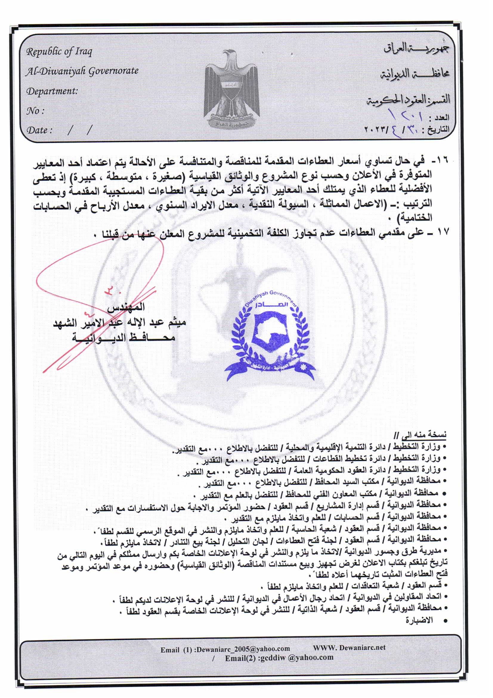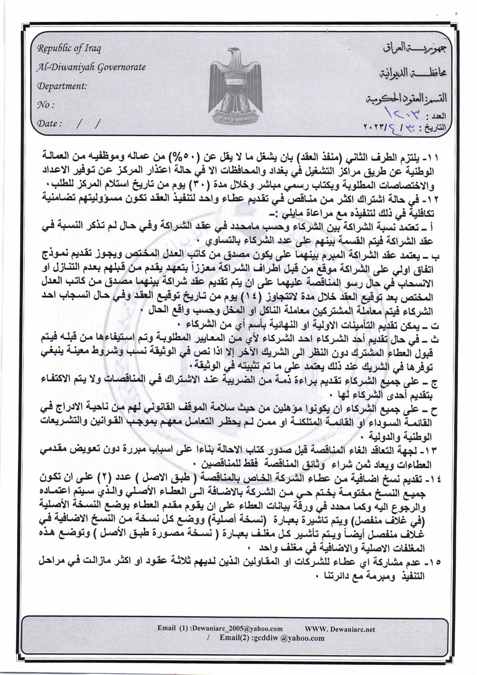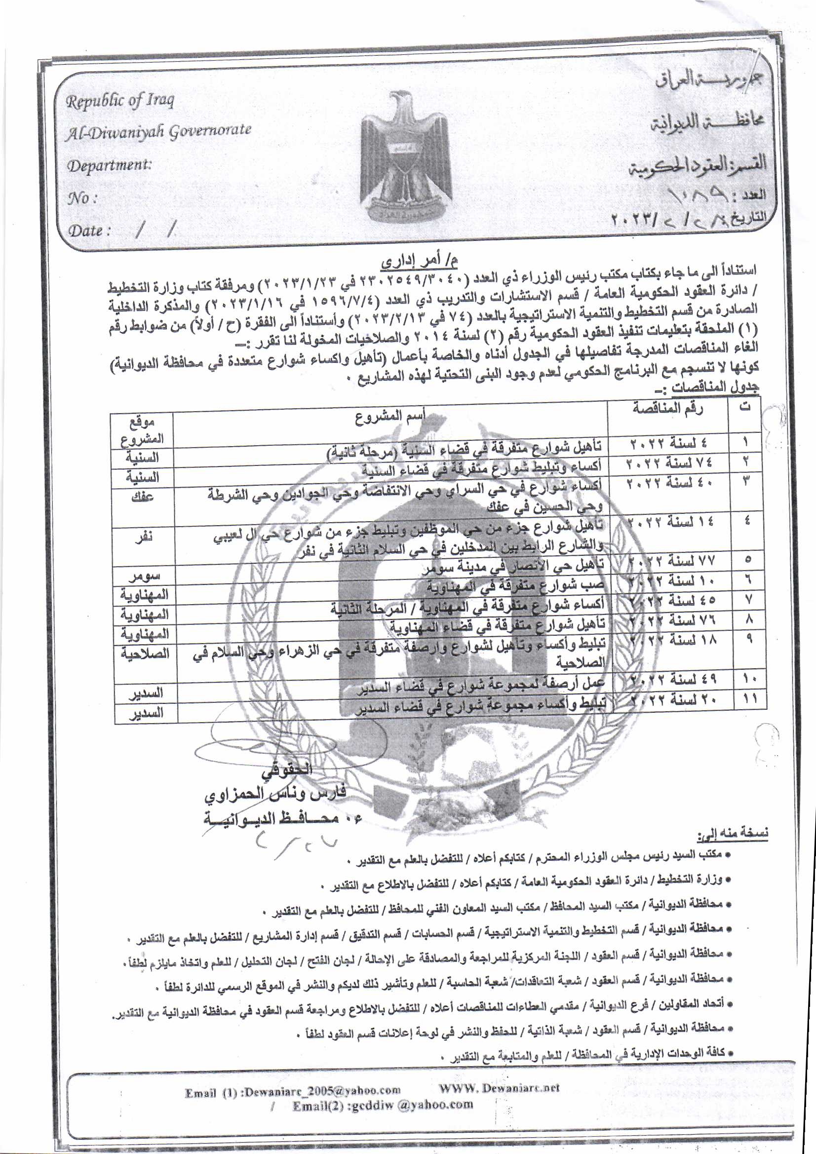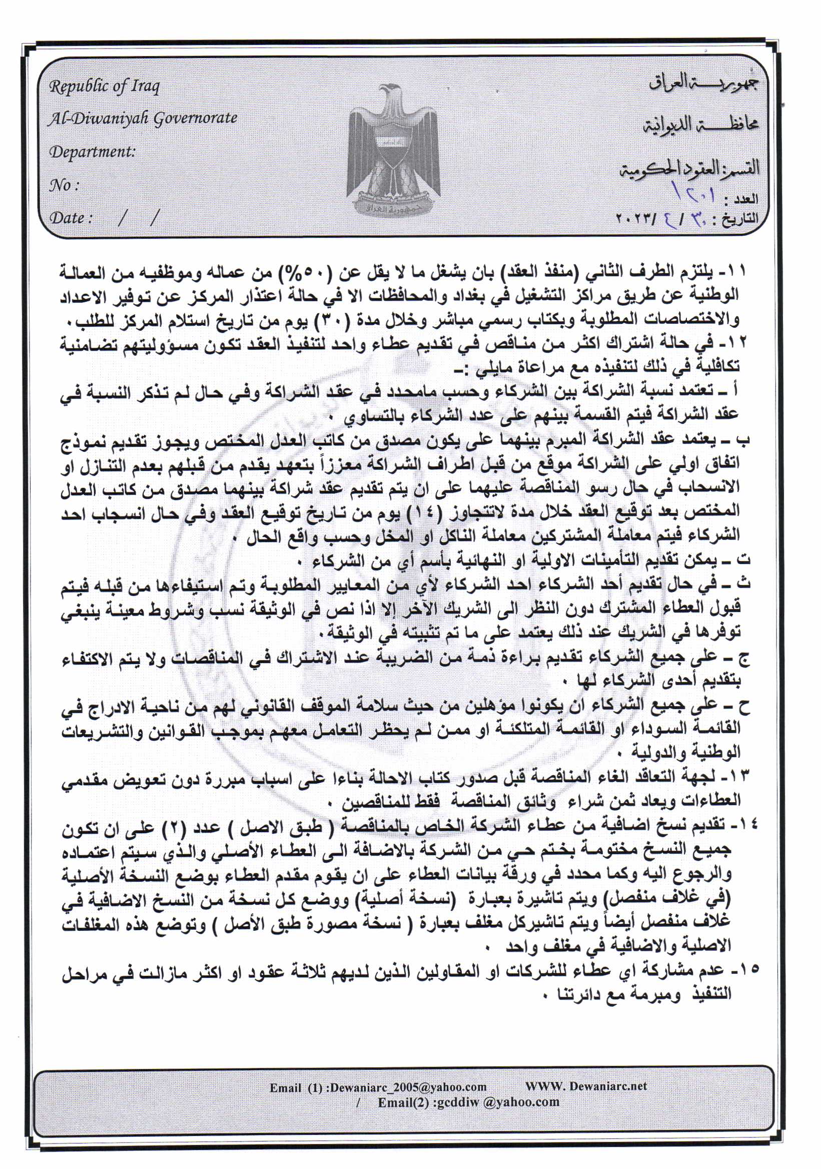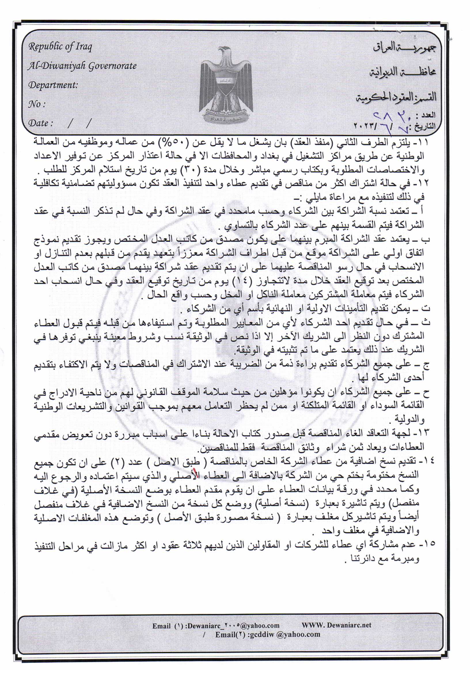 ﴿ إعلان مناقصة (23) لسنة 2022