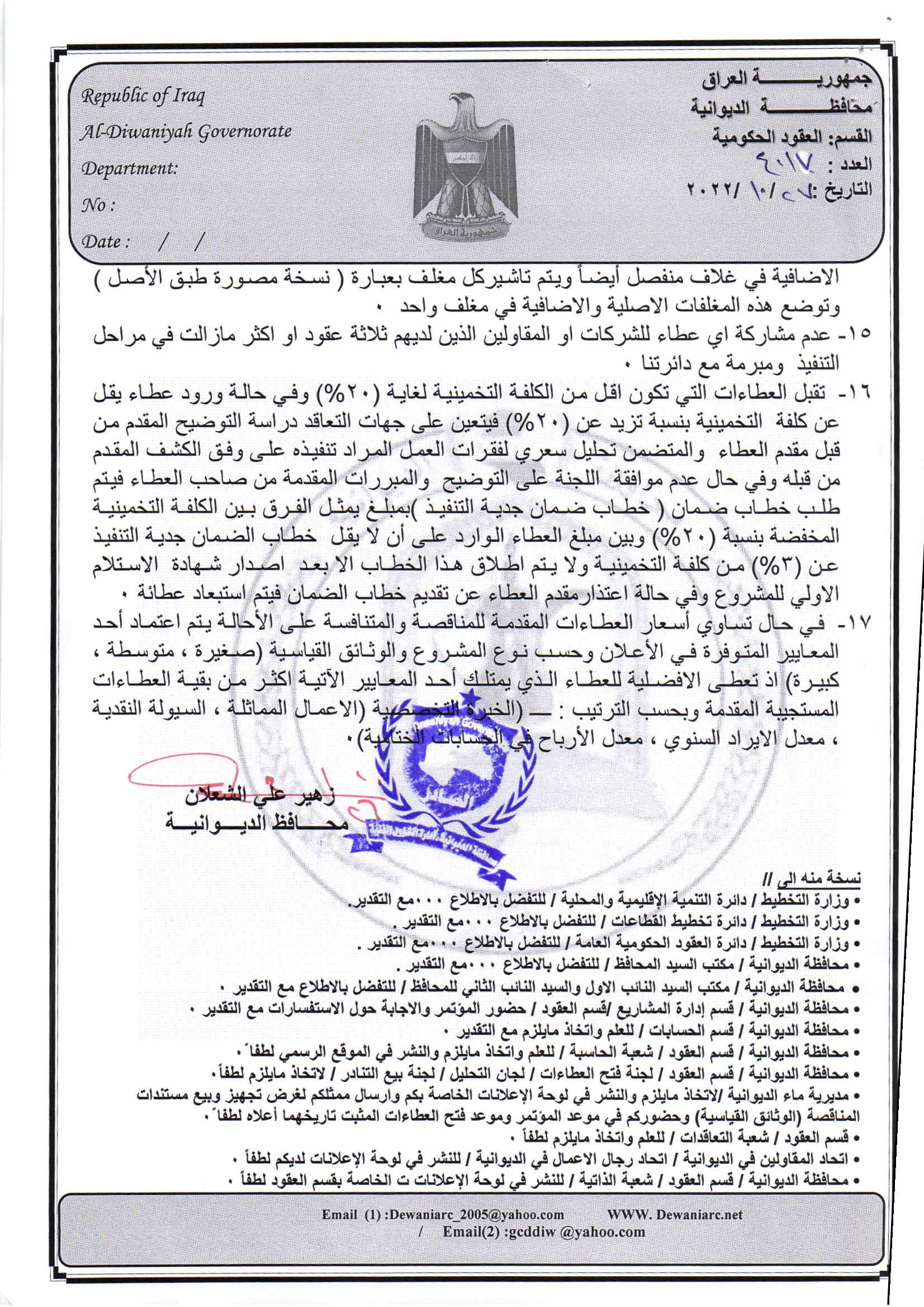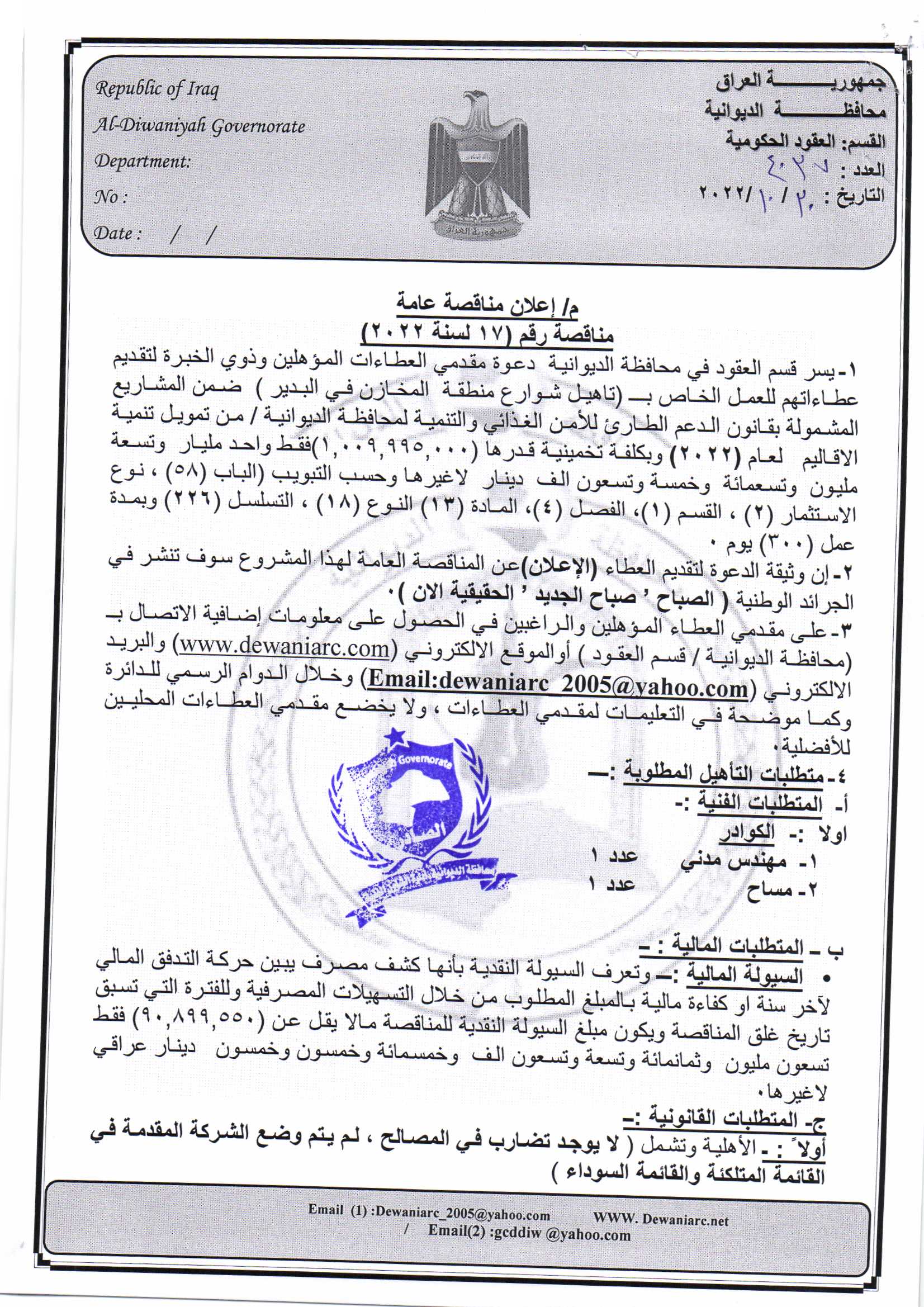 ﴿ إعلان مناقصة (17) لسنة 2022