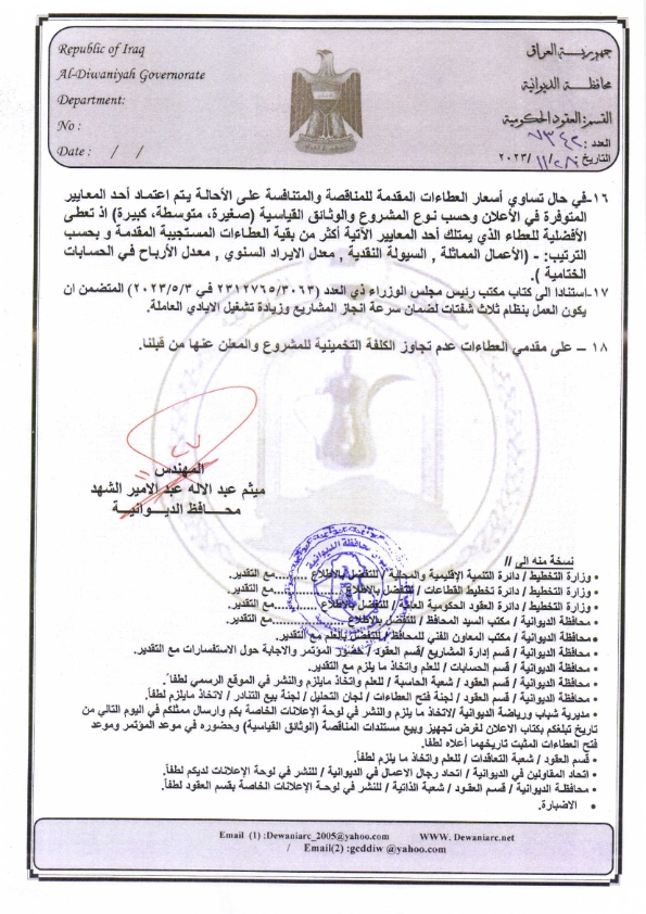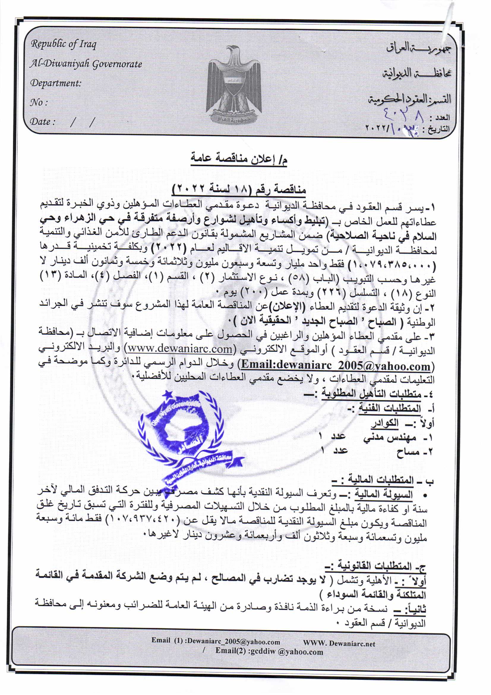 ﴿ إعلان مناقصة (18) لسنة 2022