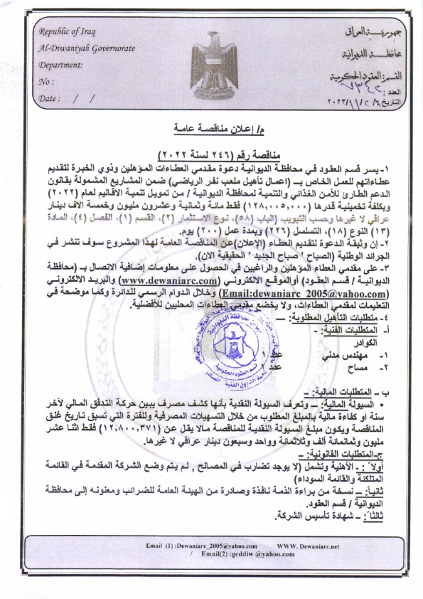 ﴿ إعلان مناقصة (246) لسنة 2022