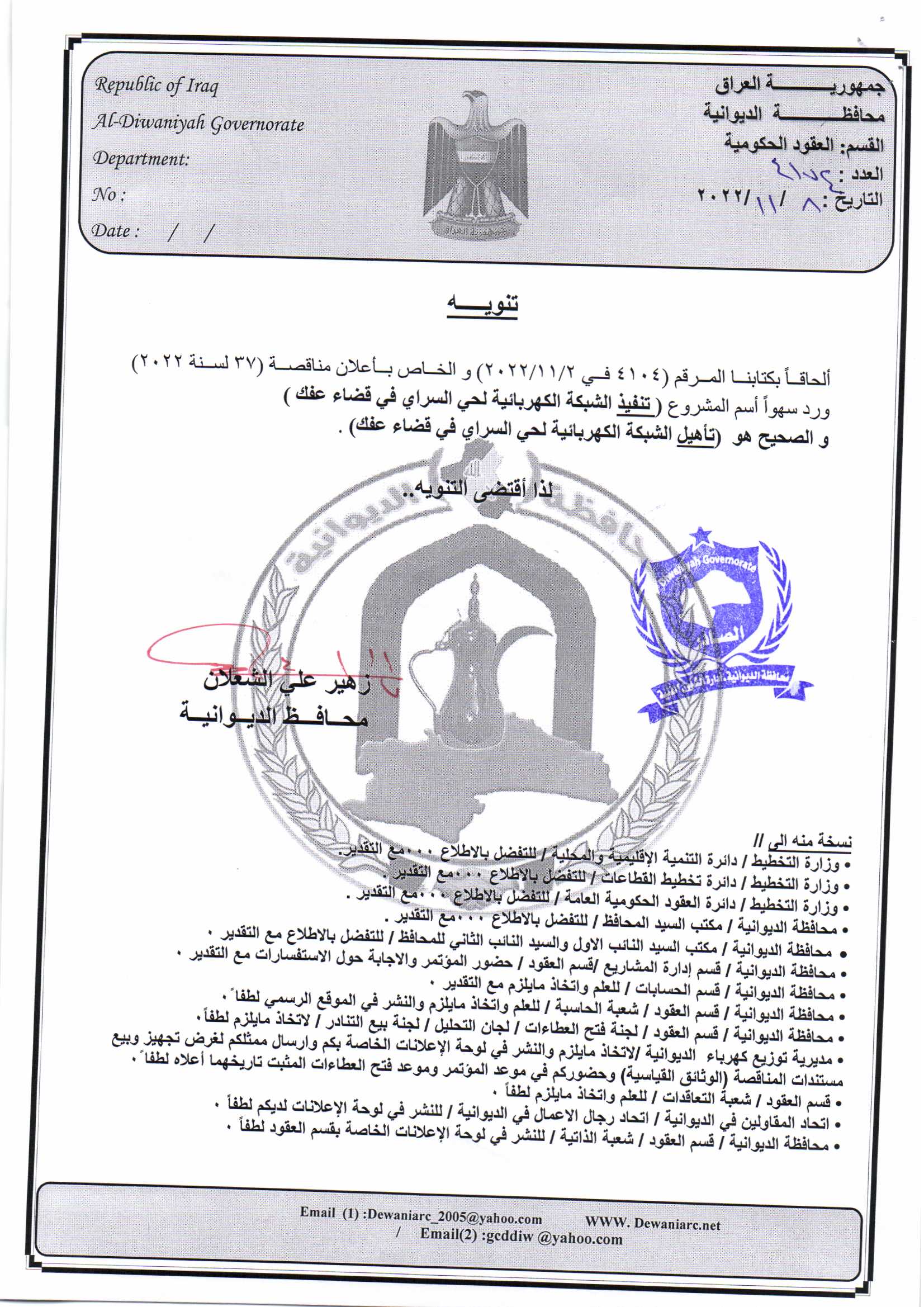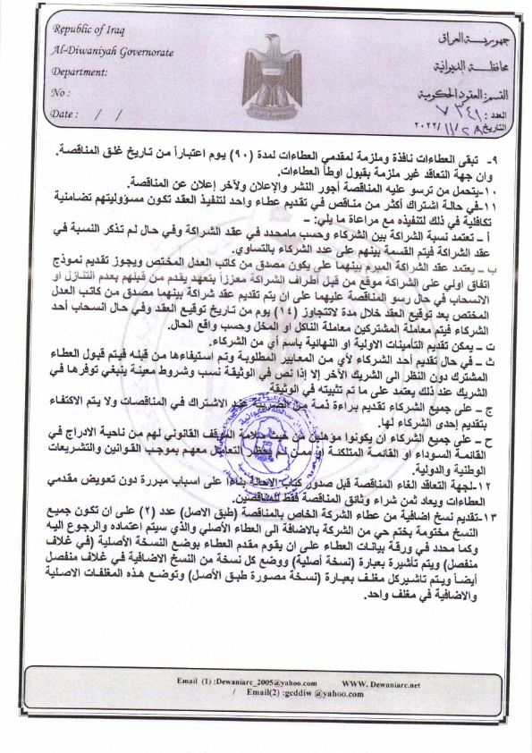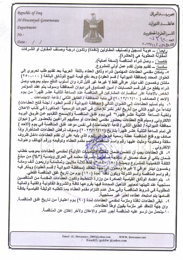 ﴿ تنويه بخصوص مناقصة (9) لسنة 2022