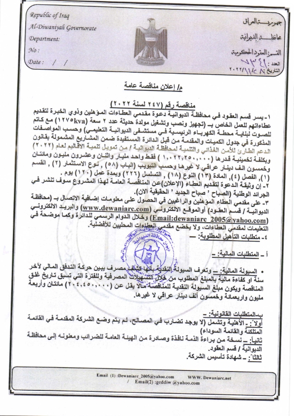 ﴿ إعلان مناقصة (247) لسنة 2022