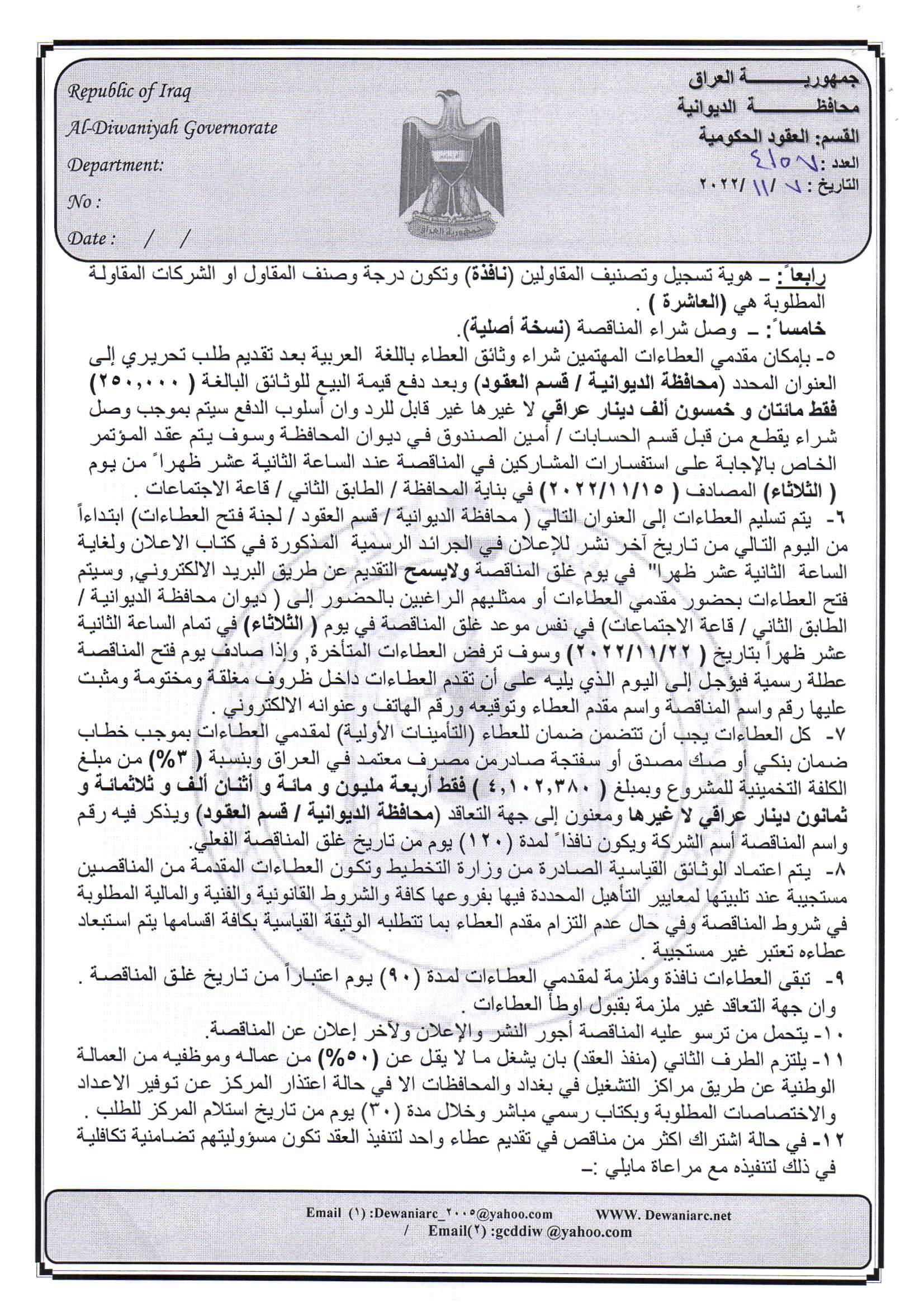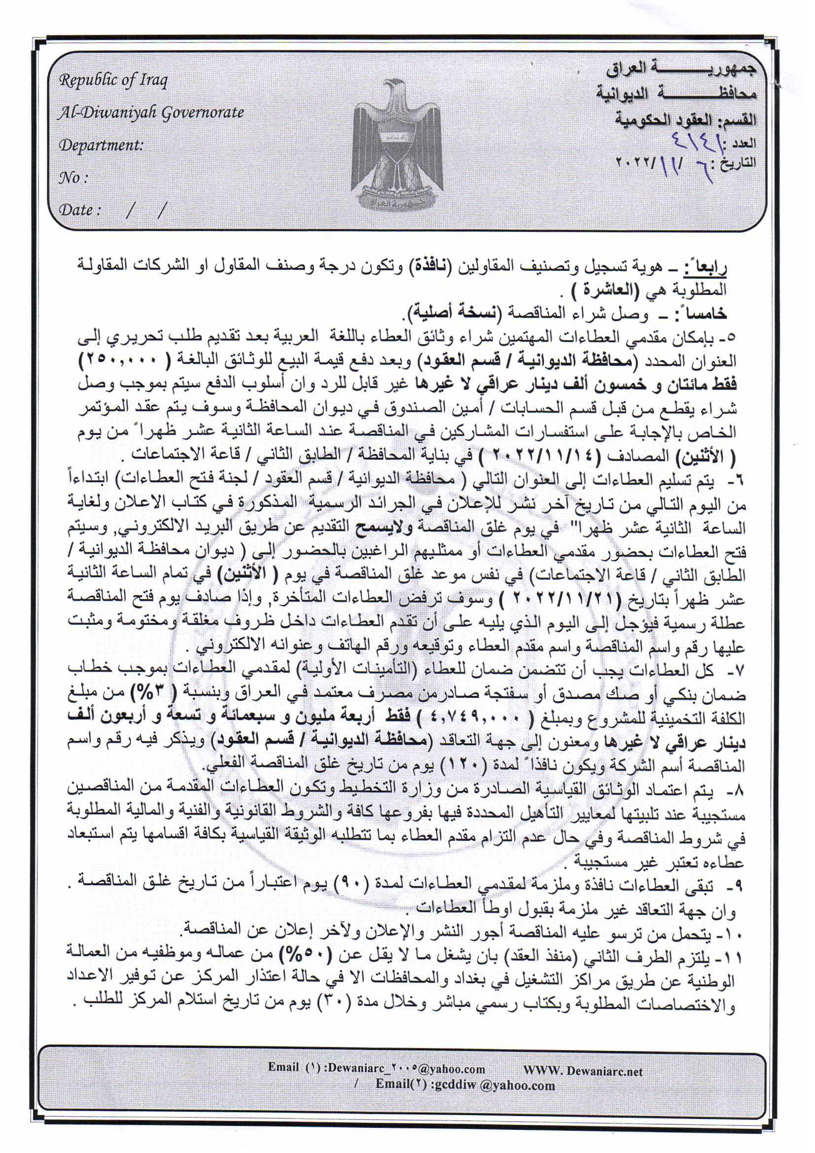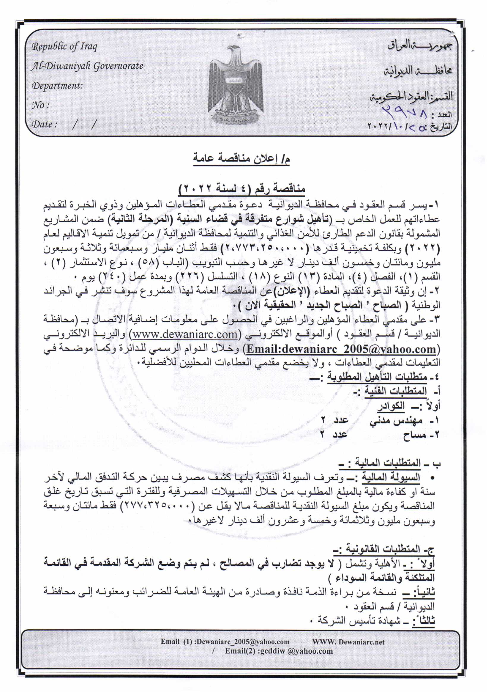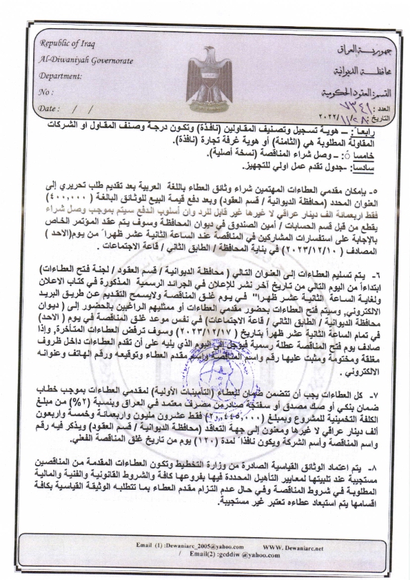 ﴿ إعلان مناقصة (4) لسنة 2022
