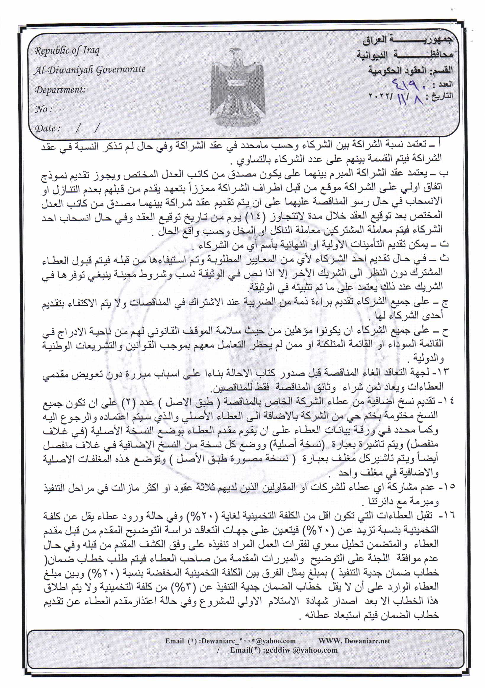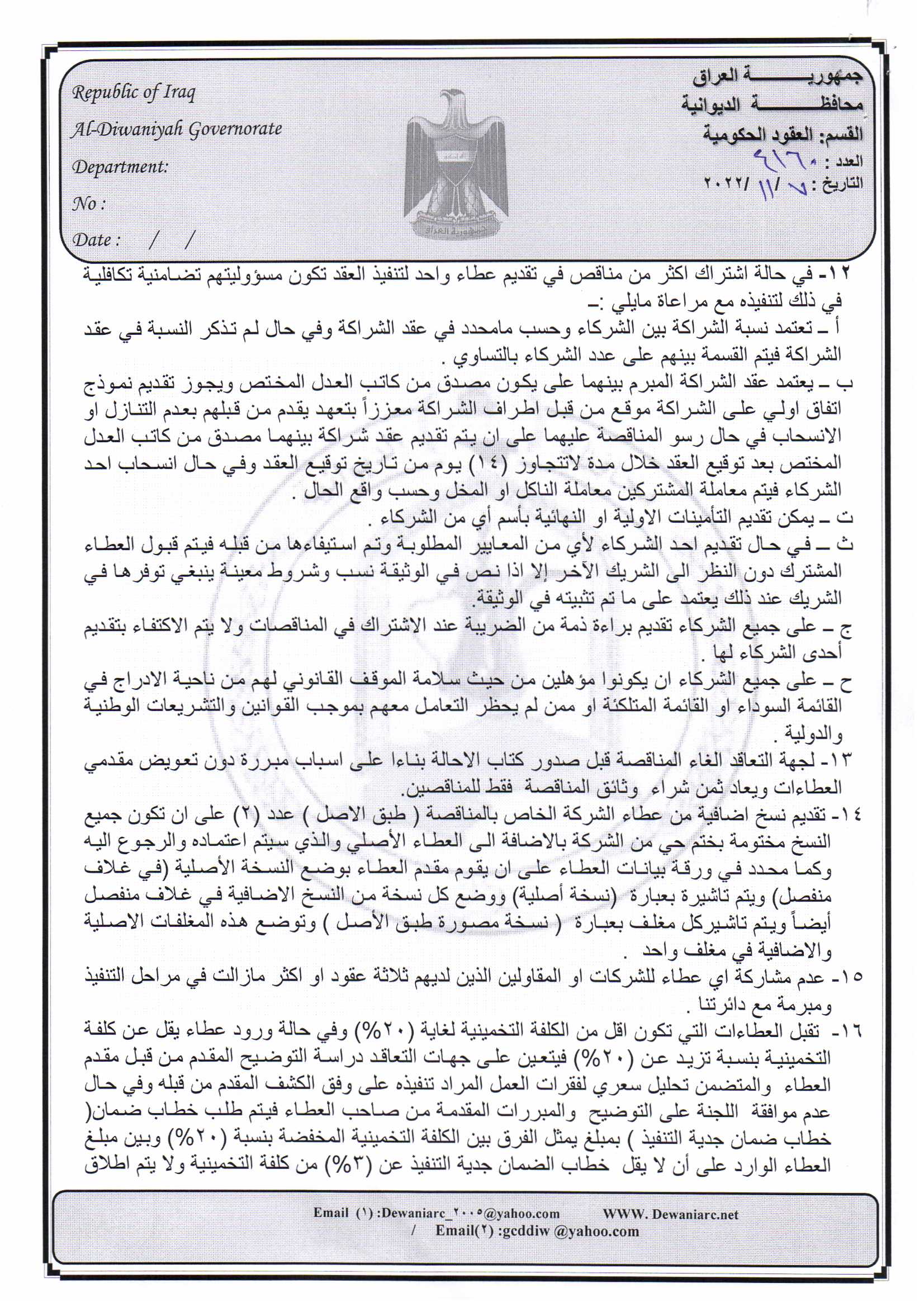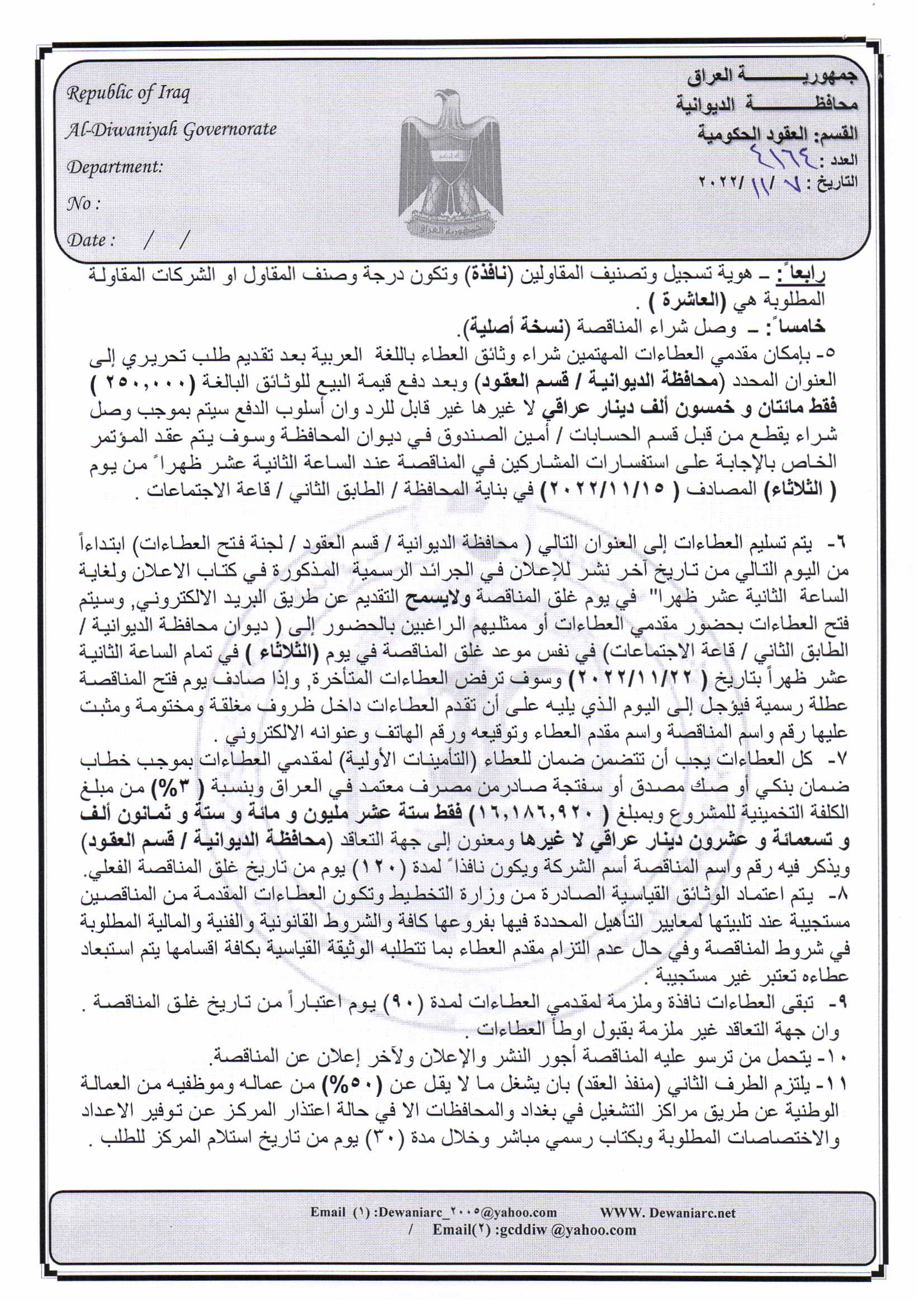 ﴿ إعلان مناقصة (16) لسنة 2022