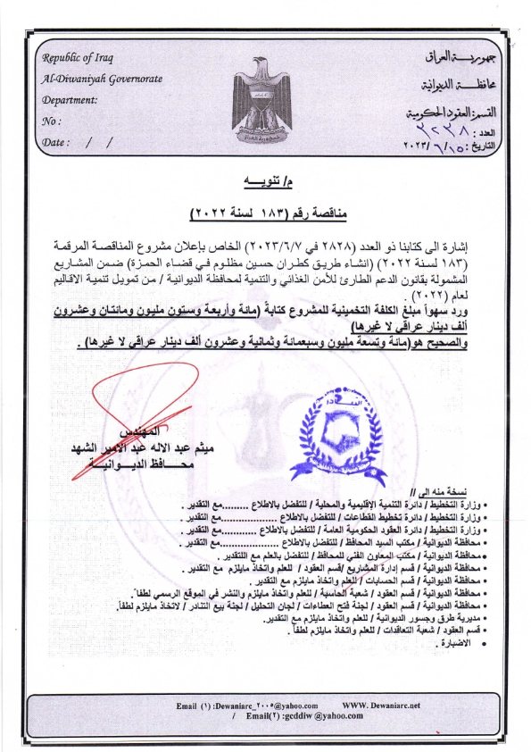 ﴿ تنويه بخصوص مناقصة (183) لسنة 2022