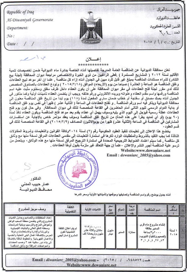 ۞۞۞۞۞۞۞۞۞۞ تنويه   أمر إداري ﴿ إلغاء مناقصة (7) لسنة 2015 ﴾  أمر إداري ﴿ إلغاء مناقصة (50،49) لسنة 2013 ﴾ %202013.jpg) أمر إداري ﴿ إلغاء مناقصة (259) لسنة 2012 ﴾ %202012.jpg) أمر إداري ﴿ إلغاء مناقصة (274) لسنة 2012 ﴾ %202012.jpg) أمر إداري ﴿ إلغاء مناقصة (300،206،153) لسنة 2012 ﴾