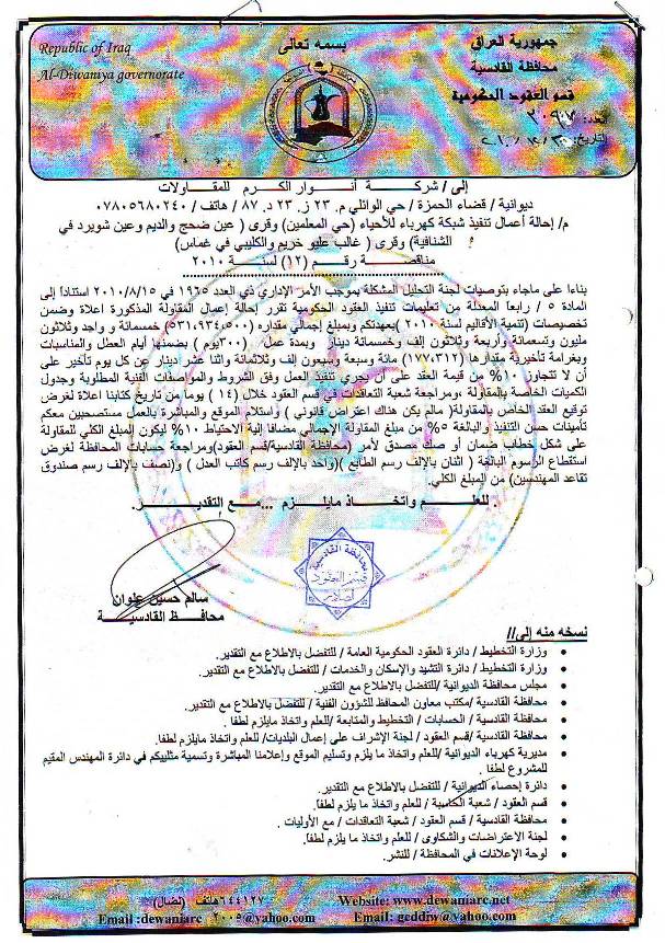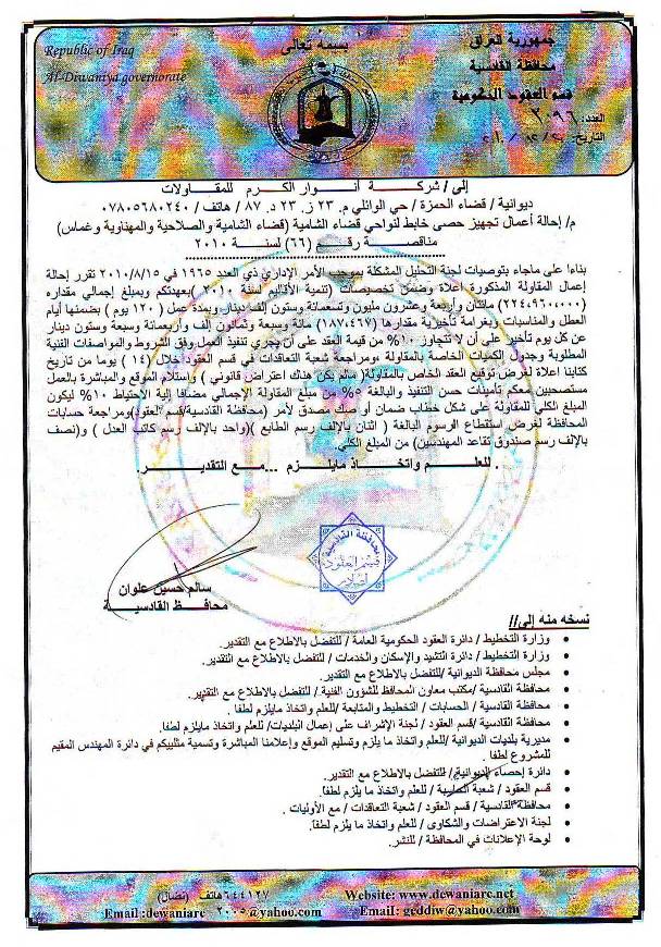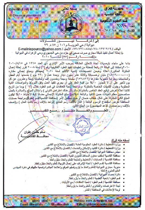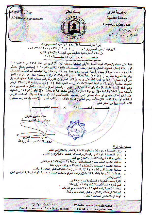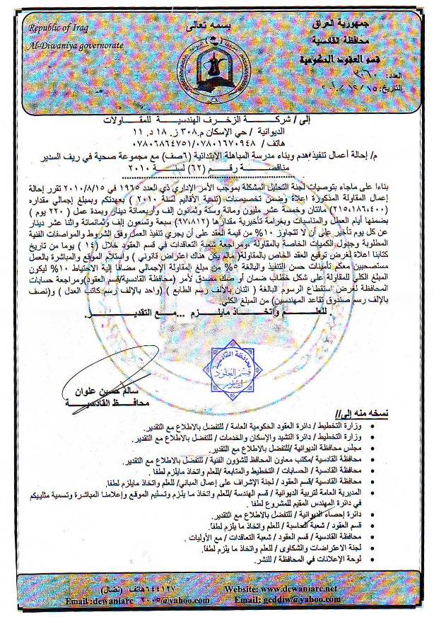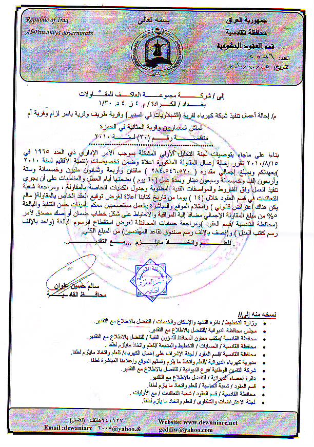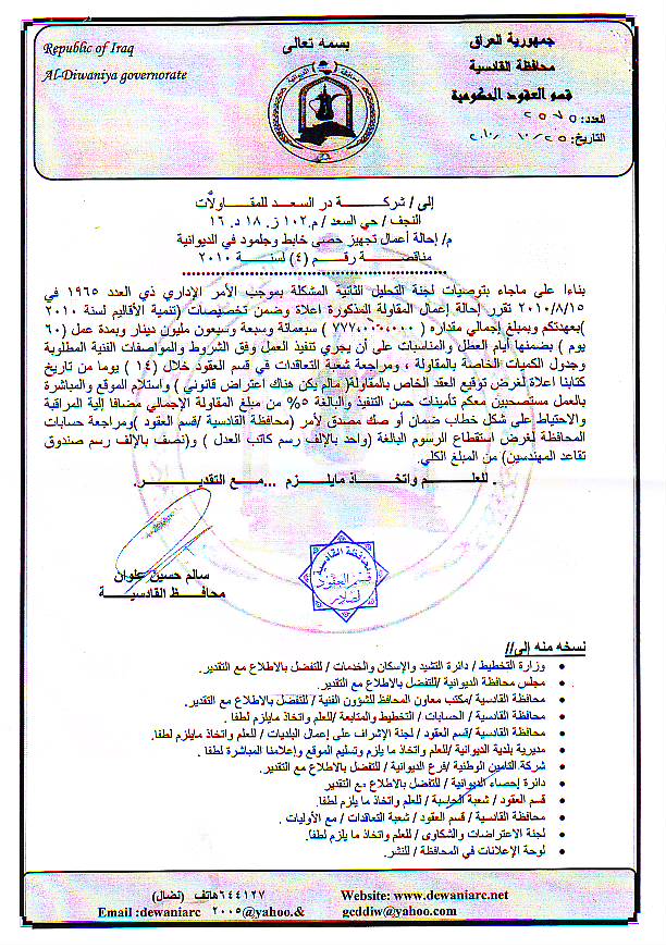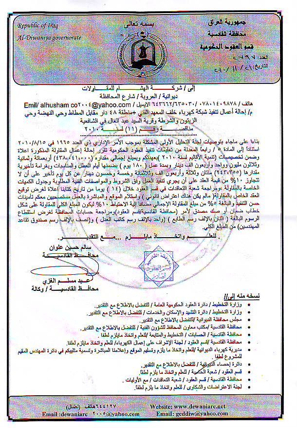 إحالة مناقصة رقم (19) لعام 2010﴾