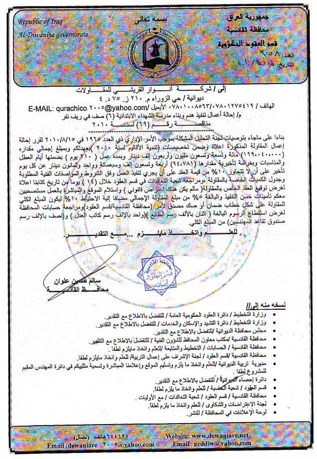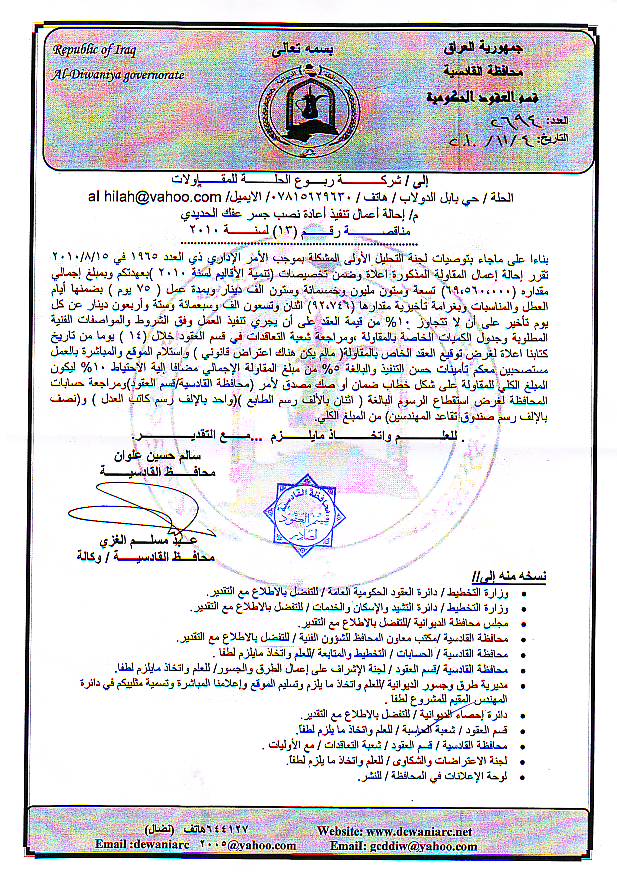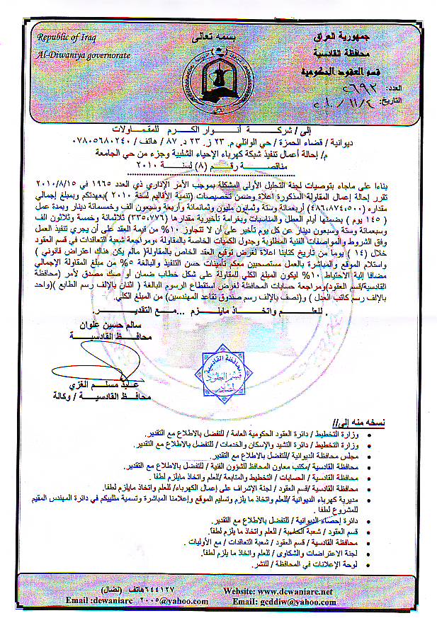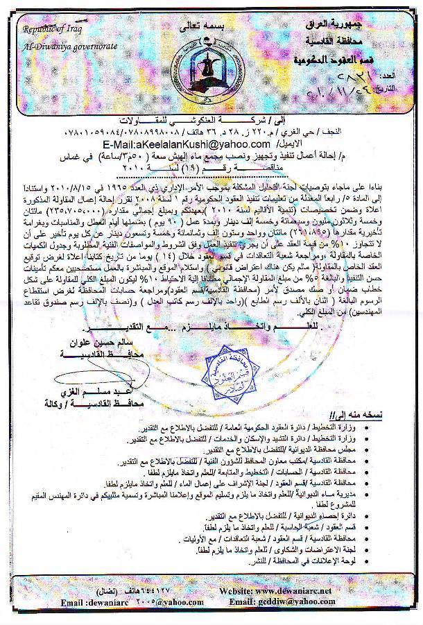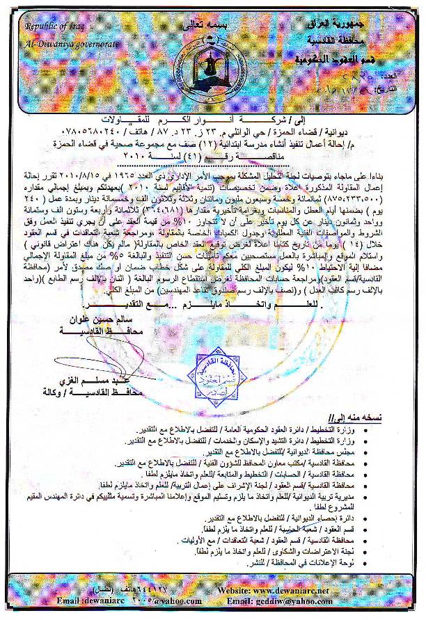 إحالة مناقصة رقم (42) لعام 2010﴾