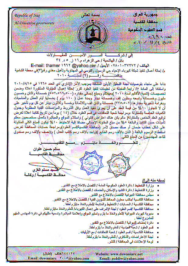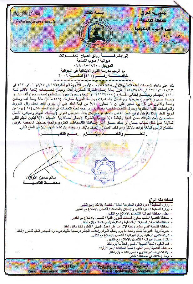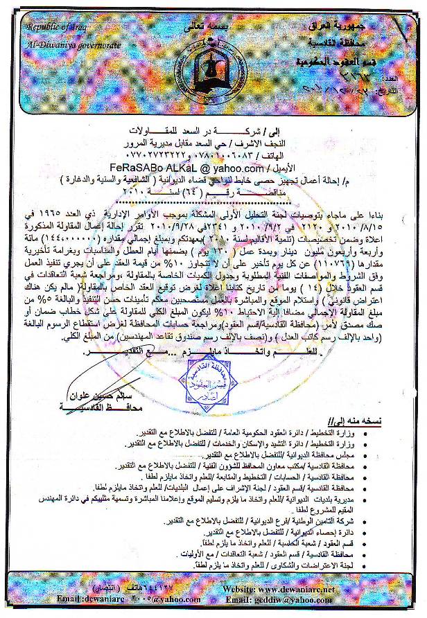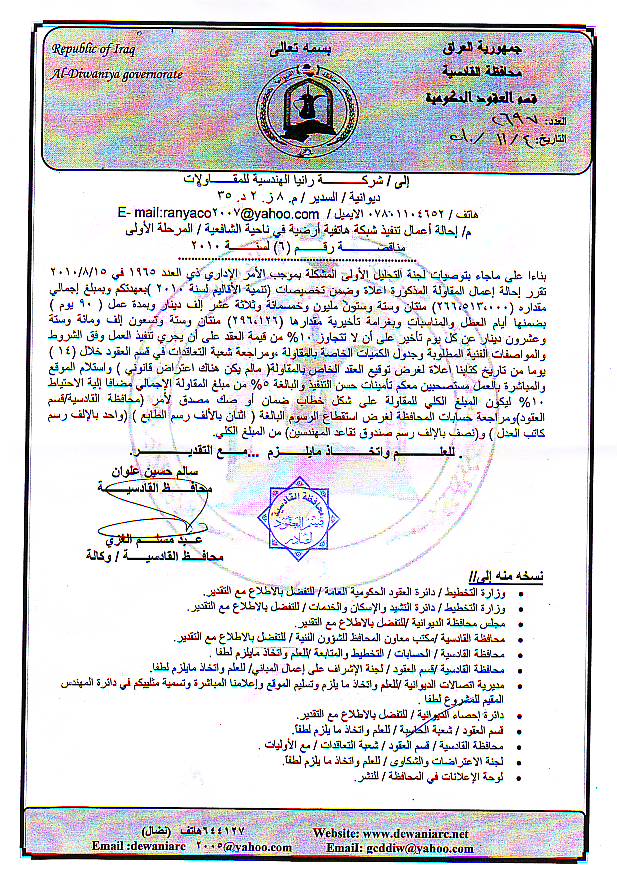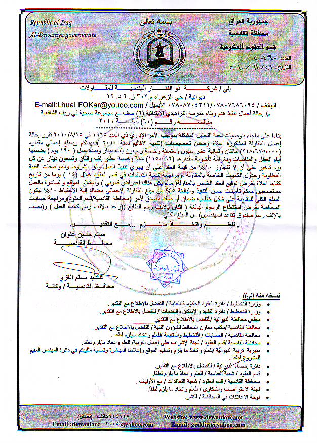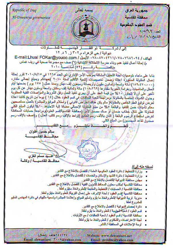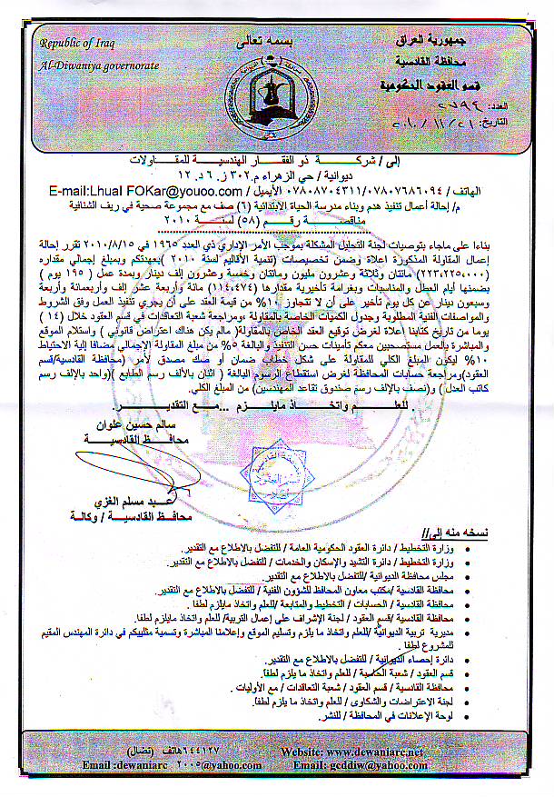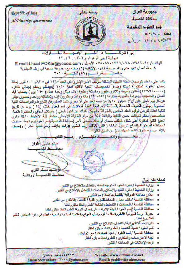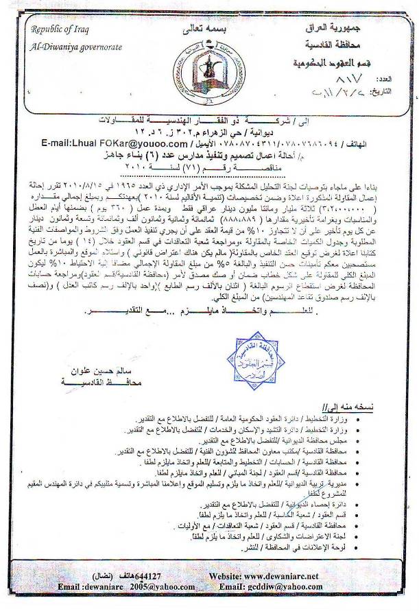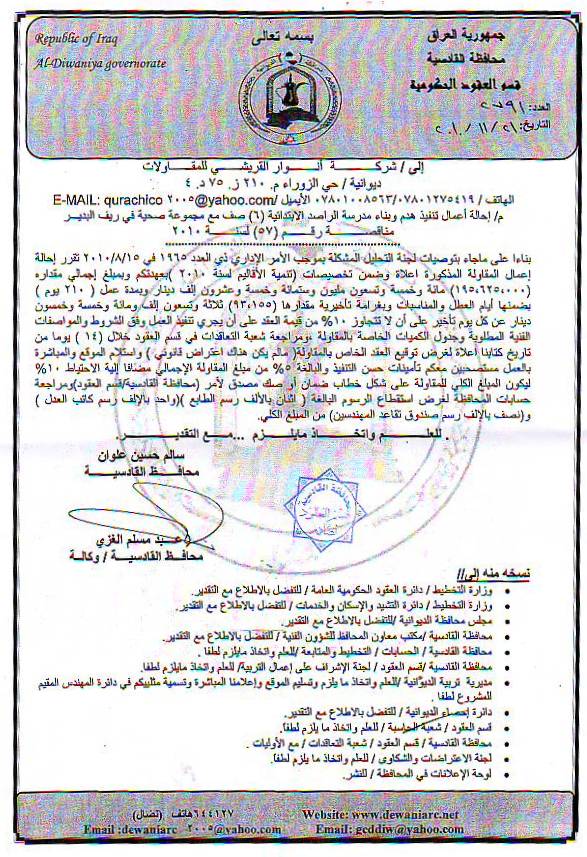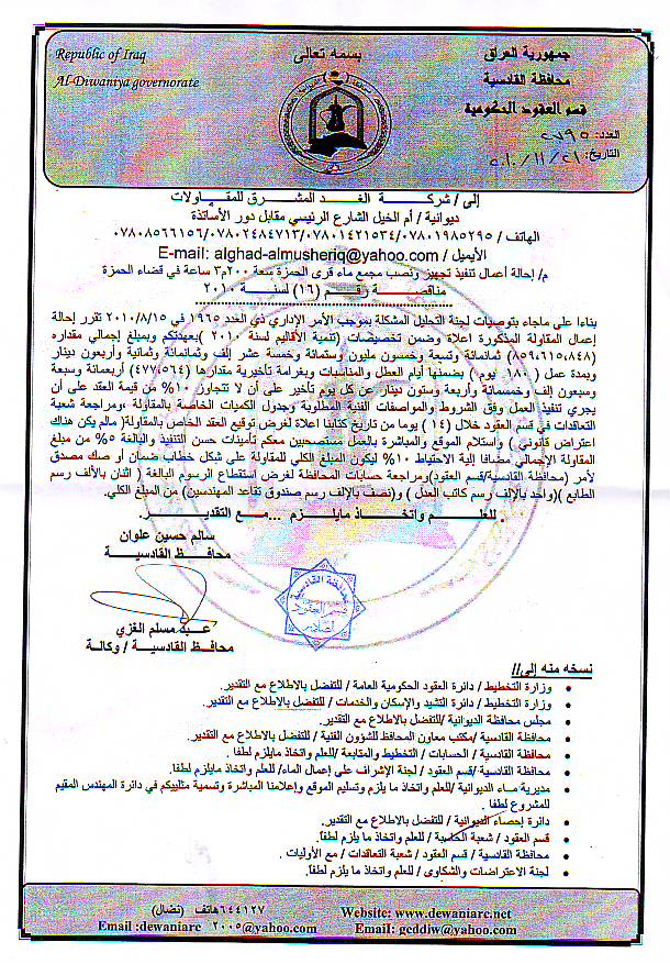 إحالة مناقصة رقم (6) لعام 2010﴾