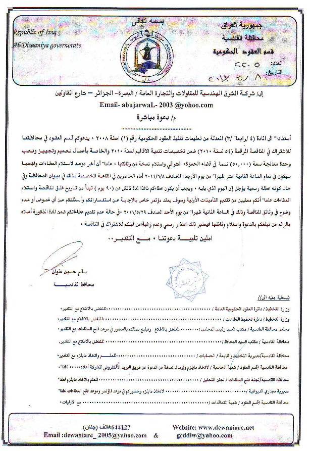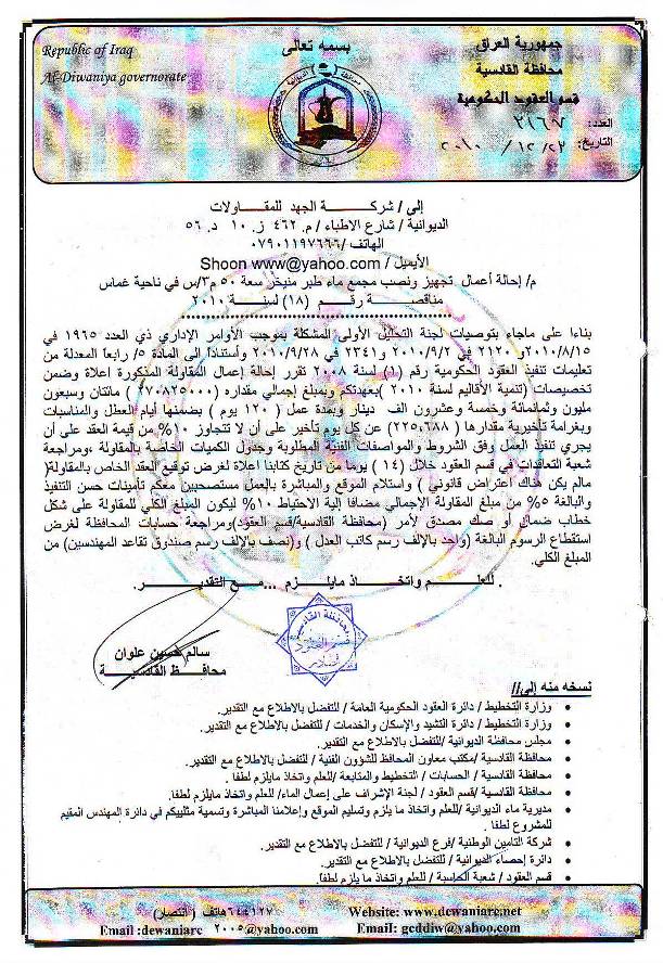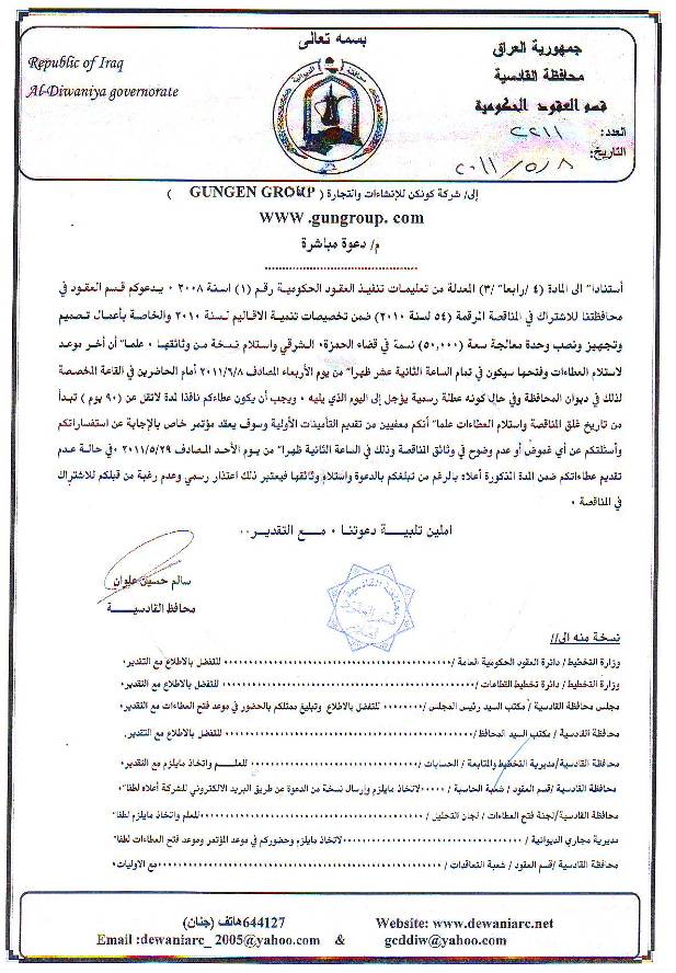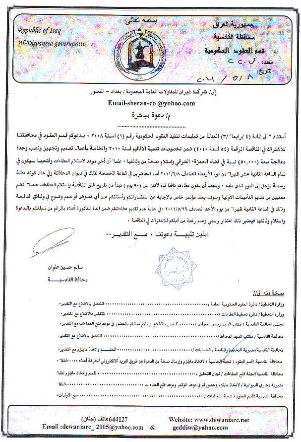 إحالة مناقصة رقم (50) لعام 2010﴾