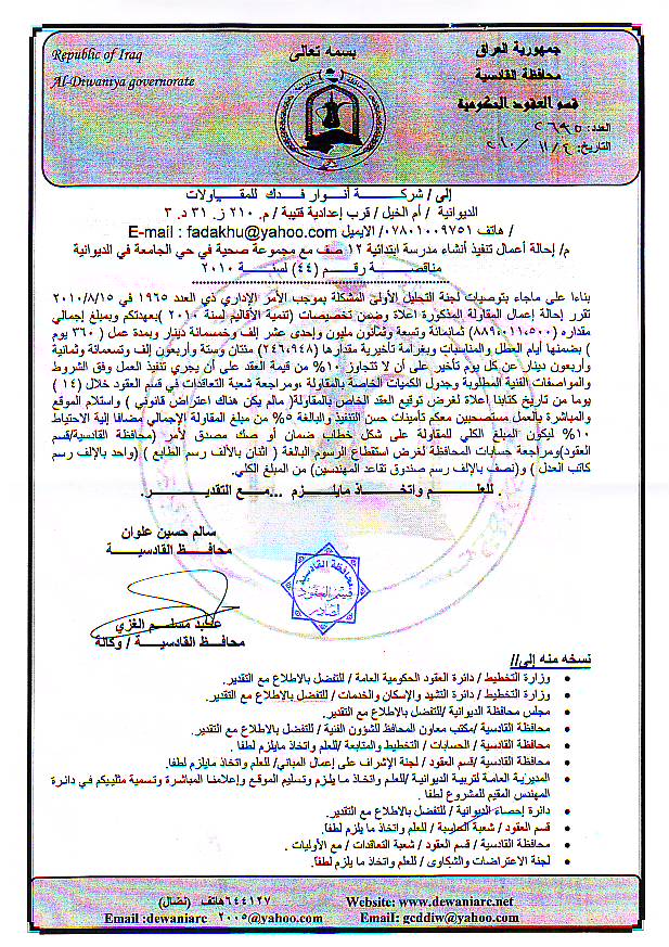 إحالة مناقصة رقم (44) لعام 2010﴾