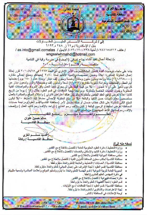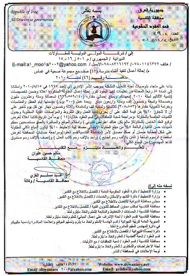 إحالة مناقصة رقم (46) لعام 2010﴾